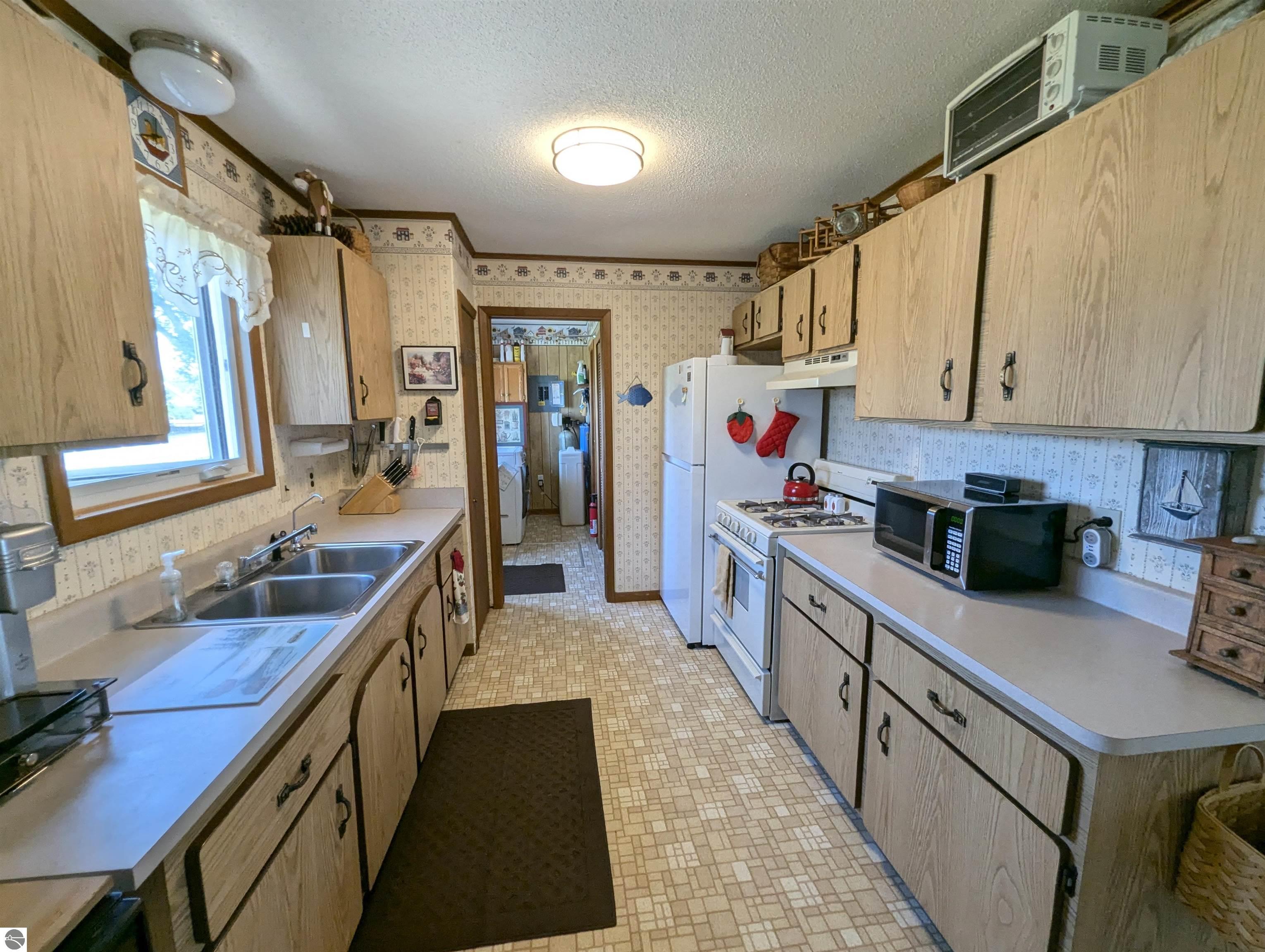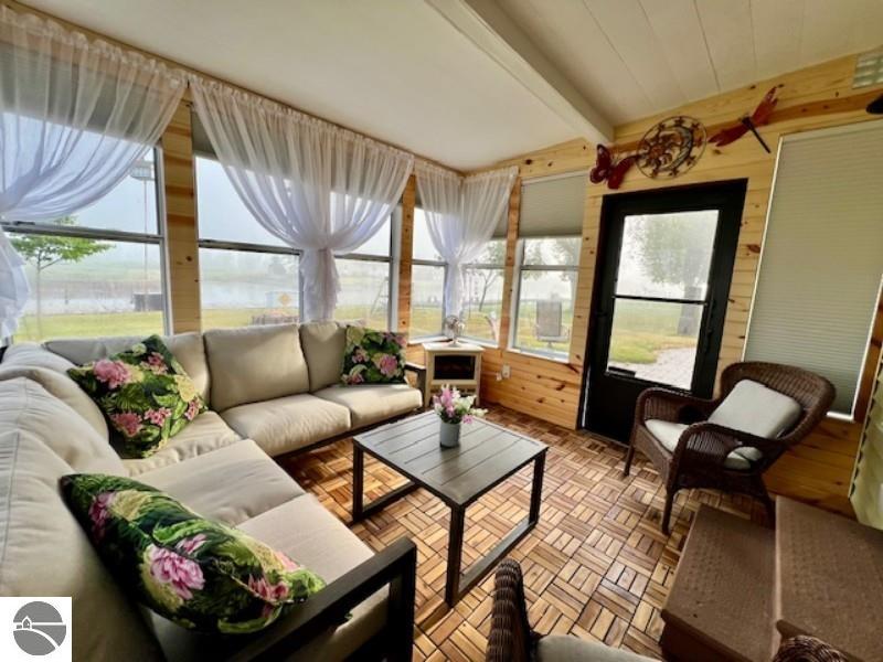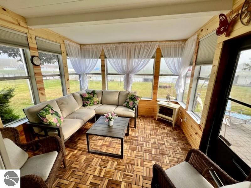 Cute and clean three bedroom ranch home with 80' of frontage along a canal leading to Lake Huron! The home offers a nice flowing layout with a cozy living room as you walk-in with a wood stove that leads to the primary bedroom w/ shared access to a bathroom, open dining/kitchen, secluded laundry area w/ wash-tub and furnace/water heater closet, and two additional bedrooms and full baths on the other end of the house. A great feature of this property is the newly re-done sun room overlooking the canal and leads out to a back patio area. The canal front offers a deck that goes the width of the frontage for Canalside enjoyment! Other features include natural gas, central air, Wallside windows, storage shed and a shared covered wood storage area.