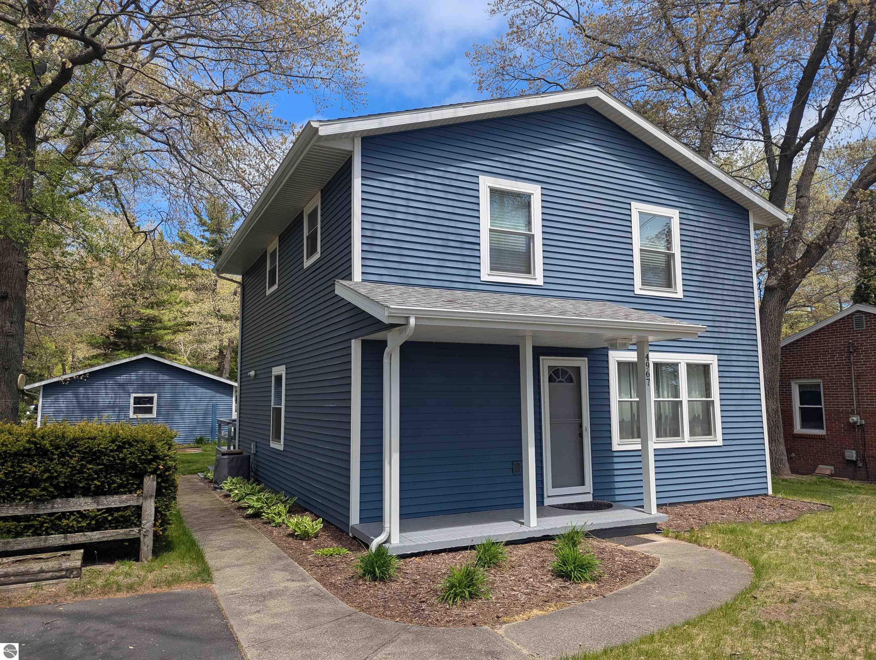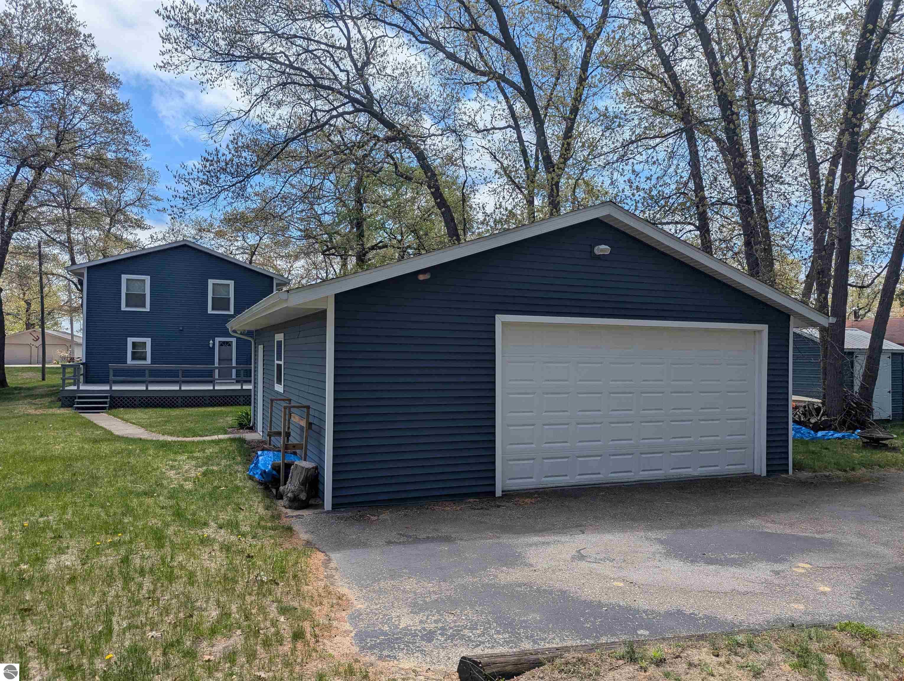 Sandy beach access just a few steps away from this immaculate lake access property! A desirable location with a street to street lot for added space and convenience, this property offers a great mix of inside and outside amenities for optimal enjoyment! The main level of the home features an open kitchen/dining area that looks into the spacious living room, a main level bedroom, laundry, full bath, and a large room that could be used as a walk-in closet/storage. Upstairs there are three bedrooms and a full bath. One of the bedrooms is quite spacious as in addition to it's 13'x14' dimension, there's an 8x9 offset along with two closets! Outside there's an 18'x26' back deck that overlooks the yard with a firepit! For more storage, there's a detached 25x29 garage and it's own driveway off Michigan Avenue. Escape to the lake with this beautiful property!