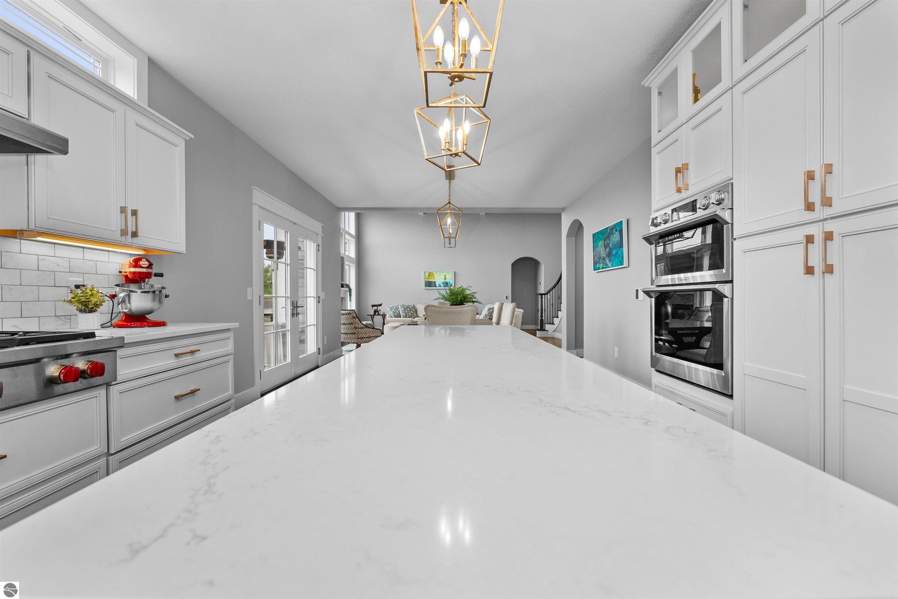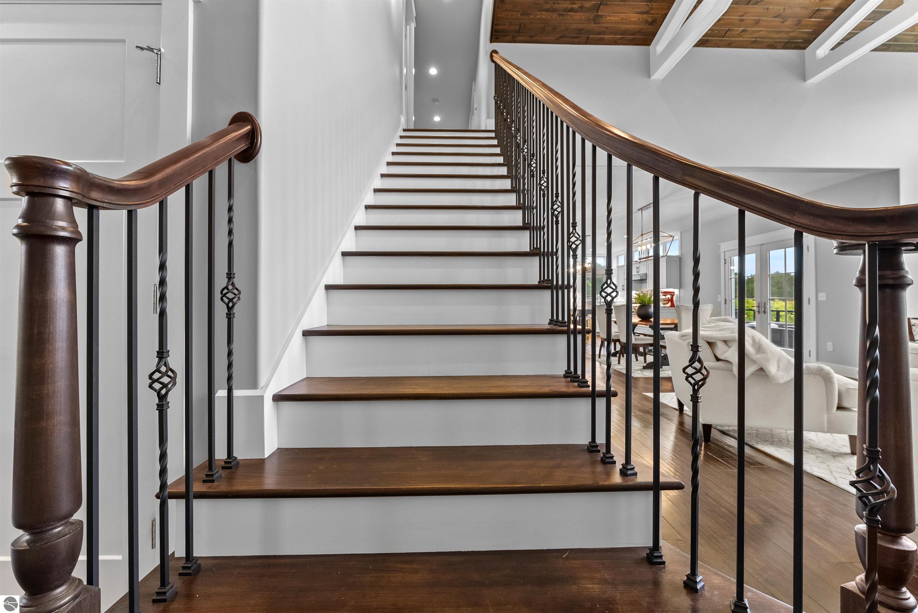 SPACIOUS & ELEGANT HOME WITH BAY VIEWS IN PRIME GARFIELD TOWNSHIP NEIGHBORHOOD. Perched atop a scenic hillside in beautiful Grayhawk neighborhood, this beautifully designed 4700 sq ft home offers sweeping, distant views of West Grand Traverse Bay and an elevated sense of privacy. The driveway is not just a feature-its what allows for the stunning vantage point that sets this home apart, bringing in natural light and showcasing breathtaking sunsets from multiple rooms. Inside, you'll find 5 spacious bedrooms and 4.5 baths, along with a three-car garage and a very flexible floor plan that provides functionality for any lifestyle. The interior boasts beautiful finishes throughout, creating a warm and refined atmosphere to entertain or relax in. There are three distinct living areas, this home is ideal for a growing family needing space to unwind, entertain, or work from home. Whether its game night, movie time, or quiet reading, theres room for everyone. Located minutes, and an easy bike ride or walk through the beautiful hospital grounds to the trails and downtown. The Views in this home are worth the visit.