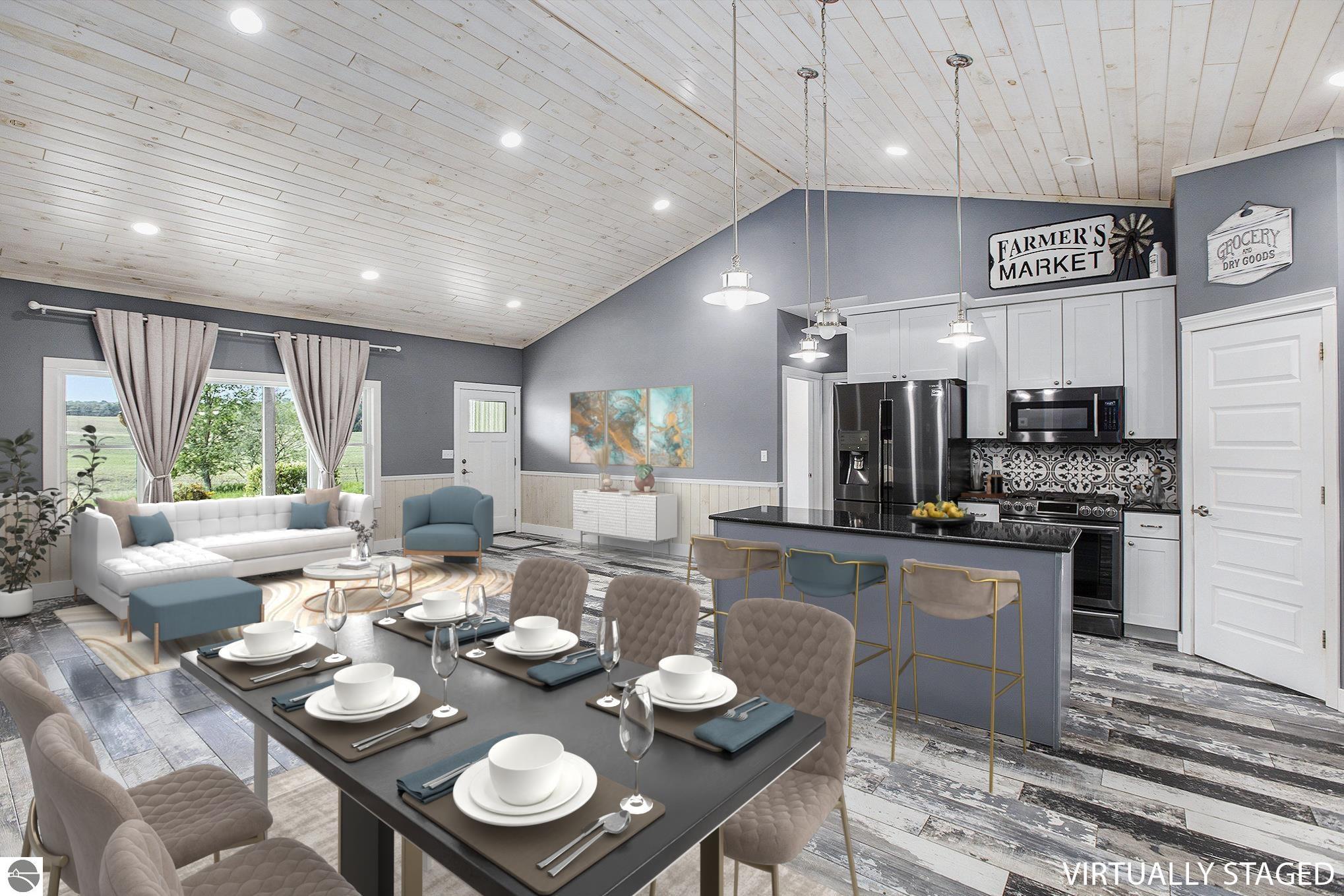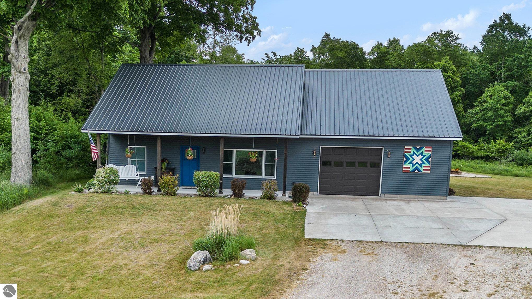 Imagine your Holidays in your new home! This home is move in ready. Ready to make dreams come true for the new year! Modern Ranch Home on 2 Acres, Near Cadillac, MI. Move-In Ready Country Retreat. Built in 2018. Energy Efficient and Peaceful Setting. Discover this stunning 3 bedroom, 2 bath modern ranch on 2 beautiful acres in Highland Township (Tustin) offering the perfect blend of Up North serenity and modern comfort, just minutes from Cadillac and area lakes, trails, and recreation. Step into a bright, open kitchen with center island, stainless appliances, walk-in pantry, and plenty of storage. The perfect place to gather with family and friends. The home’s efficient radiant in-floor heat runs throughout the house and attached garage, keeping every space warm and inviting year-round. Built in 2018, this move-in ready home features tinted windows, premium insulation, and a durable metal roof for low-maintenance living. The covered front porch with recessed lighting is ideal for enjoying morning coffee, hummingbirds, and peaceful sunsets. The spacious primary suite offers a walk-in closet, private bath with soaking tub and shower, and fresh paint. Additional highlights include a convenient laundry area with sink, a large storage shed with loft, and expanded concrete parking. The property is also prepped for a mini-split A/C system if desired. Located at the end of a quiet road, this property provides privacy, wildlife, and beautiful views. The ultimate Up North Michigan lifestyle. Watch deer graze in your backwoods, garden in your open backyard, or simply unwind in complete peace.