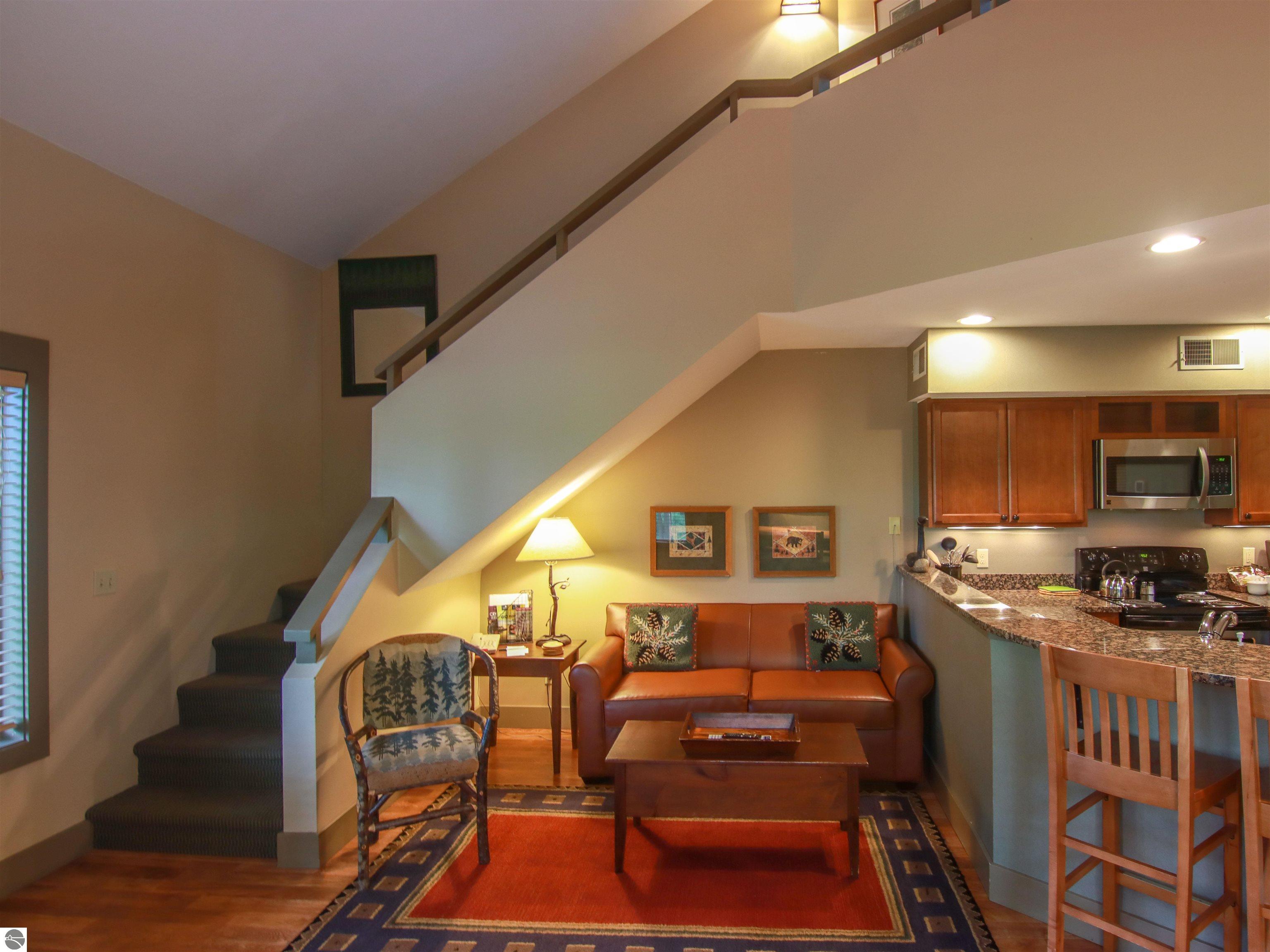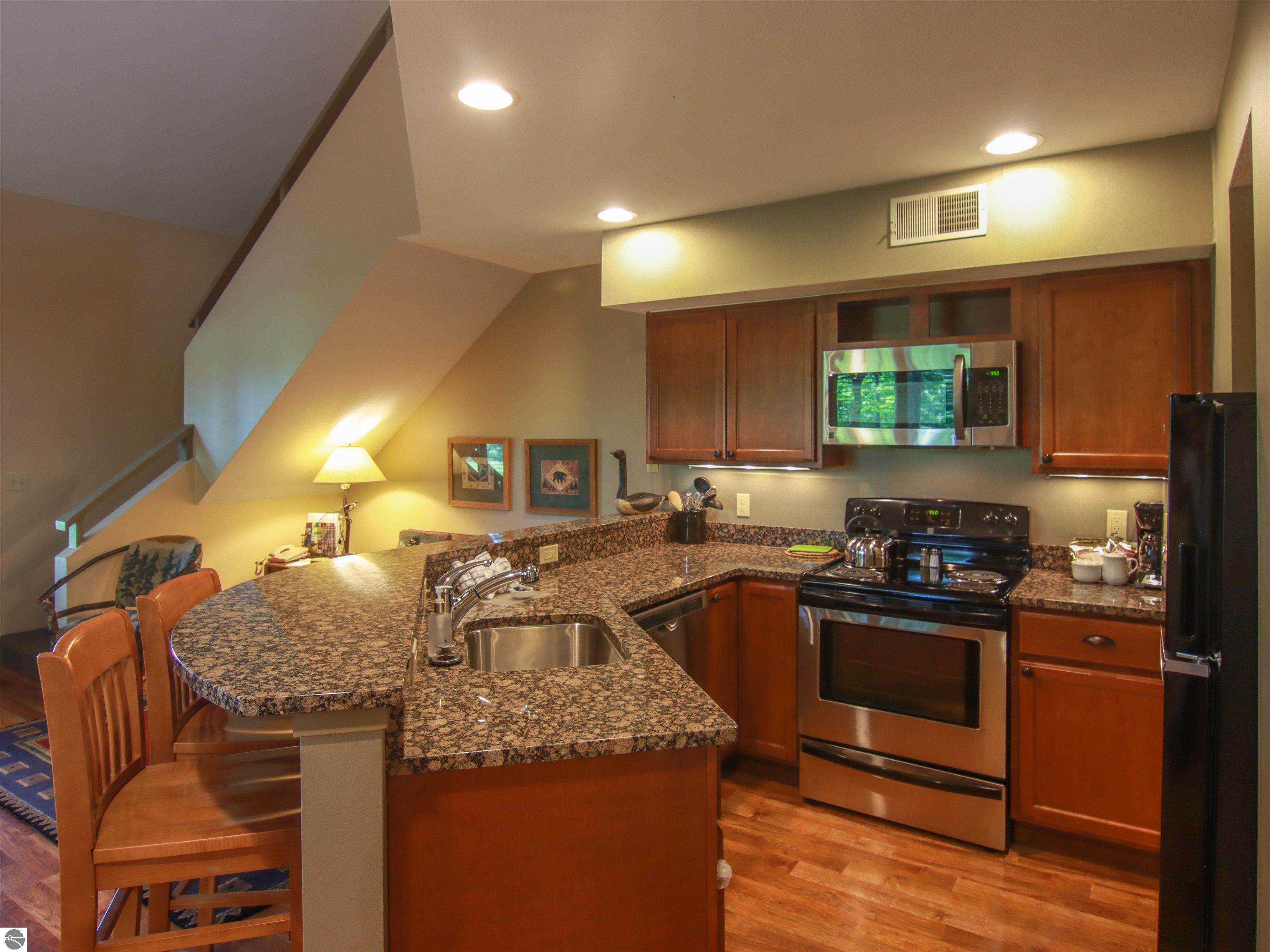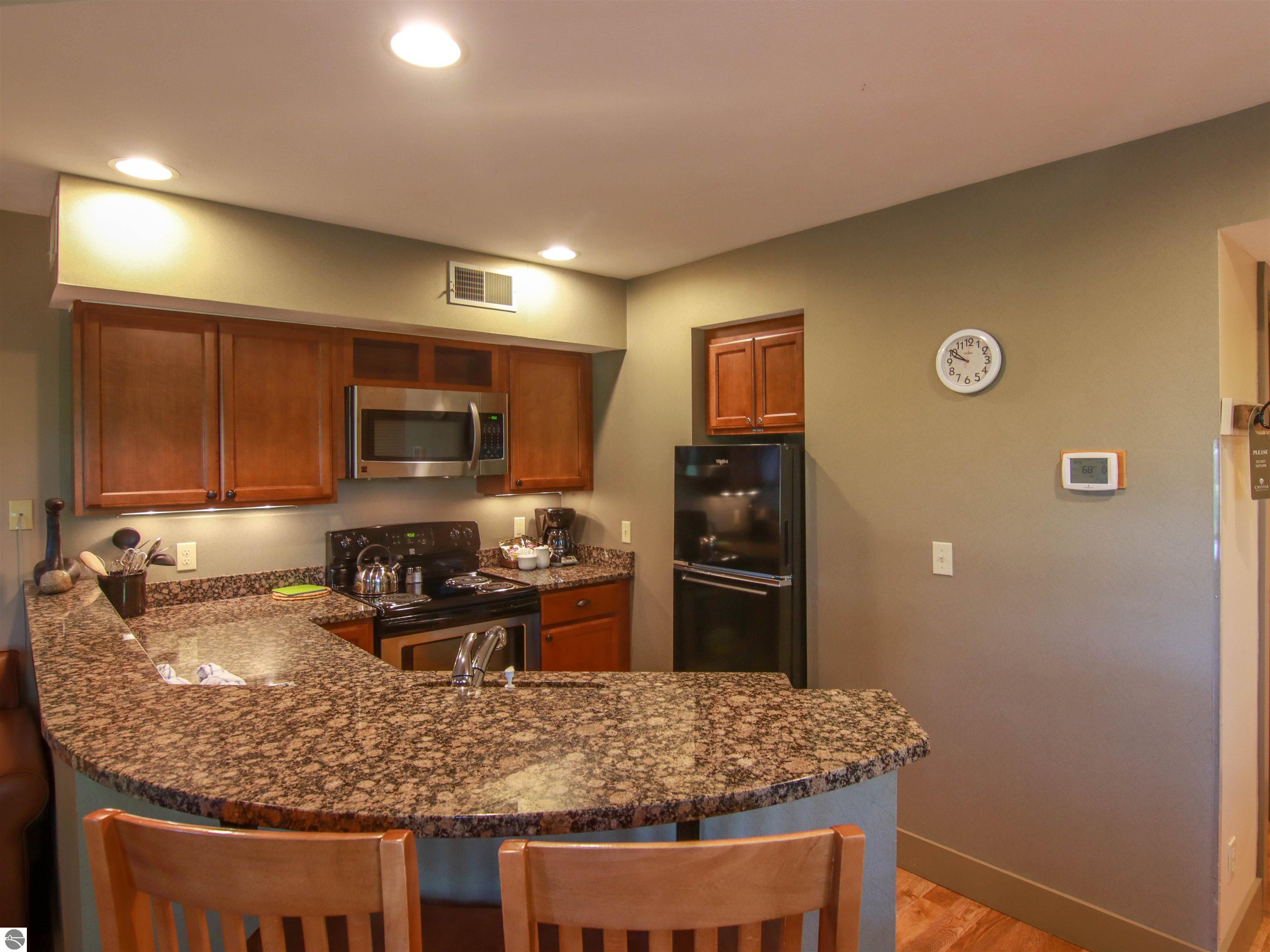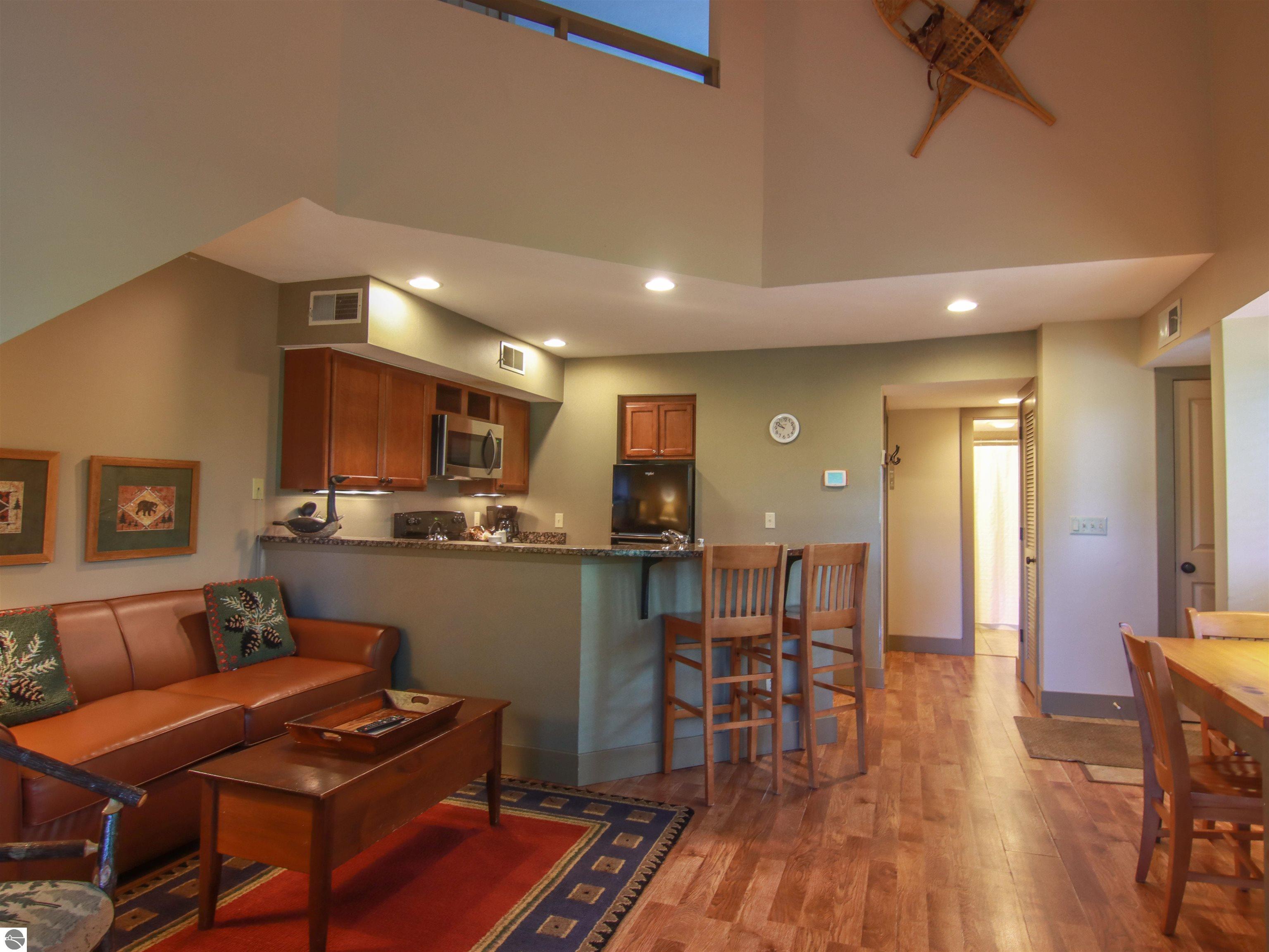 This ultra-convenient 2-bedroom, 2-bath, whole-ownership, condominium is your headquarters for year-round fun at Crystal Mountain. You can't beat the location - overlooking the Betsie Valley #1 tee, adjacent to the Park at Water’s Edge complex with its pool & water playground, and is but a few steps from the slopes, golf pro shop and dining at Kinlochen’s Thistle Pub & Grille. The dura-log fireplace in the living room welcomes you home after a busy day in the outdoors, and there's a private deck - perfect for after-golf relaxation on a warm summer's eve. The residence is currently under renovation with interior upgrades including new flooring throughout, wall paint and bathrooms. Occupancy expected by January 2026. Already on Crystal’s rental management program, this is a popular location year-round. Professional rental management program available. Crystal Mountain FOUR SEASONS CLUB membership options available.