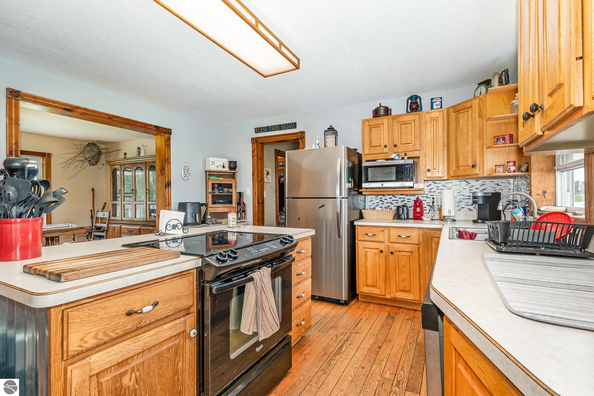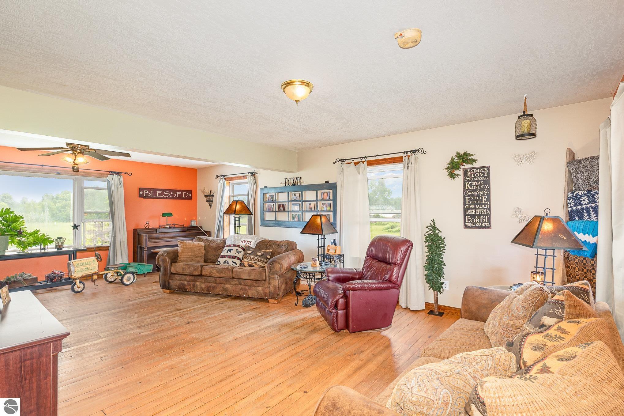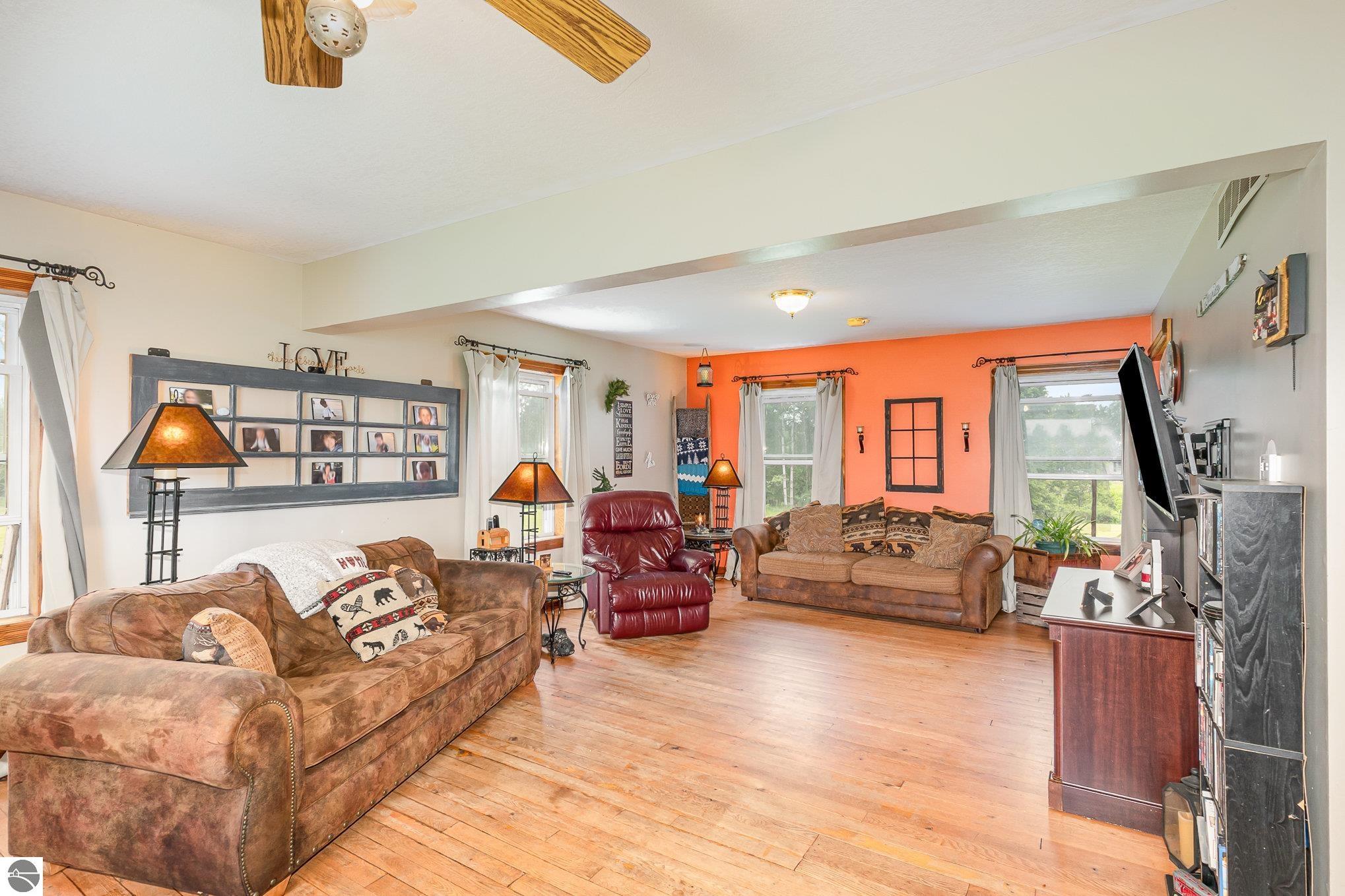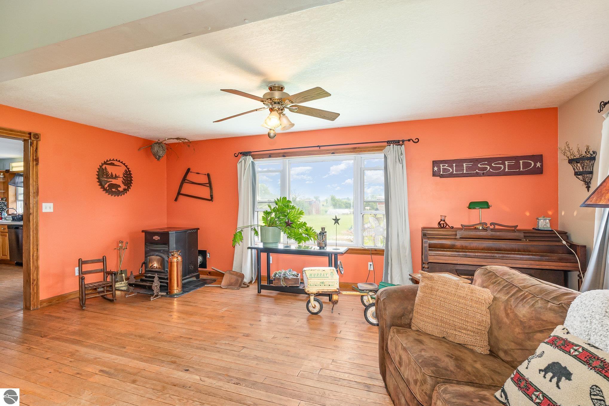 Welcome to your serene slice of the Countryside! This expansive four bedroom, 2.5 bath home sits on a picturesque 10 acre parcel just minutes from schools, hospital, and the famed AuGres River famous for its steelhead spawning grounds. Step inside to discover warm oak hardwood floors and a cozy pellet stove that adds charm and efficient heat. The large primary bedroom (24x20) with walk in closet and private full bath offers a peaceful retreat and ample space for relaxing and unwinding. The semi-finished walkout basement expands your living space with a large open area, two additional rooms perfect for an office, hobby space, or guest rooms, and a roughed-in area ready for a future bathroom. Outside, enjoy the natural beauty of your rolling surroundings with mature apple trees, small brook, and a secure enclosed electric fence ideal for horses. Whether you're looking for space to roam, hobby farm potential, or simply room to breathe, this property delivers it all. Don't miss your opportunity to own this versatile and inviting home in a desirable rural setting!