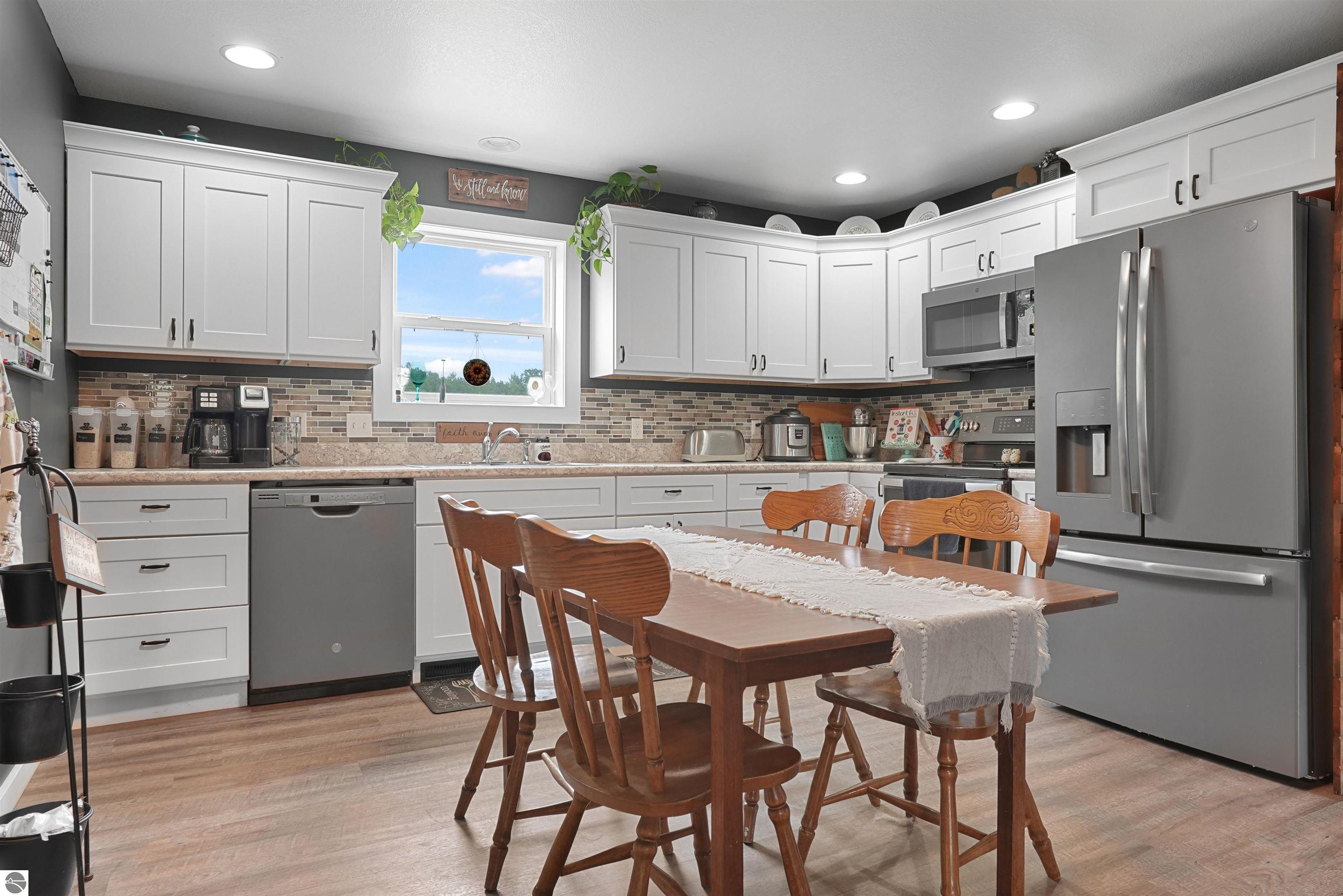Step into modern living with this newly built 2021 home that emits contemporary style. Boasting 3 bedrooms and 2.5 baths, the open floor plan fills the space with abundant natural light, ideal for entertaining and relaxed days at home. The finished basement expands the home's versatility, offering flexible space that can be tailored to your lifestyle whether as a private retreat, home office, or additional entertainment area. Enjoy the convenience of a 2-car garage and a welcoming covered front porch, a perfect spot for a morning coffee. A standout feature is the unique pots and pans wall a creative twist that adds personality and culinary inspiration. Located just a short drive from Lake Cadillac, Lake Mitchell, and downtown Cadillac, this home meshes modern style with accessibility to local attractions.