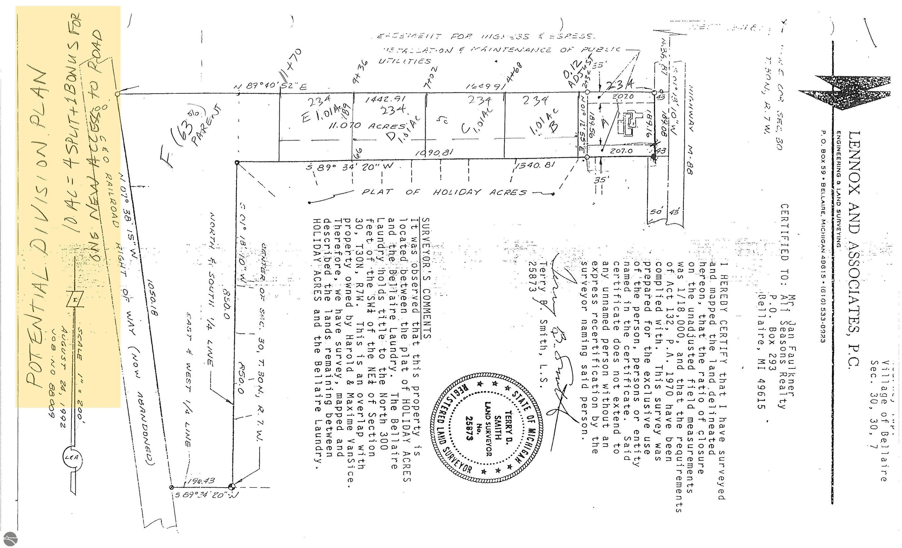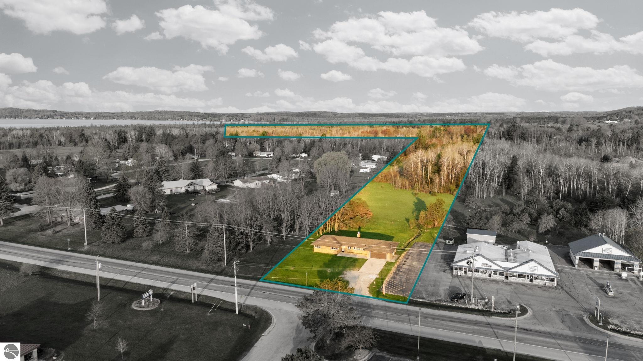 This three bedroom/two bath home sits on 12 undeveloped acres inside the Village of Bellaire, zoned RESIDENTIAL-IMPROVED, which opens the door for many possibilities! The home itself can be used for full-time residence or for short- or long-term rental income. New concrete floor in the garage and back patio. What about a business that utilizes the home for employee housing? Or, a day care facility that can utilize the many acres for playing? How about a store for hot tubs? A mini-golf park? Or, storage units, restaurant, driving range, gym, or retail outlets? What does Bellaire need? How about splitting the 12-acres into an additional five parcels to build homes? Or, dividing the property so multiple small homes can be constructed utilizing the front home as an office during construction? This property extends from M-88 back to the walking path (abandoned railroad) that wraps behind Holiday Acres, heads to the baseball fields, and flows through the town of Bellaire in the other direction.