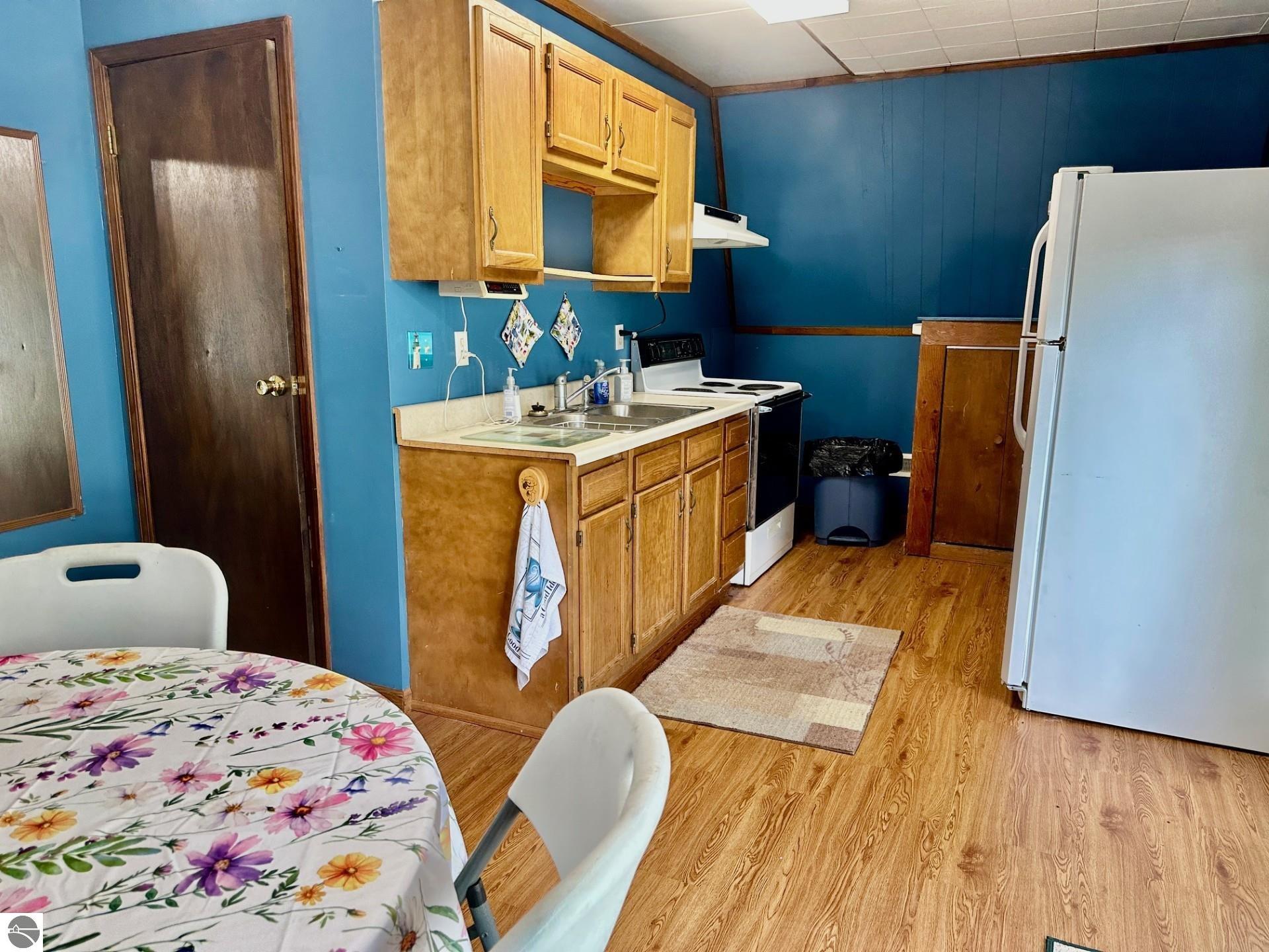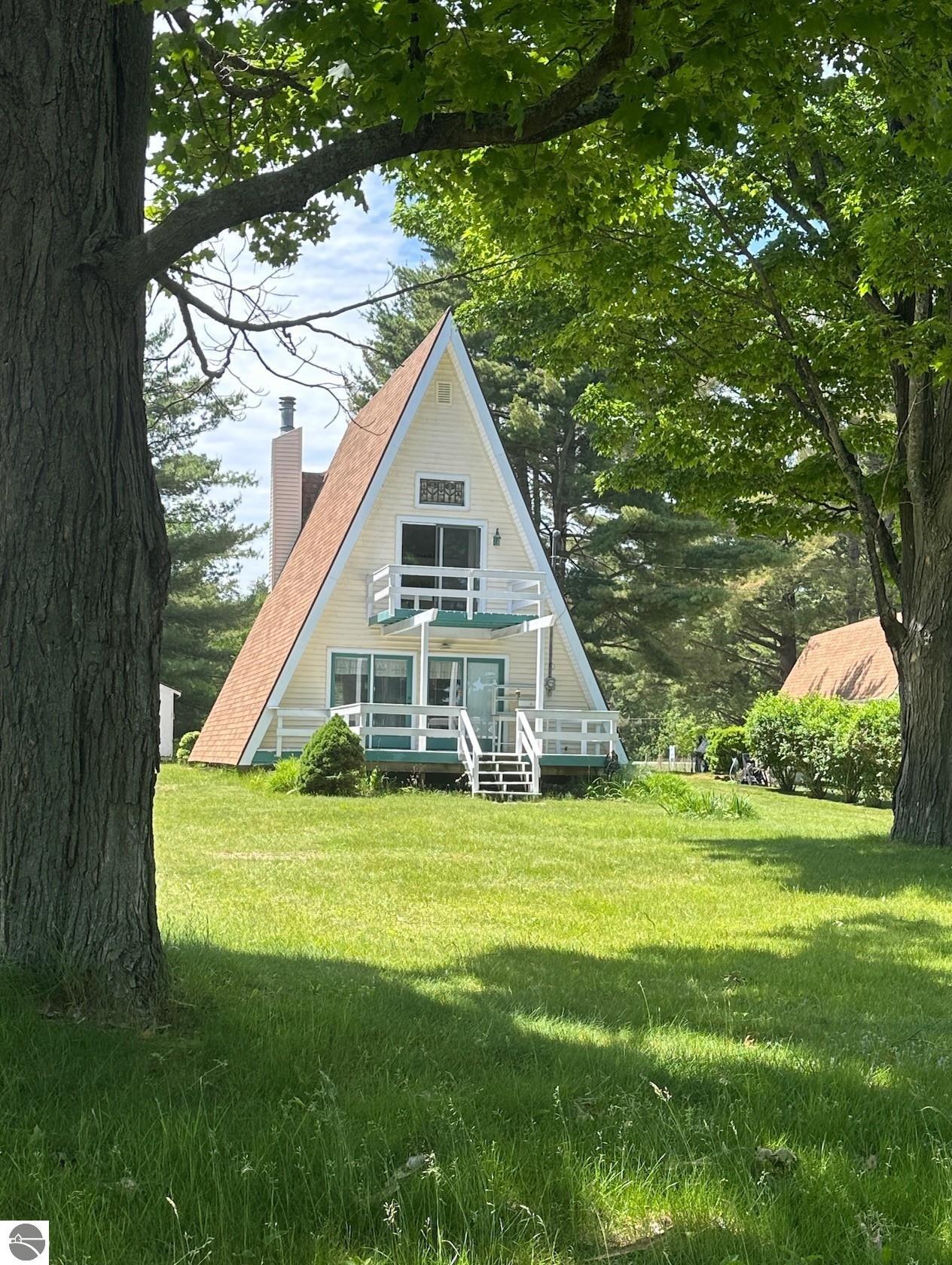 Are you looking for space? This lot has plenty! At roughly 56' x 505', and neighbors with equally deep lots, there is room to expand with a garage or pole barn, if desired. At over 1215 sq.ft., this cute A-frame has two large sleeping areas, one bathroom and a large 22'x15' living room with a tall open ceiling featuring a cozy wood burning fireplace. This large room is open to the dining area that looks out to the lake. Move out one of the two door walls onto the 12'x16' deck to enjoy the lake view and for grilling and picnicking. Moving upstairs, the lower of the two sleeping areas provides an ample 14'x10' space with another door wall opening onto a 10'x8' second level deck. Move up just 5 or 6 steps to another 16'x15' sleeping area with room for several beds. Lots of sleeping room for children and/or grandchildren!!! Memories!!!
