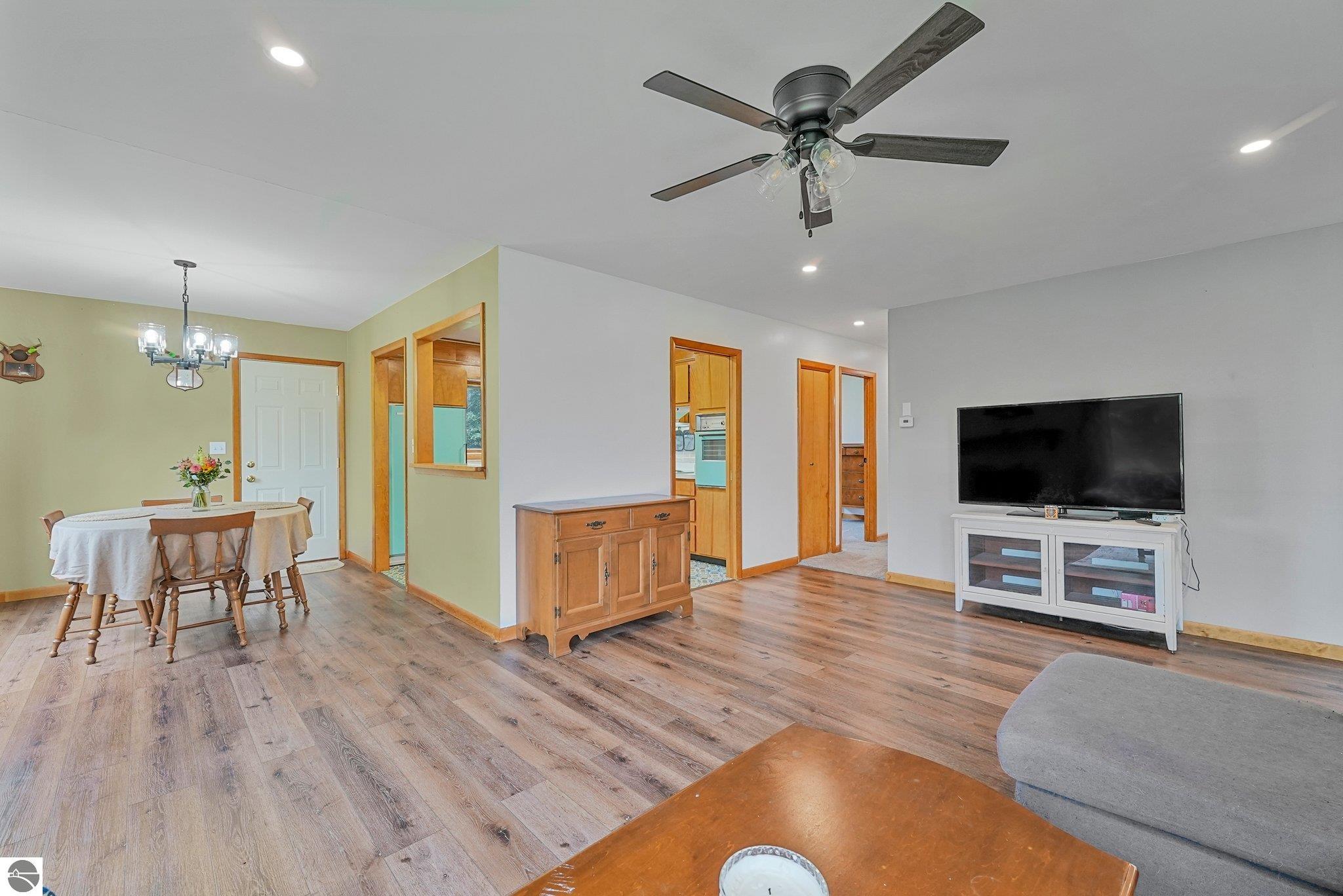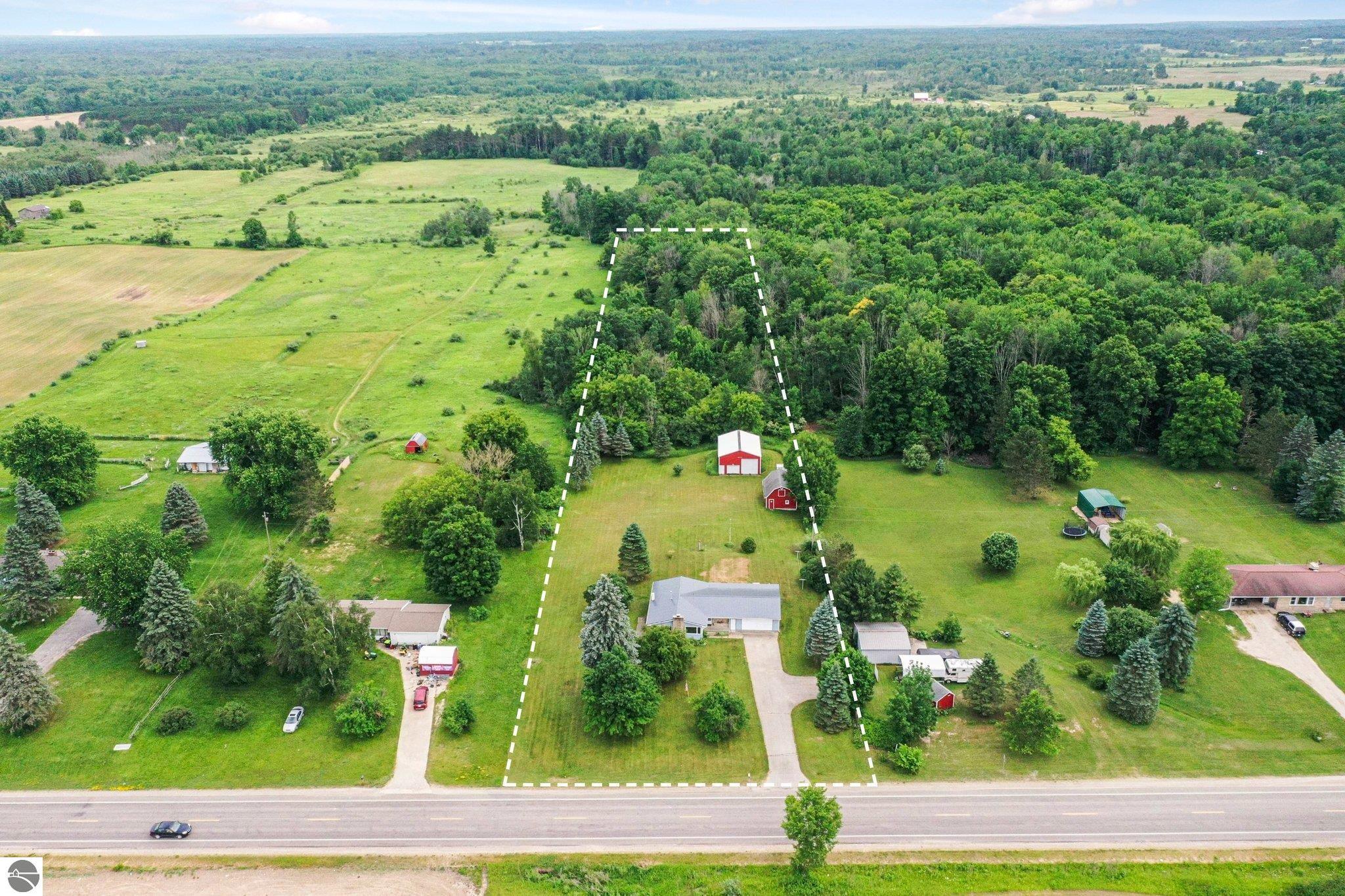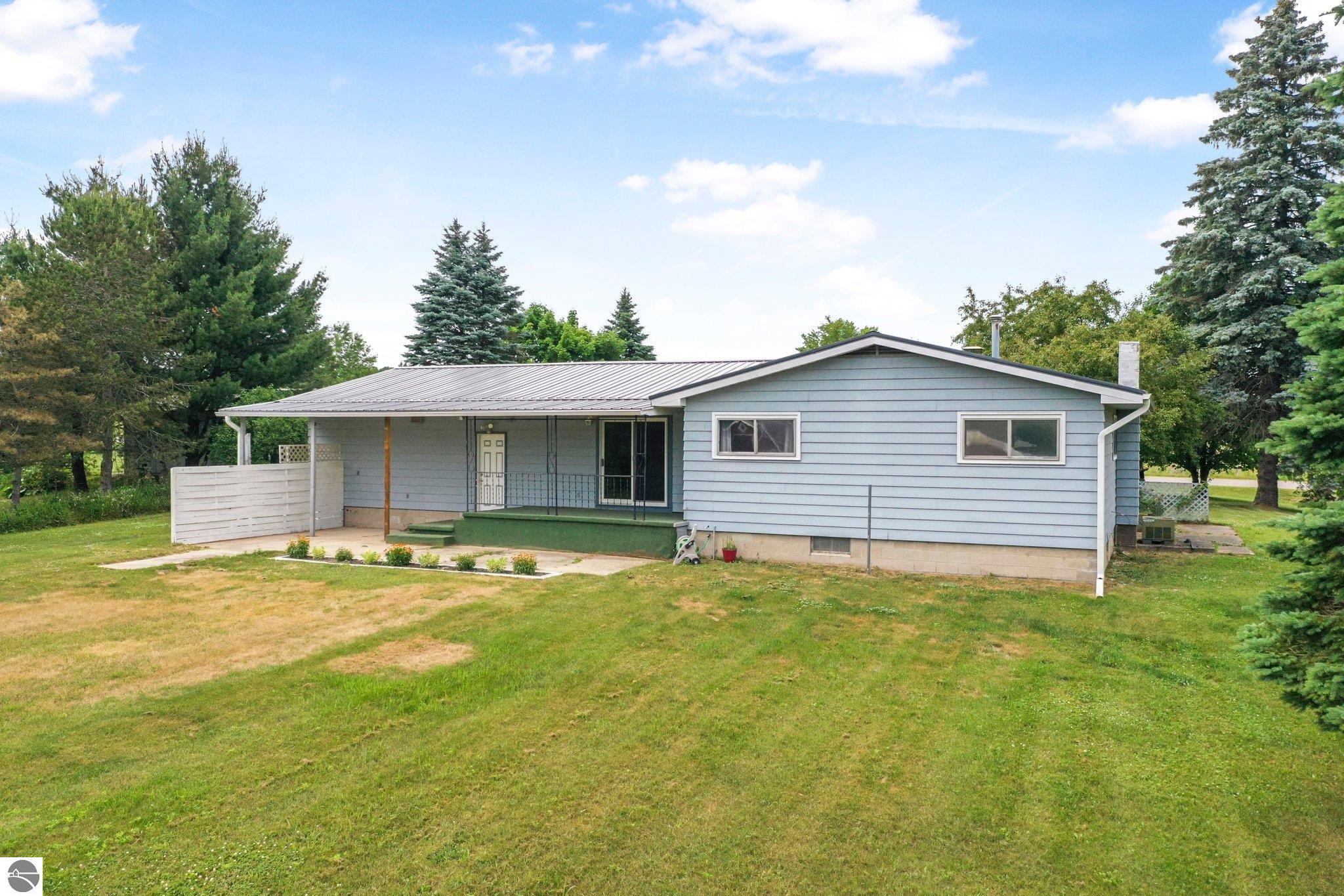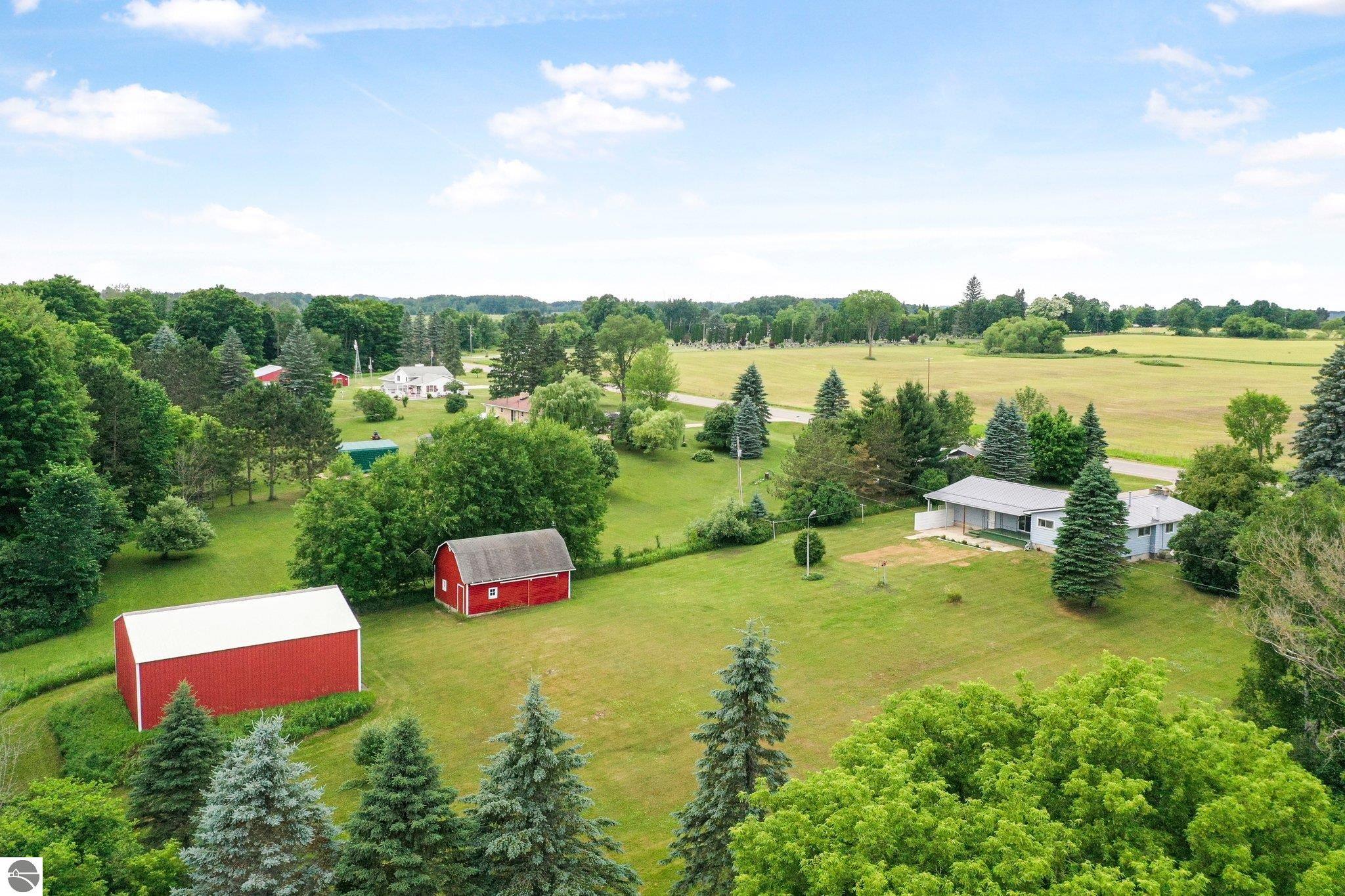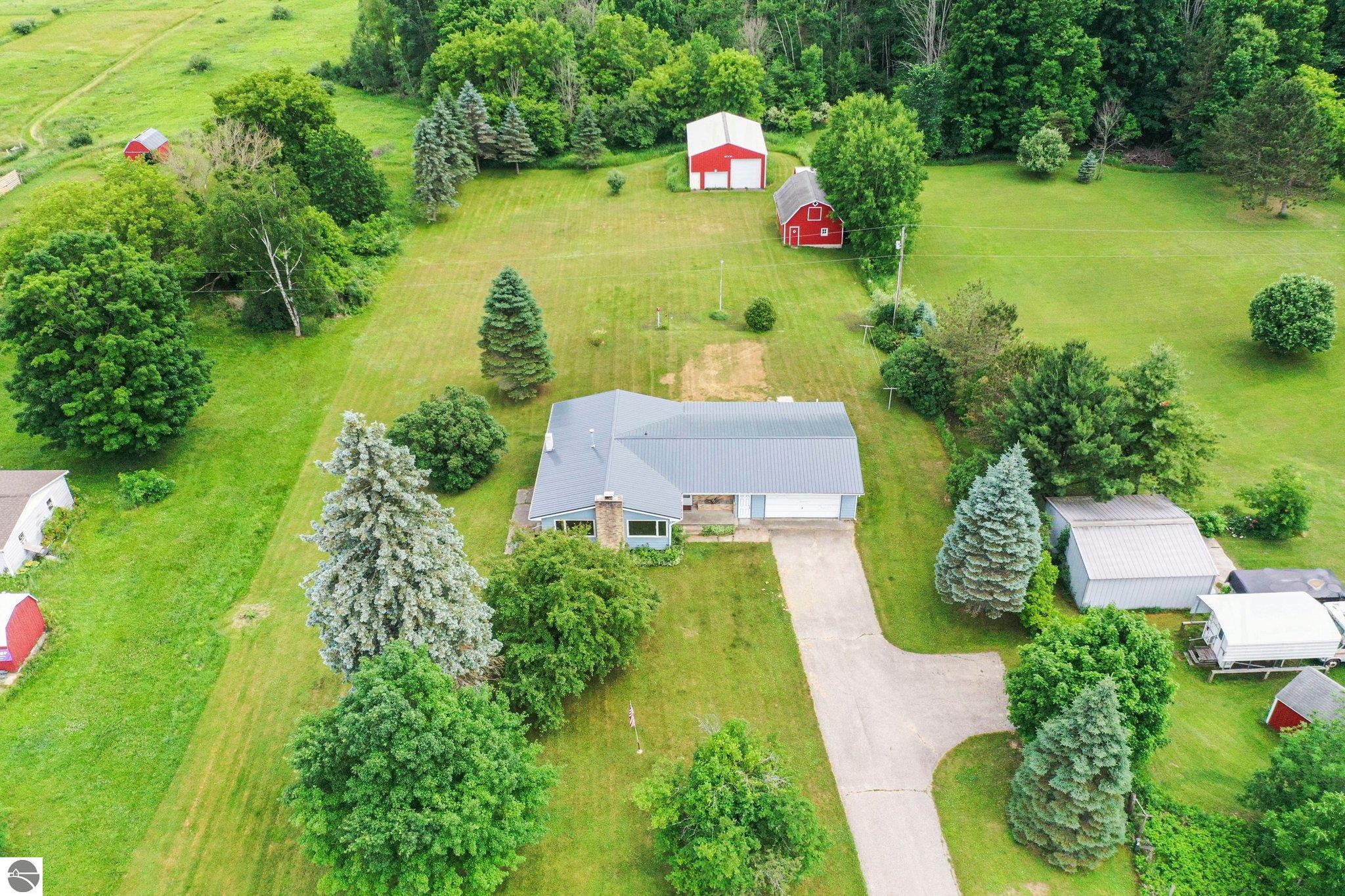 Charming Ranch on 5 Acres – The Best of Country Living with Town Convenience! This beautifully maintained 3-bedroom, 2-bath ranch sits on 5 serene acres and offers the perfect blend of peaceful country living with the convenience of being just minutes from town. Whether you're looking for space to spread out, room to entertain, or just a quiet place to call home—this property checks all the boxes. Step inside to find a warm and inviting layout with a comfortable mix of retro charm and modern updates. The main floor features newer flooring, fresh paint in most rooms and updated lighting throughout (new electric panel too), giving the home a fresh, move-in-ready feel. The finished basement includes a kitchenette—ideal for hosting guests, creating a recreational space! AND A NEW METAL ROOF was installed in June 2024! Outside, the amenities continue with a large pole barn perfect for projects, hobbies, or extra storage, a secondary storage barn complete with hay loft, and an attached garage for everyday convenience. Unwind on the covered back porch and enjoy peaceful evenings surrounded by nature, or take advantage of your own little wooded hunting spot nestled on the property. Located on a county-maintained paved road, this home offers the serenity of country life with the convenience of being just minutes from local grocery stores, restaurants, and small-town charm. This is the rare, well-rounded property you’ve been waiting for in an affordable price range!