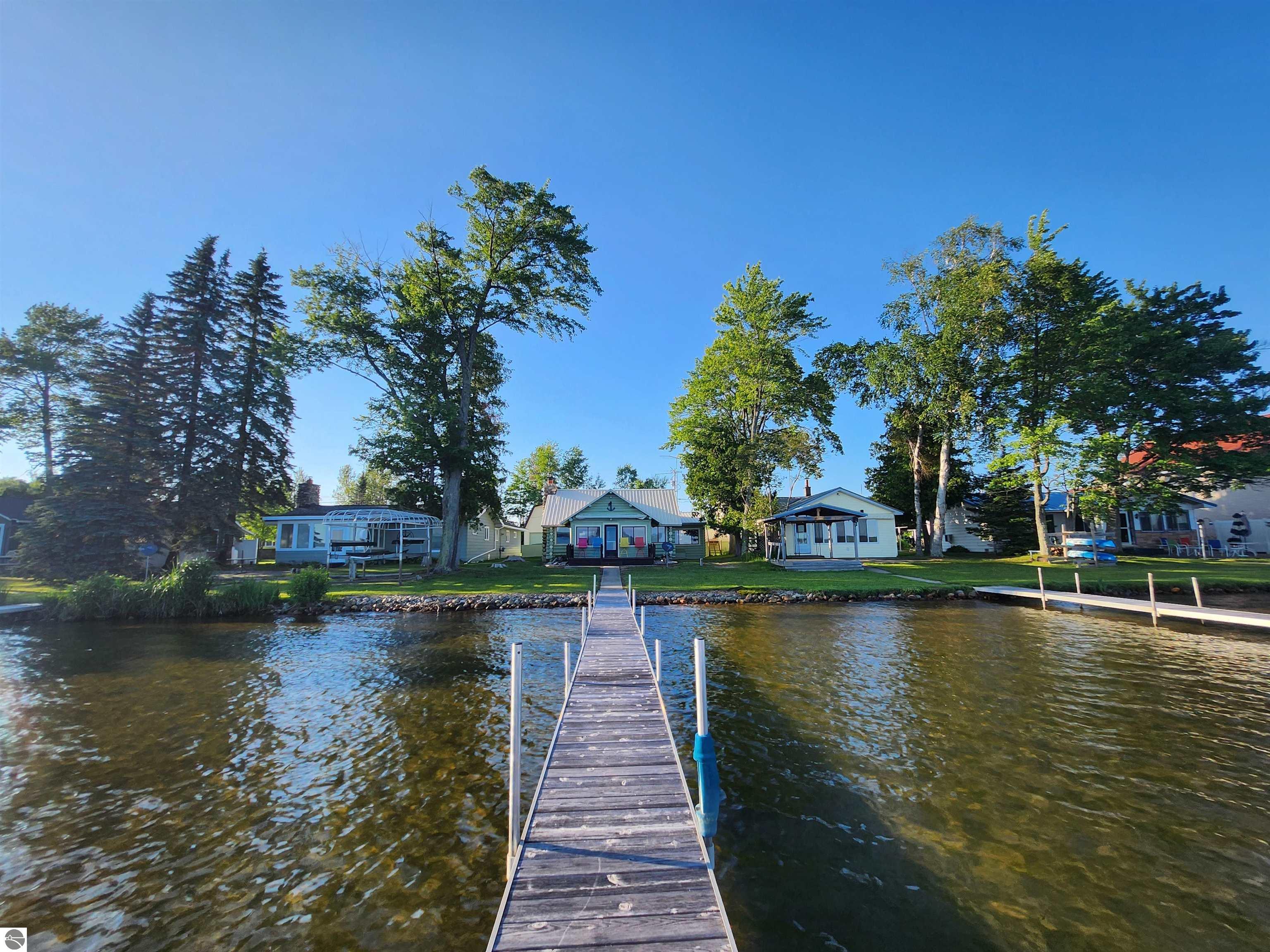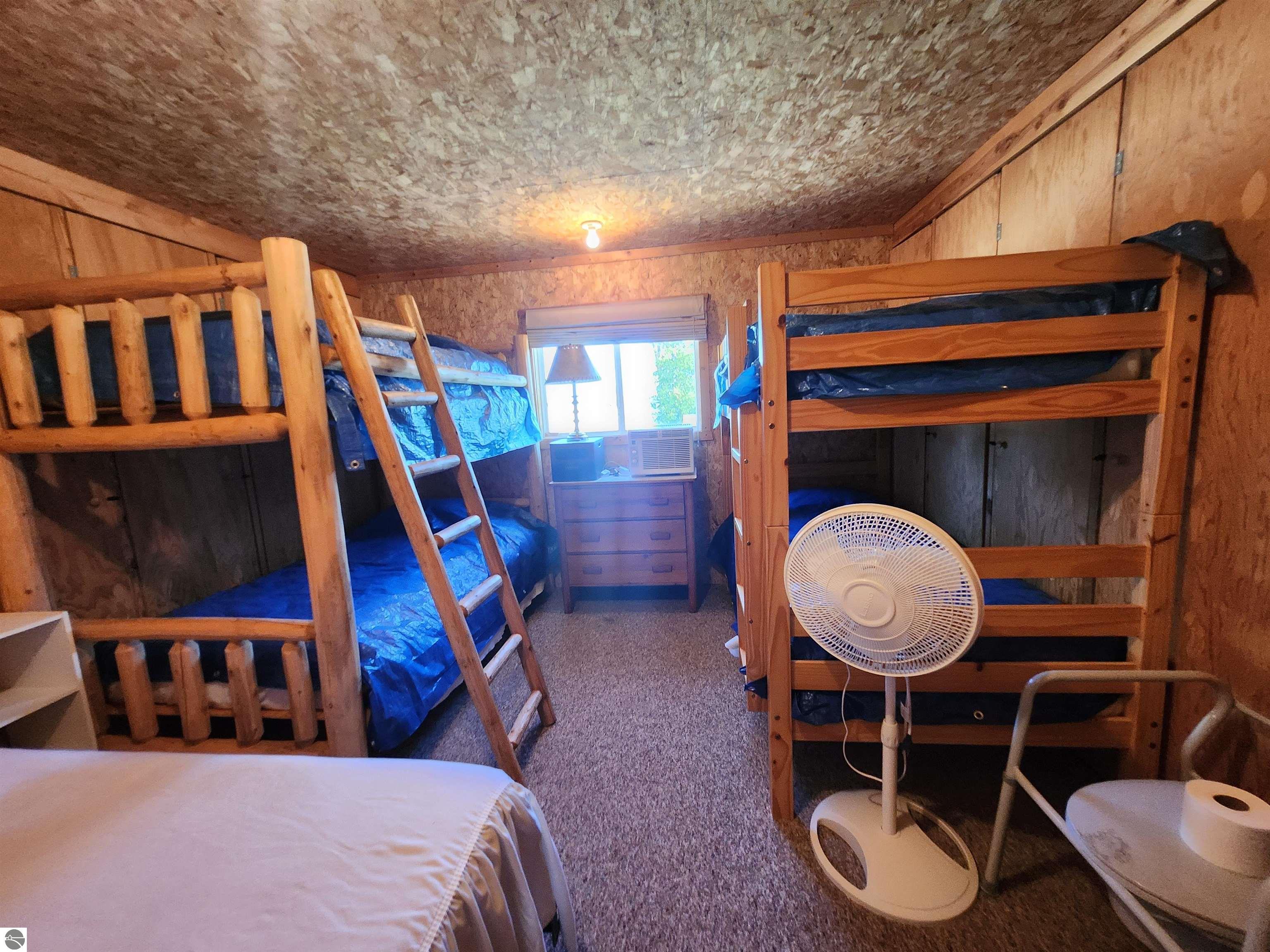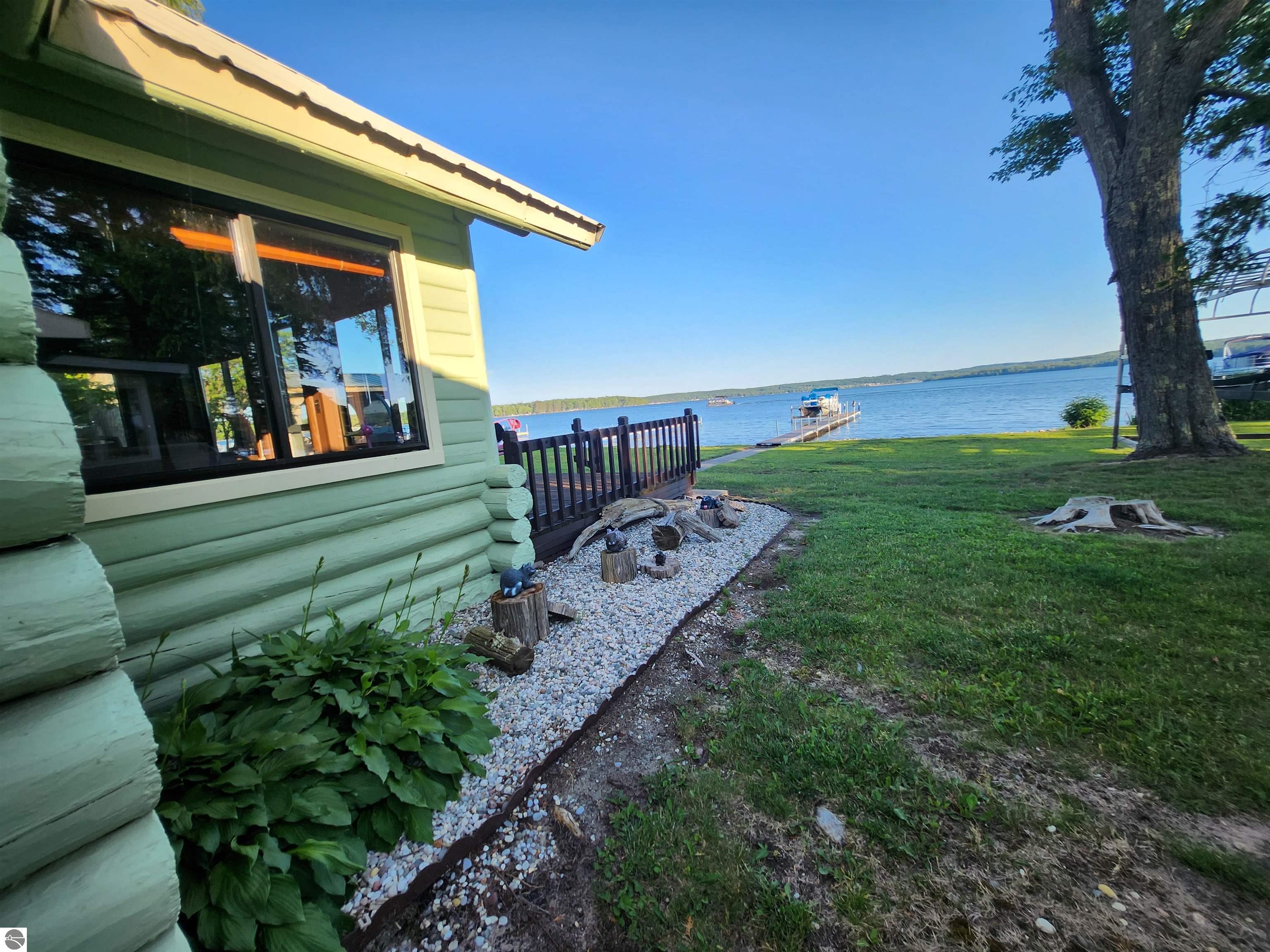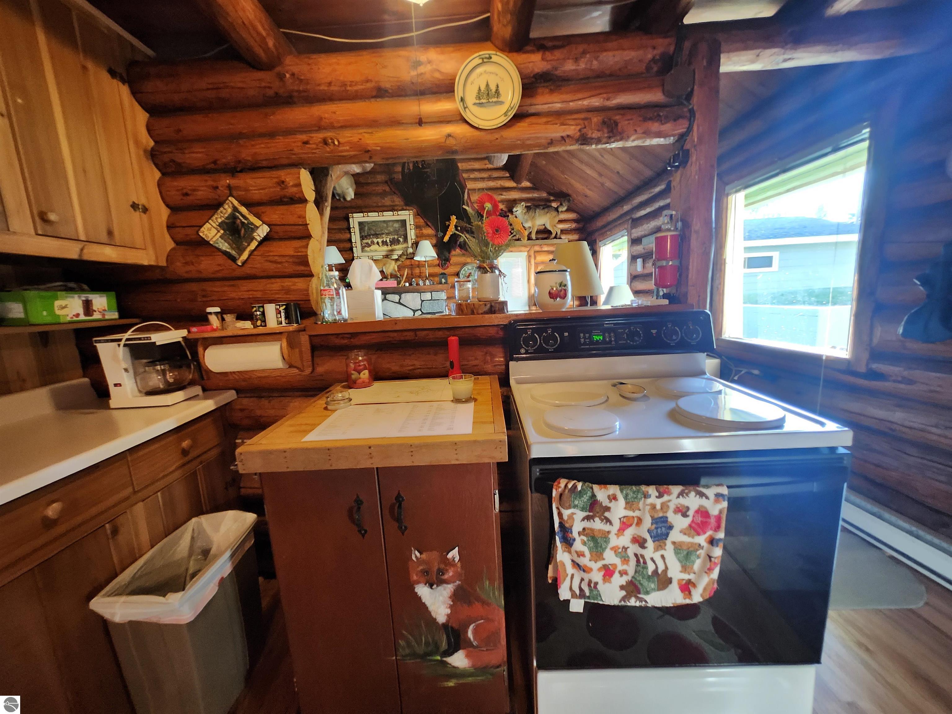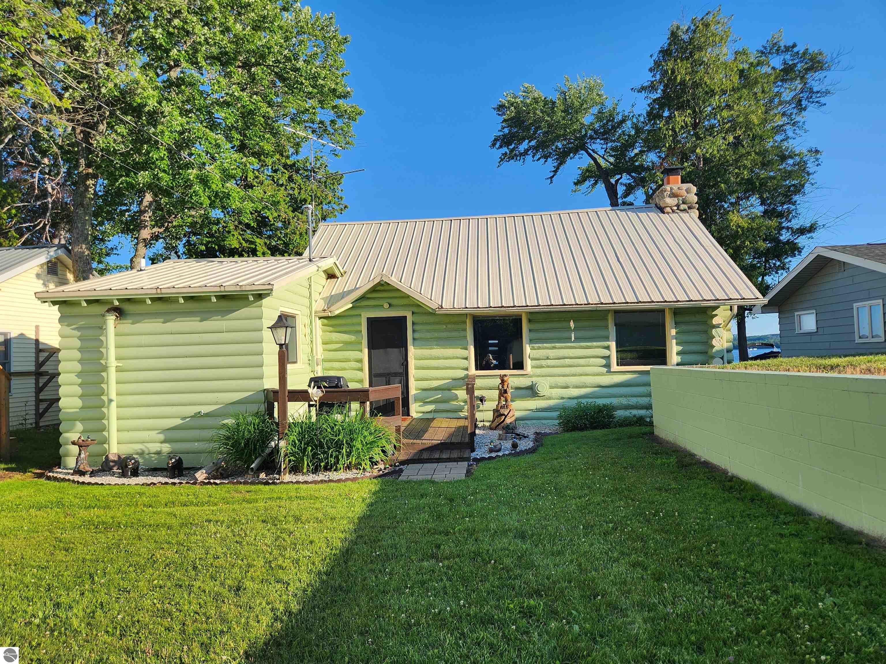 50' ON LAKE MARGRETHE (1900 ACRES) ALL SPORTS LAKE. Beautiful views of Lake Margrethe and sandy bottom shoreline. Great for young children to wade in the water. Charming full log 2 bedroom, 1 bath with vaulted log beamed ceilings. L Log staircase to 2nd loft bedroom. Wood floors and carpet in bedrooms. Beautiful floor to ceiling natural stone natural wood burning fireplace, Updated kitchen and bath. Seperate dining room. All appliances included. Stackable washer and dryer in bath. Porch/Sunroom 8 X 13 with carpet. Includes 7 sections of dock and 1998 Eagle 14'Pontoon Boat. Comes completley furnished with furniture, bedding, kitchenware, towels, etc. John Rittenhouse furniture throughout. Artesian well. Heat is 2 propane space heaters, electric baseboard and airtight insert in the fireplace. Lake side deck has awning the whole length of the deck with electric remote or hand crank. Log cottage can sleep 8 20 X 20 Insulated garage with upstairs that can sleep 5 with 2 bunk beds and a single bed. 12 X 16 Shop in Garage main level. Large shed. 4 Parking spaces by garage. Lot size is 50X 105 plus 2nd lot across the street with garage. Move in Ready Immediate Occupancy. Paved street and close to town. 5 Miles to Grayling (I-75 exit 254) just off M 72 West.