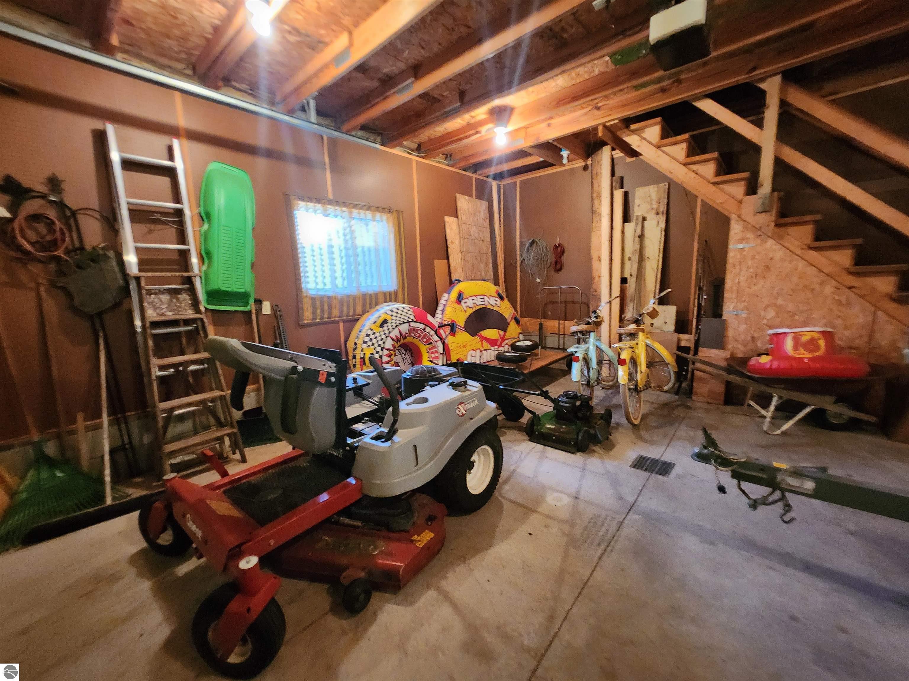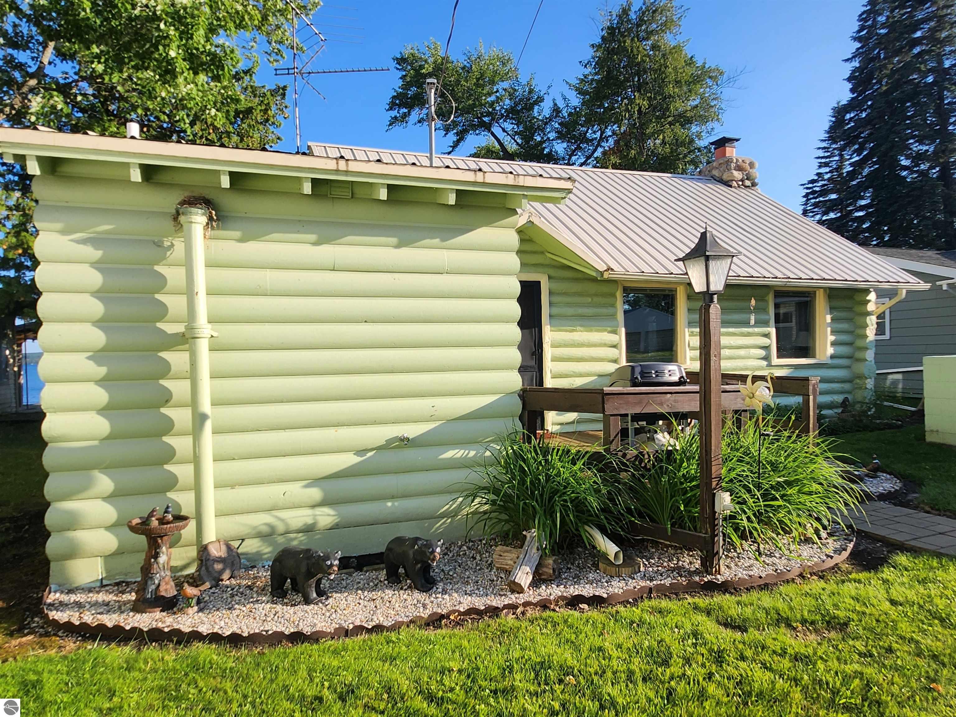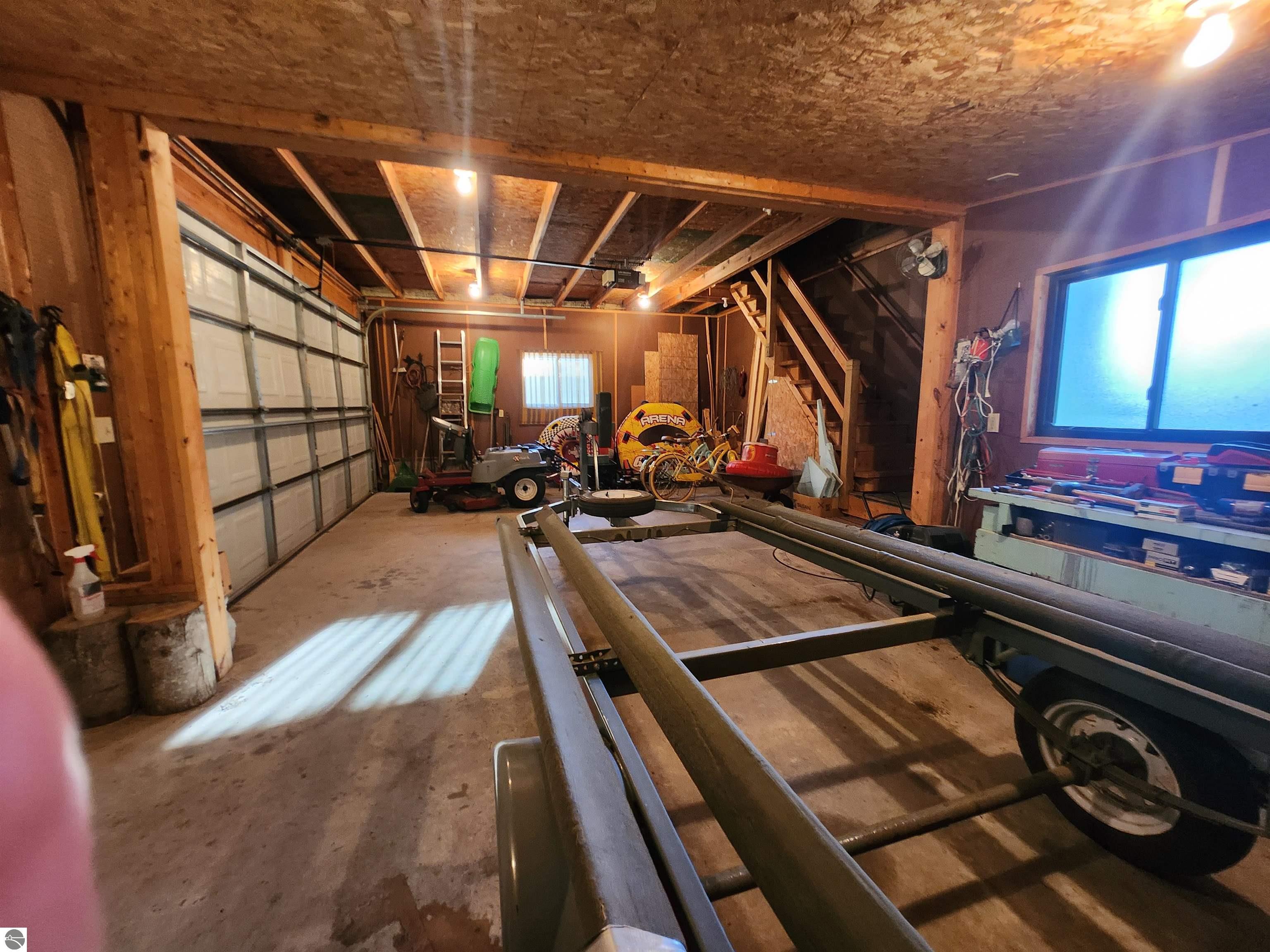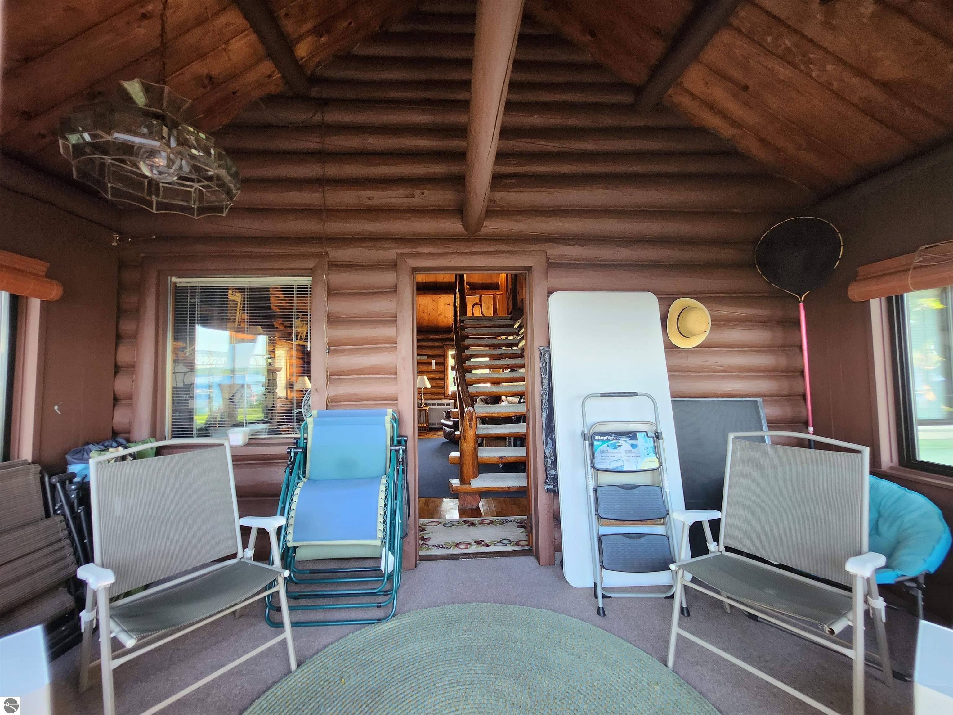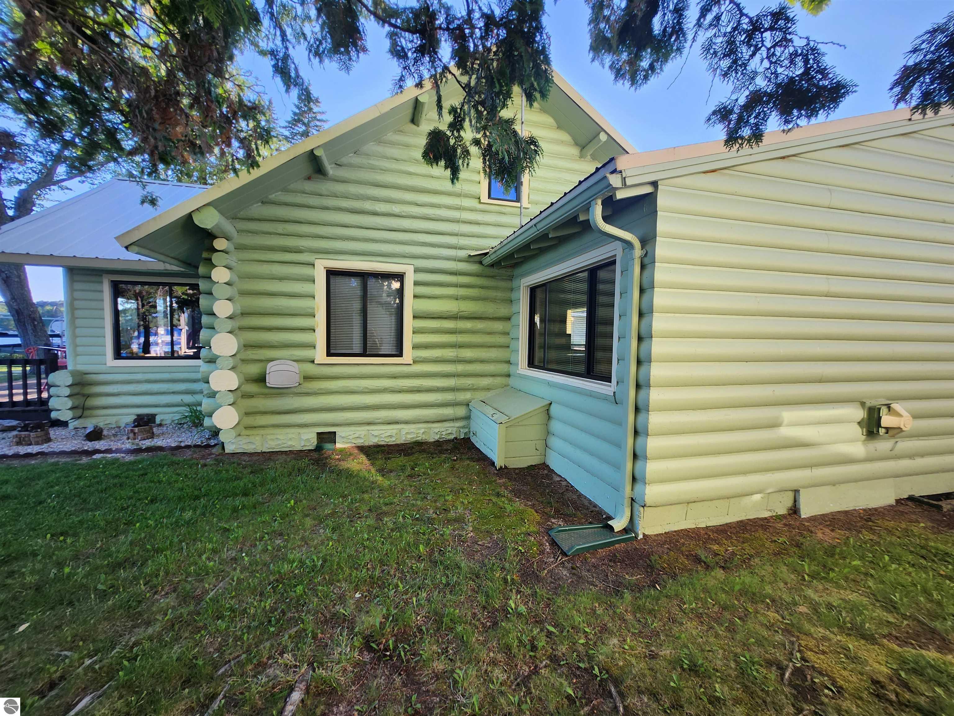 50' ON LAKE MARGRETHE (1900 ACRES) ALL SPORTS LAKE. Beautiful views of Lake Margrethe and sandy bottom shoreline. Great for young children to wade in the water. Charming full log 2 bedroom, 1 bath with vaulted log beamed ceilings. L Log staircase to 2nd loft bedroom. Wood floors and carpet in bedrooms. Beautiful floor to ceiling natural stone natural wood burning fireplace, Updated kitchen and bath. Seperate dining room. All appliances included. Stackable washer and dryer in bath. Porch/Sunroom 8 X 13 with carpet. Includes 7 sections of dock and 1998 Eagle 14'Pontoon Boat. Comes completley furnished with furniture, bedding, kitchenware, towels, etc. John Rittenhouse furniture throughout. Artesian well. Heat is 2 propane space heaters, electric baseboard and airtight insert in the fireplace. Lake side deck has awning the whole length of the deck with electric remote or hand crank. Log cottage can sleep 8 20 X 20 Insulated garage with upstairs that can sleep 5 with 2 bunk beds and a single bed. 12 X 16 Shop in Garage main level. Large shed. 4 Parking spaces by garage. Lot size is 50X 105 plus 2nd lot across the street with garage. Move in Ready Immediate Occupancy. Paved street and close to town. 5 Miles to Grayling (I-75 exit 254) just off M 72 West.
