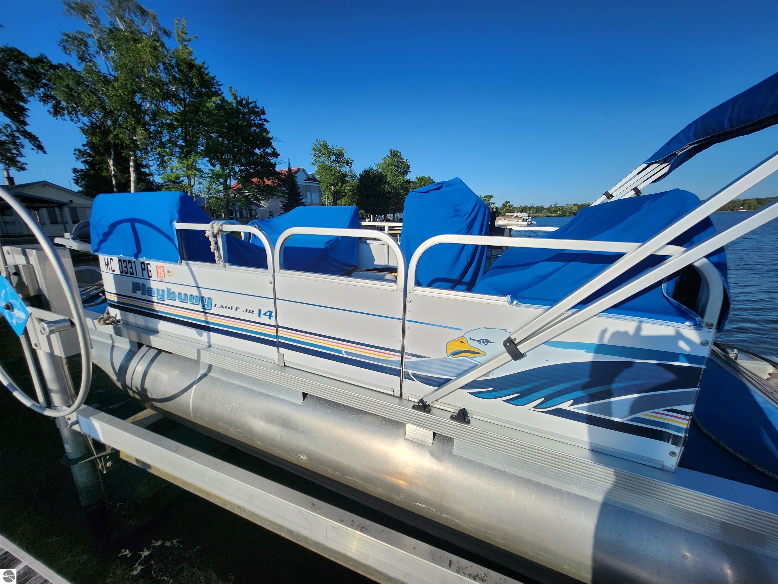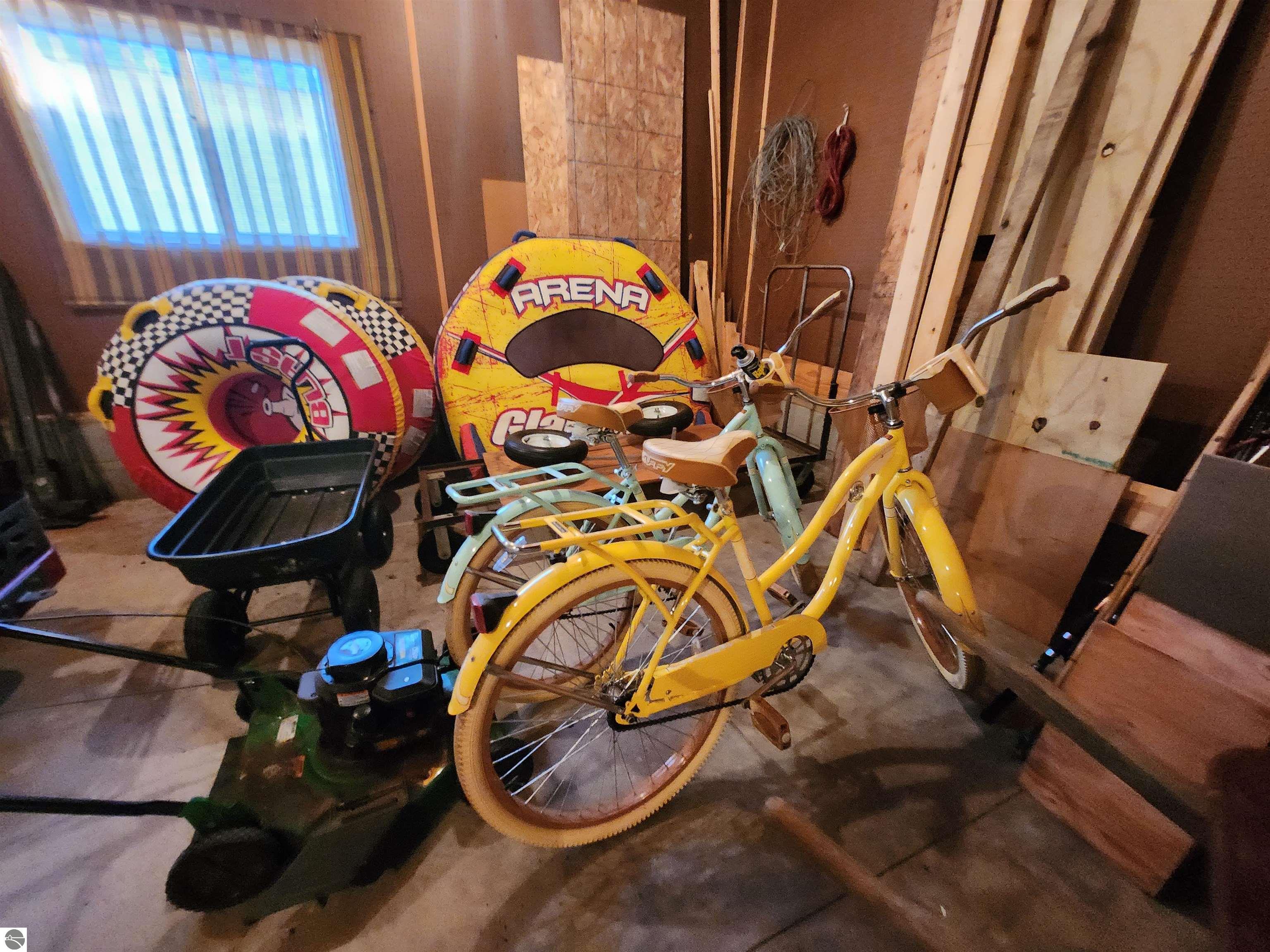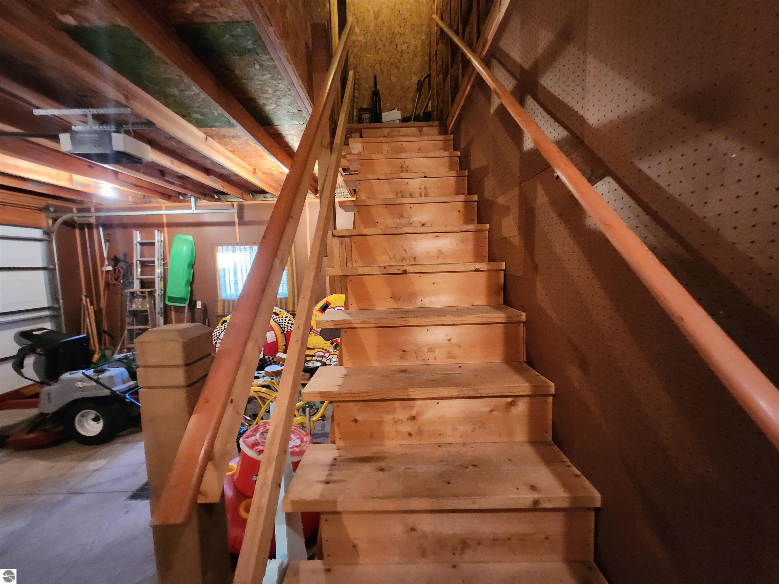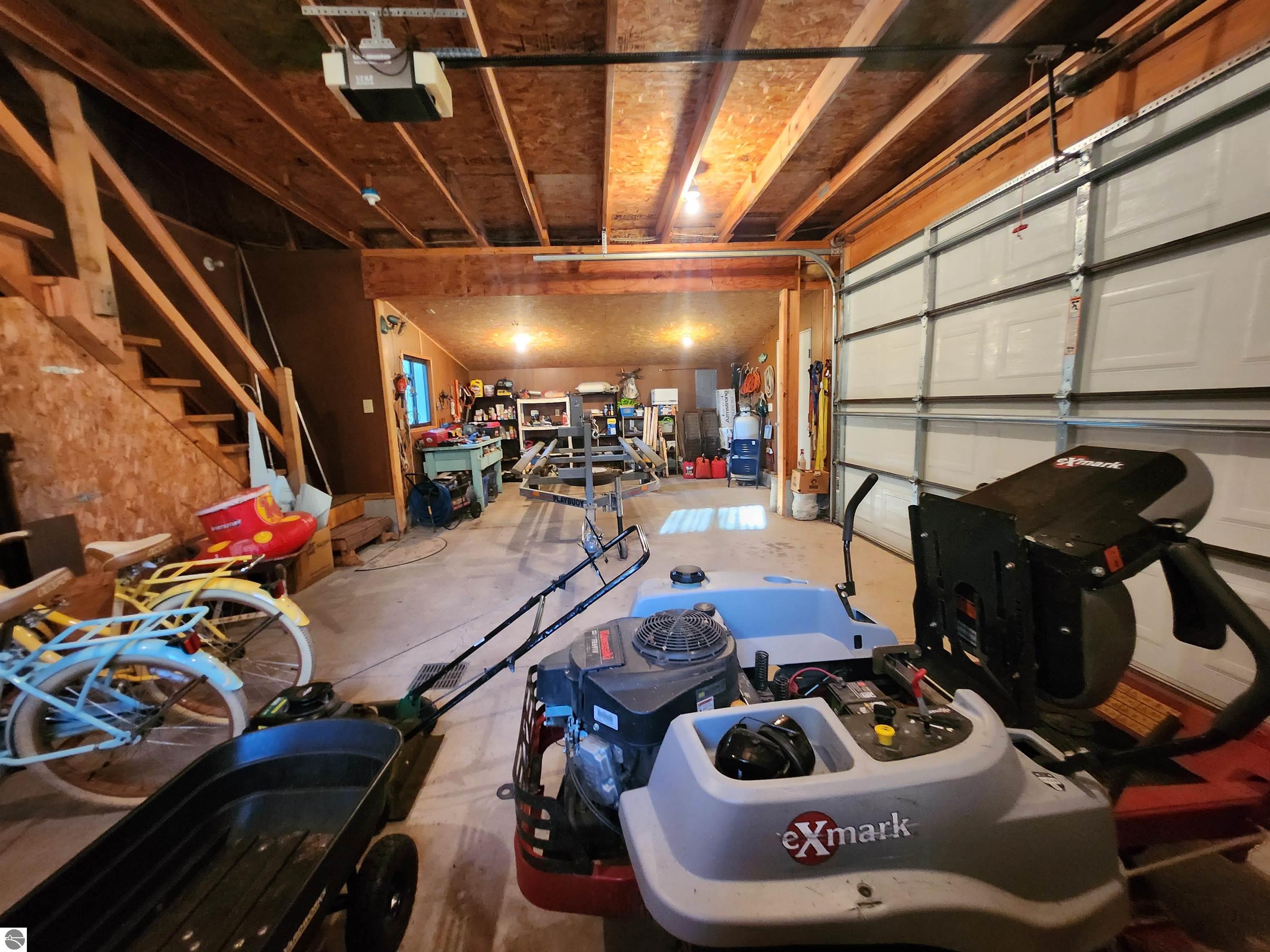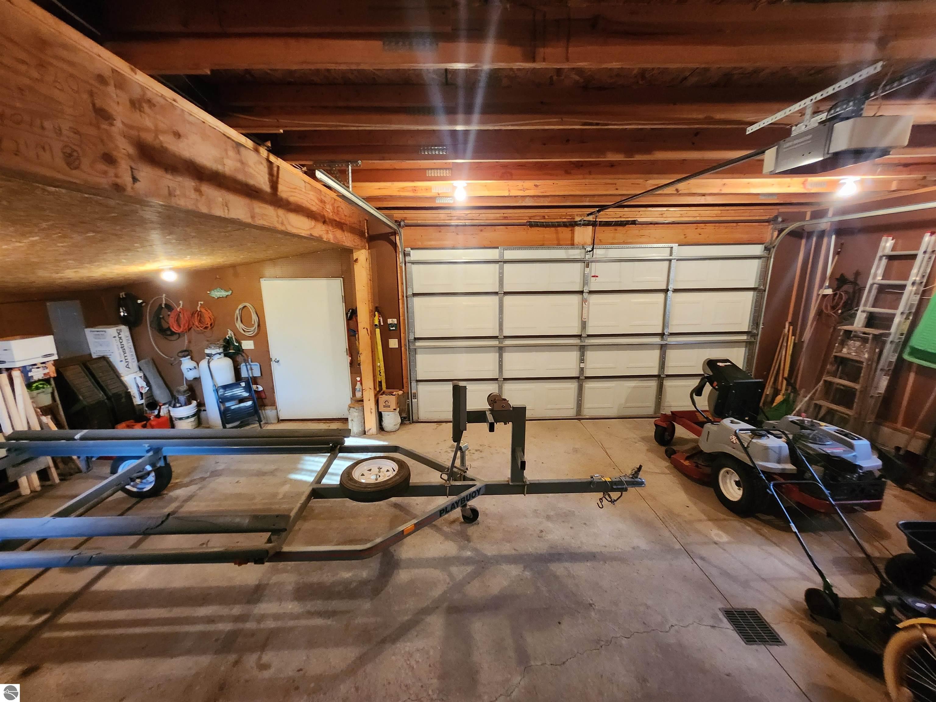 50' ON LAKE MARGRETHE (1900 ACRES) ALL SPORTS LAKE. Beautiful views of Lake Margrethe and sandy bottom shoreline. Great for young children to wade in the water. Charming full log 2 bedroom, 1 bath with vaulted log beamed ceilings. L Log staircase to 2nd loft bedroom. Wood floors and carpet in bedrooms. Beautiful floor to ceiling natural stone natural wood burning fireplace, Updated kitchen and bath. Seperate dining room. All appliances included. Stackable washer and dryer in bath. Porch/Sunroom 8 X 13 with carpet. Includes 7 sections of dock and 1998 Eagle 14'Pontoon Boat. Comes completley furnished with furniture, bedding, kitchenware, towels, etc. John Rittenhouse furniture throughout. Artesian well. Heat is 2 propane space heaters, electric baseboard and airtight insert in the fireplace. Lake side deck has awning the whole length of the deck with electric remote or hand crank. Log cottage can sleep 8 20 X 20 Insulated garage with upstairs that can sleep 5 with 2 bunk beds and a single bed. 12 X 16 Shop in Garage main level. Large shed. 4 Parking spaces by garage. Lot size is 50X 105 plus 2nd lot across the street with garage. Move in Ready Immediate Occupancy. Paved street and close to town. 5 Miles to Grayling (I-75 exit 254) just off M 72 West.