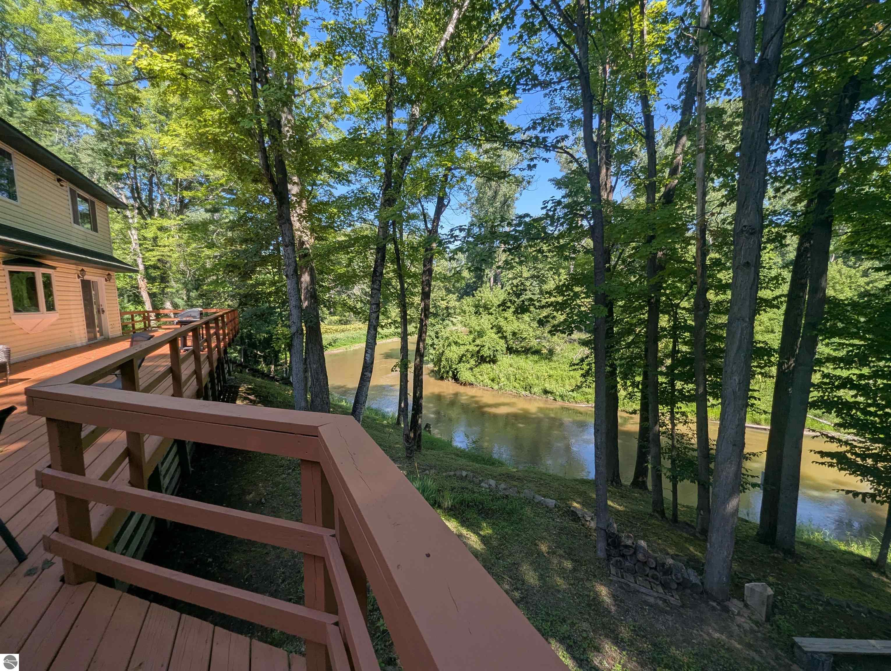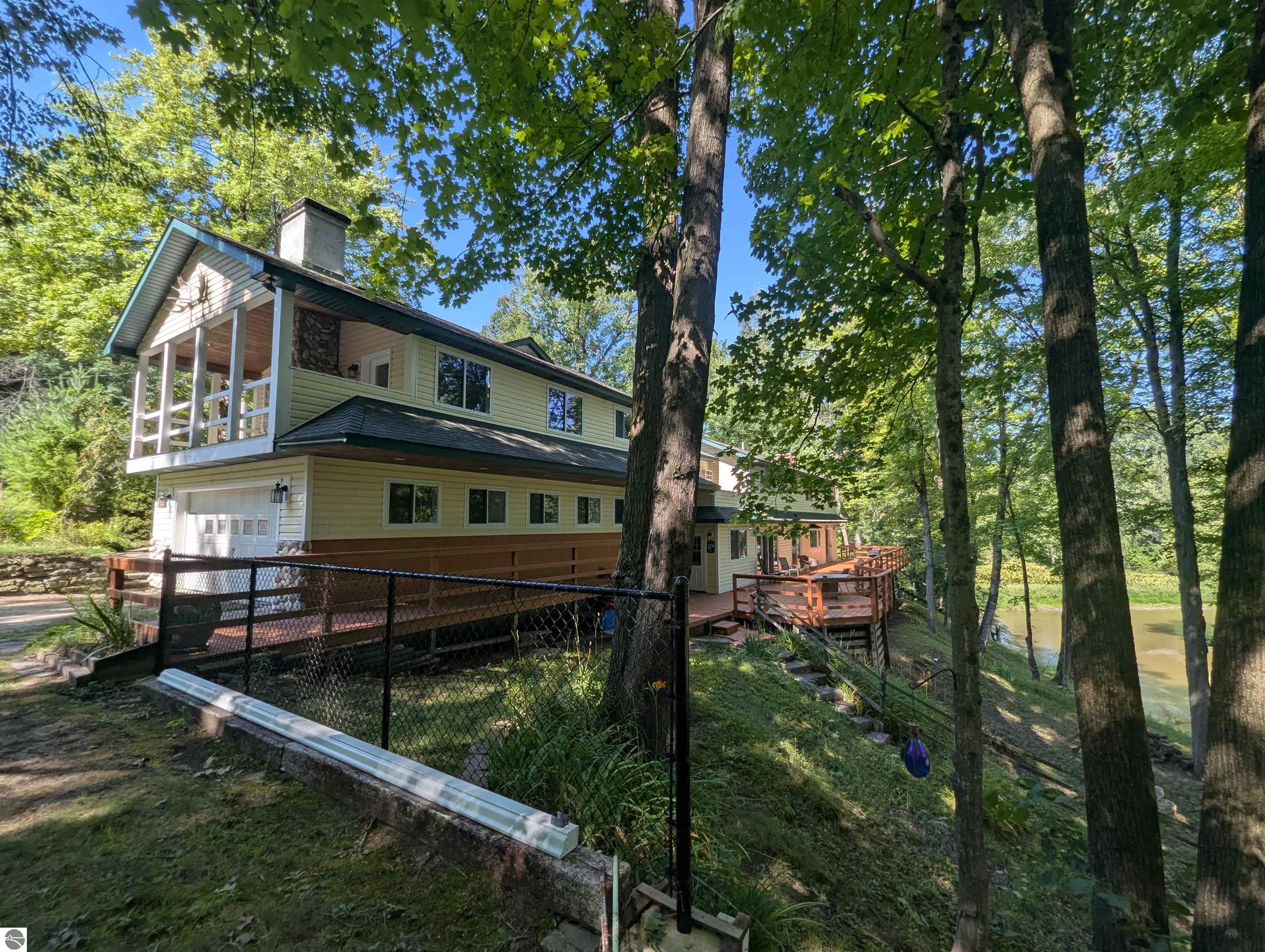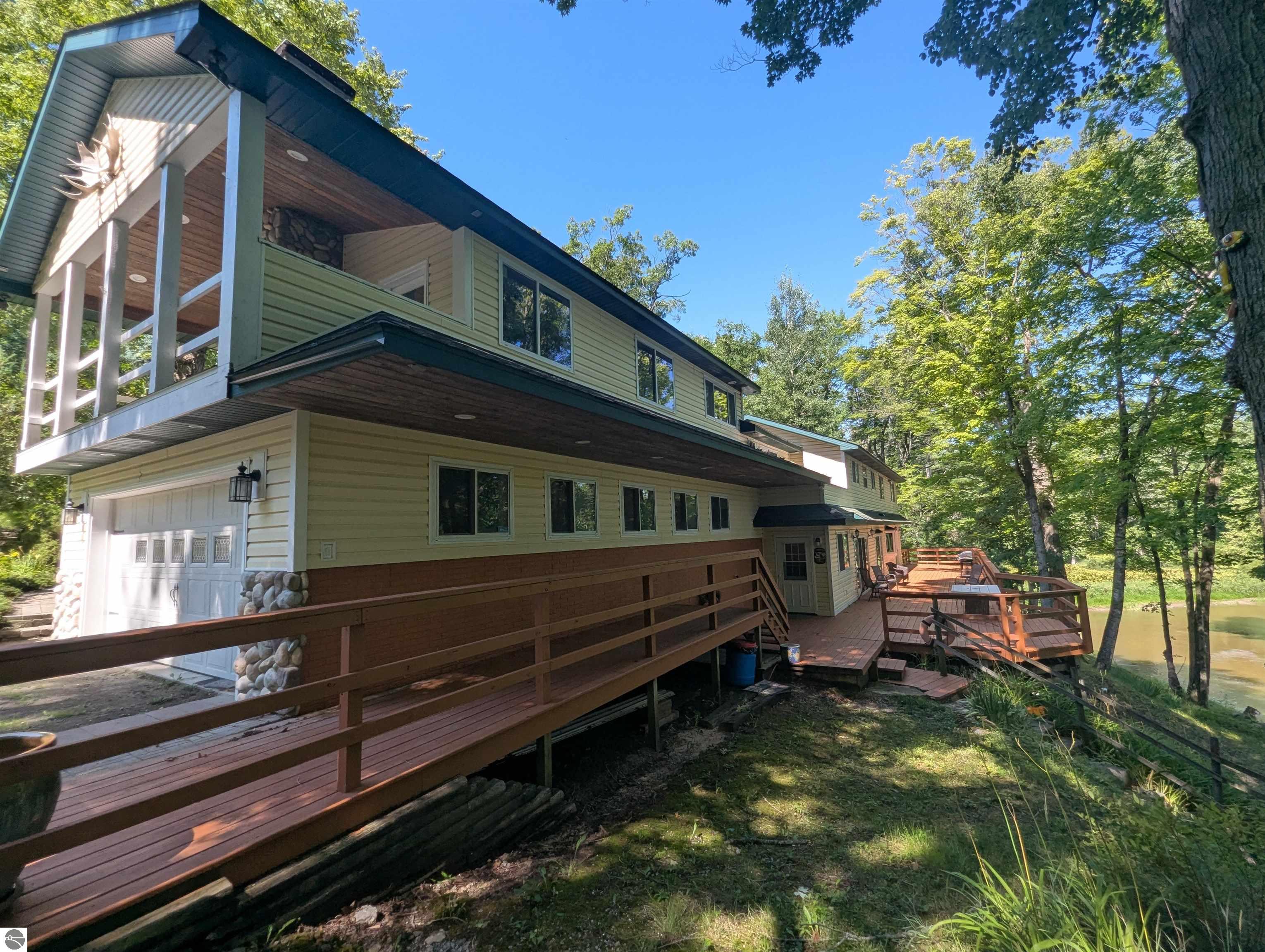 A beautiful mix of waterfront, woods, and nature await with this cool property along the Rifle River, only a few minutes off U.S. 23. Located in the woods with State Land adjacent to the property and across the road. This spacious home offers a great opportunity for waterfront living! Virtually remodeled throughout, this unique home offers a layout conducive for multi-family living, single family, and/or something in between! Enjoy three distinct living spaces with separate entrances with all new flooring and interior paint throughout that all have awesome views of the river at various points along with a fantastic view of the river right from the 80' wide deck! The lower level offers a living room, den/family room, full bathroom, kitchen, laundry, dining area, and access to the attached garage. The upper/main level features three bedrooms with two bedrooms sharing a 1/2 bathroom, 2nd kitchen, & two extra rooms for more living/sleeping space. Need even more space??!! Nearly 1100 sqft of more living space has been created over the garage that could serve as an apartment, private living quarters, etc! This space offers a modern, sleek look with an open kitchen/dining/living space w/ a fireplace, bedroom, office, and full custom built bath w/ stunning glass shower and rainfall showerhead! Security system installed. Outside there are two driveways that allow for multiple parking spots along with steps leading down to the river for access to kayaking, tubing, fishing, etc! There are so many possibilities with this versatile riverfront property! Nature awaits!! Owner will consider Land Contract terms w/$225,000.00 down.