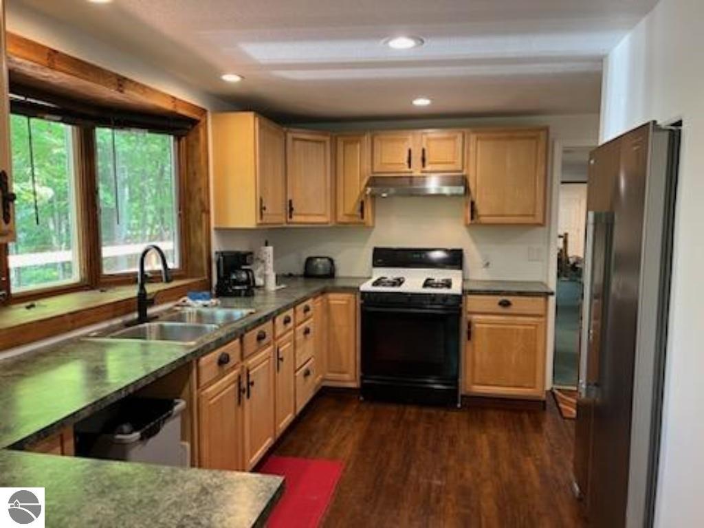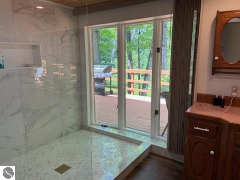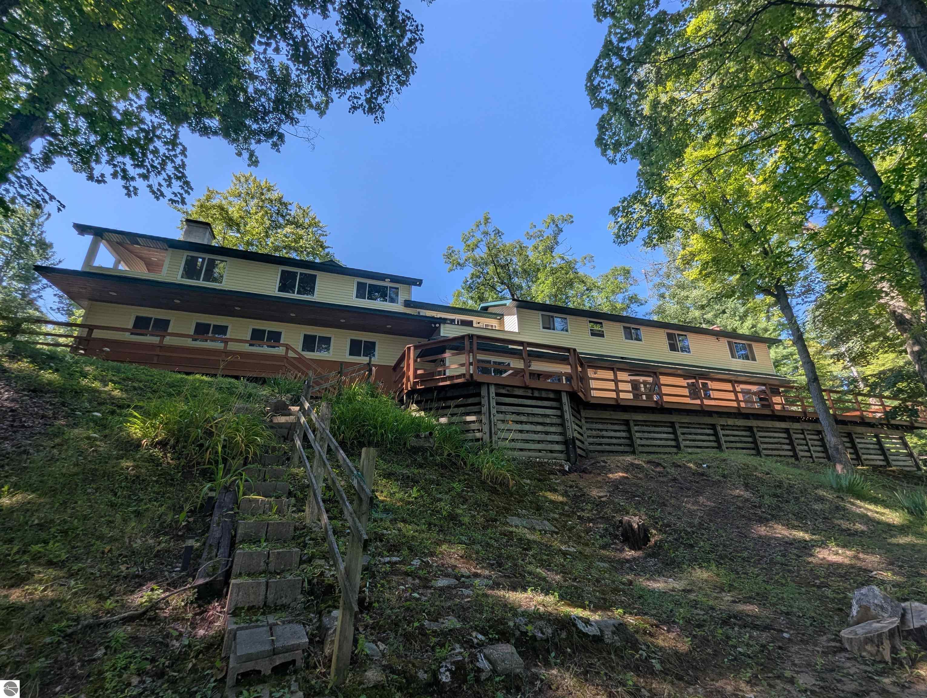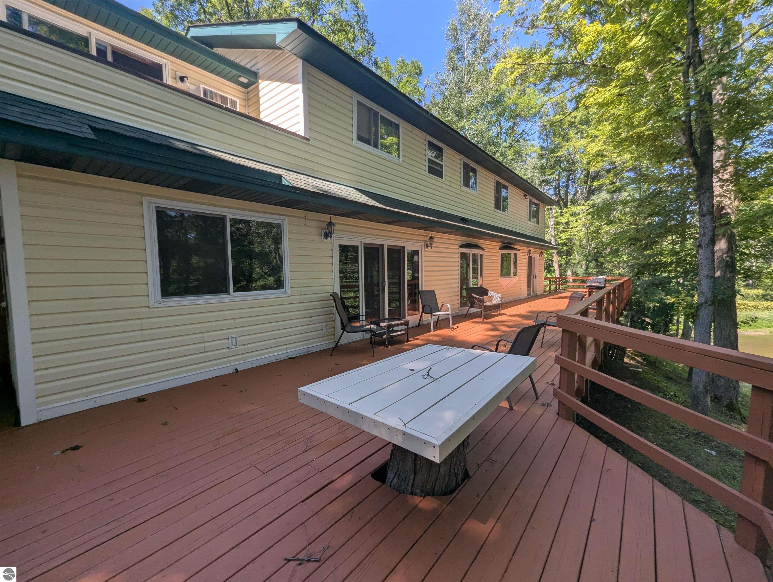 A beautiful mix of waterfront, woods, and nature await with this cool property along the Rifle River, only a few minutes off U.S. 23. Located in the woods with State Land adjacent to the property and across the road. This spacious home offers a great opportunity for waterfront living! Virtually remodeled throughout, this unique home offers a layout conducive for multi-family living, single family, and/or something in between! Enjoy three distinct living spaces with separate entrances with all new flooring and interior paint throughout that all have awesome views of the river at various points along with a fantastic view of the river right from the 80' wide deck! The lower level offers a living room, den/family room, full bathroom, kitchen, laundry, dining area, and access to the attached garage. The upper/main level features three bedrooms with two bedrooms sharing a 1/2 bathroom, 2nd kitchen, & two extra rooms for more living/sleeping space. Need even more space??!! Nearly 1100 sqft of more living space has been created over the garage that could serve as an apartment, private living quarters, etc! This space offers a modern, sleek look with an open kitchen/dining/living space w/ a fireplace, bedroom, office, and full custom built bath w/ stunning glass shower and rainfall showerhead! Security system installed. Outside there are two driveways that allow for multiple parking spots along with steps leading down to the river for access to kayaking, tubing, fishing, etc! There are so many possibilities with this versatile riverfront property! Nature awaits!! Owner will consider Land Contract terms w/$225,000.00 down.