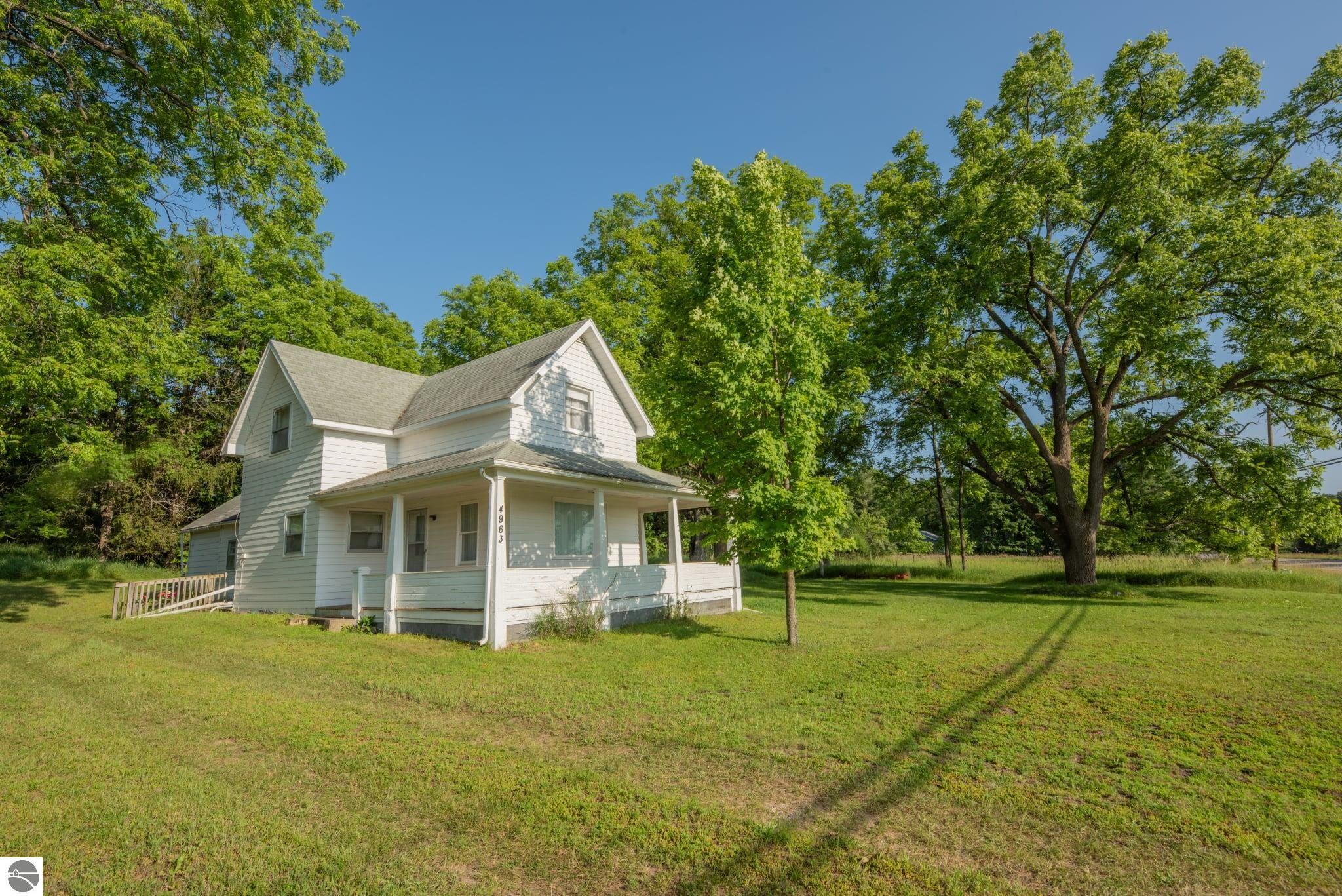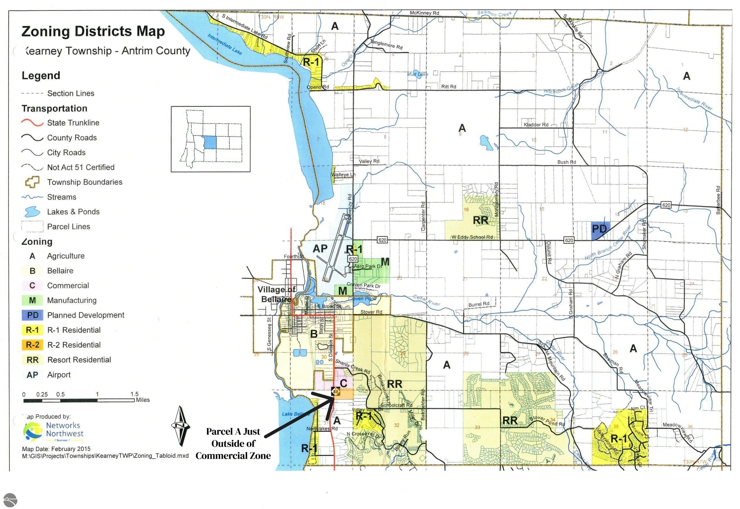 With Lake Bellaire Views south of the Bellaire Village Limits, this beautiful property with its Historic Barn and home creates many possibilities. There are over 20 acres of rolling hills, partially wooded with a stream running through the property. House has beautiful bones but will need some upgrades and being sold "as is". Property is directly south of the Bellaire Family Health Center with over 600' of road frontage off M88, this property could be used as a new home site, possible commercial with a change in zoning-see additional documents, and woods could provide lumber as well. **Dimensions obtained by 3rd party CubiCasa and deemed accurate and reliable but buyer to verify.