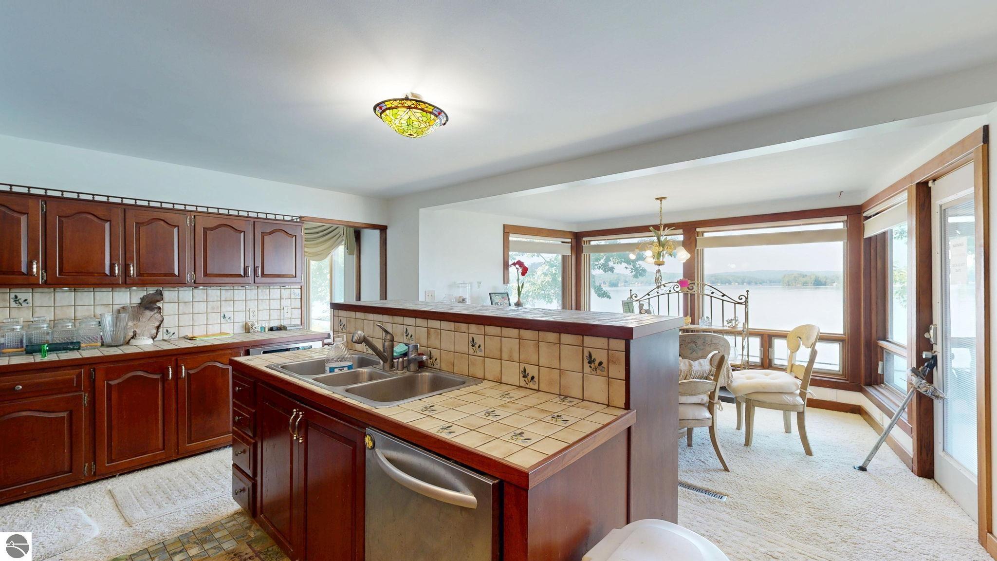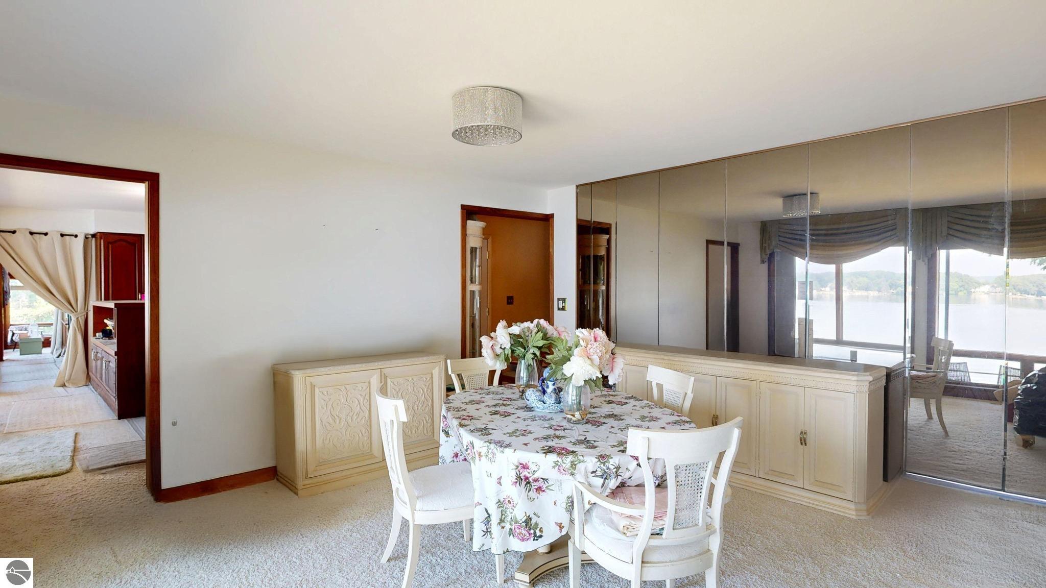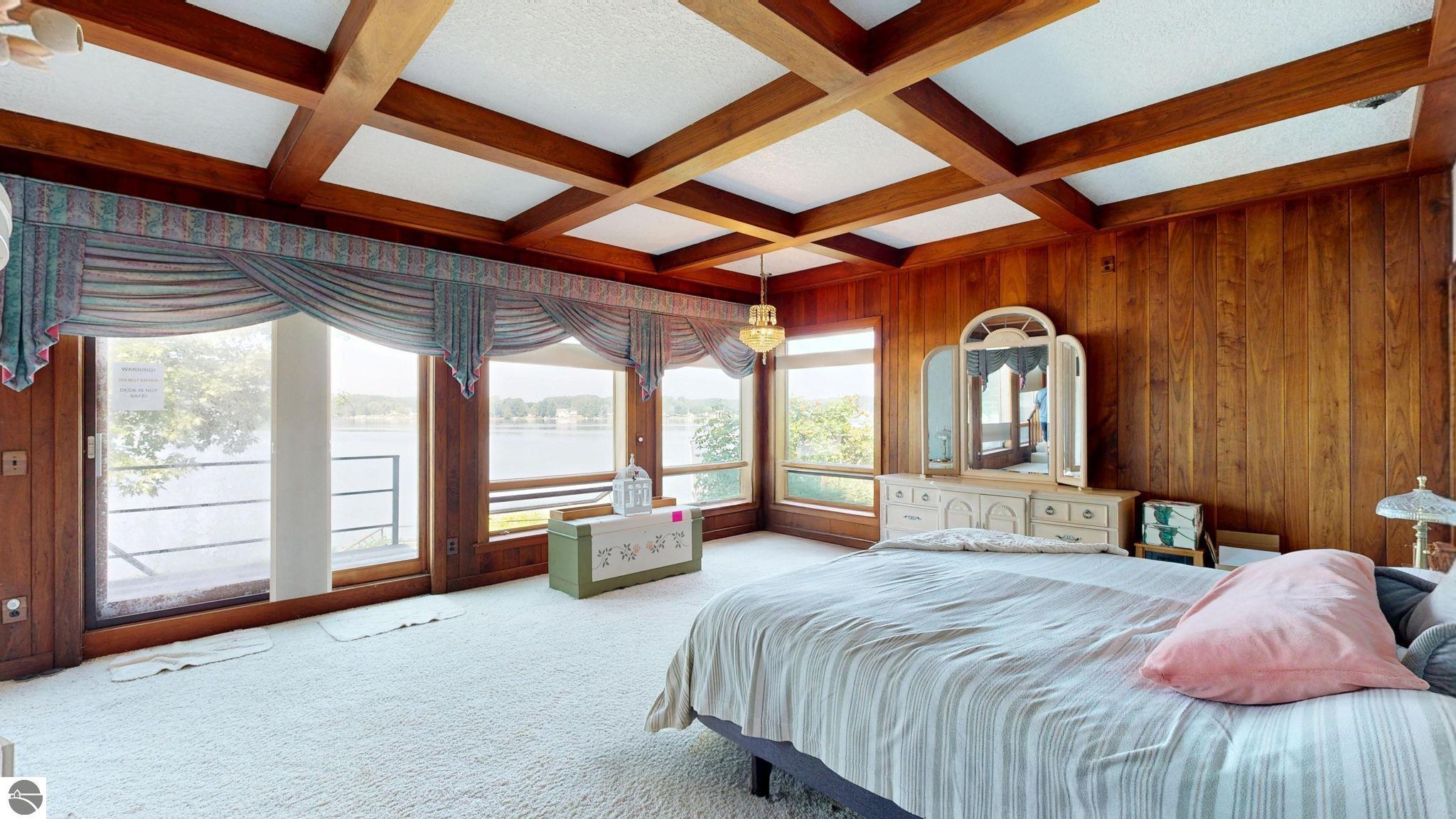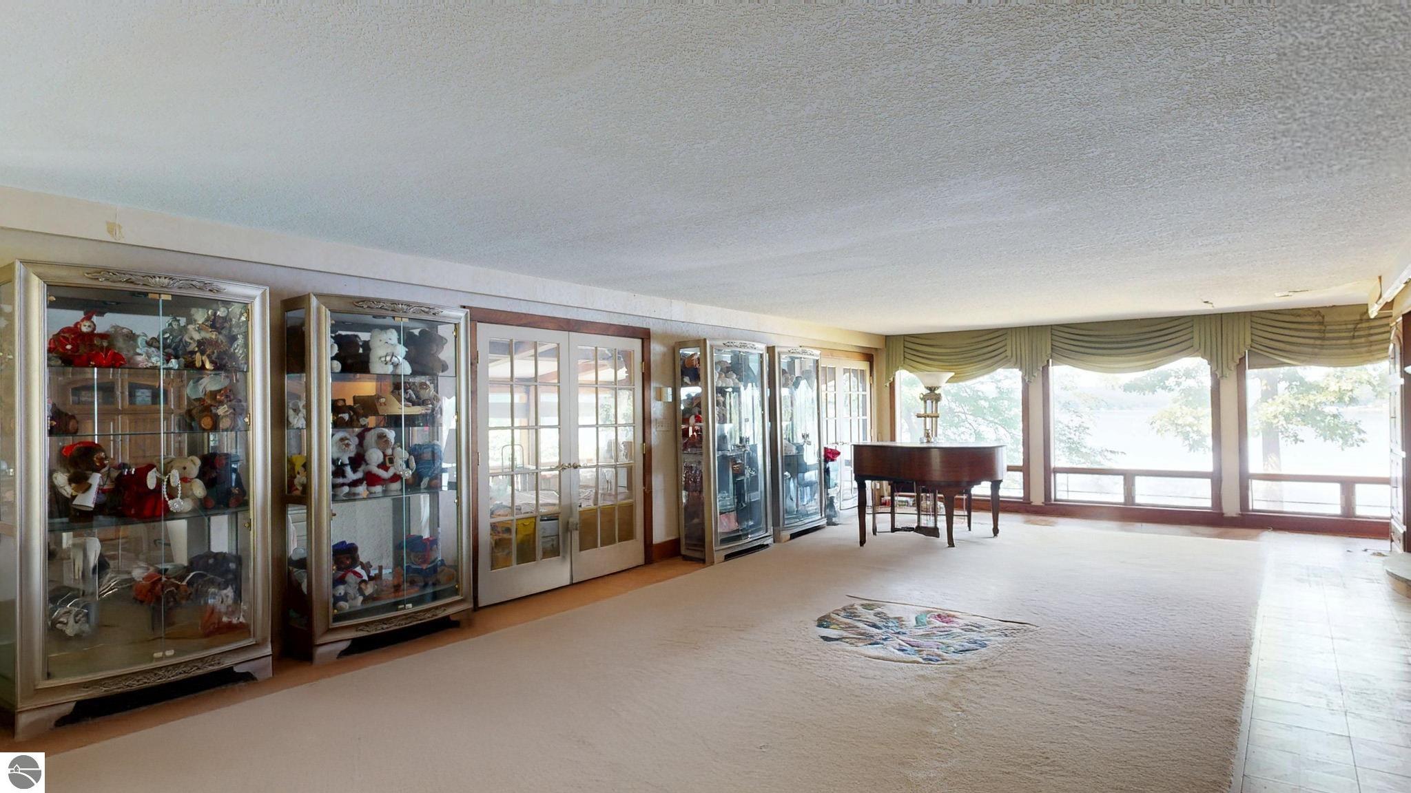 Welcome to an extraordinary opportunity to own one of Lake Isabella’s most iconic executive-style waterfront homes. Situated on 4 continuous waterfront lots on the highly desirable all-sports Lake Isabella. Originally built in the late 1970s with grand entertaining in mind, this home spans over 9,000 square feet of living space. The current owners have begun a second-story addition, originally designed for a luxurious new primary suite (approx 1800ft) ready for your vision to bring it to life. Inside, all-new Pella windows with top-down/bottom-up blinds offer stunning lake views from nearly every room. The main-floor primary suite is a private retreat with two bathrooms, two large walk-in closets, a cozy sitting room, and generous built-in storage. A formal office with custom cabinetry provides a quiet workspace, while the breakfast nook and elegant dining room both offer inviting spaces to enjoy meals with a view. The spacious living room features custom built-ins, a wood-burning fireplace, and natural light streaming from both ends of the home. Just off the living area, a sunroom with three sets of French doors, a sliding glass door, and a wood stove, perfect for year-round entertaining. Upstairs, you’ll find two bedrooms, two full bathrooms, a second kitchen and laundry area, a large bonus living space, and the unfinished new primary suite . The walkout basement features a custom wood-accented fireplace, bar, dance floor, sauna, two additional bathrooms, and an indoor pool, with some updates will make an ideal space for entertaining and relaxing .The sellers have already completed many extensive updates, including a new roof, cement board siding, all-new Pella windows and blinds, new exterior doors, the second floor addition and upgraded insulation. Although many of the major renovations are finished, the sellers were relocated for work, leaving the next owner with a rare opportunity to finish the project and make this remarkable property truly their own.
