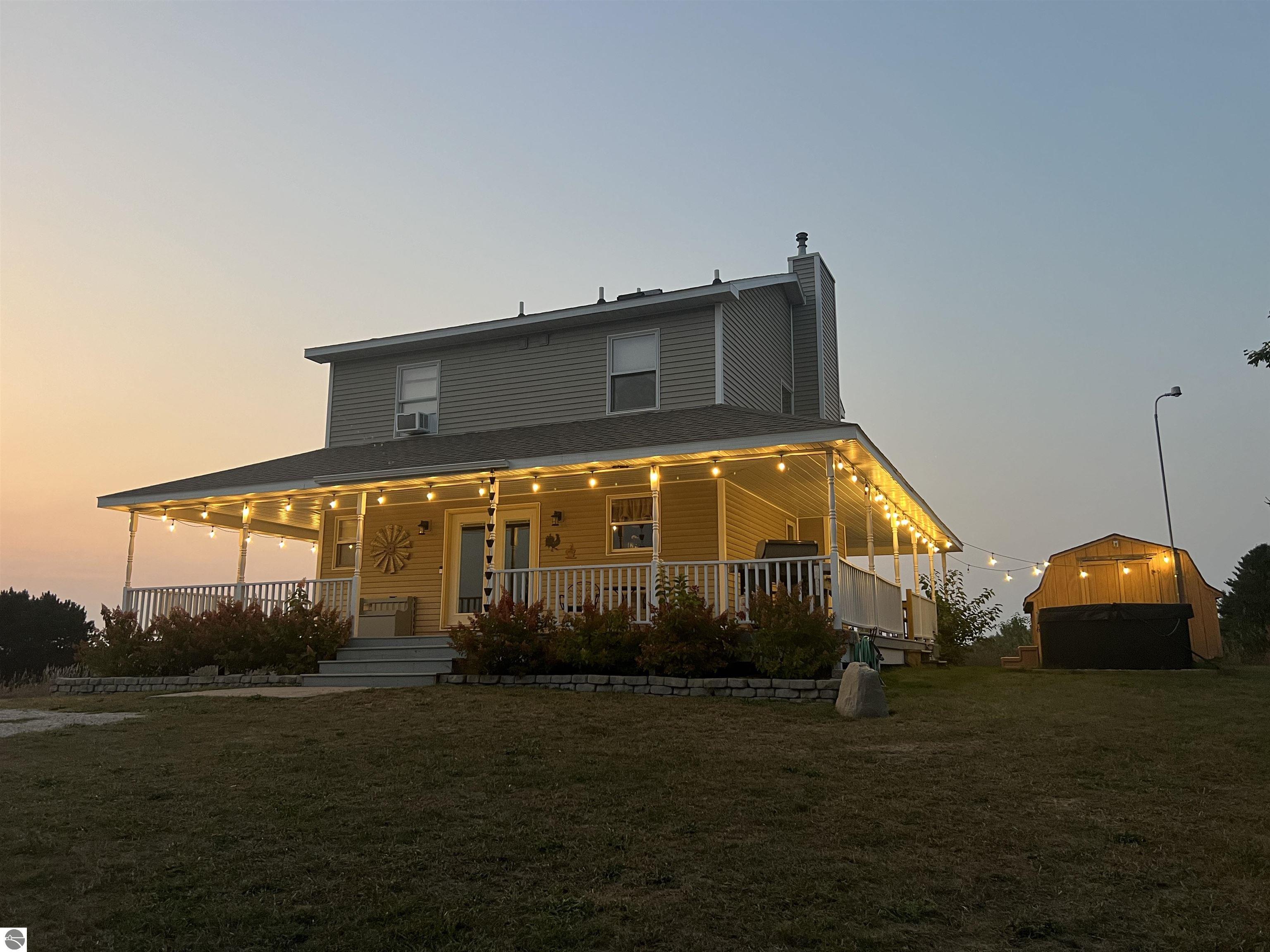Perched on 11+ peaceful acres in Leelanau County, this beautiful 3-bedroom, 3.5-bath farmhouse (4th non-conforming bedroom in the basement) offers the perfect blend of rustic charm and modern comfort. With 2,000 square feet of inviting living space, the home features a spacious wraparound porch perfect for morning coffee or sunset views. Inside, you’ll find a warm, farmhouse-style interior with cozy living areas, a well-equipped kitchen, and ample room for hosting family and friends. After a day of exploring the Sleeping Bear Dunes or nearby beaches, unwind in the private hot tub under the stars. The home also includes a backup generator, on-demand water heater, water softener, and a new constant pressure well. Surrounded by nature yet just minutes from Traverse City, Glen Arbor, Suttons Bay, and the region’s best wineries, this property offers privacy without isolation. Whether you’re looking for a serene retreat, an income-generating rental, or both — this home is a rare find in Leelanau County.