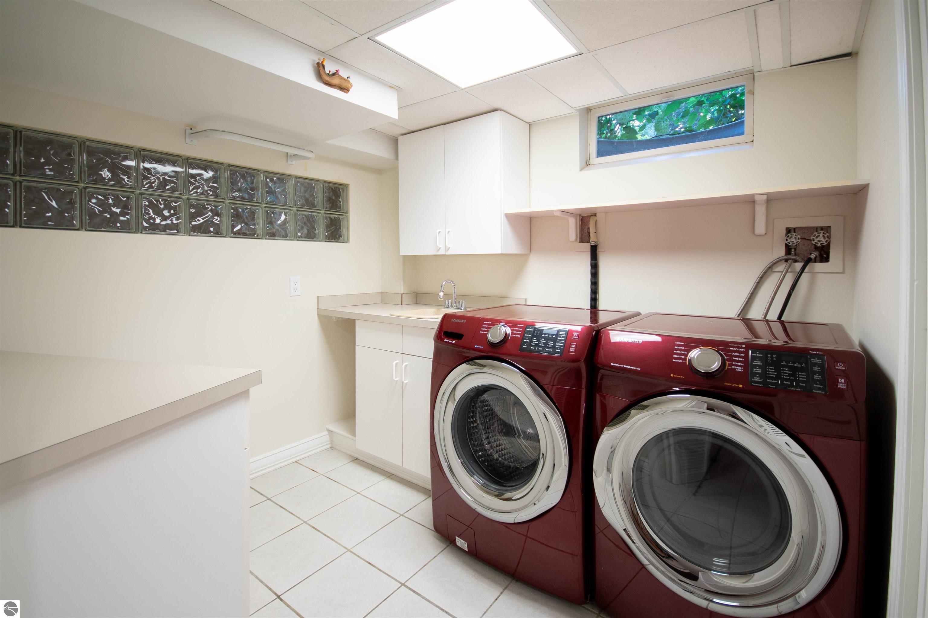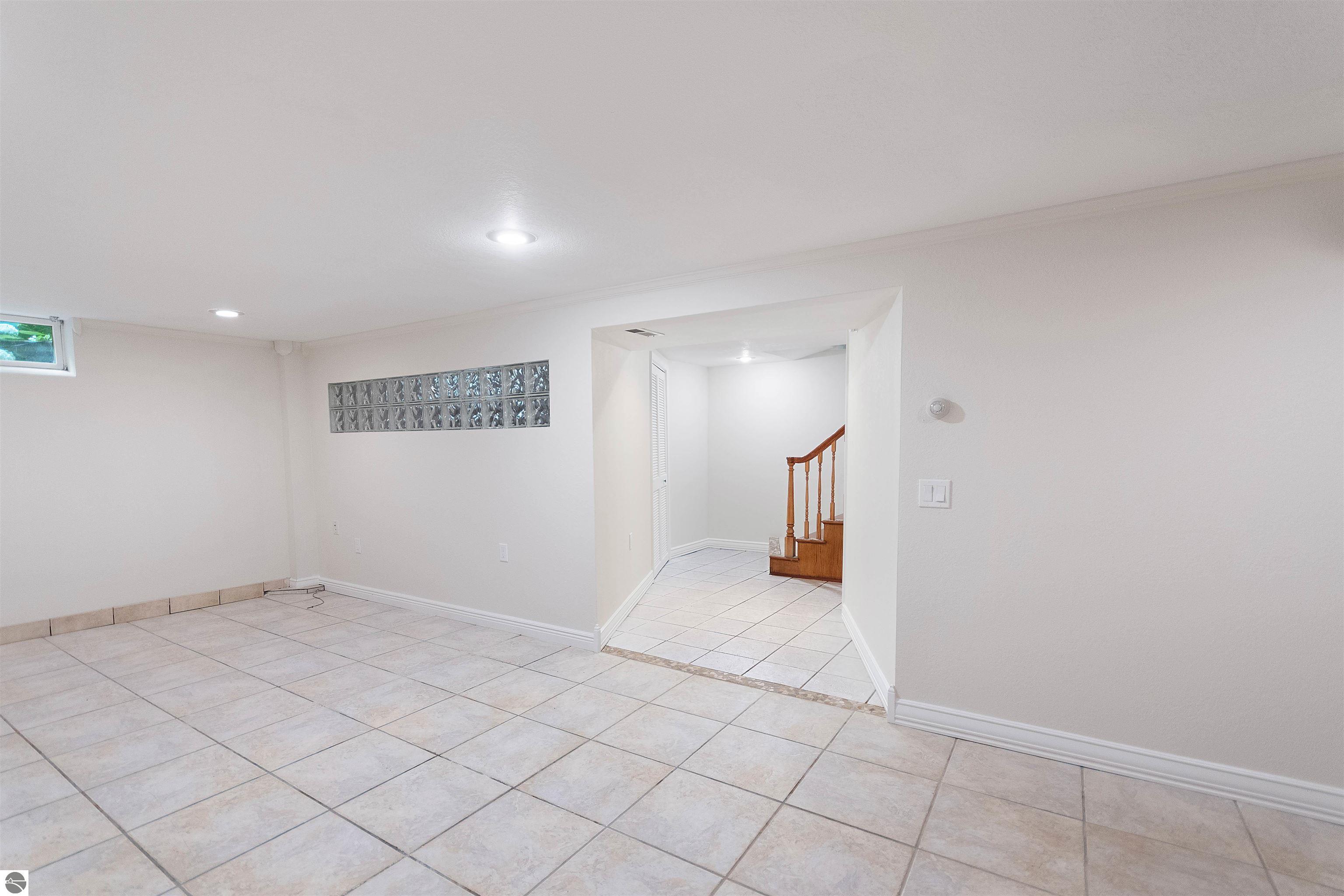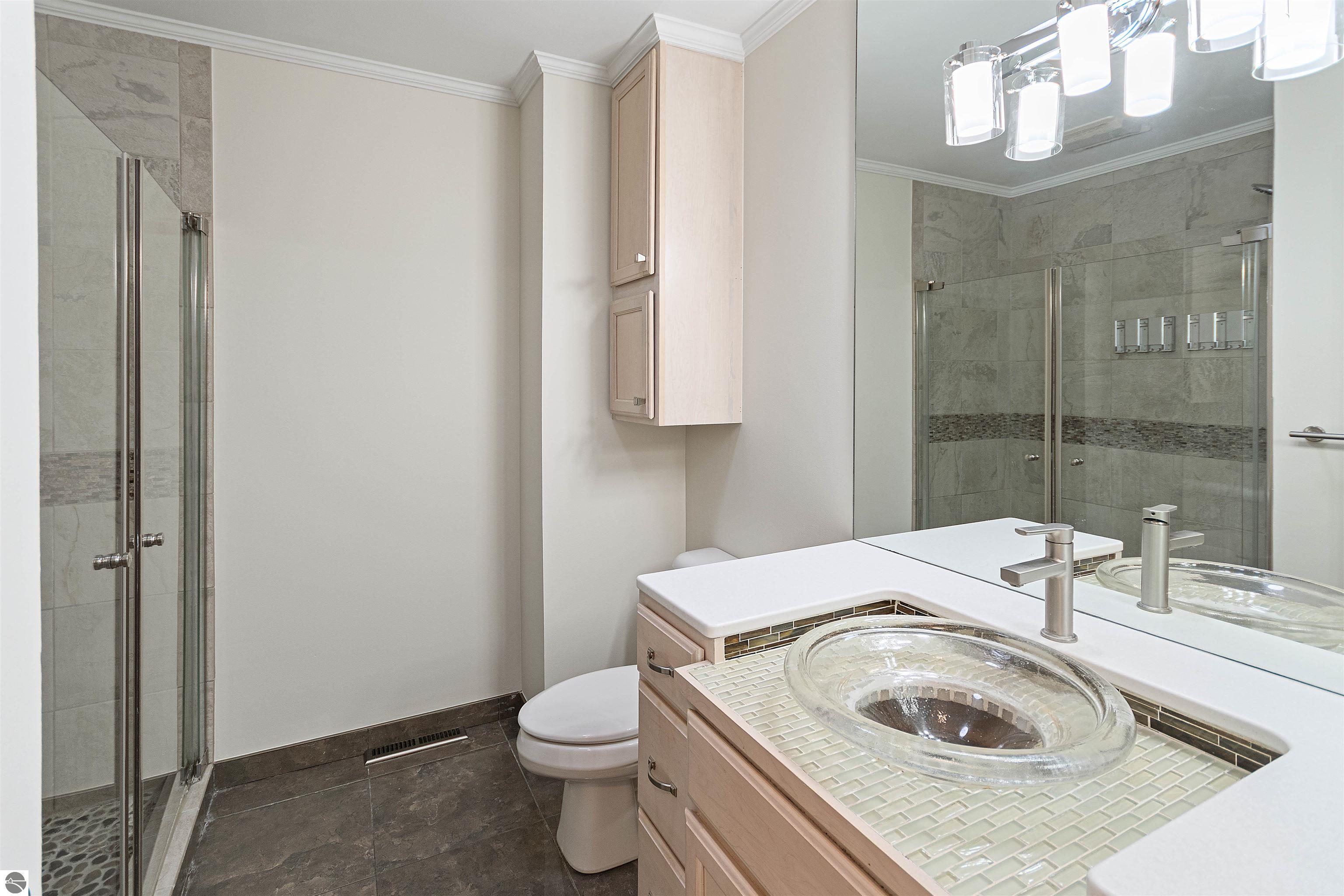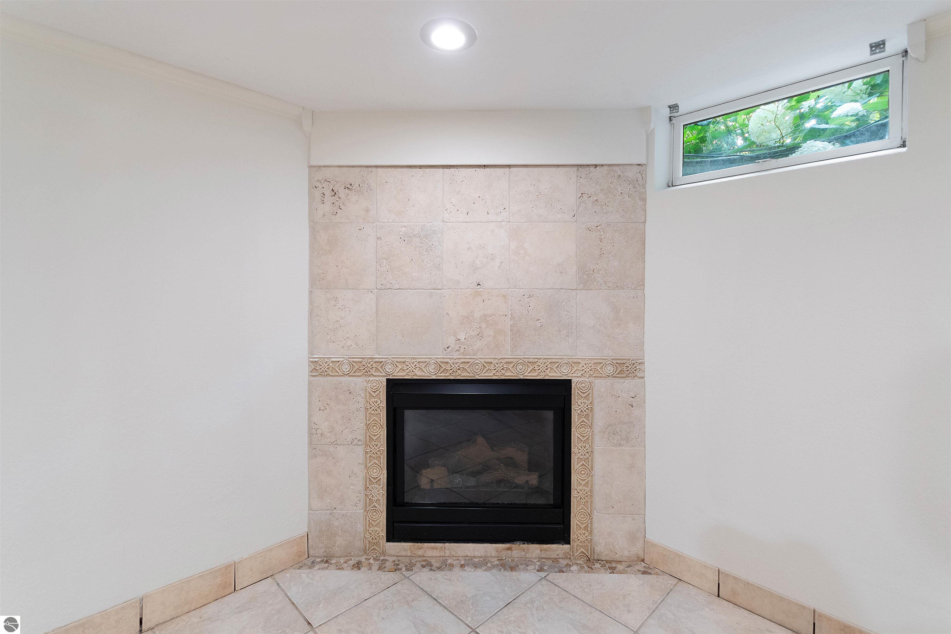 Base of Old Mission Peninsula. Beautifully remodeled 1 1/2 story ranch situated on a secluded, peaceful cul-de-sac. Features an expansive kitchen with storage pantry, flowing into a grand post and beam sunken living area boasting a gas fireplace with striking brick mantle and integrated cherry-wood media center. Elegant dining space and inviting sun room, showcasing floor-to-ceiling Pella windows overlooking a meticulously landscaped backyard zen garden with stone-columned deck and patio. Upper floor features a generous master retreat including a jet tub, separate shower enclosure, and overhead skylight. Lower level features a finished recreation room with gas fireplace, custom floor-to-ceiling bookcase, and office or wine storage space. Well-appointed garage with insulation, drywall, dedicated storage room, attic space, and epoxy flooring. Exterior features attractive white Canadian cedar shake siding and beautiful perennial gardens. This charming residence offers exceptional appeal with interesting architectural elements throughout. Convenient access to West Bay, Bryant Park, Civic Center, neighborhood Clancy Park, and downtown Traverse City and situated at the start of the OMP Wine Trail. Click on virtual tour for an incredibly realistic view of the interior.