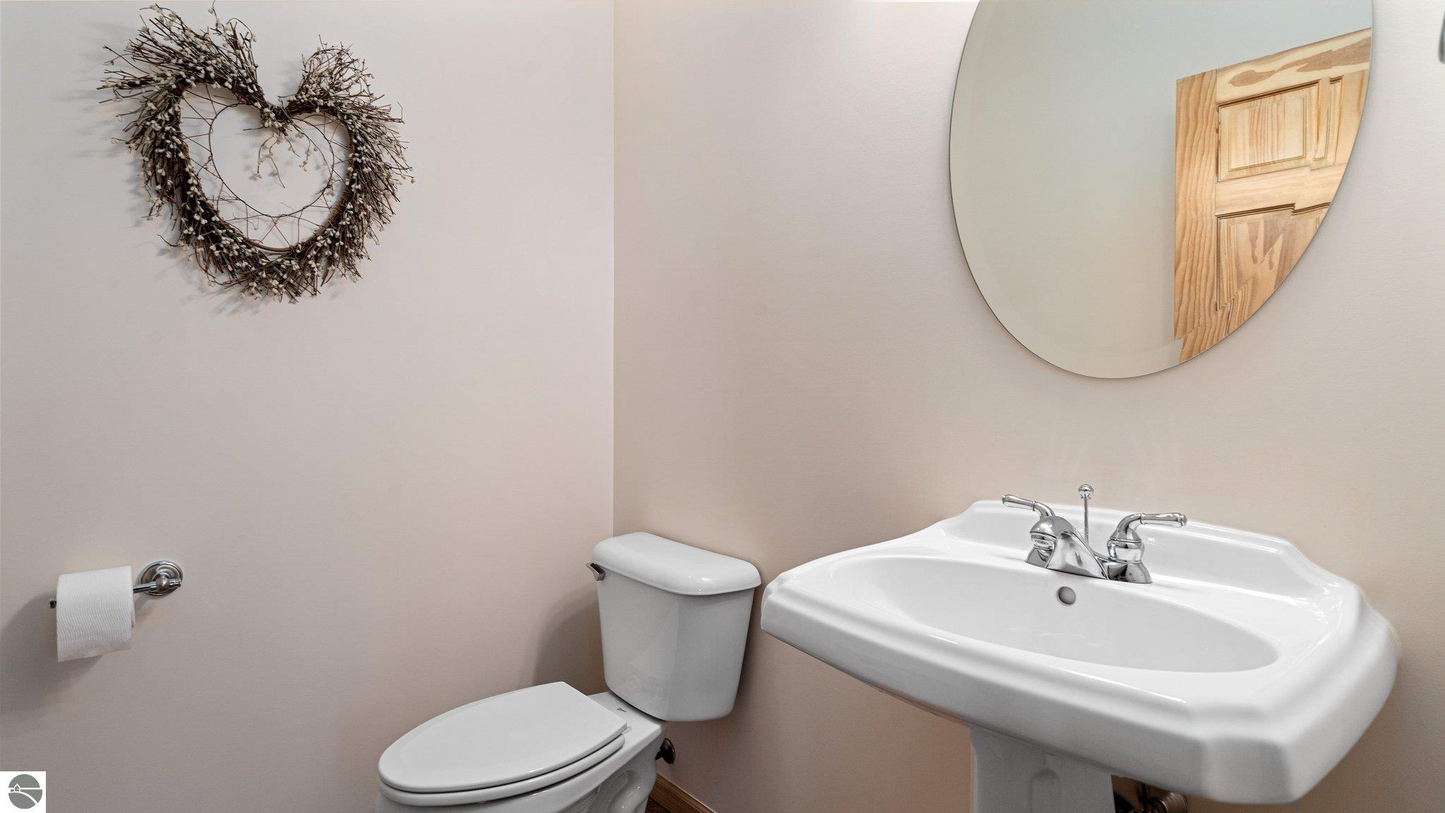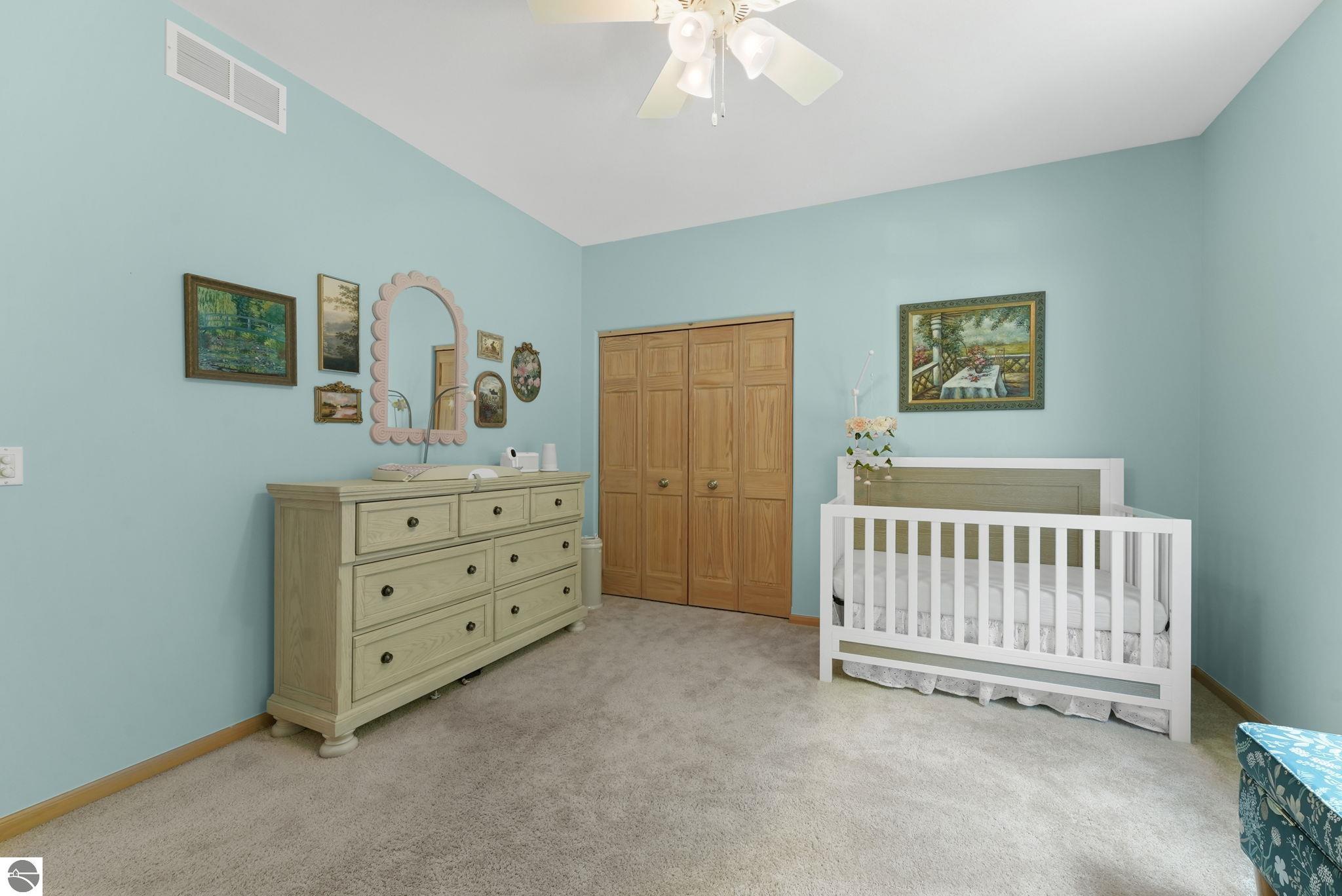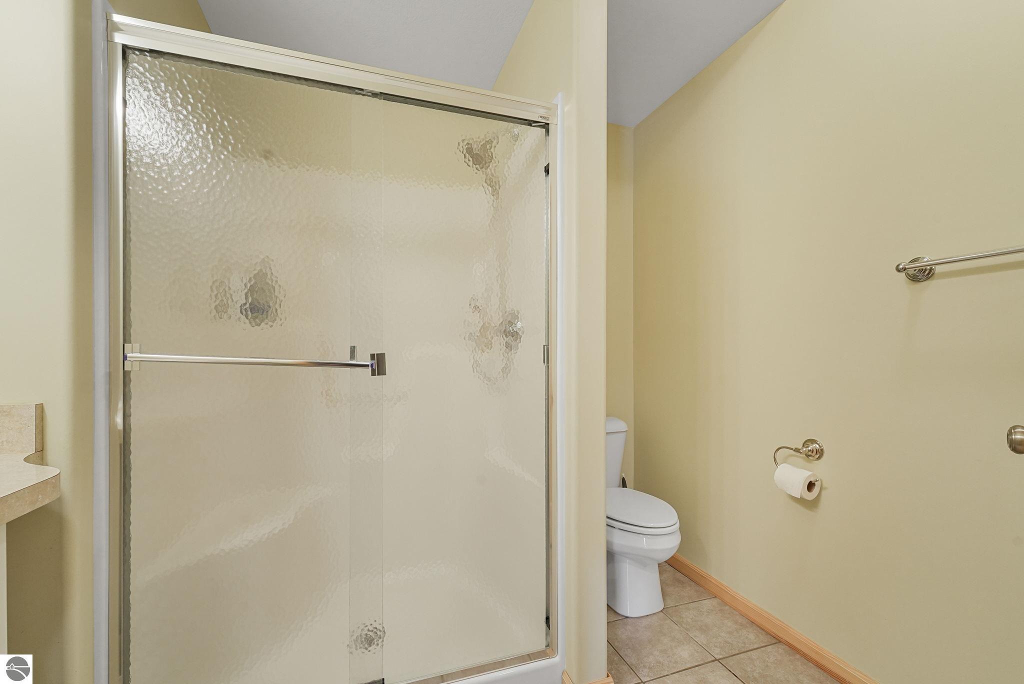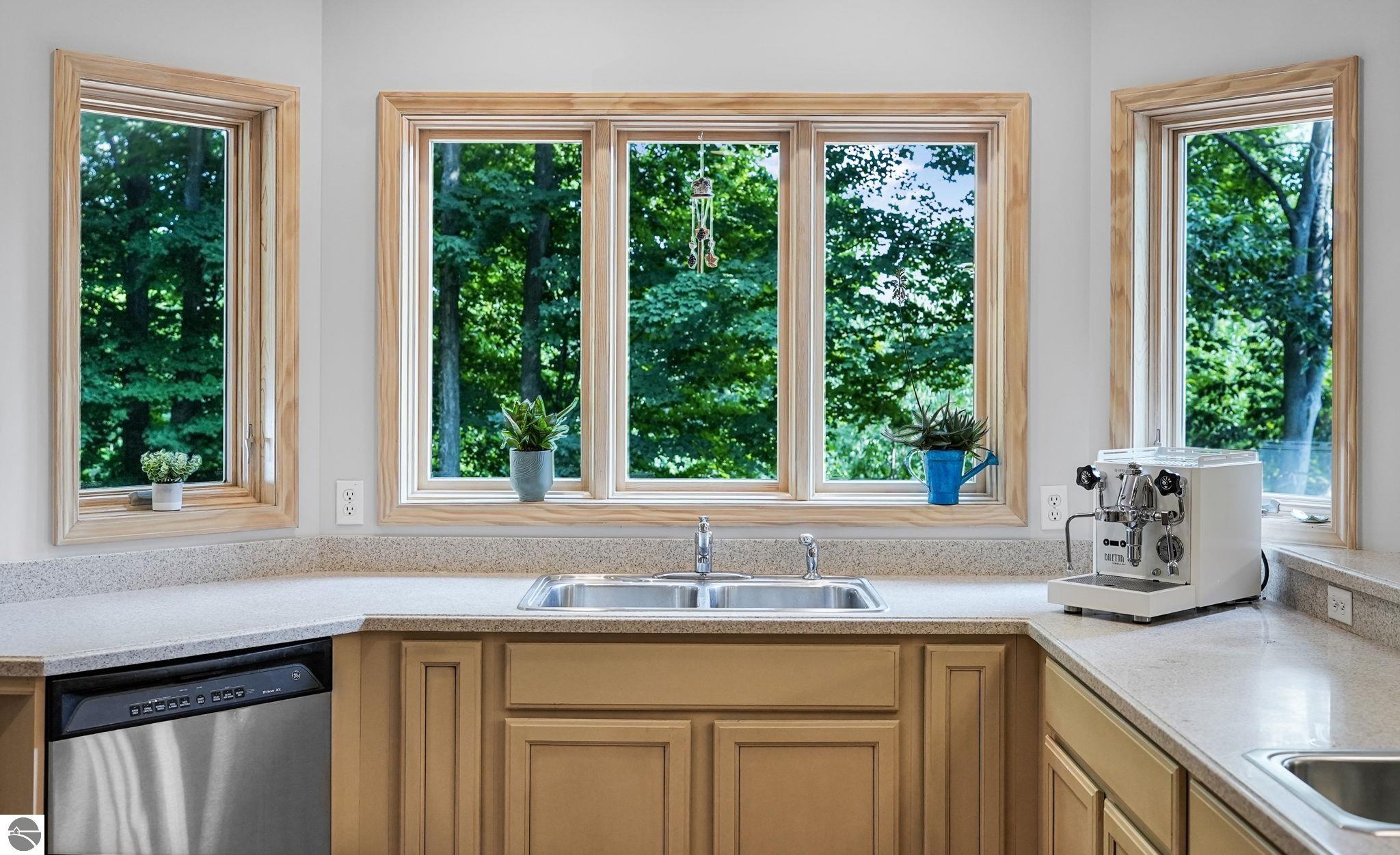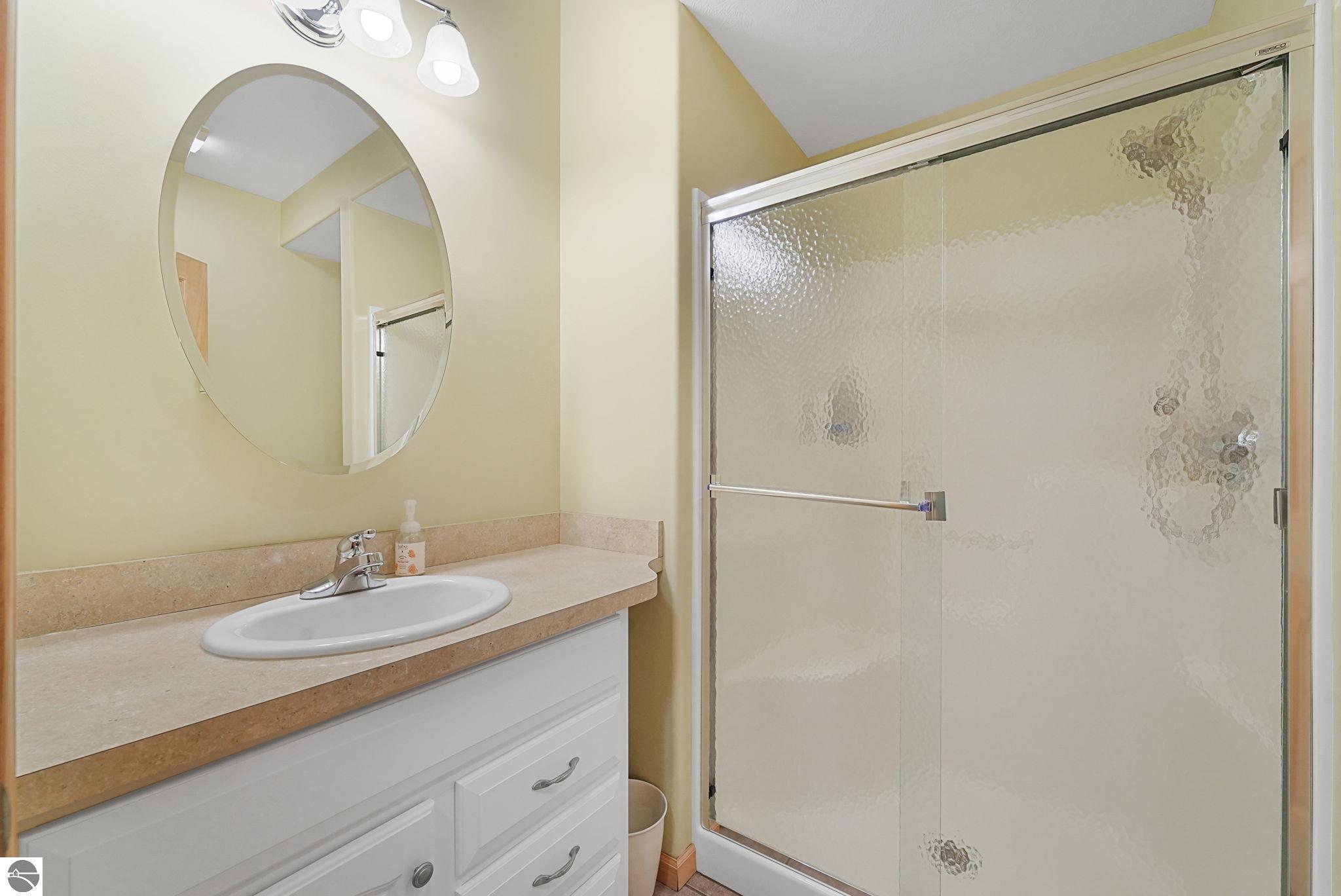 Nestled in a tranquil, treehouse-like setting on 1.6 acres, this 4-bedroom, 3.5-bath home in Truax Lake captures the essence of Up North living. This neighborhood enjoys a private access point to the Pere Marquette State Forest, with thousands of miles of scenic trails for hiking, biking, and year-round recreation. Step inside to vaulted ceilings and an open concept living space anchored by a floor-to-ceiling river stone fireplace. The spacious kitchen is well-appointed with solid wood cabinetry, natural stone countertops, stainless steel appliances, and picturesque views of the tree-lined backyard. The elevated deck spans the length of the home, overlooking the woodland canopy views. A cozy three seasons porch, wrapped in knotty pine, invites you to relax amidst the forested surroundings throughout the year. The primary bedroom features private deck access, walk-in closet and an ensuite bath with a dual vanity, jetted tub, and walk-in shower. Two additional bedrooms, a full bathroom, powder room, and laundry room complete this floor - offering the ease of single-level living. The walk-out lower level provides a large recreation room, bar area, guest bedroom, full bathroom, and an additional 1,225 sq. ft. of storage space. A landscaped backyard with a flagstone path leads to a fire pit, perfect for gathering under the stars and enjoying the peaceful Northern Michigan nights.