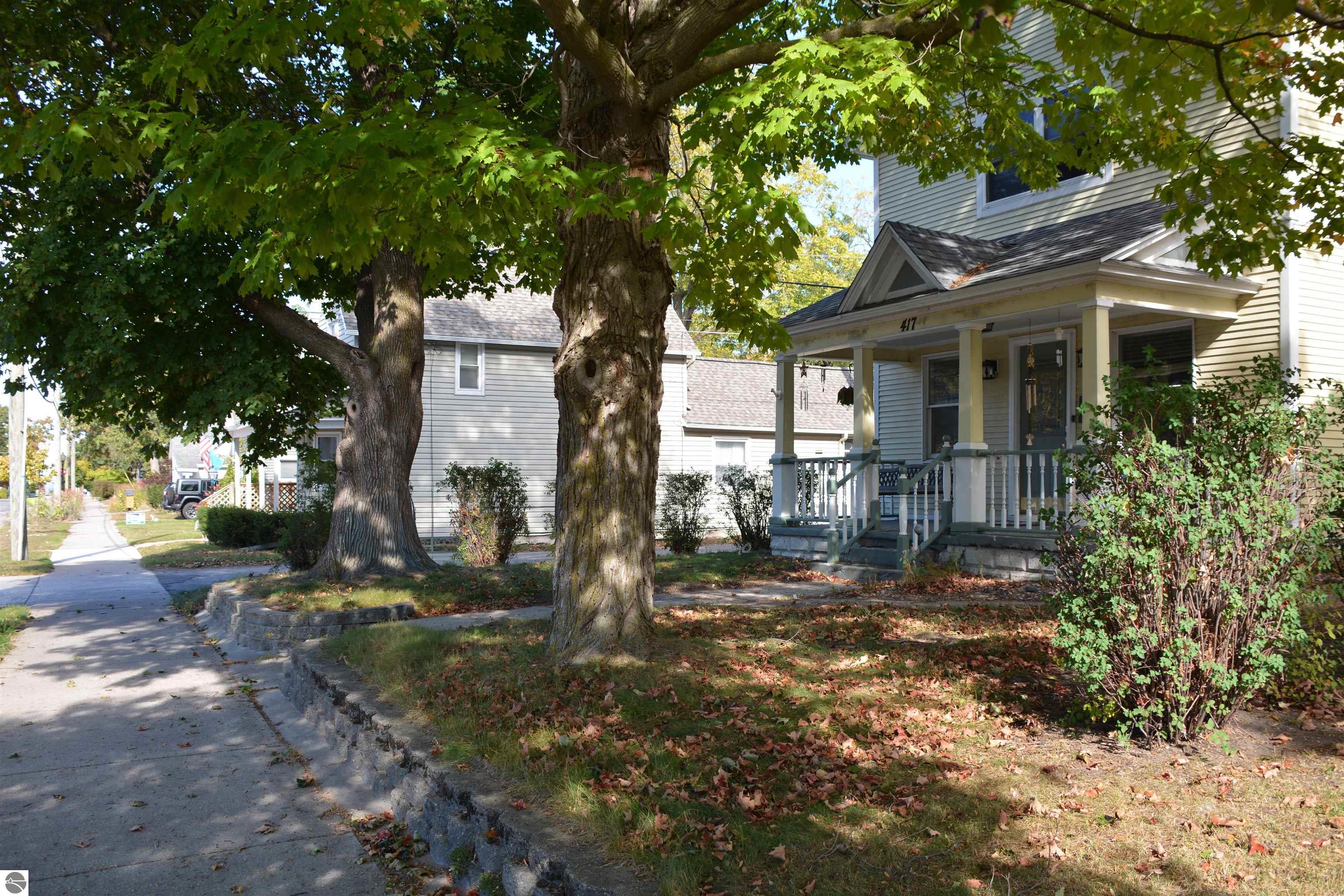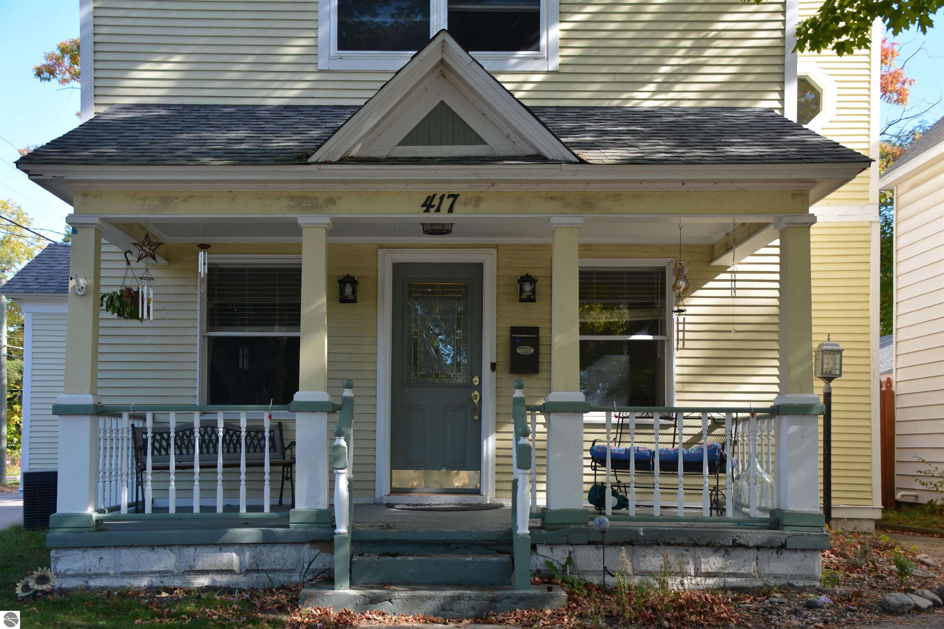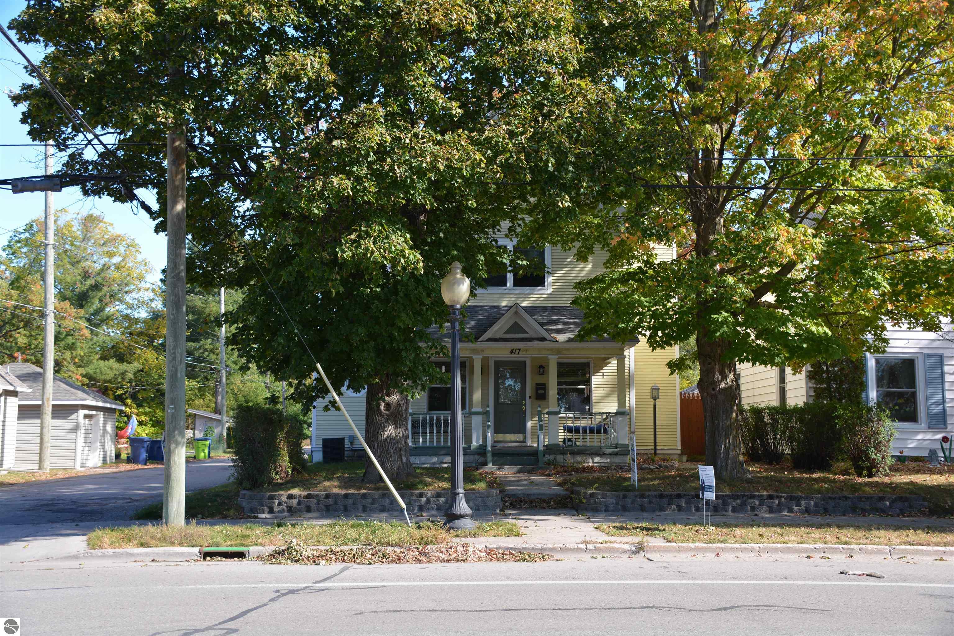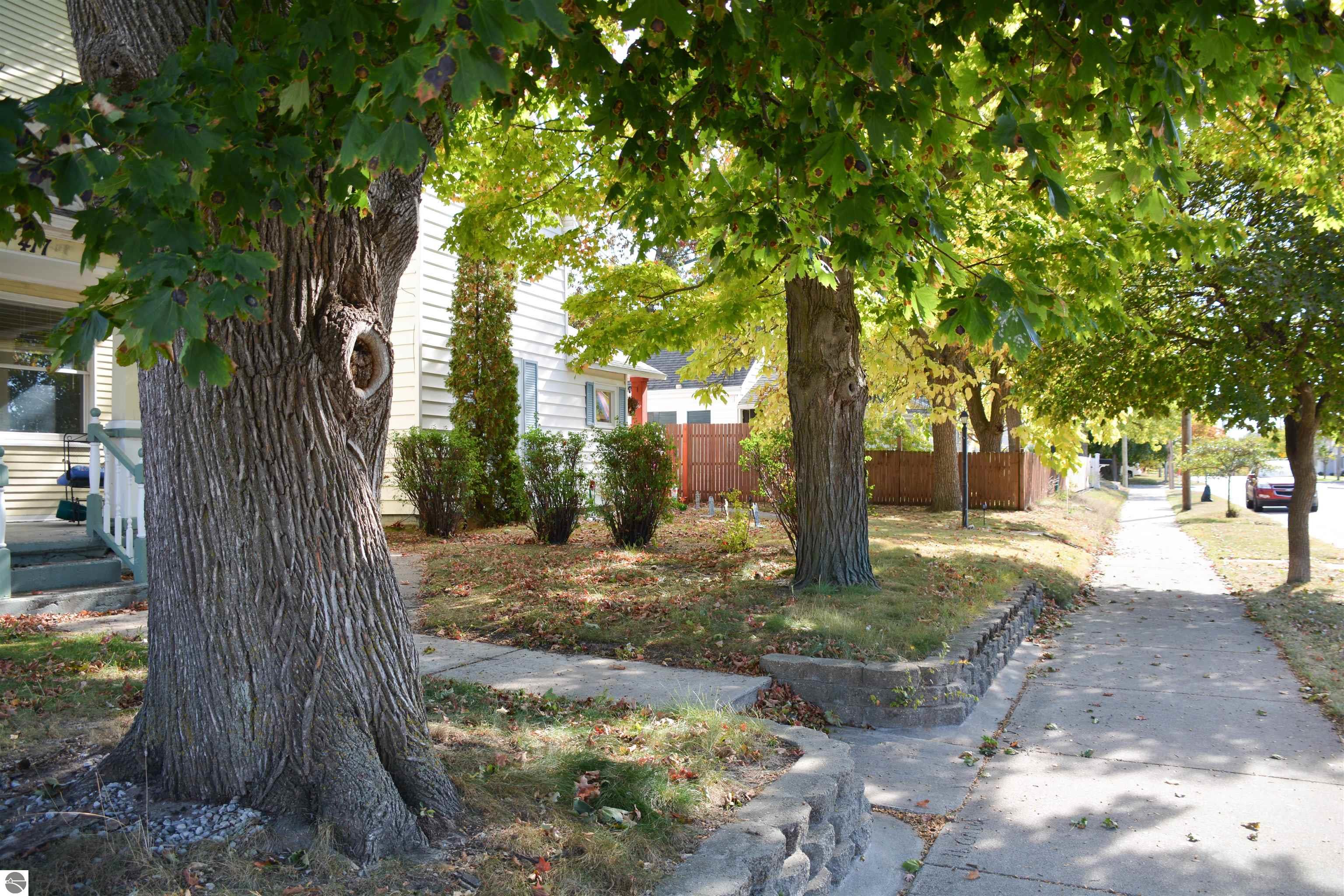 Located in the heart of downtown Traverse City, this 2,640 sq ft, 3-story home spans two parcels and offers a blend of charm, space, and potential. Inside, you'll find solid oak doors, distinctive architectural details, and a kitchen with marble countertops and oak cabinetry that opens onto a covered wrap-around deck. The spacious third-floor bedroom offers flexible use as a primary suite, home office, or studio. Recent updates include 200-amp electrical service, copper plumbing, and central air conditioning for year-round comfort. Exterior features include durable cedar clapboard siding and a welcoming covered front porch. Additionally, the rear of the property has water and sewer connections in place to support the future construction of an accessory dwelling unit. Just blocks from West Grand Traverse Bay, Boardman Lake, the TART Trail, and the public library, this property offers both convenience and investment potential in one of Michigan's most sought-after communities.