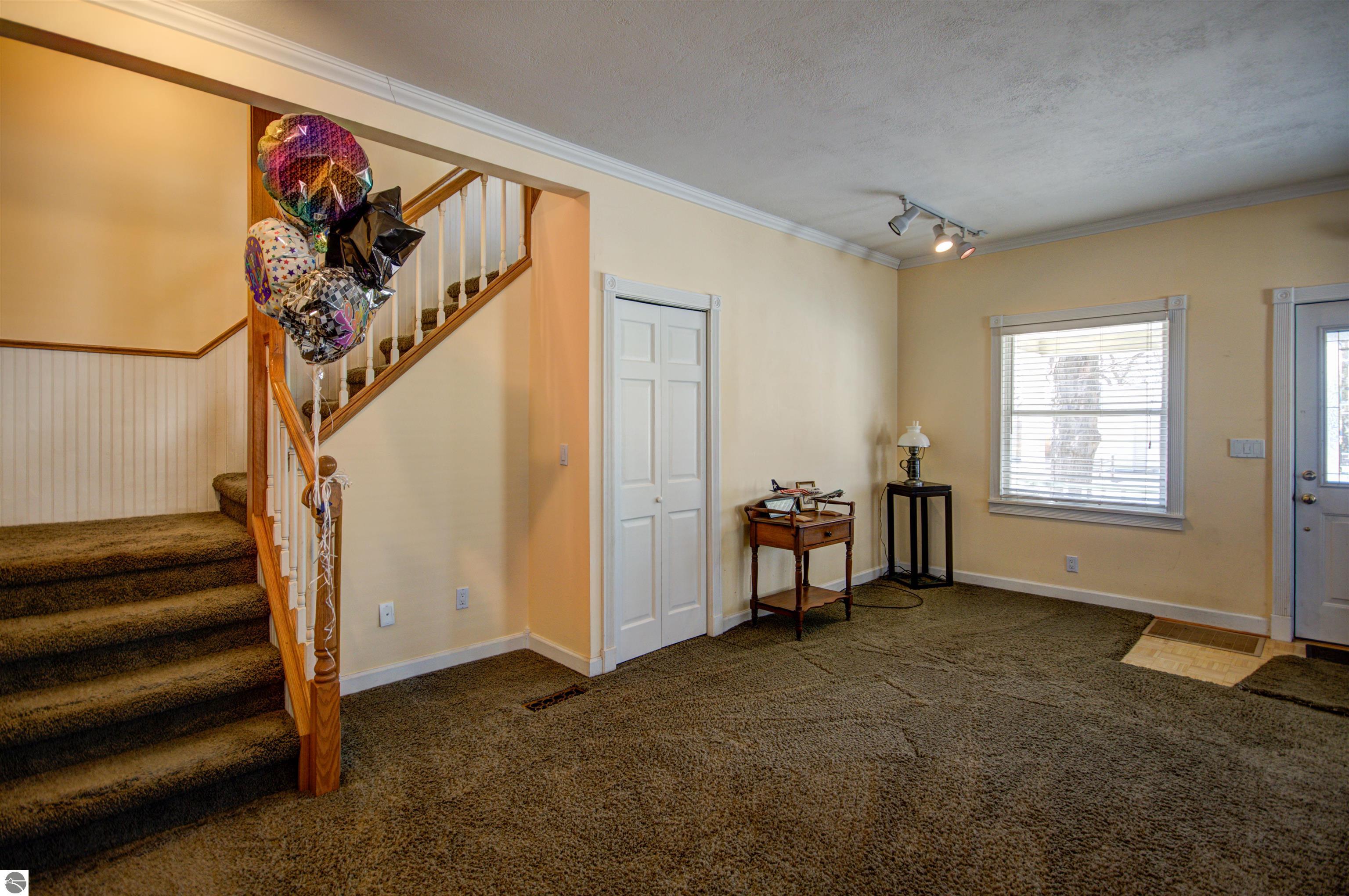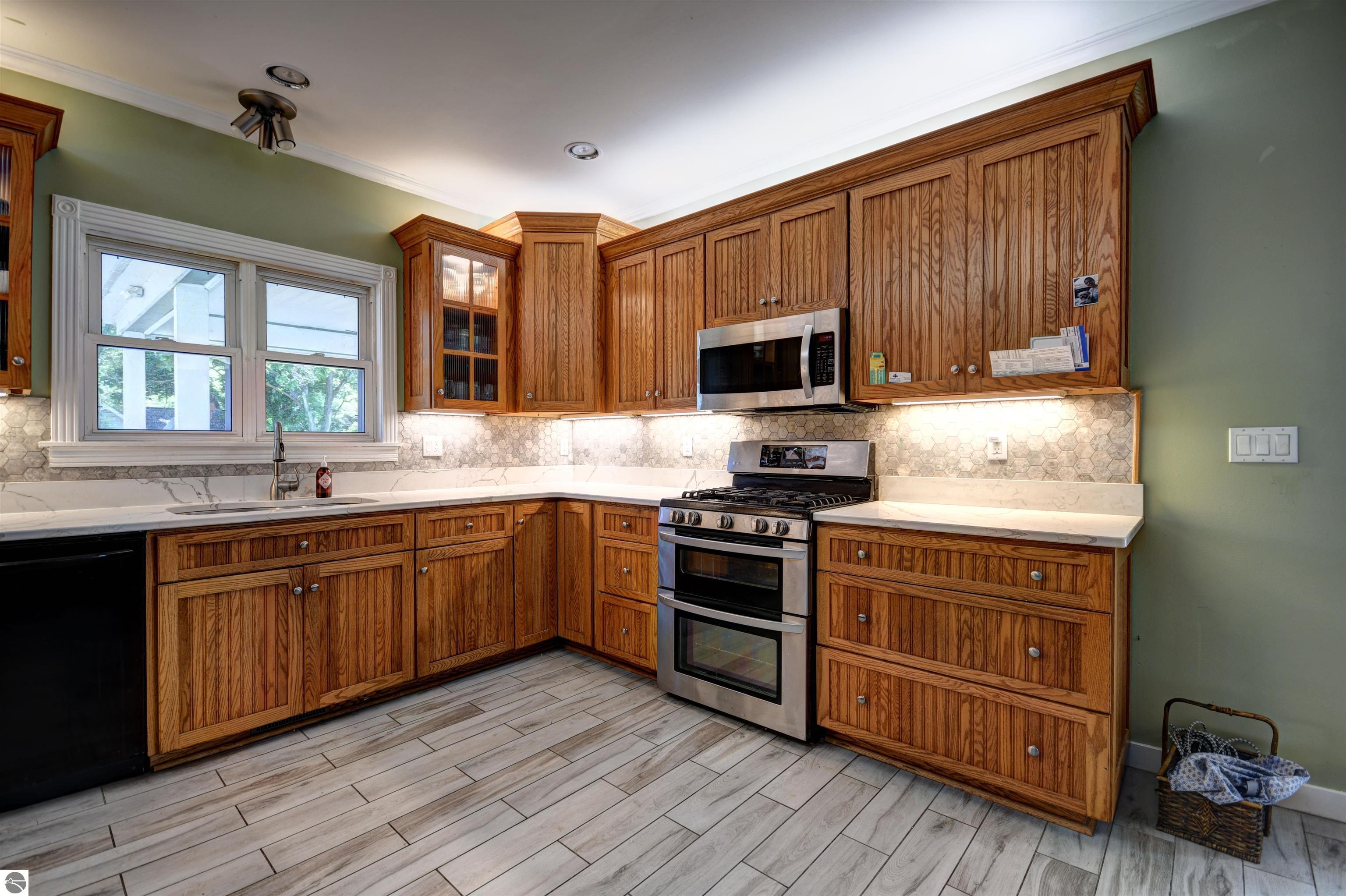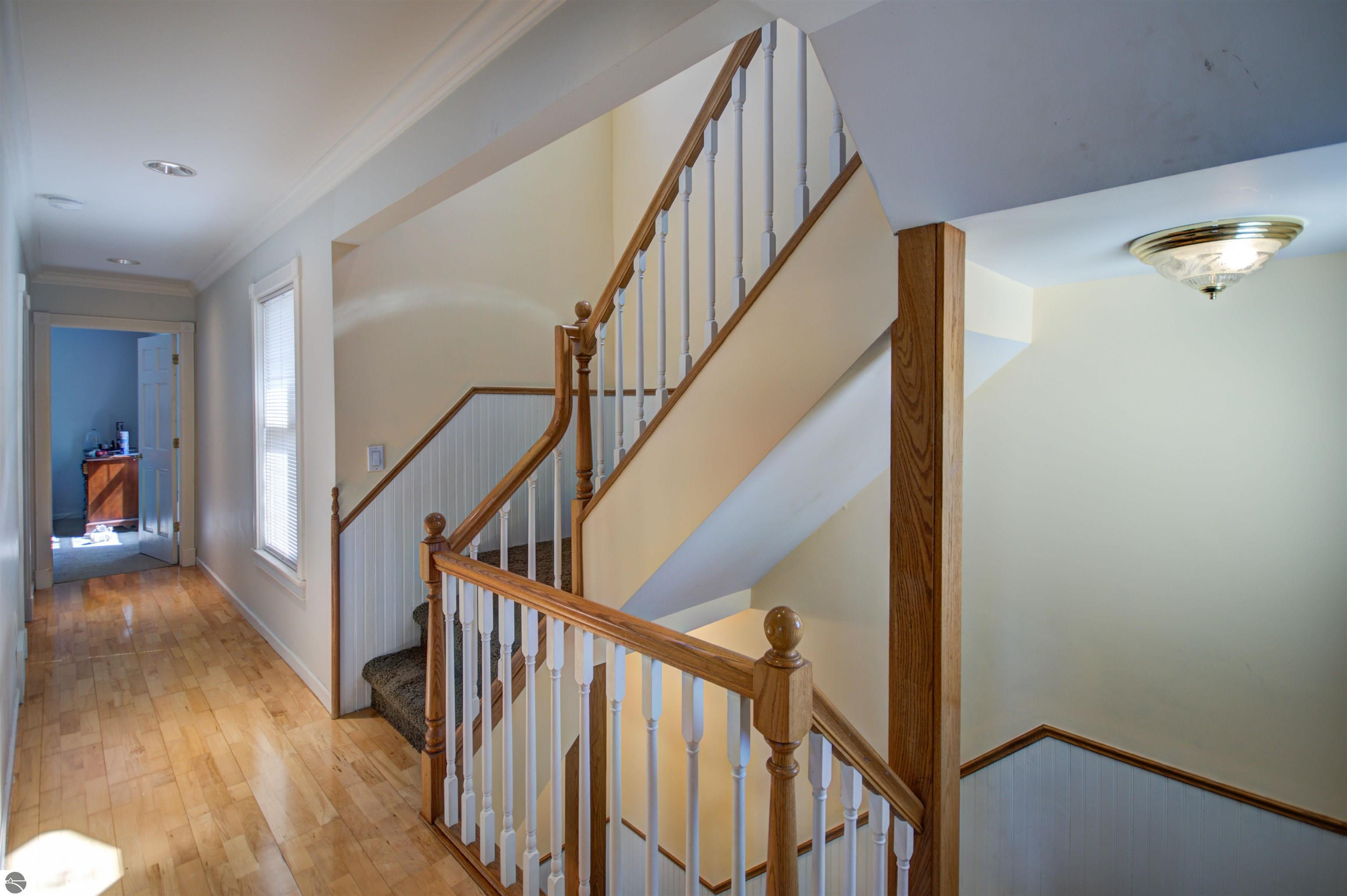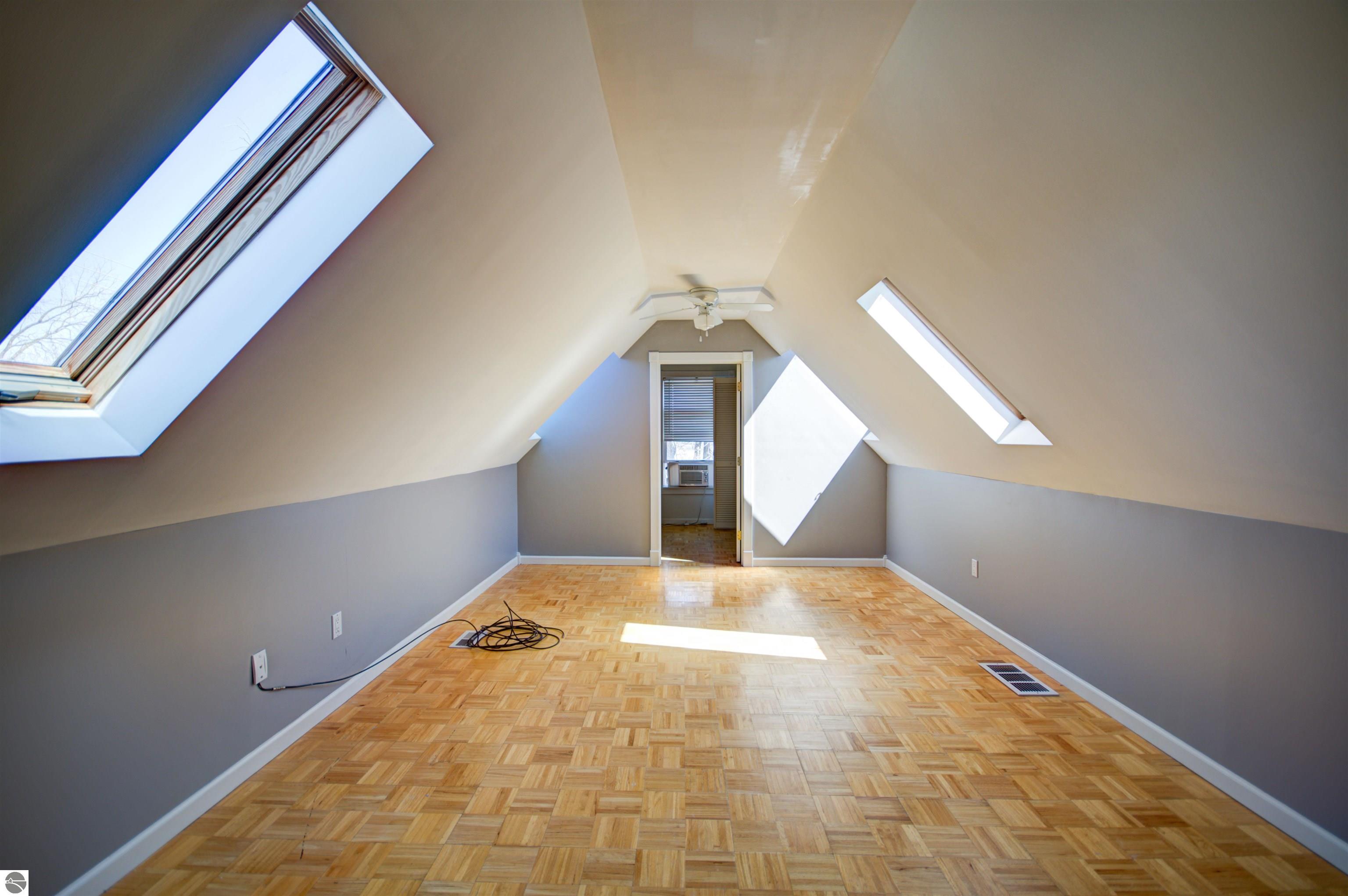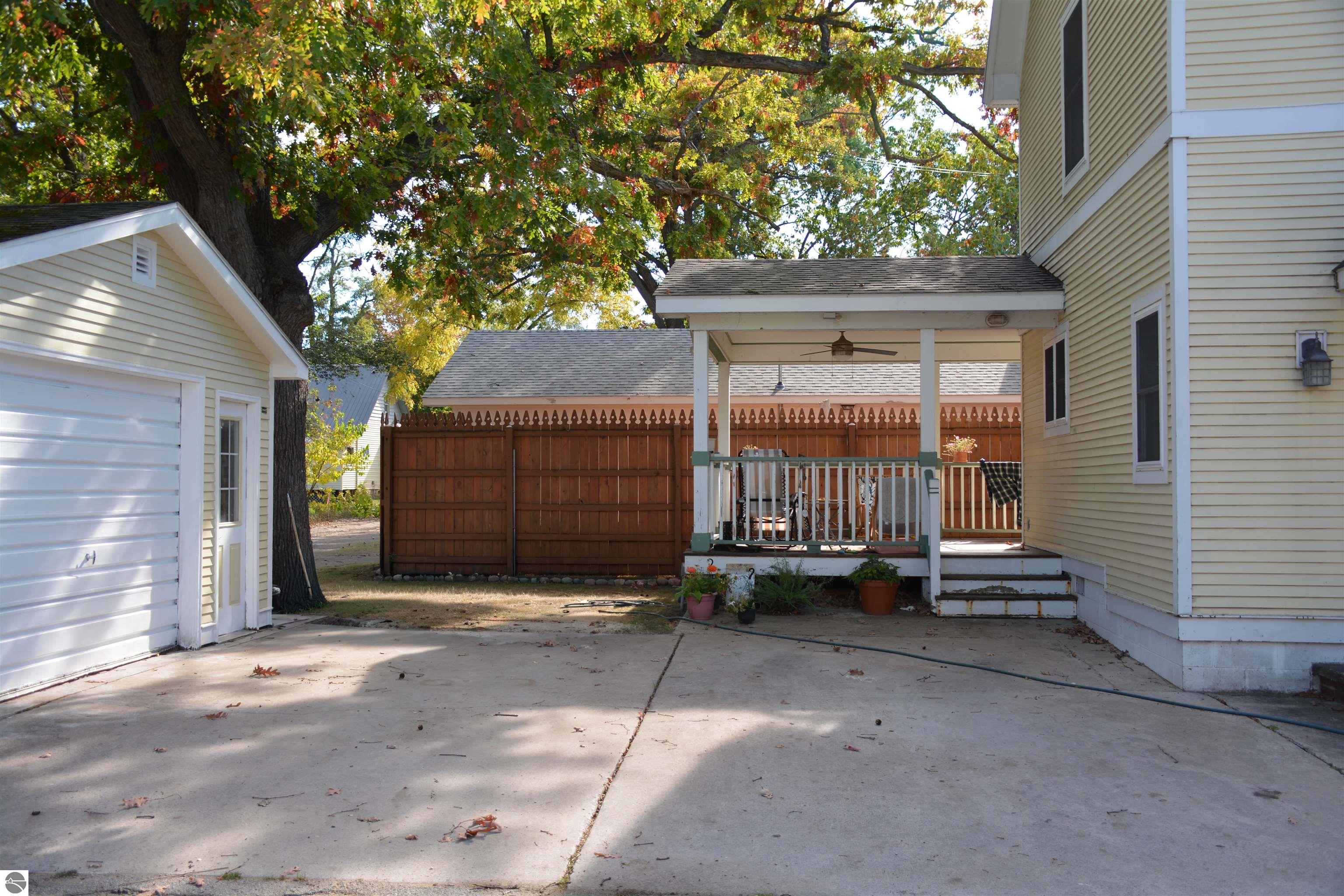 Located in the heart of downtown Traverse City, this 2,640 sq ft, 3-story home spans two parcels and offers a blend of charm, space, and potential. Inside, you'll find solid oak doors, distinctive architectural details, and a kitchen with marble countertops and oak cabinetry that opens onto a covered wrap-around deck. The spacious third-floor bedroom offers flexible use as a primary suite, home office, or studio. Recent updates include 200-amp electrical service, copper plumbing, and central air conditioning for year-round comfort. Exterior features include durable cedar clapboard siding and a welcoming covered front porch. Additionally, the rear of the property has water and sewer connections in place to support the future construction of an accessory dwelling unit. Just blocks from West Grand Traverse Bay, Boardman Lake, the TART Trail, and the public library, this property offers both convenience and investment potential in one of Michigan's most sought-after communities.