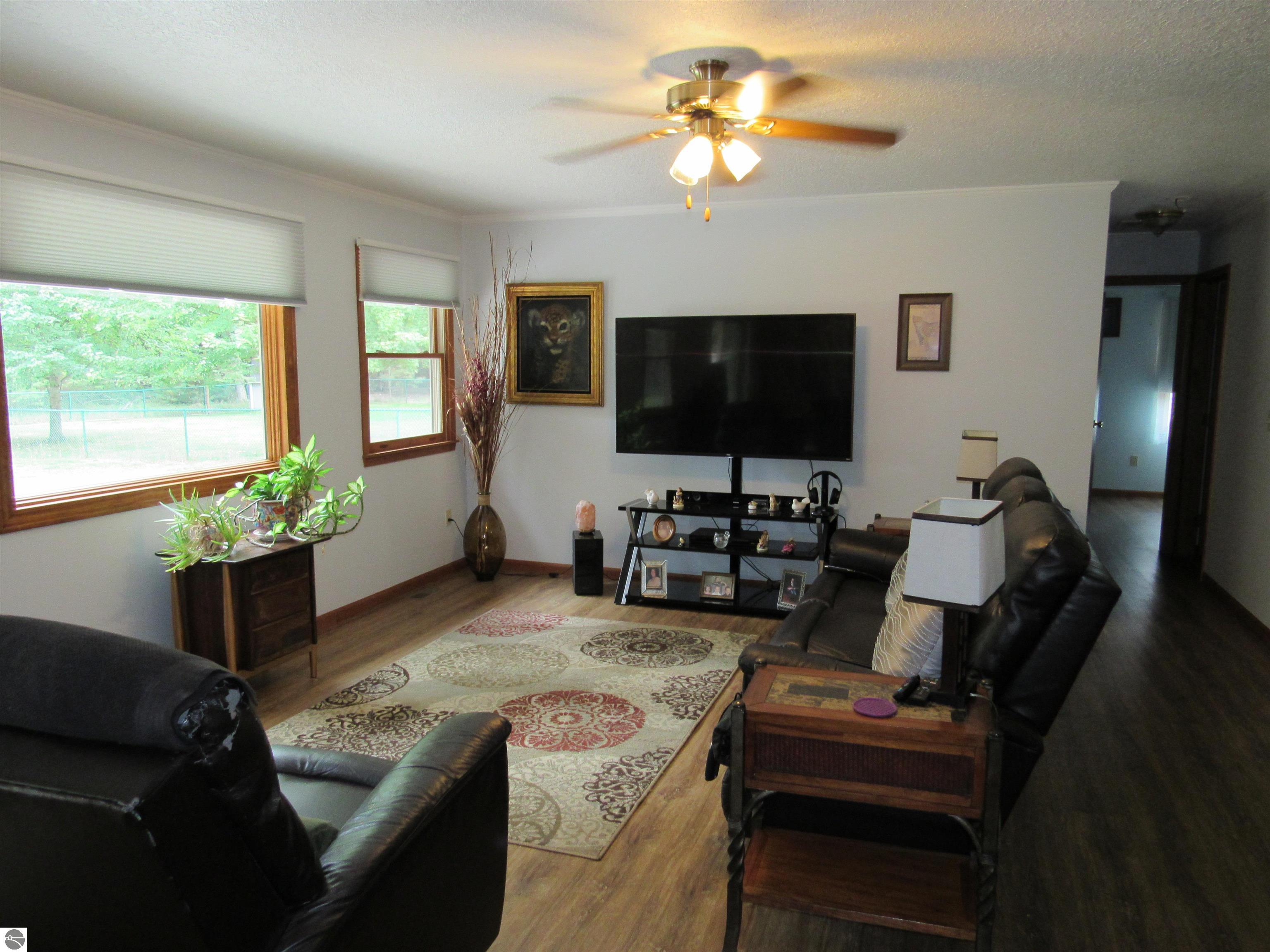 Nice 1410sf home with 3 bedrooms, 1.75 bath. Master bedroom with private bath, large Livingroom, kitchen with slider to back cement patio, laundry room with ON Demand HW heater, attached, finished 2 car garage and a 30x40x12 building W/2 10 ft OH doors. 8x12 Shed. This home is located on just under 2 acres that is all fenced. Paved drive to back garage.