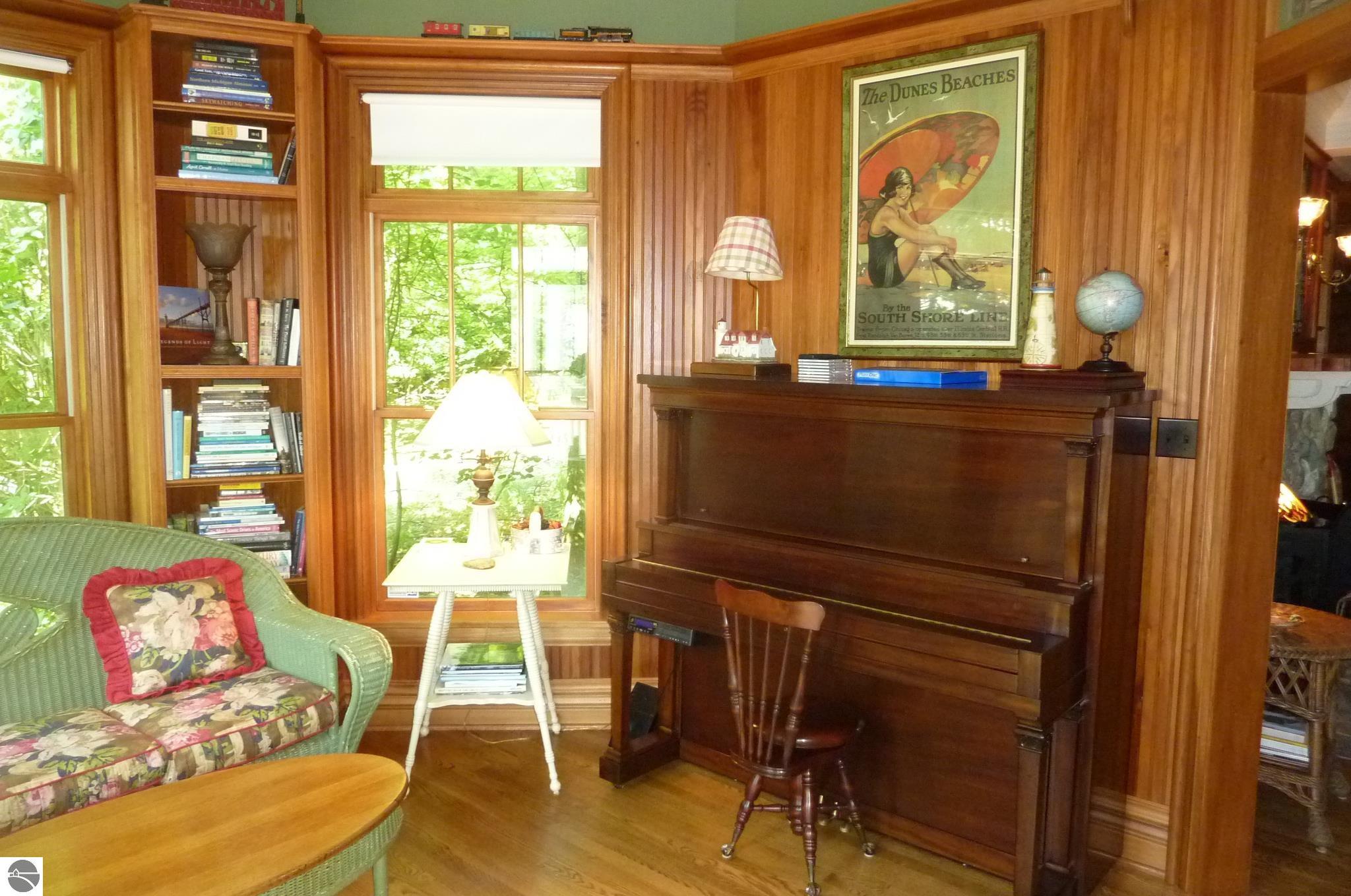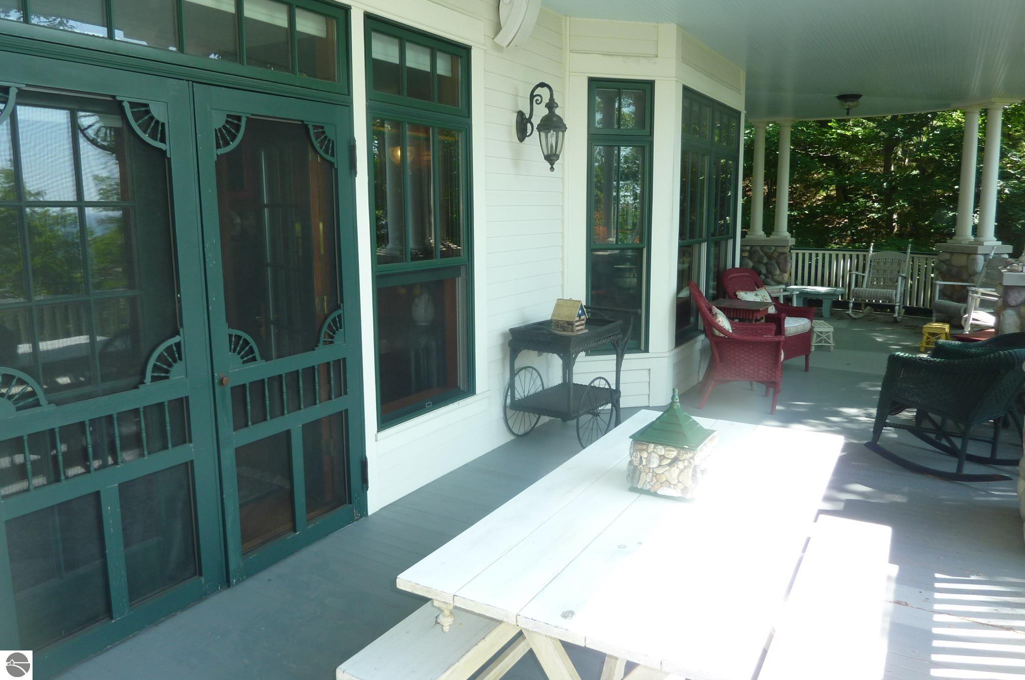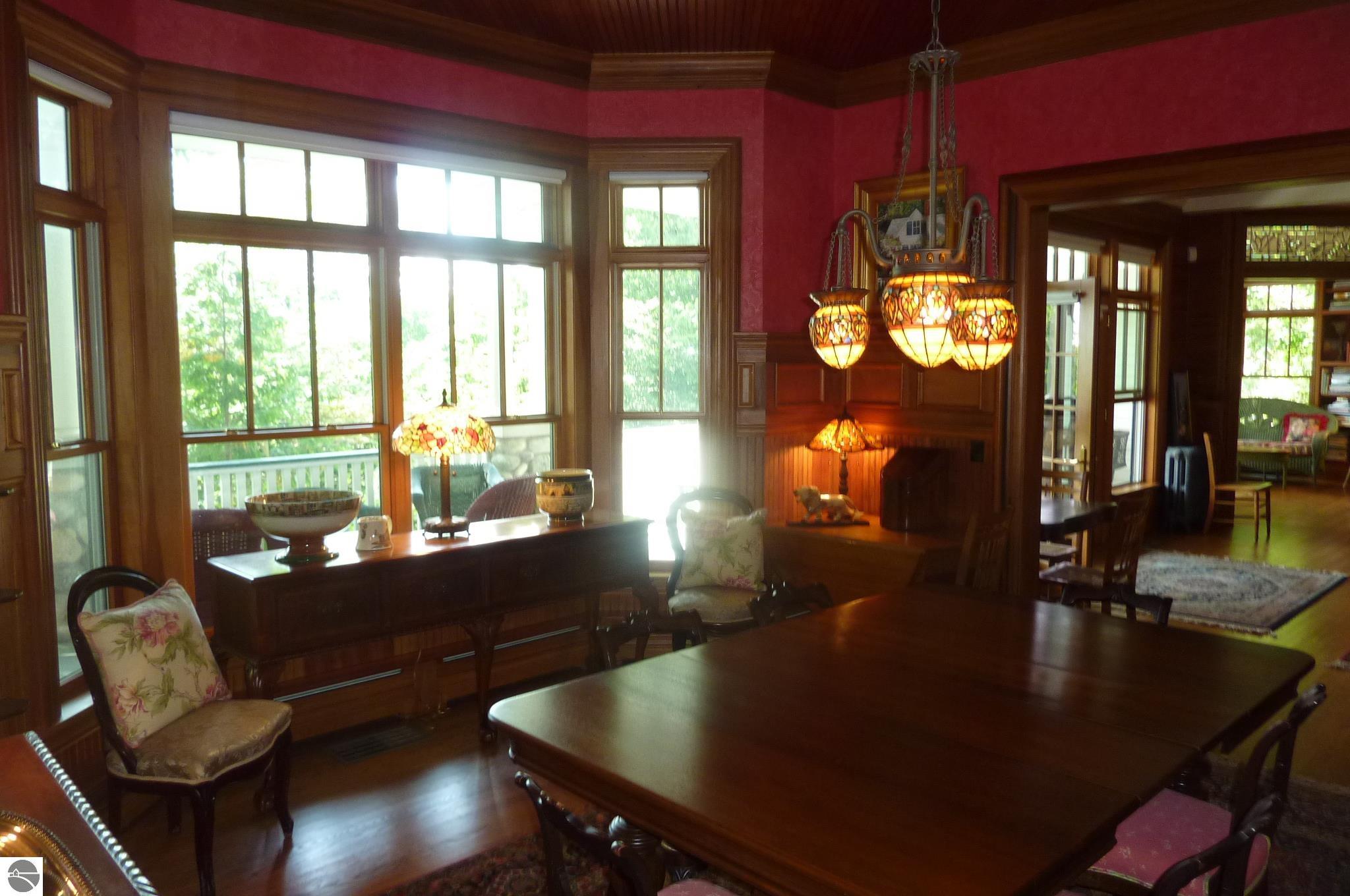 A large, 3 story, Victorian style home built in 2004 with 7 bedrooms, 4 & 1/2 baths, and approximately 5,000 sq. ft. of living space located about 2 miles north of Frankfort. The house is on a high bluff overlooking Lake Michigan. With 3 spacious levels of beautifully crafted wooden interiors, a large family can have its own private spaces or entertain large groups in the main level. The fully equipped kitchen has everything you need including a large walk in pantry. There is a large sunroom that catches the morning rays leading out to a full length deck. The huge master bedroom has a large bath with a jetted tub. A main floor laundry is just off the kitchen near the rear entrance. A hot water heating system is clean and quiet and located in the huge basement where there is lots of storage space, or room for a workshop, or room to create more living space, a game room, theater, wine cellar, etc. All of the listed dimensions are approximate, and there is currently a need for a new driveway access to the home, which must be approved by E,G.L.E. This one of a kind home is in a great location, right next to the CSA, just down the road from the Yacht Club, Point Betsie, and Crystal Downs Country Club, and only a five minute drive into town. Priced at $1,900,000.