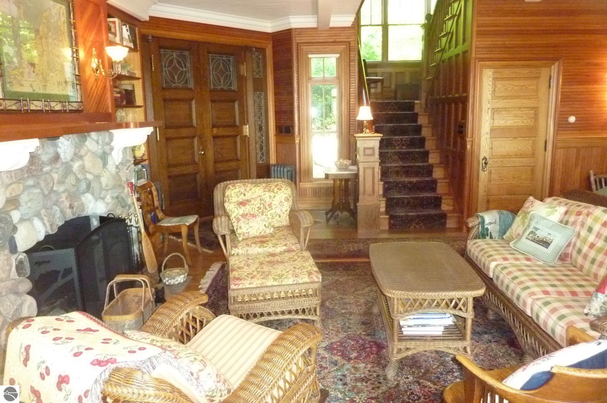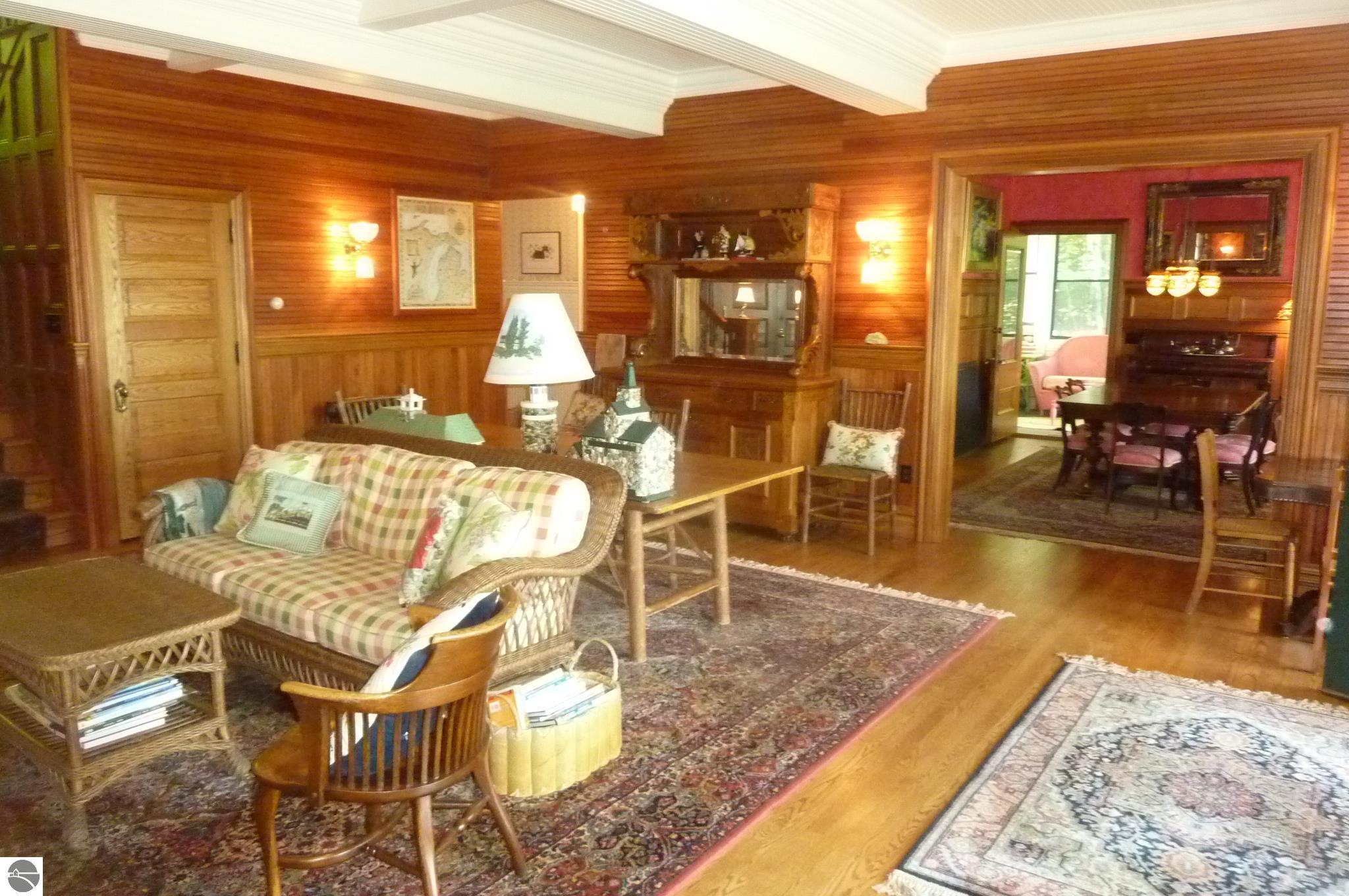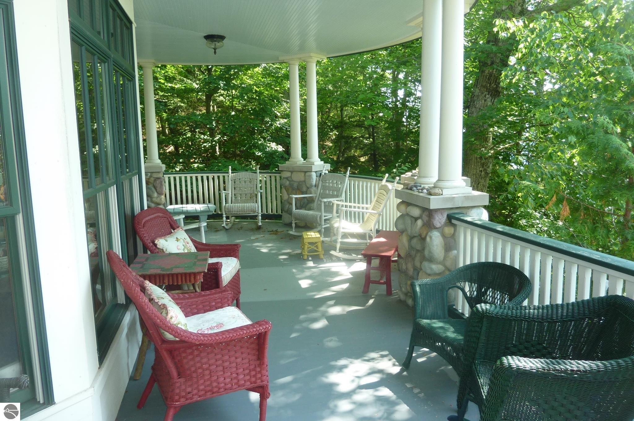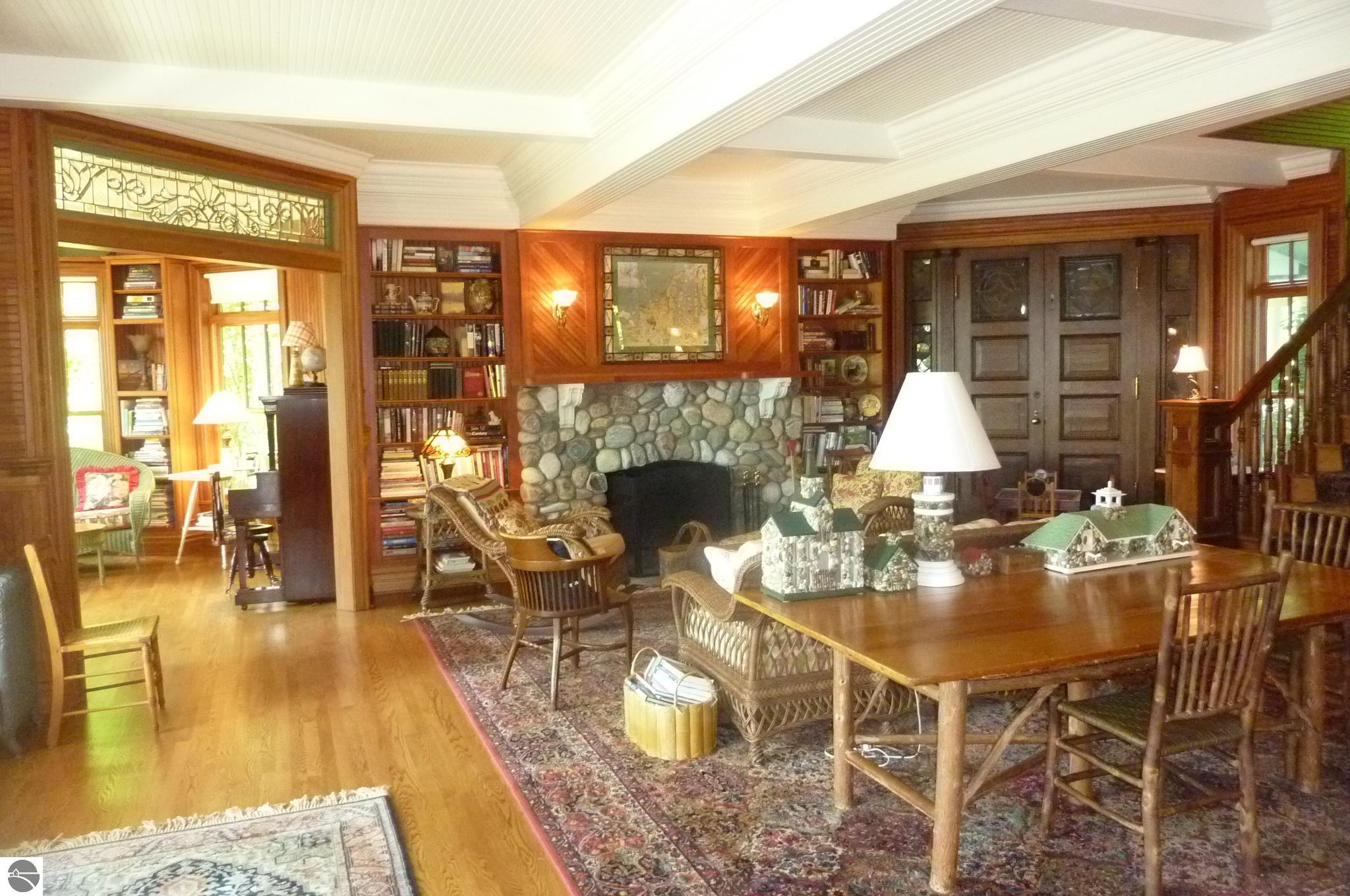 A large, 3 story, Victorian style home built in 2004 with 7 bedrooms, 4 & 1/2 baths, and approximately 5,000 sq. ft. of living space located about 2 miles north of Frankfort. The house is on a high bluff overlooking Lake Michigan. With 3 spacious levels of beautifully crafted wooden interiors, a large family can have its own private spaces or entertain large groups in the main level. The fully equipped kitchen has everything you need including a large walk in pantry. There is a large sunroom that catches the morning rays leading out to a full length deck. The huge master bedroom has a large bath with a jetted tub. A main floor laundry is just off the kitchen near the rear entrance. A hot water heating system is clean and quiet and located in the huge basement where there is lots of storage space, or room for a workshop, or room to create more living space, a game room, theater, wine cellar, etc. All of the listed dimensions are approximate, and there is currently a need for a new driveway access to the home, which must be approved by E,G.L.E. This one of a kind home is in a great location, right next to the CSA, just down the road from the Yacht Club, Point Betsie, and Crystal Downs Country Club, and only a five minute drive into town. Priced at $1,900,000.