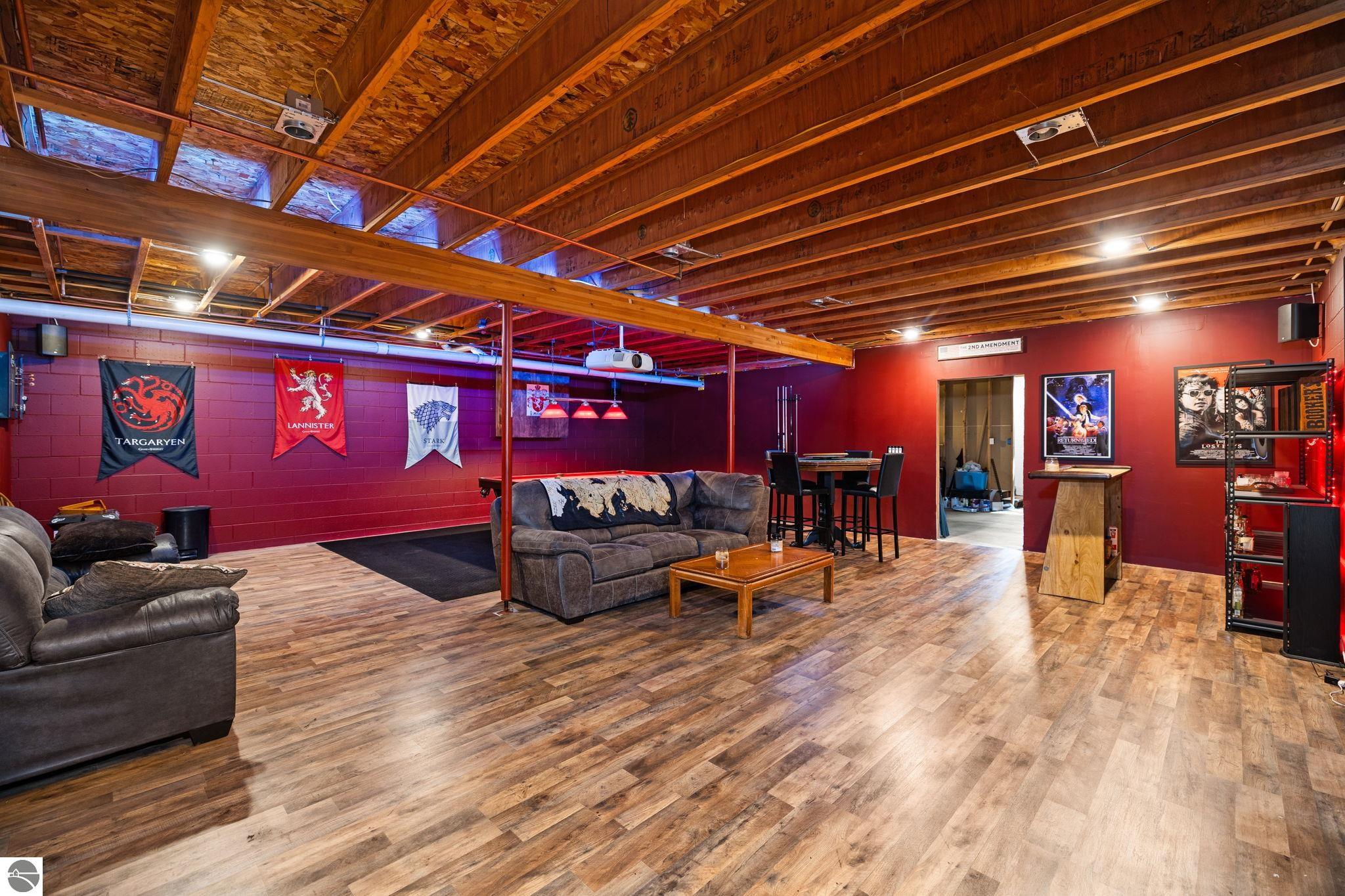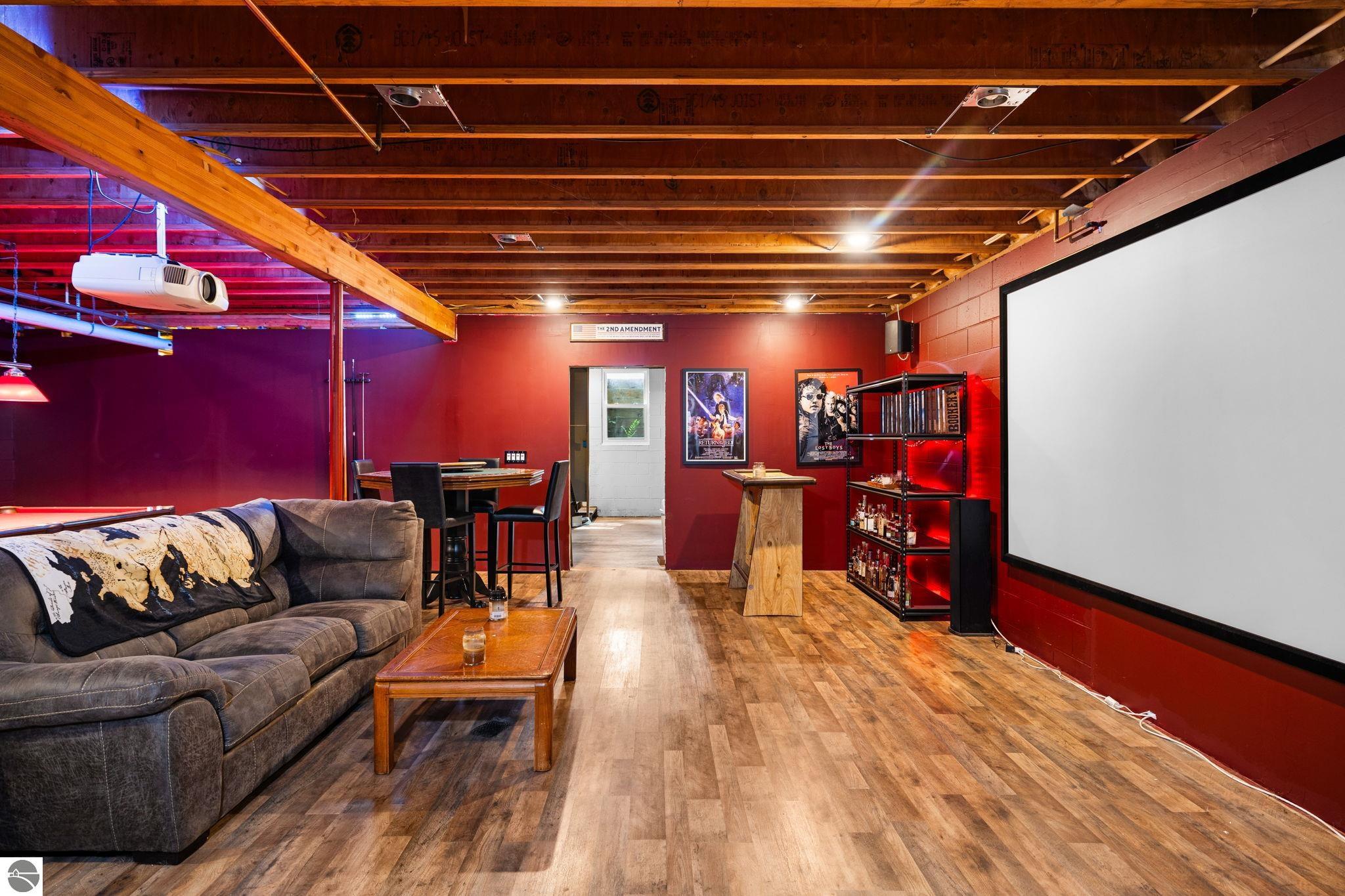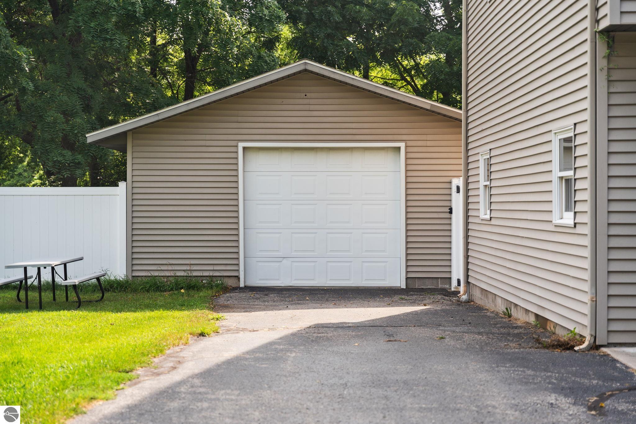 Welcome to your dream home. This stunning residence offers the perfect blend of comfort, style and functionality. Featuring 3 generously sized bedrooms and 3 bathrooms. Each bedroom in Main house has an attached bathroom to bedroom. Primary Bedroom has walk-in closet and full bath with separate tub and shower. Bedroom on Upper level has its own Private Balcony. Gourmet kitchen is a chef's delight with built in oven, and counter space for all of your culinary creativity. Coffee bar area, dining area with bay window over looking front yard. Spacious area flow seamlessly to make entertaining a breeze. This home is ideal for both the everyday living, entertaining guests, Air BNB, or rental possibilities. This home has a Mother-in-Law Suite with entrances from the garage or the 2nd story hallway, an Oak Kitchen, formal living room with private balcony, 2 full baths and laundry room, large bedrooms, and a very large 2nd living space. Home has a full basement, with large entertaining area with 135" projector screen, projector and surround sound for all your movie desires, pool table and poker table. There is a bonus room in basement with egress window they have used for guests. This home has solid wood doors, and ample storage space throughout the home. Home also boasts a 3 car attached heated garage, 20x24 detached garage, large fenced in area off back for privacy or pets, mature trees, asphalt driveway, underground sprinkler system, wildlife galore, and all this and it's even sitting overlooking Manistee Lake. Trees have grown across the street where you can't see the lake only in the Fall, Winter and early Spring months. Brand new roof in July 2025 with transferable warranty!!!