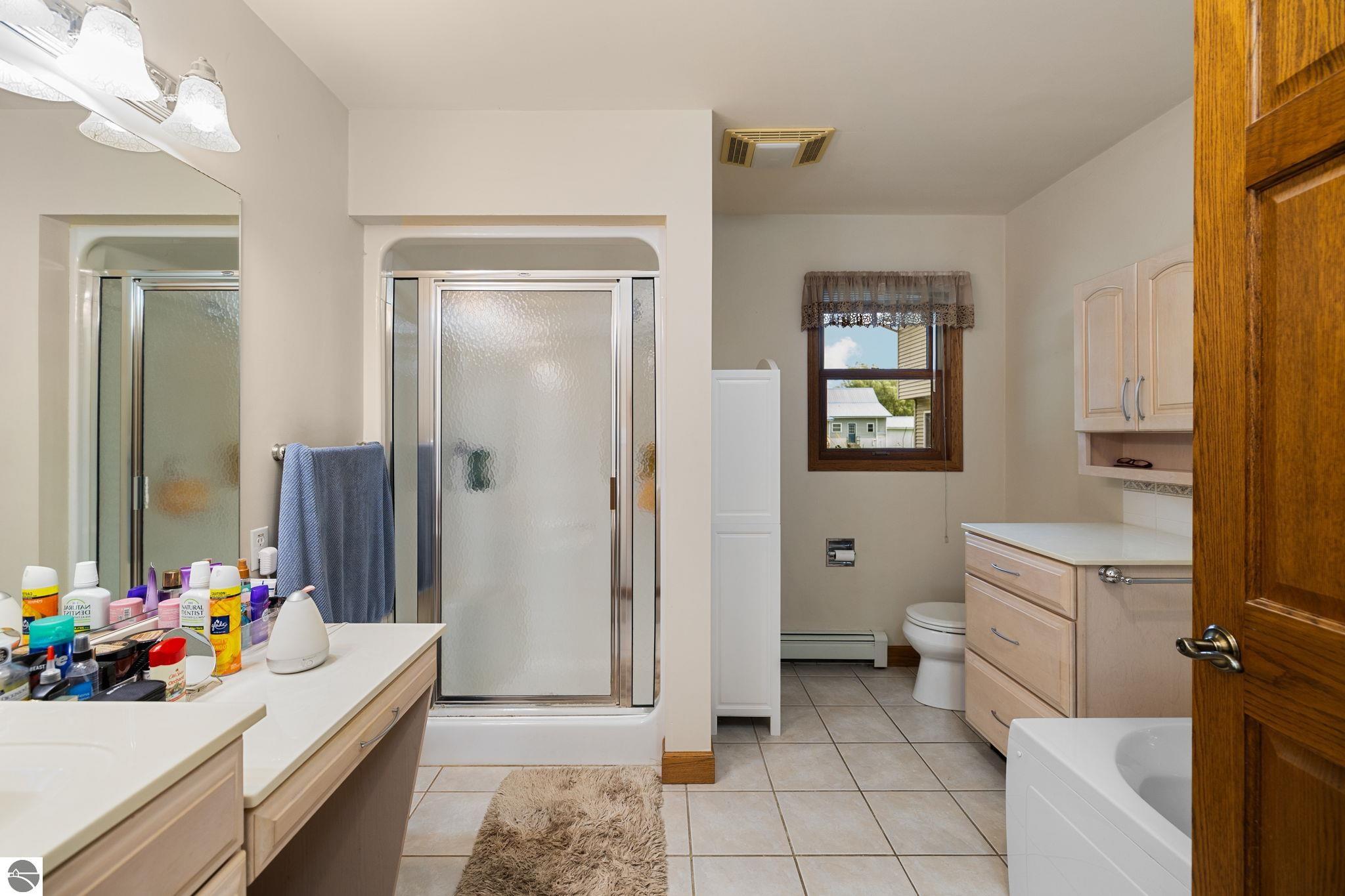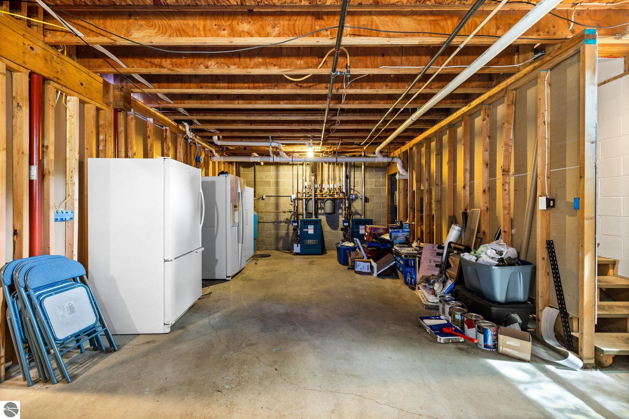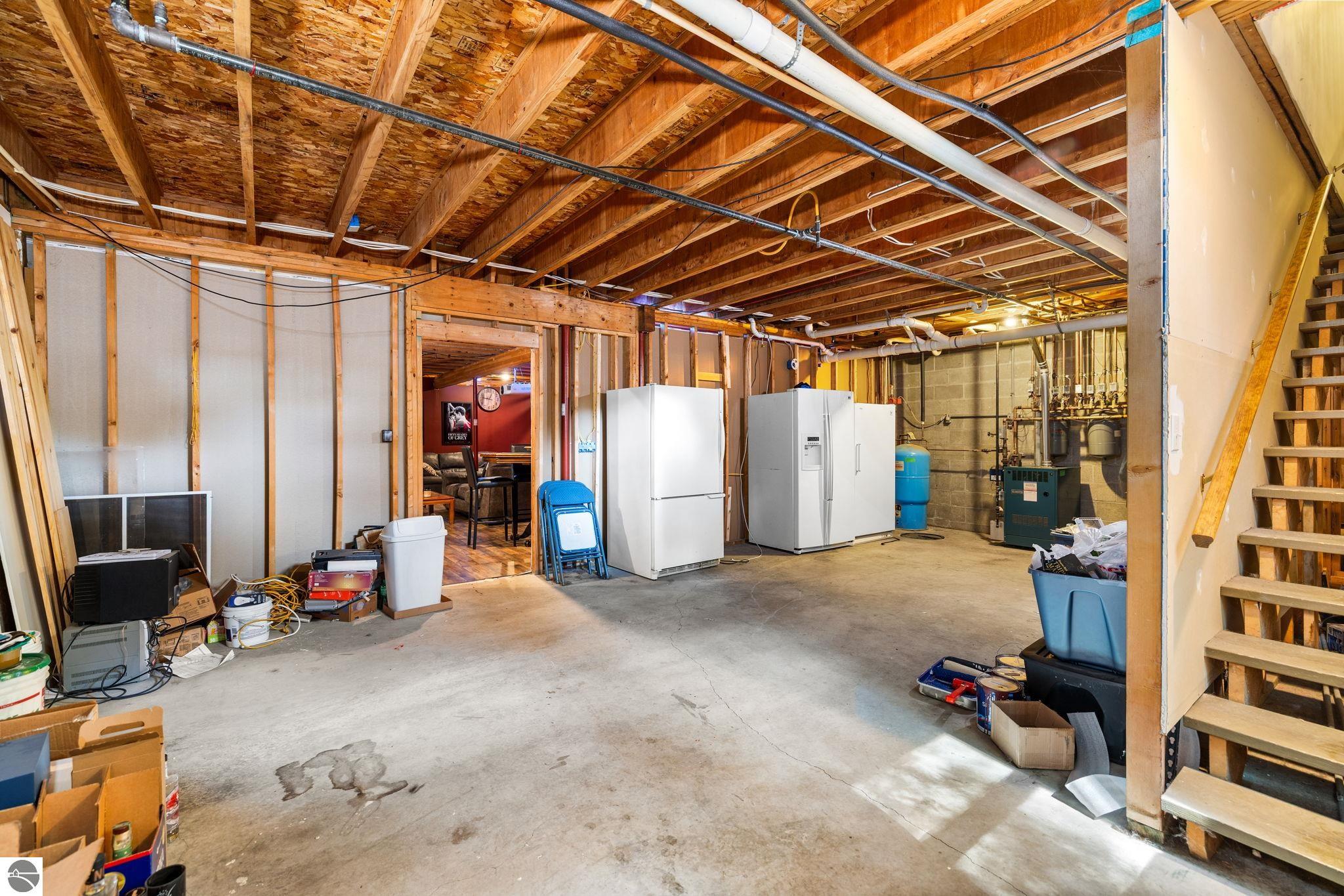 Welcome to your dream home. This stunning residence offers the perfect blend of comfort, style and functionality. Featuring 3 generously sized bedrooms and 3 bathrooms. Each bedroom in Main house has an attached bathroom to bedroom. Primary Bedroom has walk-in closet and full bath with separate tub and shower. Bedroom on Upper level has its own Private Balcony. Gourmet kitchen is a chef's delight with built in oven, and counter space for all of your culinary creativity. Coffee bar area, dining area with bay window over looking front yard. Spacious area flow seamlessly to make entertaining a breeze. This home is ideal for both the everyday living, entertaining guests, Air BNB, or rental possibilities. This home has a Mother-in-Law Suite with entrances from the garage or the 2nd story hallway, an Oak Kitchen, formal living room with private balcony, 2 full baths and laundry room, large bedrooms, and a very large 2nd living space. Home has a full basement, with large entertaining area with 135" projector screen, projector and surround sound for all your movie desires, pool table and poker table. There is a bonus room in basement with egress window they have used for guests. This home has solid wood doors, and ample storage space throughout the home. Home also boasts a 3 car attached heated garage, 20x24 detached garage, large fenced in area off back for privacy or pets, mature trees, asphalt driveway, underground sprinkler system, wildlife galore, and all this and it's even sitting overlooking Manistee Lake. Trees have grown across the street where you can't see the lake only in the Fall, Winter and early Spring months. Brand new roof in July 2025 with transferable warranty!!!