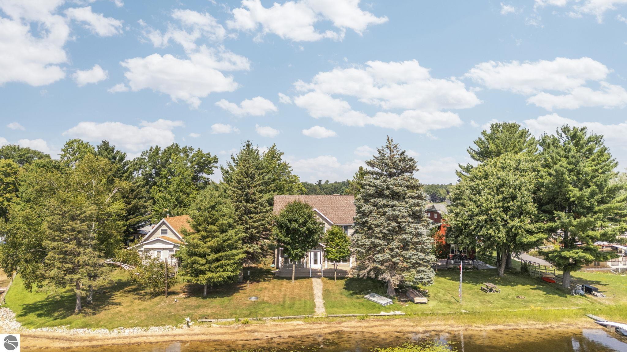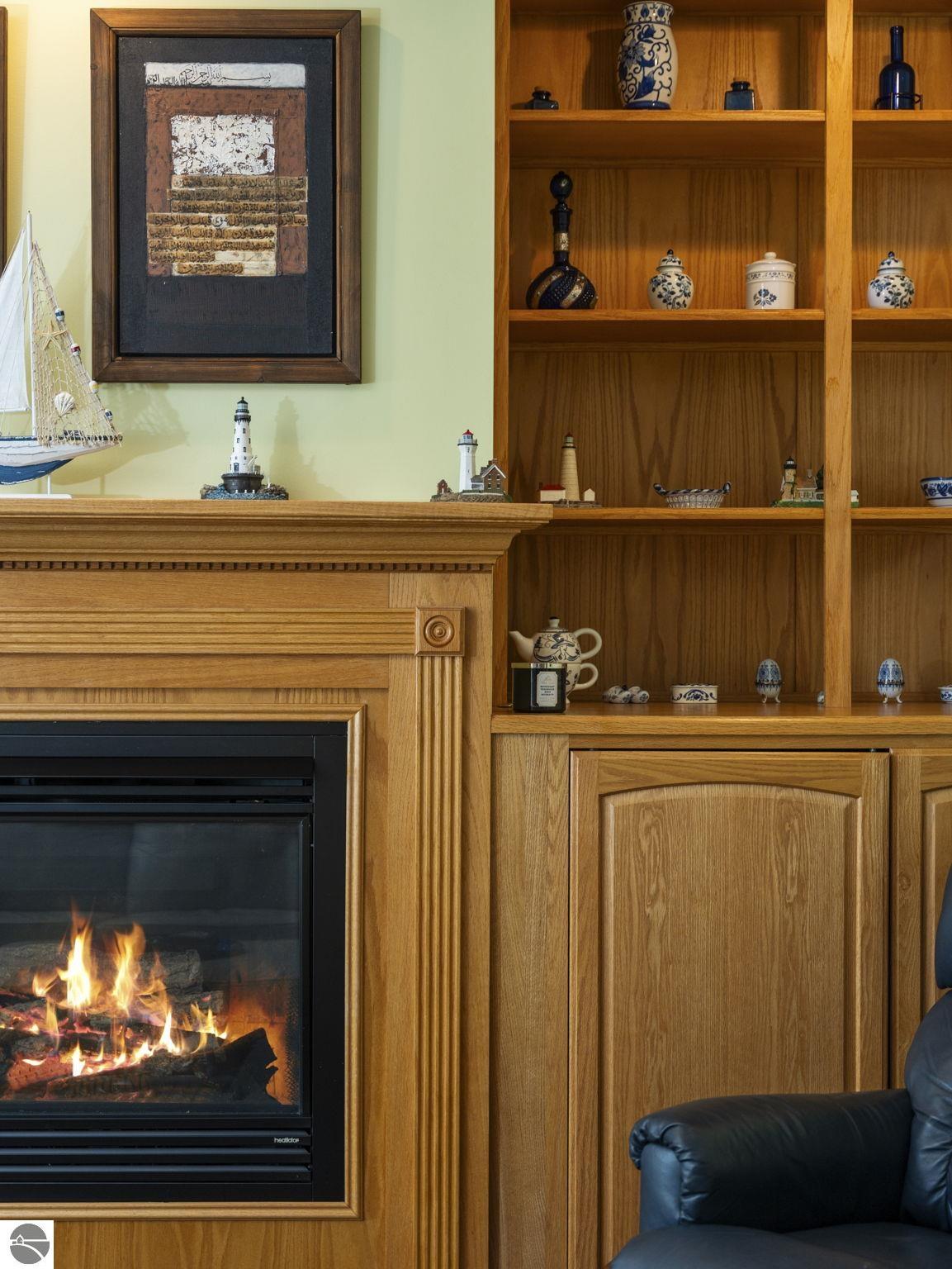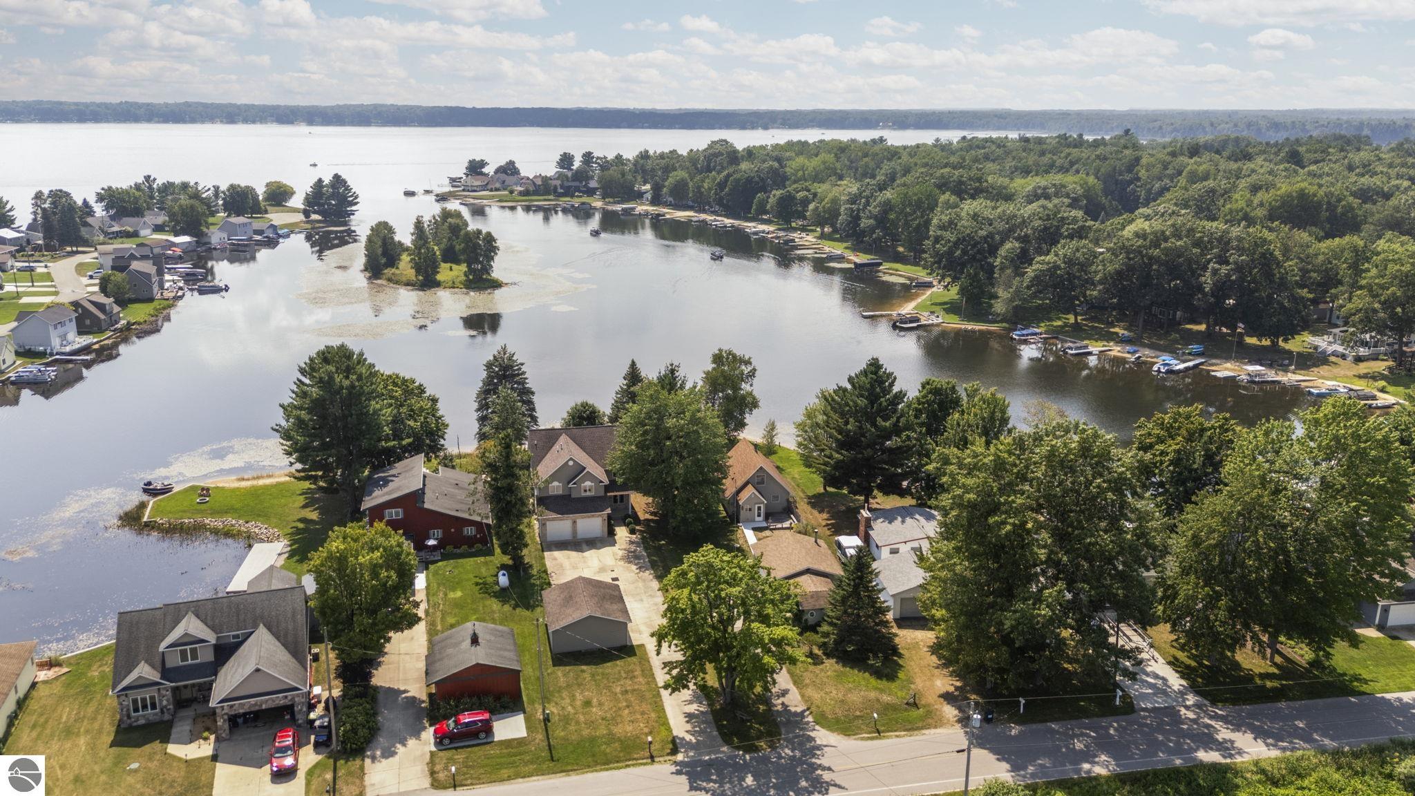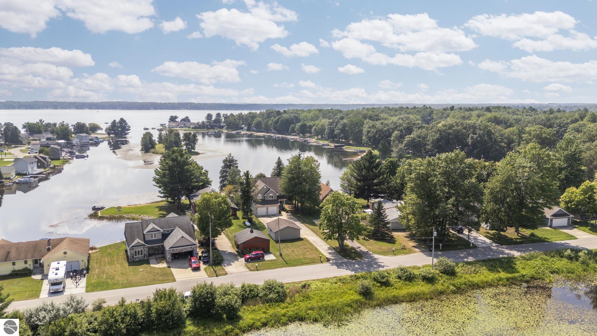 Welcome to your dream retreat on the lake, where stunning water views can be enjoyed from both sides of the home! This thoughtfully designed home blends comfort, style, and convenience for year-round living or the perfect getaway. This 3-bedroom home also includes a versatile main-floor room currently used as an office, which could serve as a 4th bedroom, guest space, or hobby room—giving you flexibility to fit your lifestyle. Step inside to an inviting open-concept living room, dining room, and kitchen; ideal for relaxing or entertaining. The living room features a cozy gas fireplace, and custom cabinetry designed for both beauty and function—perfect for displaying family photos or cherished mementos, with hidden storage that neatly conceals the TV when not in use. The kitchen is a chef’s delight with a cooktop stove, built-in microwave and oven, gorgeous countertops, and ample storage to keep things clutter-free. There is also a bright and spacious 4-season room that can be opened to the main living area or closed off for privacy. With its many windows, cozy gas fireplace, and walkout access to the water, it’s the perfect spot to soak in natural light and enjoy the lake views. A convenient laundry room and half bath complete the main level. The master suite is a true retreat, featuring a vaulted ceiling, large windows with breathtaking lake views, 2 walk-in closets, an oversized walk-in shower, and spacious vanity. Upstairs, a charming sitting area offers a quiet spot for reading or unwinding, while the additional bedrooms enjoy their own generous bathroom. Outside, you’ll find two garages—one 2 car attached garage with mechanicals thoughtfully located for easy service access, and another 2 car detached garage; perfect for lake toys and storage. A cement driveway ensures plenty of parking for you and your guests. Best of all, the walkway to the water has no steps, making it easy to get to the shoreline.Summer is not over yet; come see what lake life is all about!