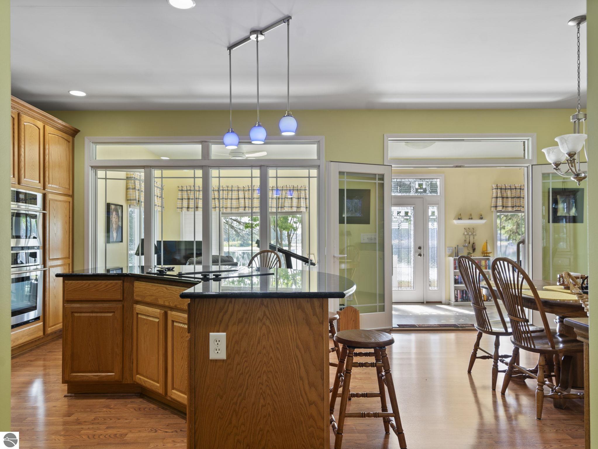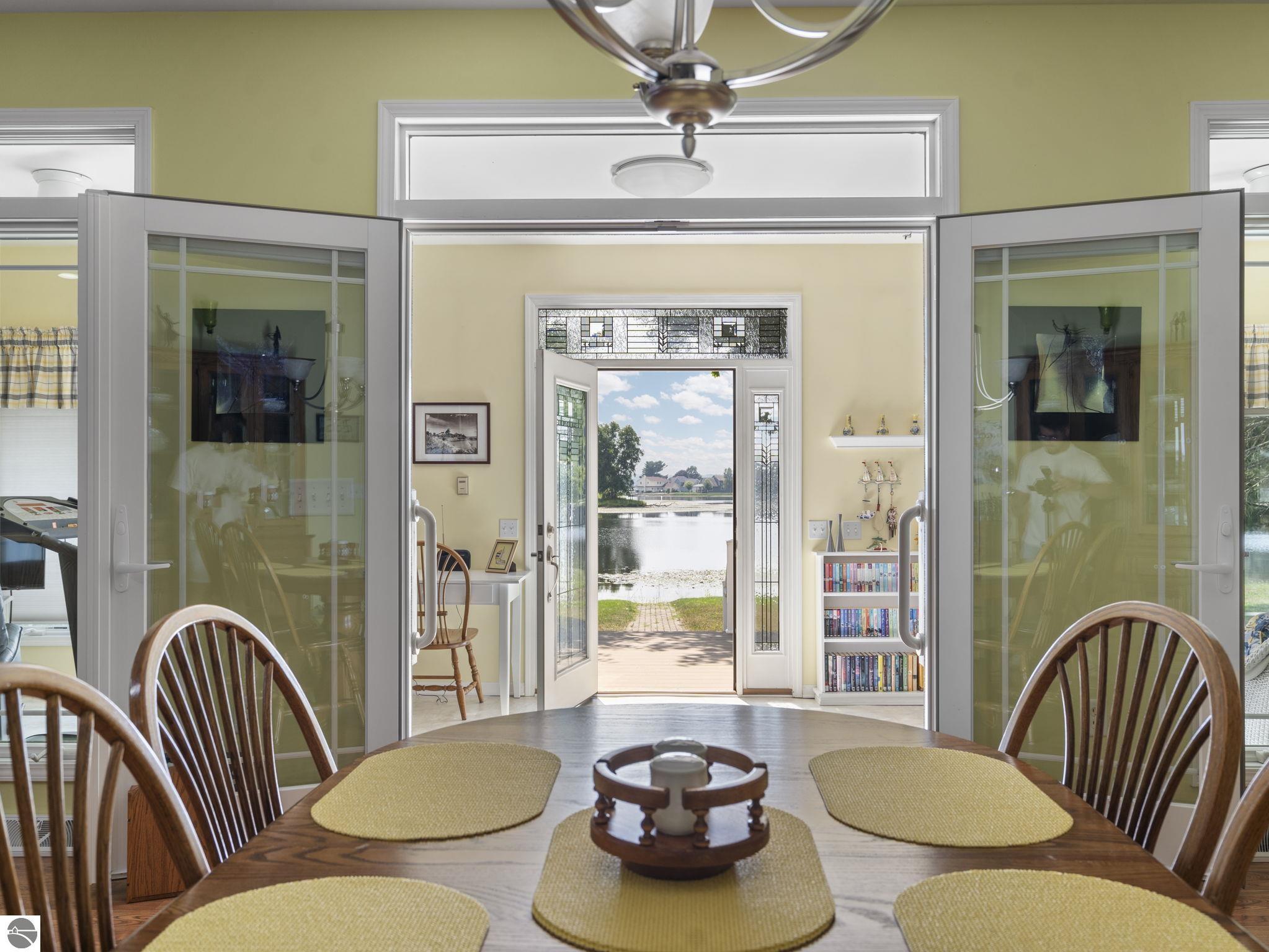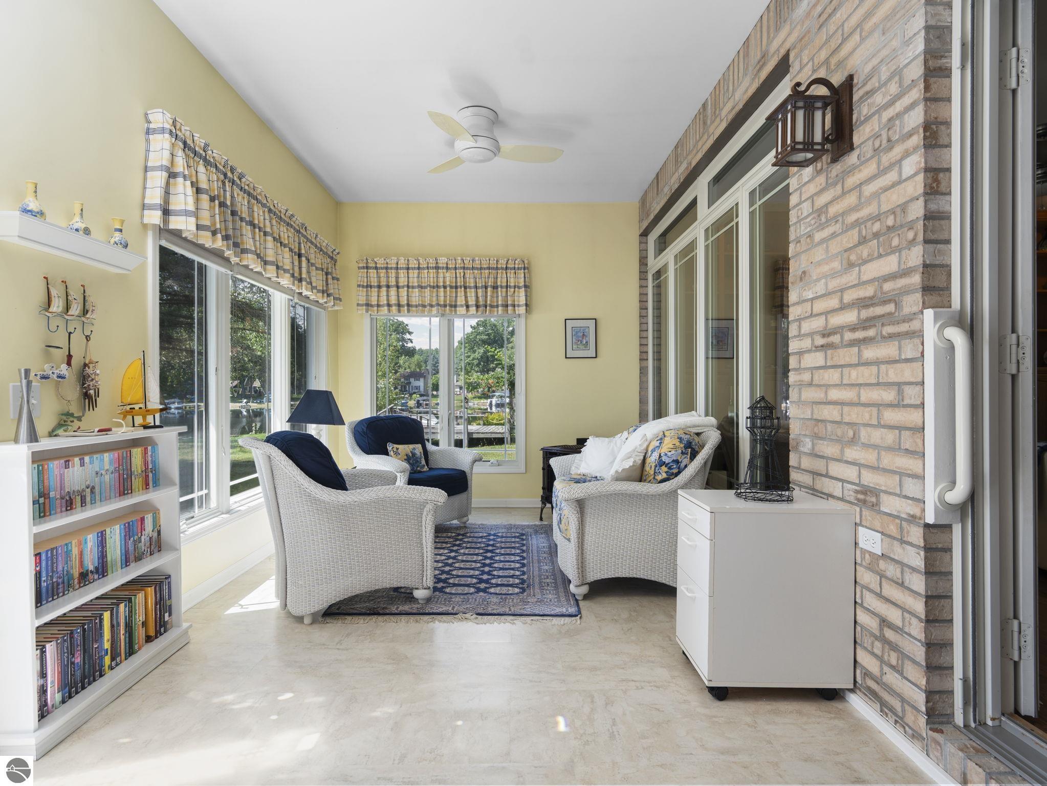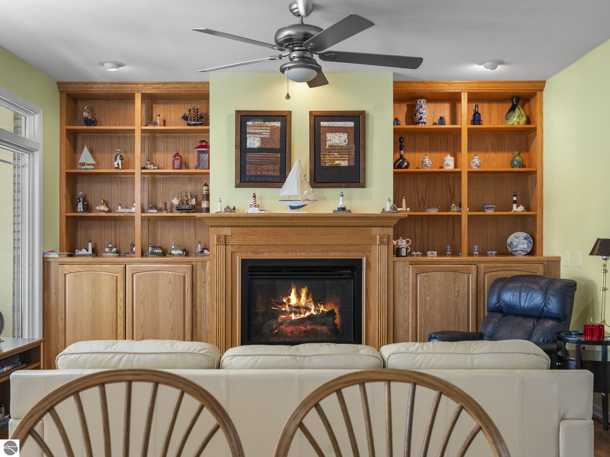 Welcome to your dream retreat on the lake, where stunning water views can be enjoyed from both sides of the home! This thoughtfully designed home blends comfort, style, and convenience for year-round living or the perfect getaway. This 3-bedroom home also includes a versatile main-floor room currently used as an office, which could serve as a 4th bedroom, guest space, or hobby room—giving you flexibility to fit your lifestyle. Step inside to an inviting open-concept living room, dining room, and kitchen; ideal for relaxing or entertaining. The living room features a cozy gas fireplace, and custom cabinetry designed for both beauty and function—perfect for displaying family photos or cherished mementos, with hidden storage that neatly conceals the TV when not in use. The kitchen is a chef’s delight with a cooktop stove, built-in microwave and oven, gorgeous countertops, and ample storage to keep things clutter-free. There is also a bright and spacious 4-season room that can be opened to the main living area or closed off for privacy. With its many windows, cozy gas fireplace, and walkout access to the water, it’s the perfect spot to soak in natural light and enjoy the lake views. A convenient laundry room and half bath complete the main level. The master suite is a true retreat, featuring a vaulted ceiling, large windows with breathtaking lake views, 2 walk-in closets, an oversized walk-in shower, and spacious vanity. Upstairs, a charming sitting area offers a quiet spot for reading or unwinding, while the additional bedrooms enjoy their own generous bathroom. Outside, you’ll find two garages—one 2 car attached garage with mechanicals thoughtfully located for easy service access, and another 2 car detached garage; perfect for lake toys and storage. A cement driveway ensures plenty of parking for you and your guests. Best of all, the walkway to the water has no steps, making it easy to get to the shoreline.Summer is not over yet; come see what lake life is all about!