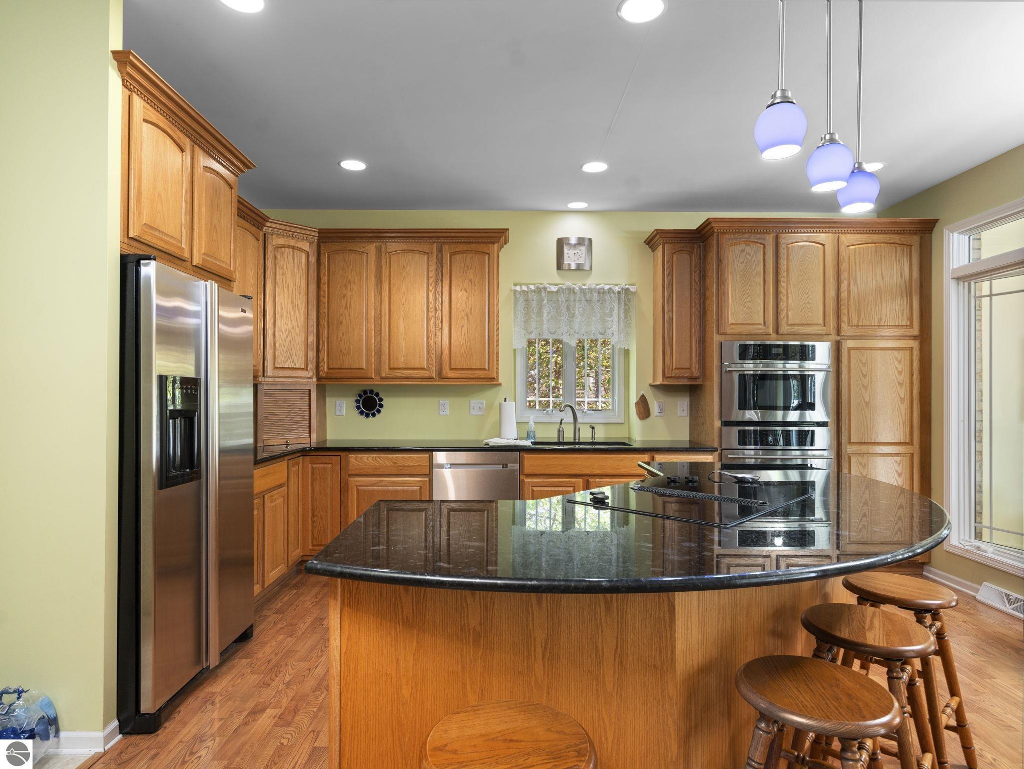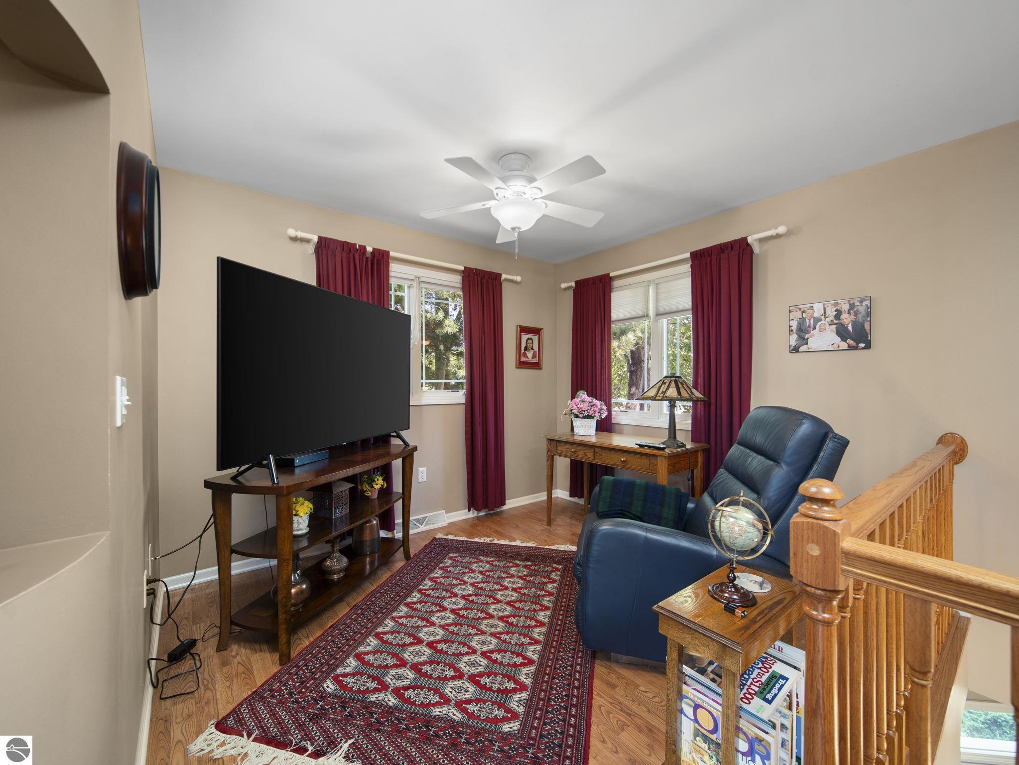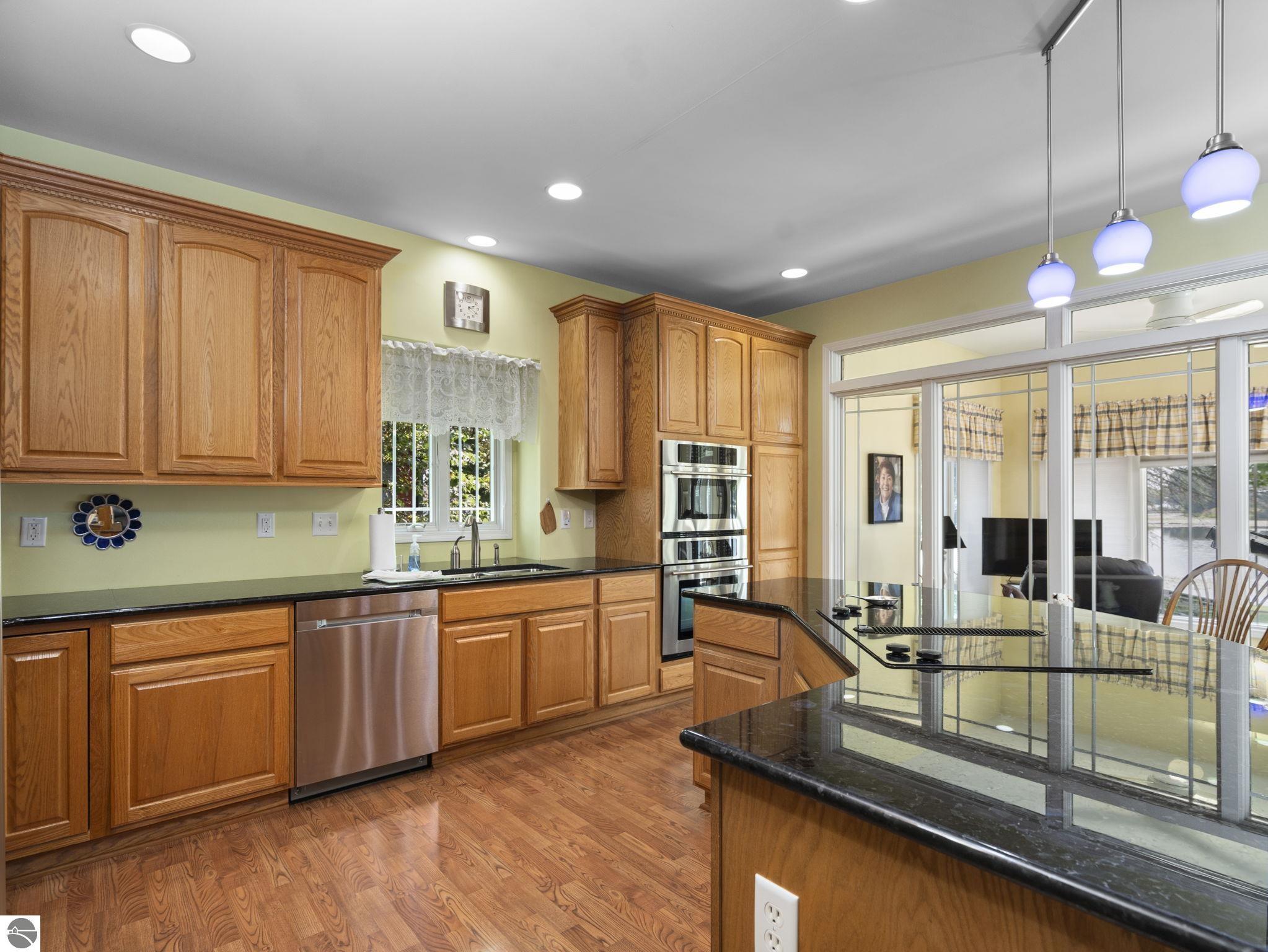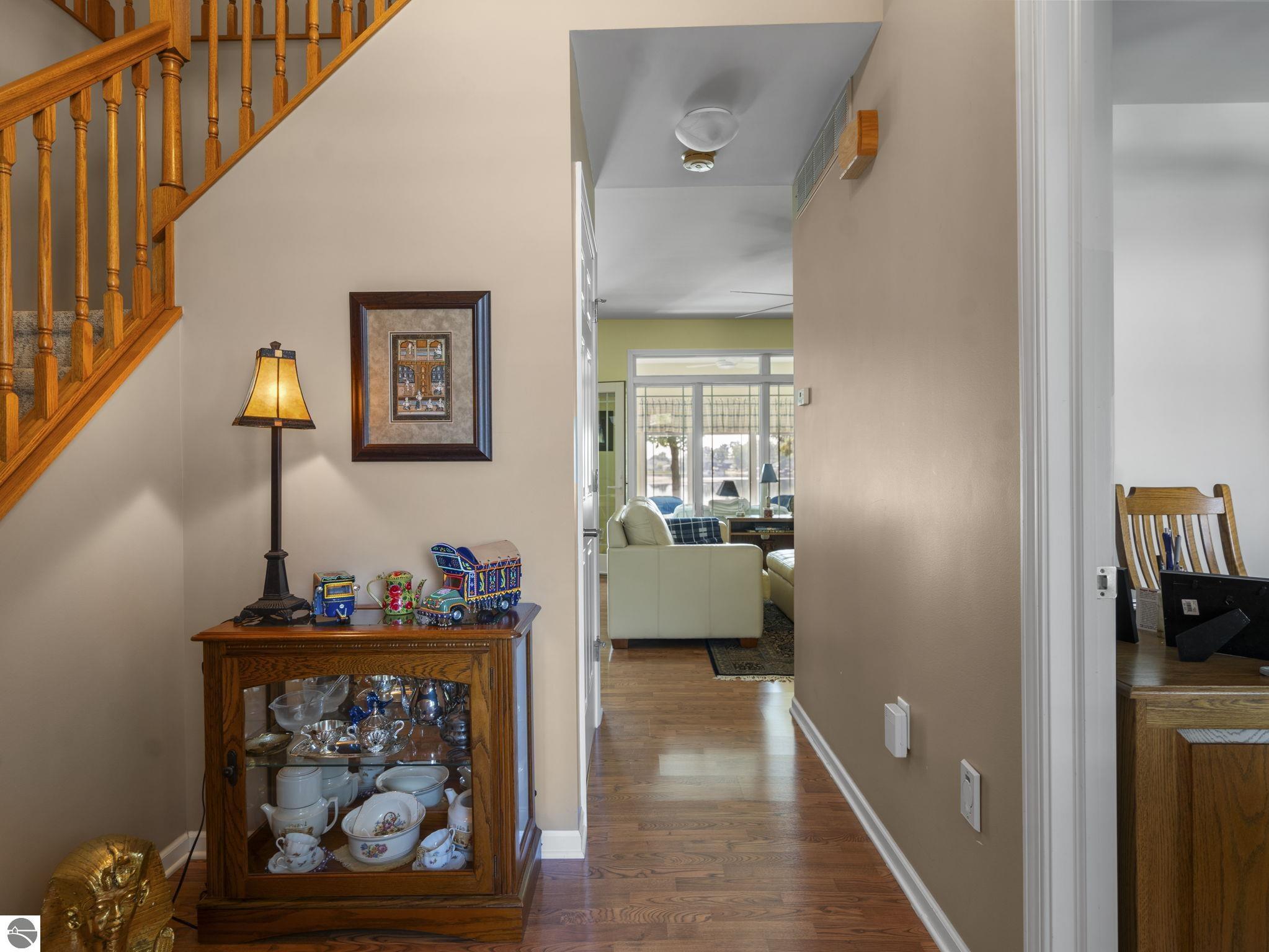 Welcome to your dream retreat on the lake, where stunning water views can be enjoyed from both sides of the home! This thoughtfully designed home blends comfort, style, and convenience for year-round living or the perfect getaway. This 3-bedroom home also includes a versatile main-floor room currently used as an office, which could serve as a 4th bedroom, guest space, or hobby room—giving you flexibility to fit your lifestyle. Step inside to an inviting open-concept living room, dining room, and kitchen; ideal for relaxing or entertaining. The living room features a cozy gas fireplace, and custom cabinetry designed for both beauty and function—perfect for displaying family photos or cherished mementos, with hidden storage that neatly conceals the TV when not in use. The kitchen is a chef’s delight with a cooktop stove, built-in microwave and oven, gorgeous countertops, and ample storage to keep things clutter-free. There is also a bright and spacious 4-season room that can be opened to the main living area or closed off for privacy. With its many windows, cozy gas fireplace, and walkout access to the water, it’s the perfect spot to soak in natural light and enjoy the lake views. A convenient laundry room and half bath complete the main level. The master suite is a true retreat, featuring a vaulted ceiling, large windows with breathtaking lake views, 2 walk-in closets, an oversized walk-in shower, and spacious vanity. Upstairs, a charming sitting area offers a quiet spot for reading or unwinding, while the additional bedrooms enjoy their own generous bathroom. Outside, you’ll find two garages—one 2 car attached garage with mechanicals thoughtfully located for easy service access, and another 2 car detached garage; perfect for lake toys and storage. A cement driveway ensures plenty of parking for you and your guests. Best of all, the walkway to the water has no steps, making it easy to get to the shoreline.Summer is not over yet; come see what lake life is all about!