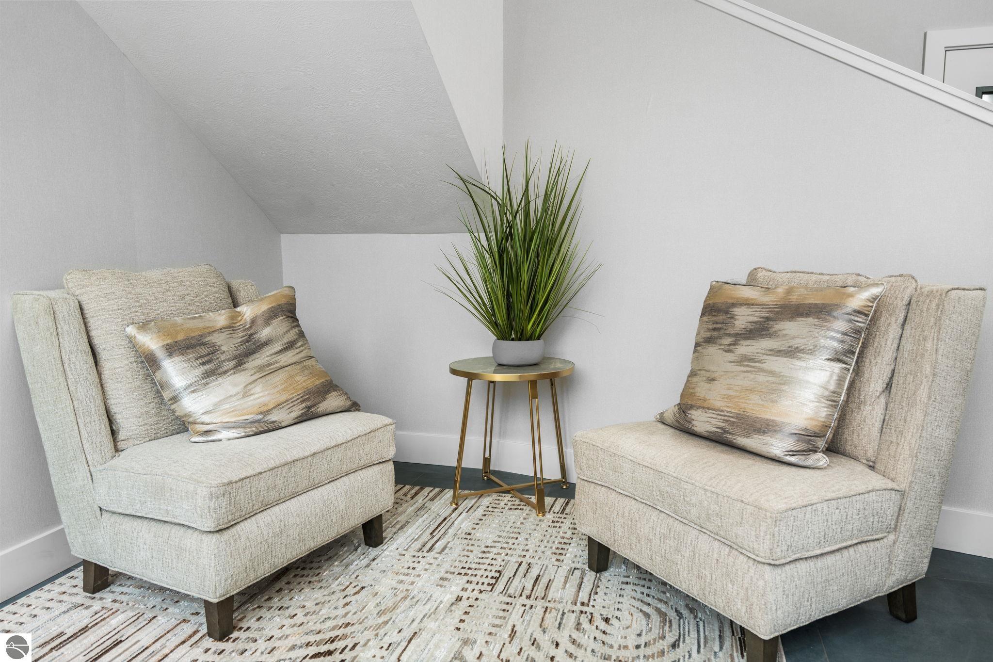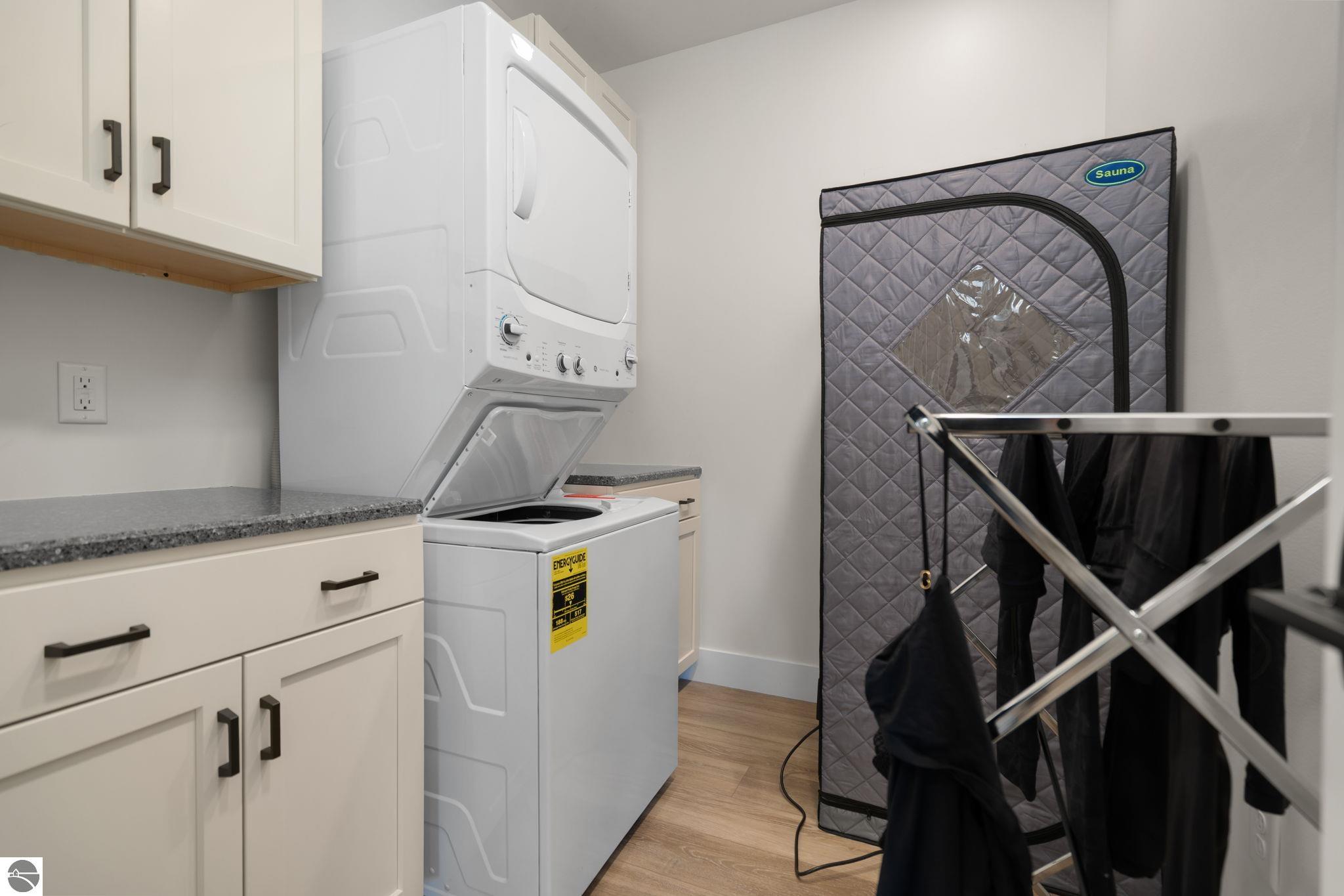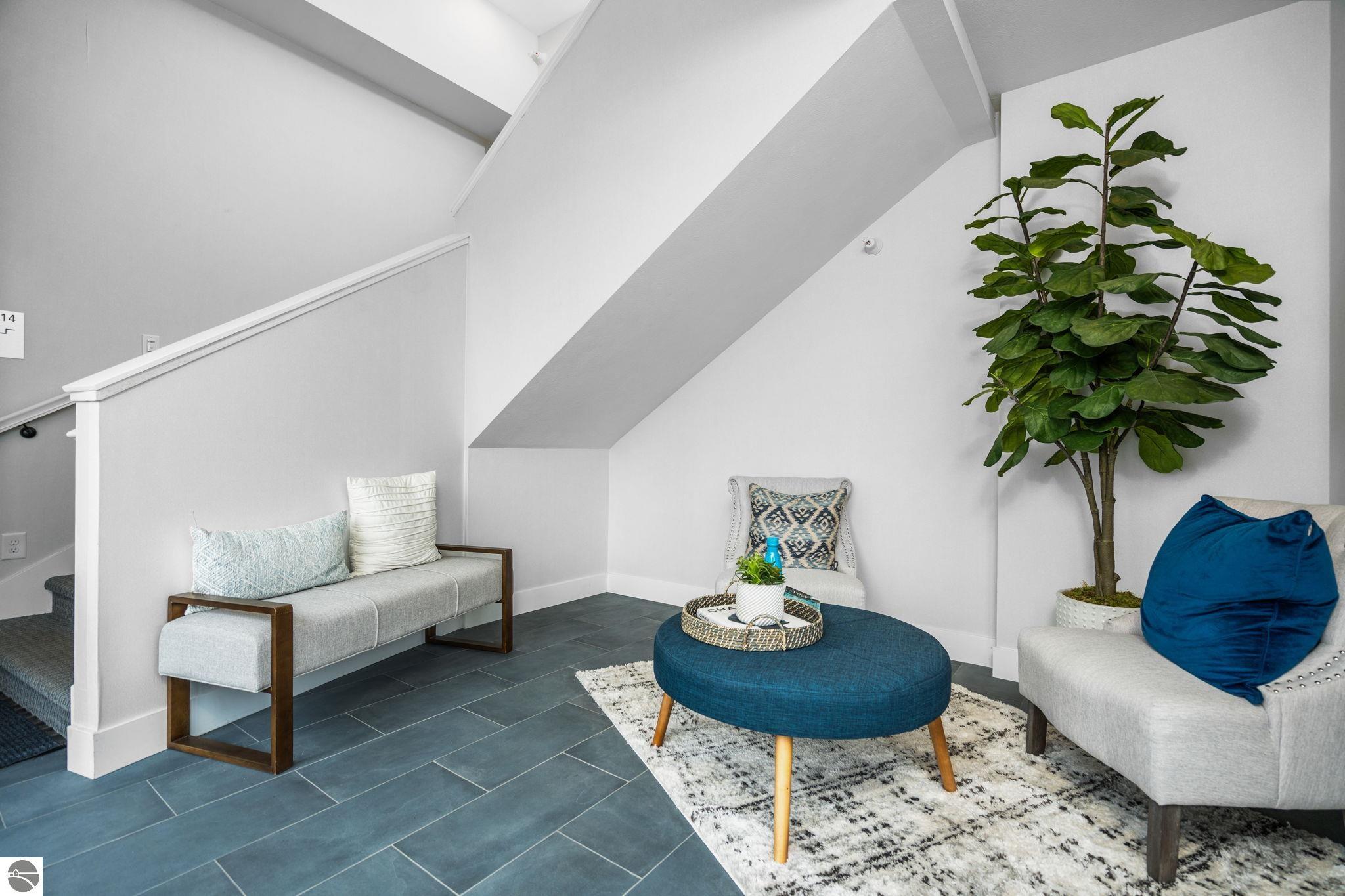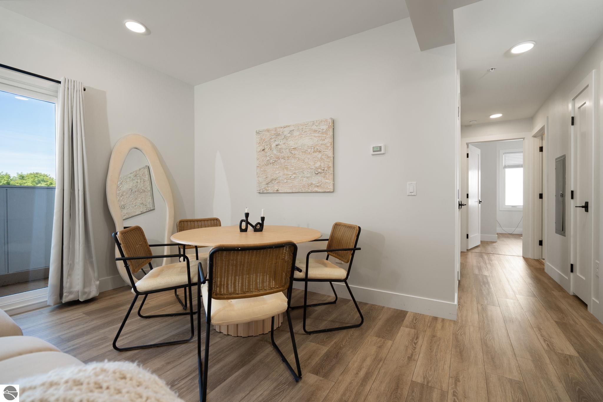 Step into easy downtown living, in the coveted Slabtown neighborhood, where West Grand Traverse Bay is just a short stroll away and the best of Traverse City is right outside your door. Completed in 2023, this 2 bed/2 bath condo pairs clean design with everyday comfort. Sunlight pours through large windows, filling the airy living space and connecting seamlessly to your private balcony, perfect for morning coffee or evening unwinding. The island kitchen is both sleek and welcoming, ideal for casual dinners or hosting friends. Retreat to the spacious primary suite with its own full bath, while an additional bedroom, hallway bath, and dedicated laundry room round out the single-level floor plan. With elevator access, a reserved parking space, a location across from the historic Sleders Tavern, and only steps from downtown dining, shopping, and waterfront fun, this condo is all about living well in the heart of TC.
