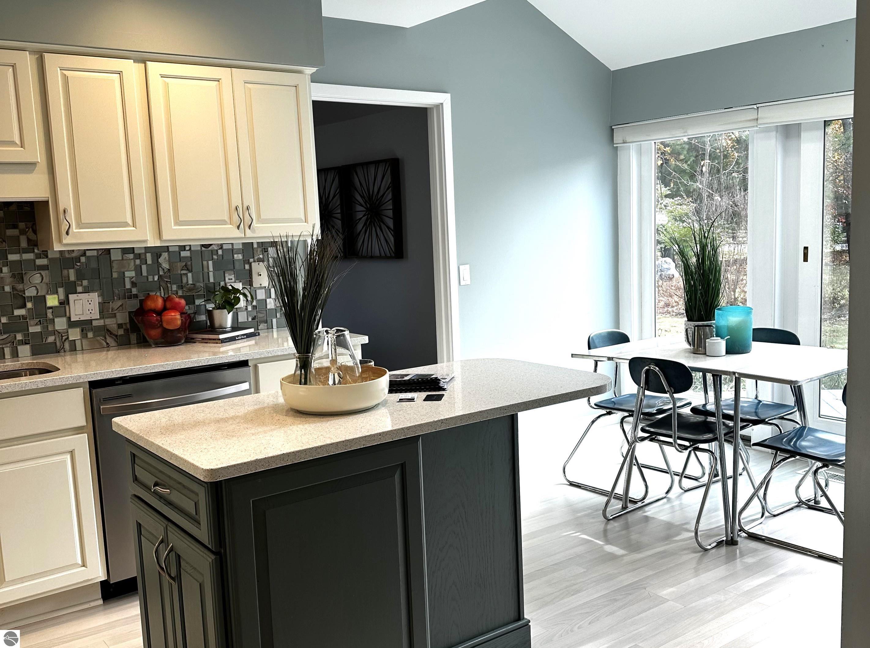 Just minutes from downtown Traverse City and the sparkling shores of East Bay, this beautifully refreshed 3-bedroom, 2-bath home in the desirable Holiday Hills neighborhood blends Up North tranquility with in-town convenience. Recent staging gives the home a fresh, modern look—highlighting vaulted ceilings, abundant natural light, and a cozy gas fireplace.The updated kitchen features stainless steel appliances, quartz counters, and ample storage, and opens to a private side deck—perfect for morning coffee or evening gatherings. The primary suite includes a walk-in closet, spacious shower, dual sinks, and a makeup vanity in the en suite bath, while the partially finished lower level offers flexible space with endless possibilities. Enjoy year-round comfort with central air and peace of mind with a whole-house generator. Plus, you’ll have easy access to everything Traverse City has to offer—from biking the nearby TART Trail to exploring local wineries, beaches, ski hills, and parks. Stylish, refreshed, and ready to welcome you home.