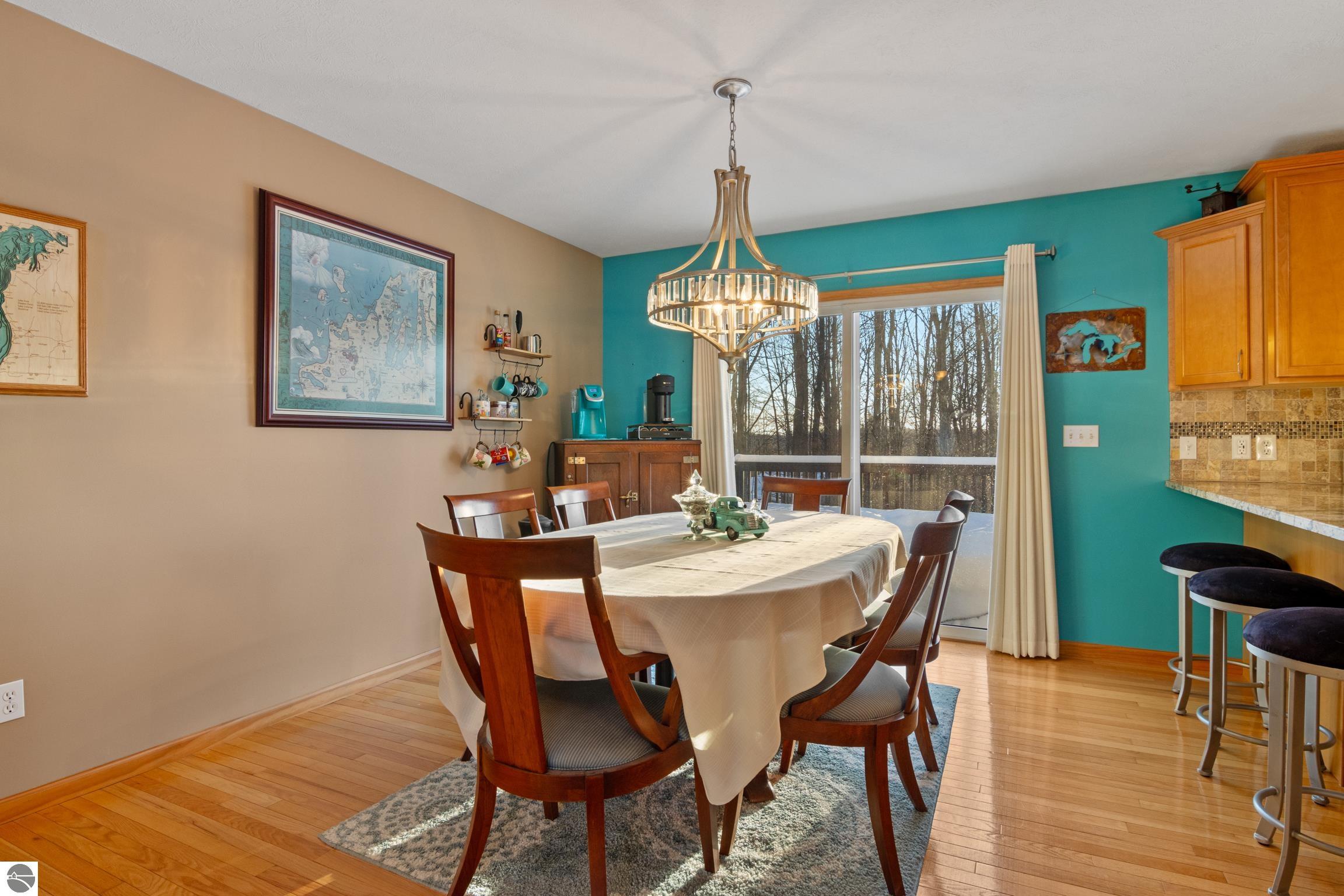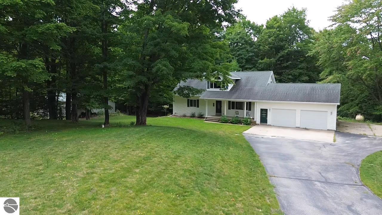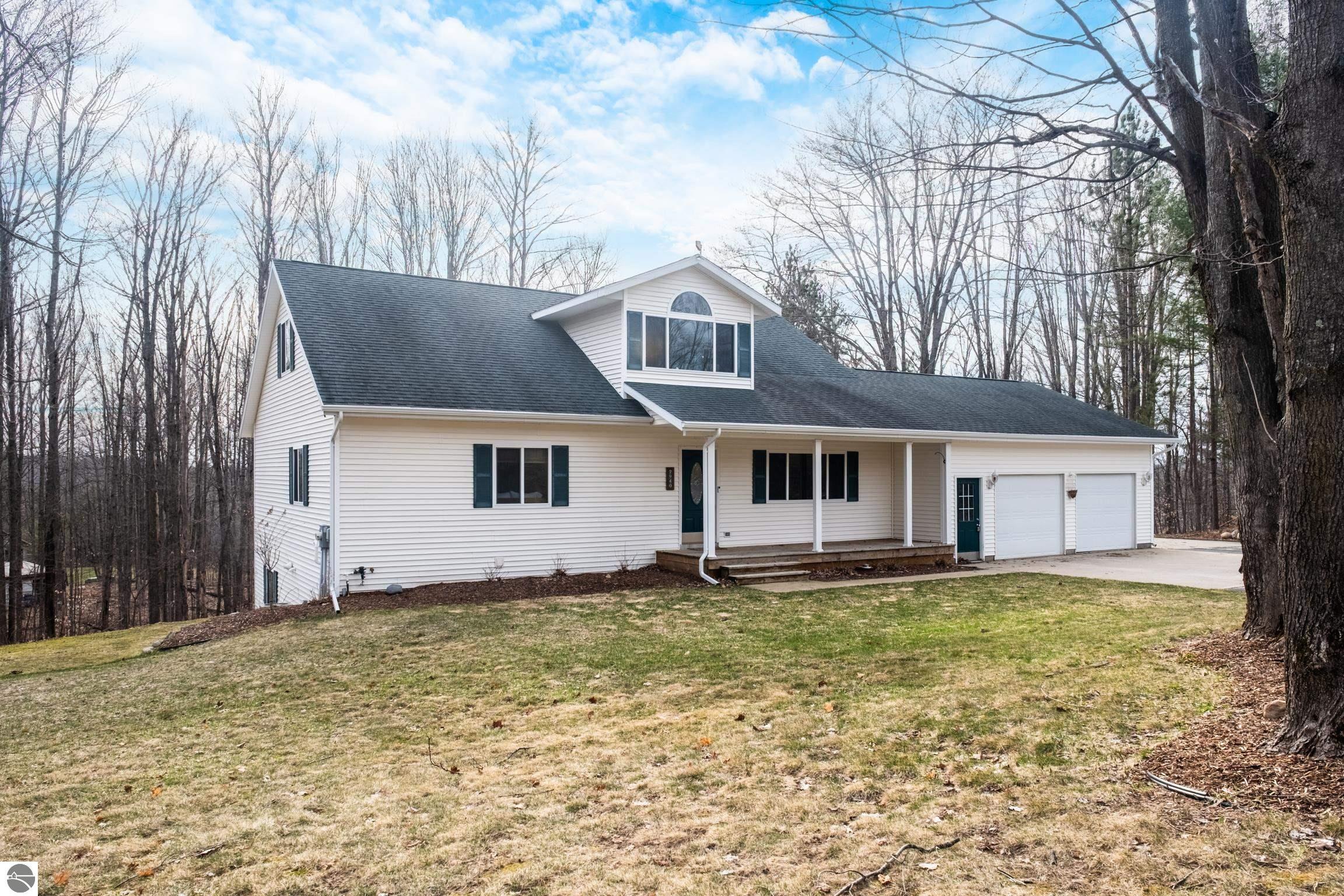 A PEACEFUL WOODED 2-acre setting just waiting to welcome you home. As you begin your tour of this spacious family home you will discover a generous sized living room with a fireplace and large picture window. A delightful kitchen equipped with stainless appliances, island, pantry and bar seating. Over 3,400 sq. ft. of well-designed living space with 4 bedrooms, 4 baths. The walkout lower level with family room with wet bar will be the gathering place for family and friends. The covered front porch will the perfect place to sit and enjoy your morning coffee and a good book. Relax in the hot tub on the large deck while enjoying your peaceful setting and enjoy the sounds of nature. Additional amenities include a main floor laundry room; central air conditioning; custom features throughout; underground sprinkler system; 2 car attached garage and more. The handyperson in your family will appreciate the 30’ x 40’ pole barn with 2 large garage doors and plenty of space for your hobbies, toys and storage. Centrally located, you are just a short distance to Traverse City, Elk Rapids, the Equestrian Festival Grounds, area beaches, recreation trails, golf courses and more.