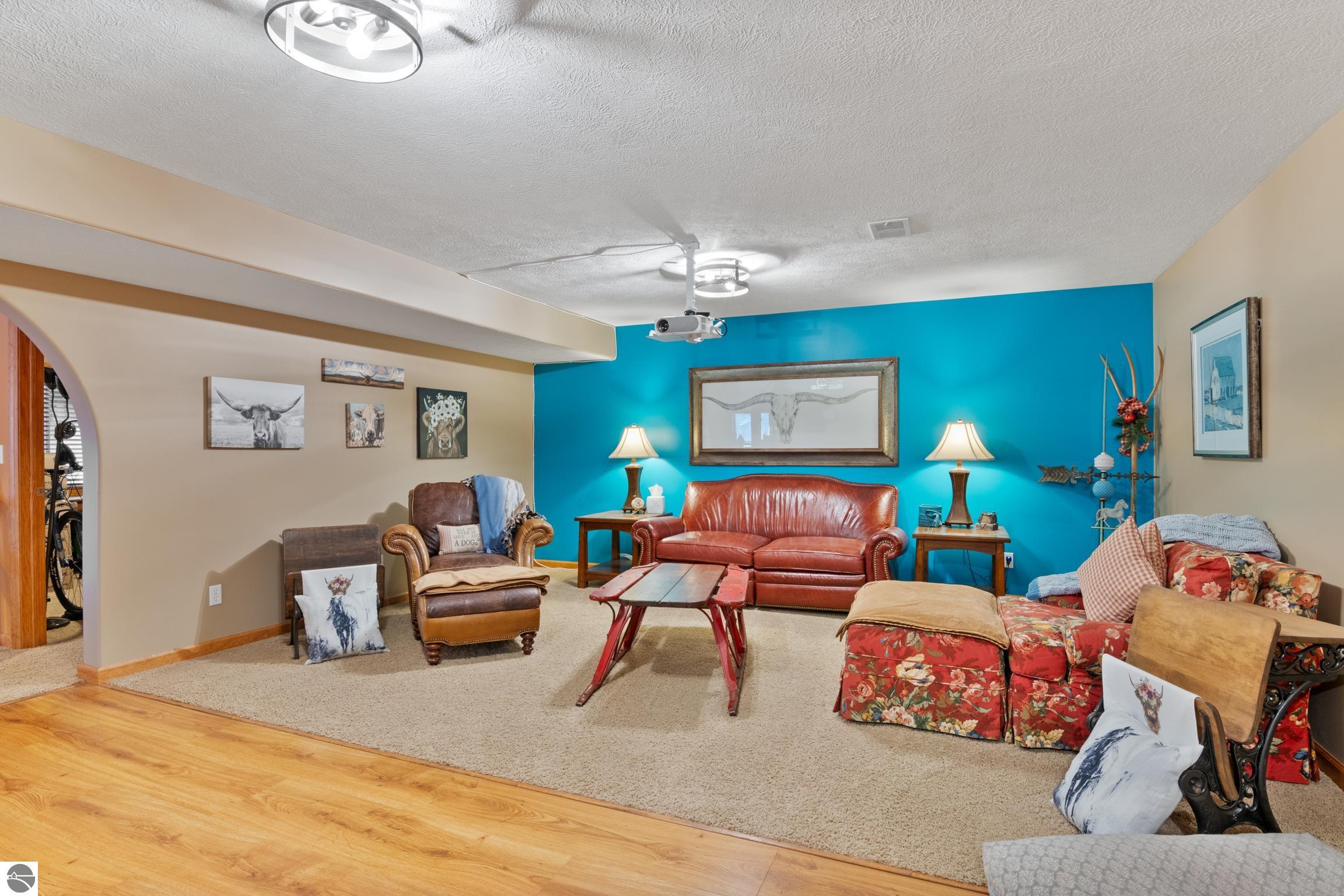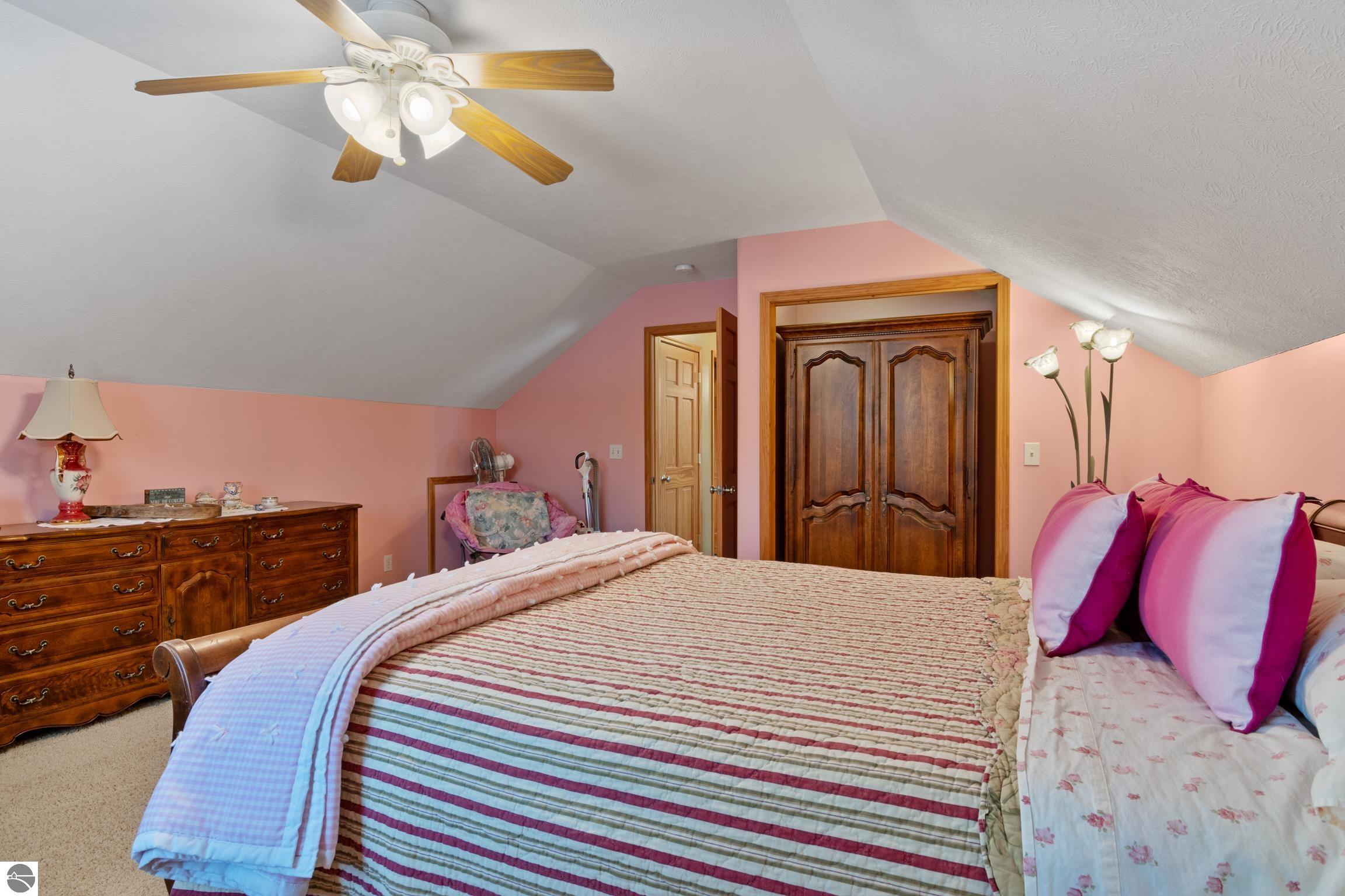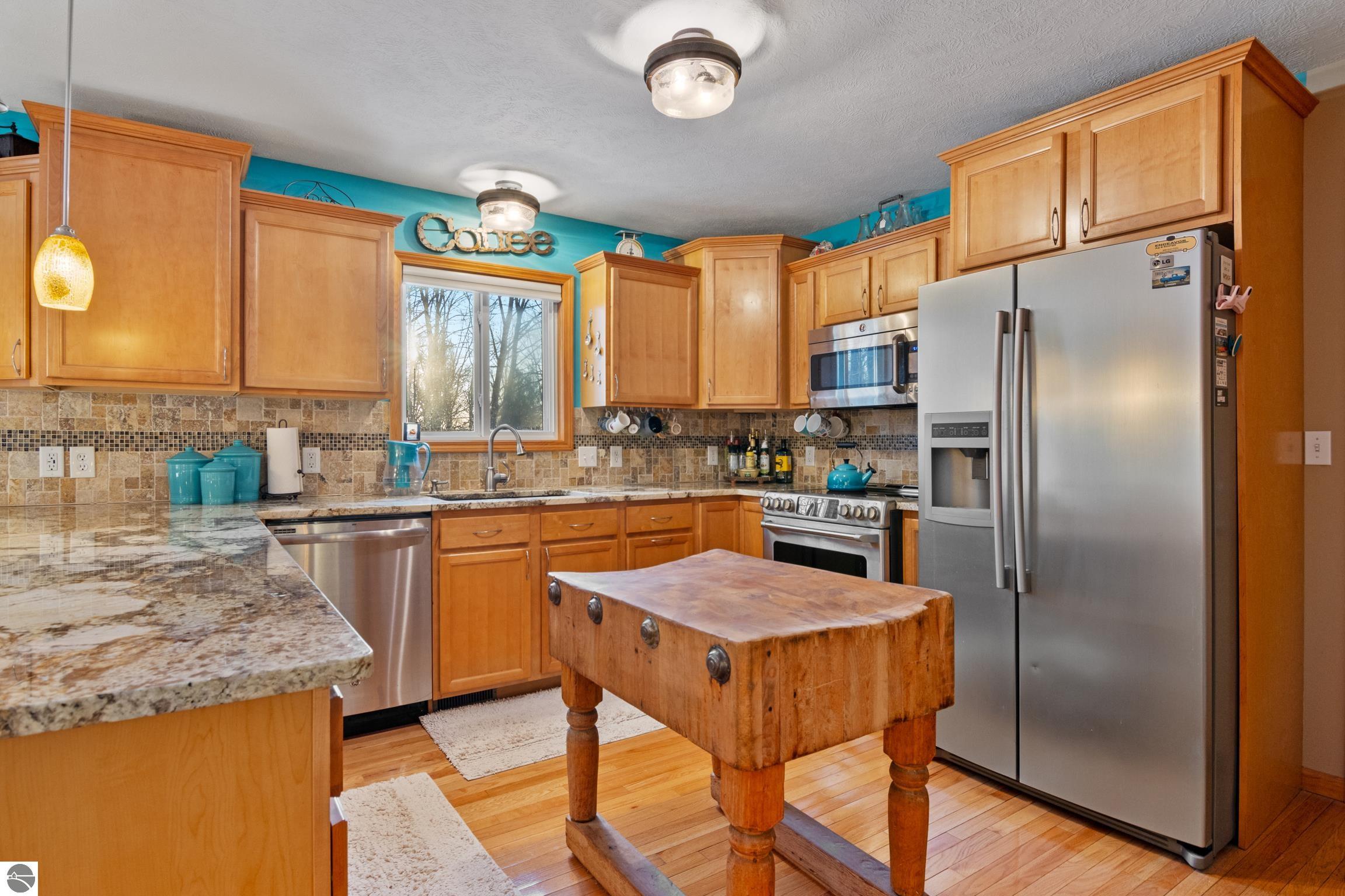 A PEACEFUL WOODED 2-acre setting just waiting to welcome you home. As you begin your tour of this spacious family home you will discover a generous sized living room with a fireplace and large picture window. A delightful kitchen equipped with stainless appliances, island, pantry and bar seating. Over 3,400 sq. ft. of well-designed living space with 4 bedrooms, 4 baths. The walkout lower level with family room with wet bar will be the gathering place for family and friends. The covered front porch will the perfect place to sit and enjoy your morning coffee and a good book. Relax in the hot tub on the large deck while enjoying your peaceful setting and enjoy the sounds of nature. Additional amenities include a main floor laundry room; central air conditioning; custom features throughout; underground sprinkler system; 2 car attached garage and more. The handyperson in your family will appreciate the 30’ x 40’ pole barn with 2 large garage doors and plenty of space for your hobbies, toys and storage. Centrally located, you are just a short distance to Traverse City, Elk Rapids, the Equestrian Festival Grounds, area beaches, recreation trails, golf courses and more.