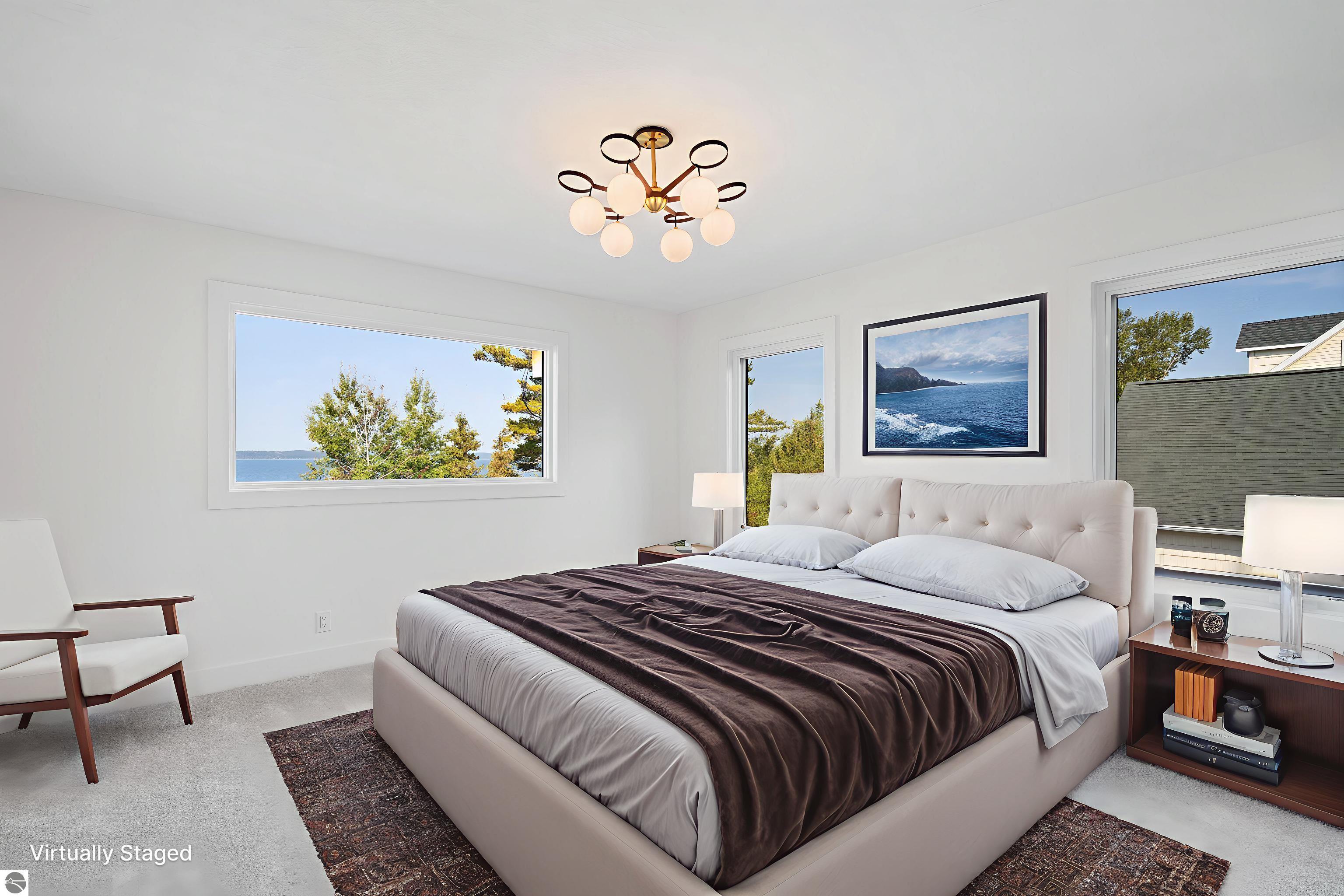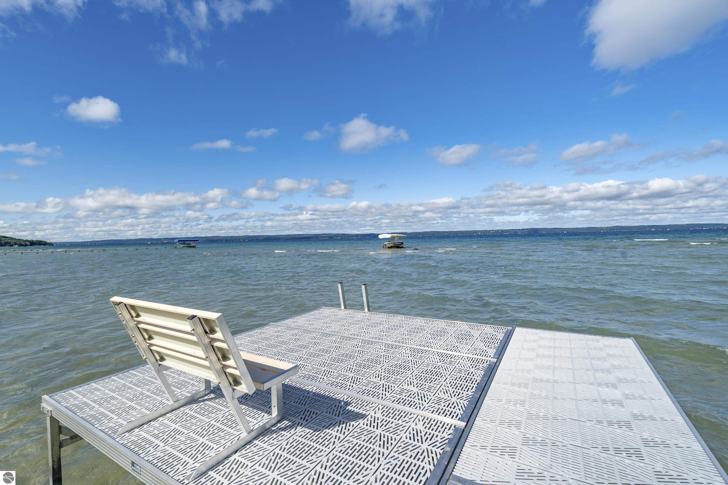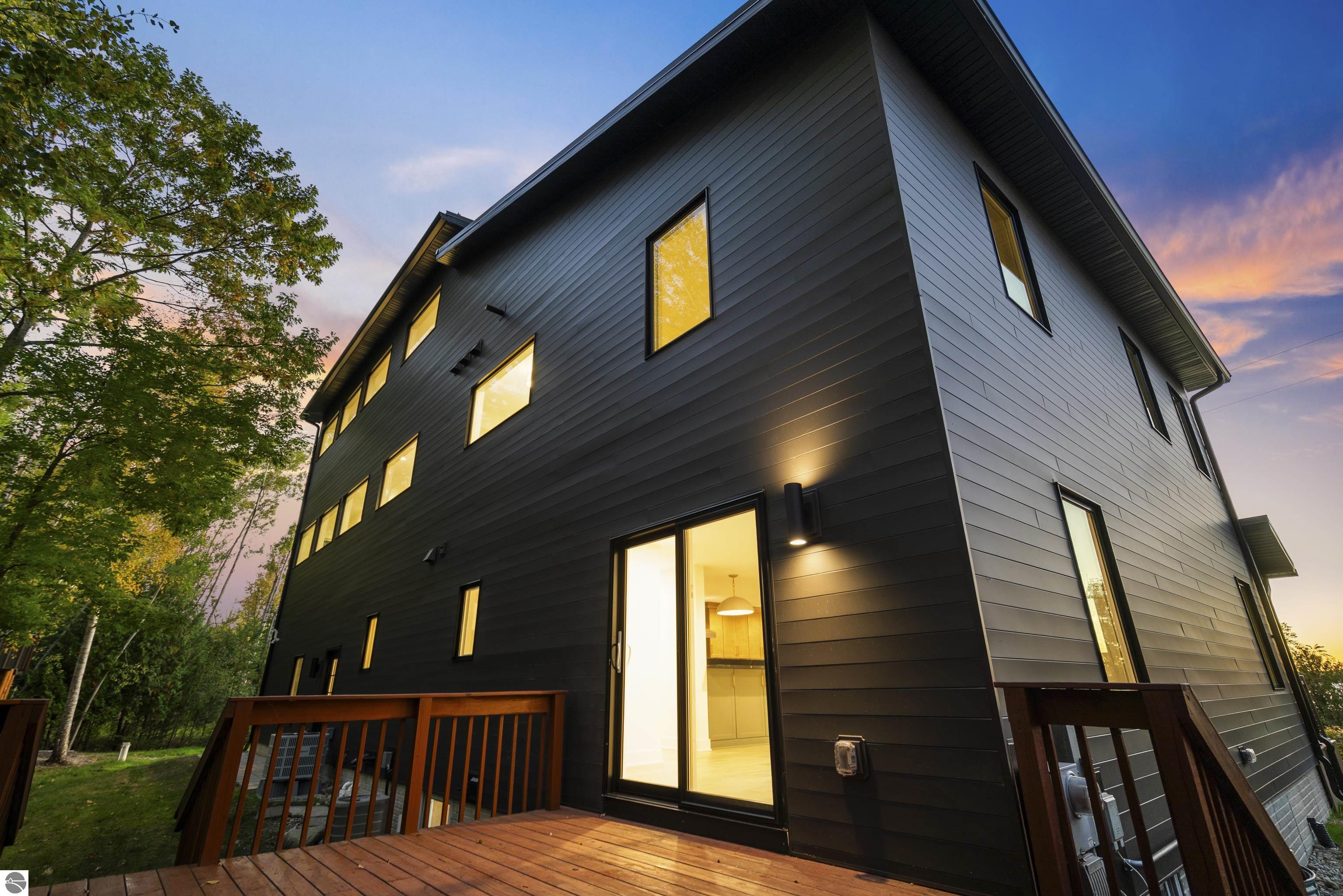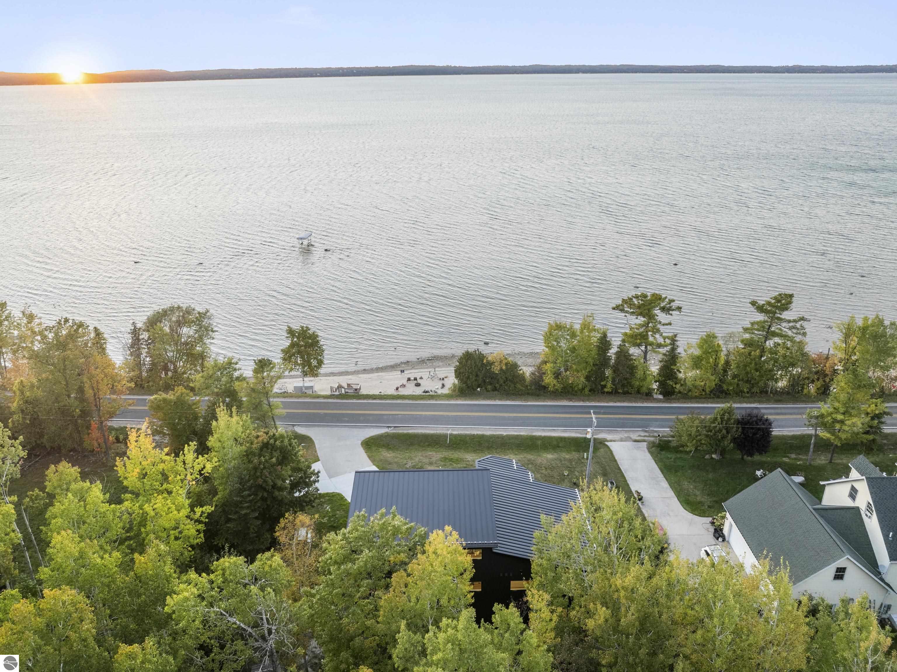 Views of West Bay from every room on the front of the house! Contemporary on Old Mission! The bay sparkles are endlessly beautiful on your extra-wide 109' private beach. And then... your first step into the home is right into the coolest foyer entry in TC! It's a masterpiece featuring a 15 ft. chandelier, which perfectly ignites the beauty from outside, while warming the interior with soft light. The staircase itself is magazine-worthy, with its handmade maple wood treads that will have LED lighting & custom-welded bannister once complete. Everything is new in this renovated home featuring 4 bedrooms, 3.5 baths & a spa-like master bedroom suite with heated floors & a soaking tub overlooking the bay. Top-quality metal roof and siding mean low maintenance for easy living. The second-floor media room is wired for surround sound, has a wet bar, shiplap wall cover, and large easterly facing windows. The room has a balcony overlooking West Bay accessible by 3 walkout sliders, while the third-story bedrooms also feature walk-out balconies, all overlooking beautiful West Bay. All the sights, sounds, and feels are here!