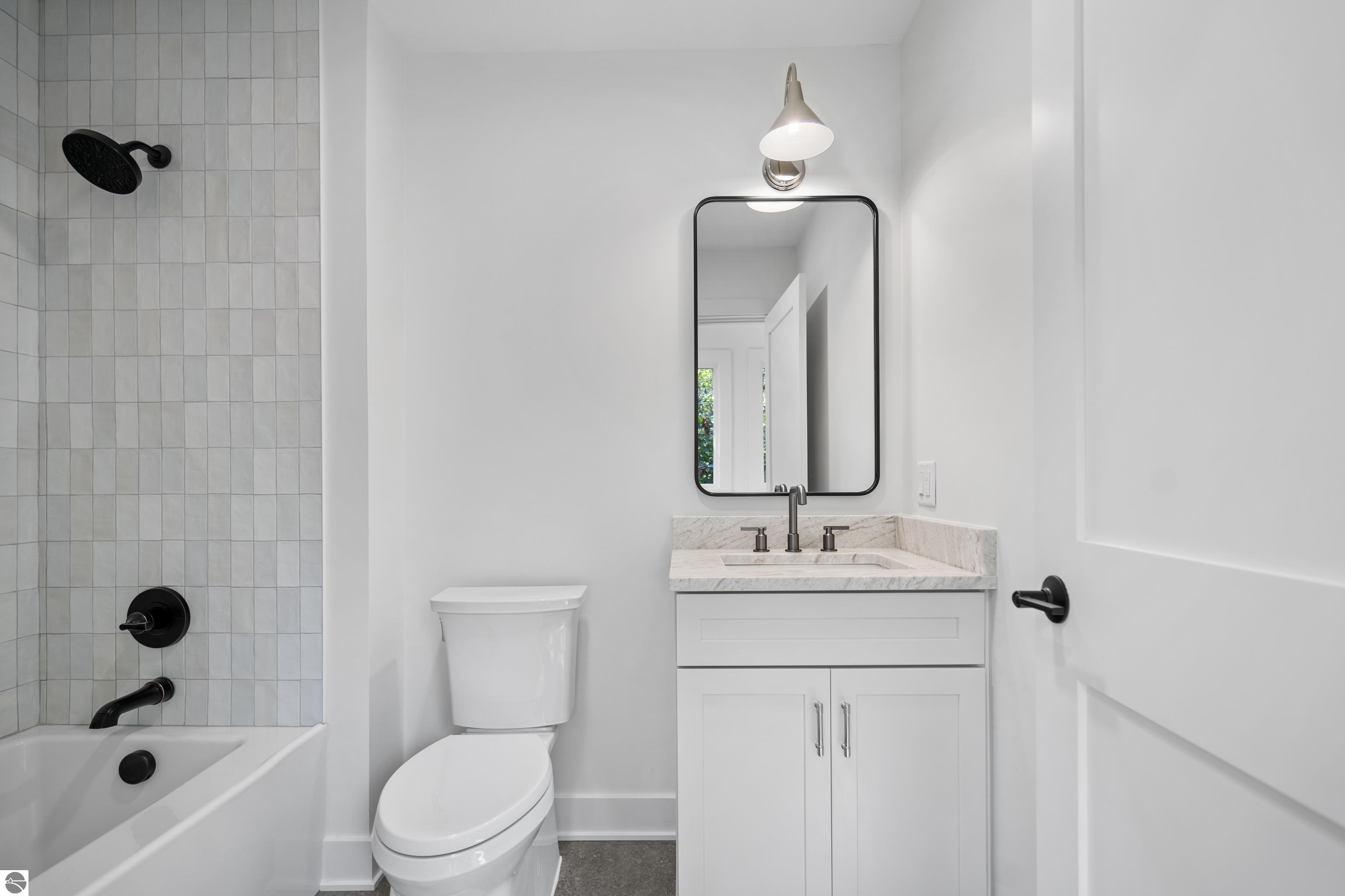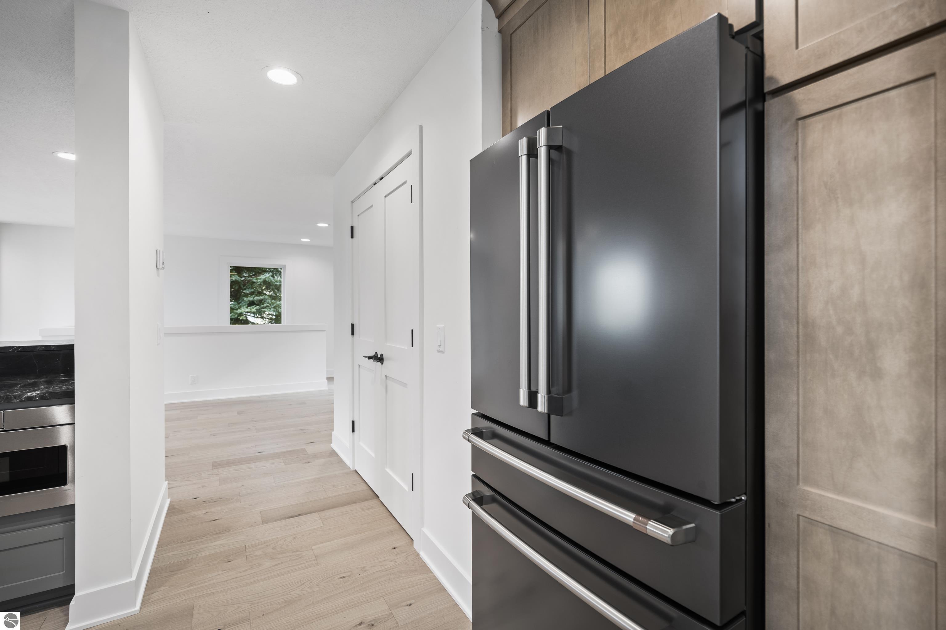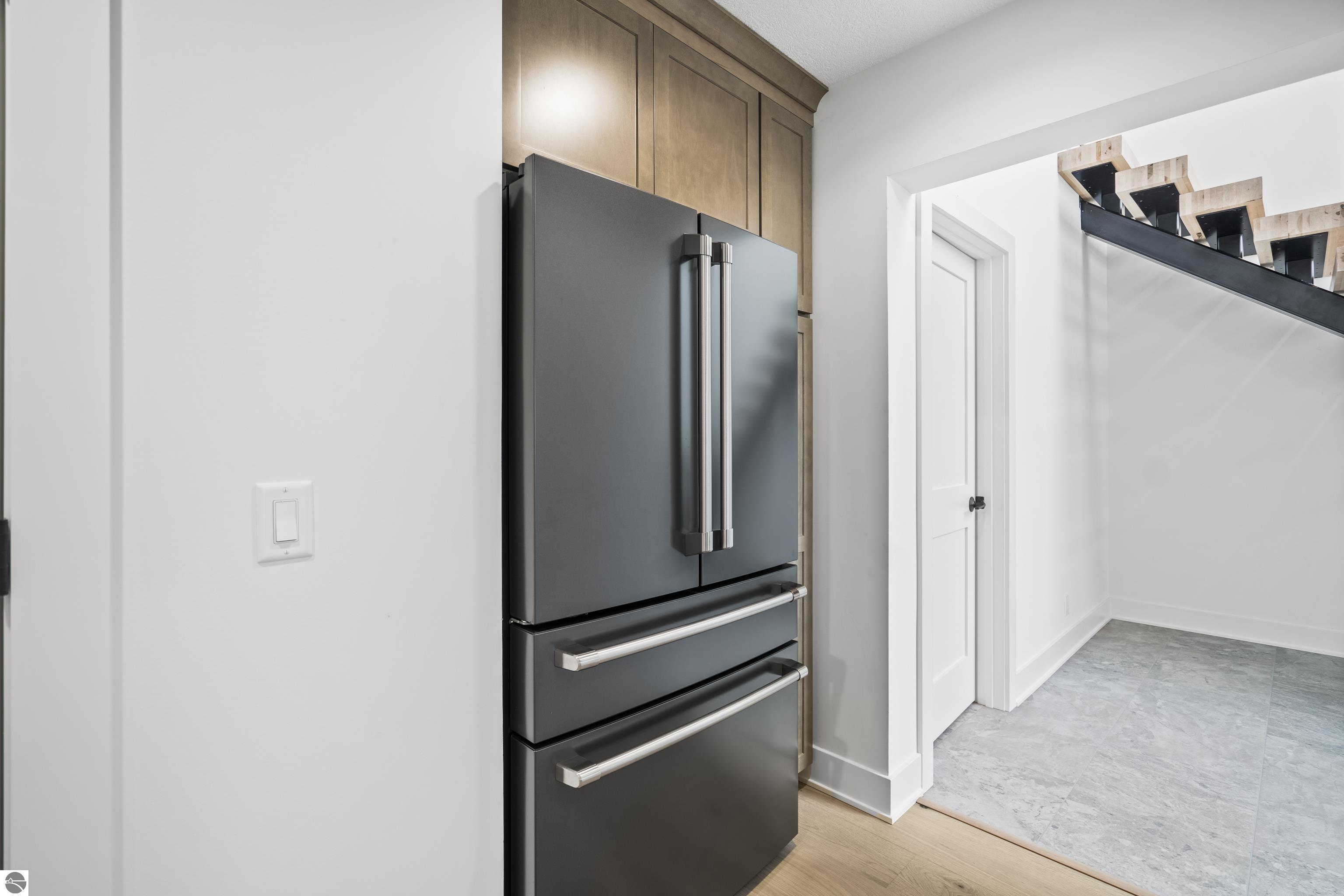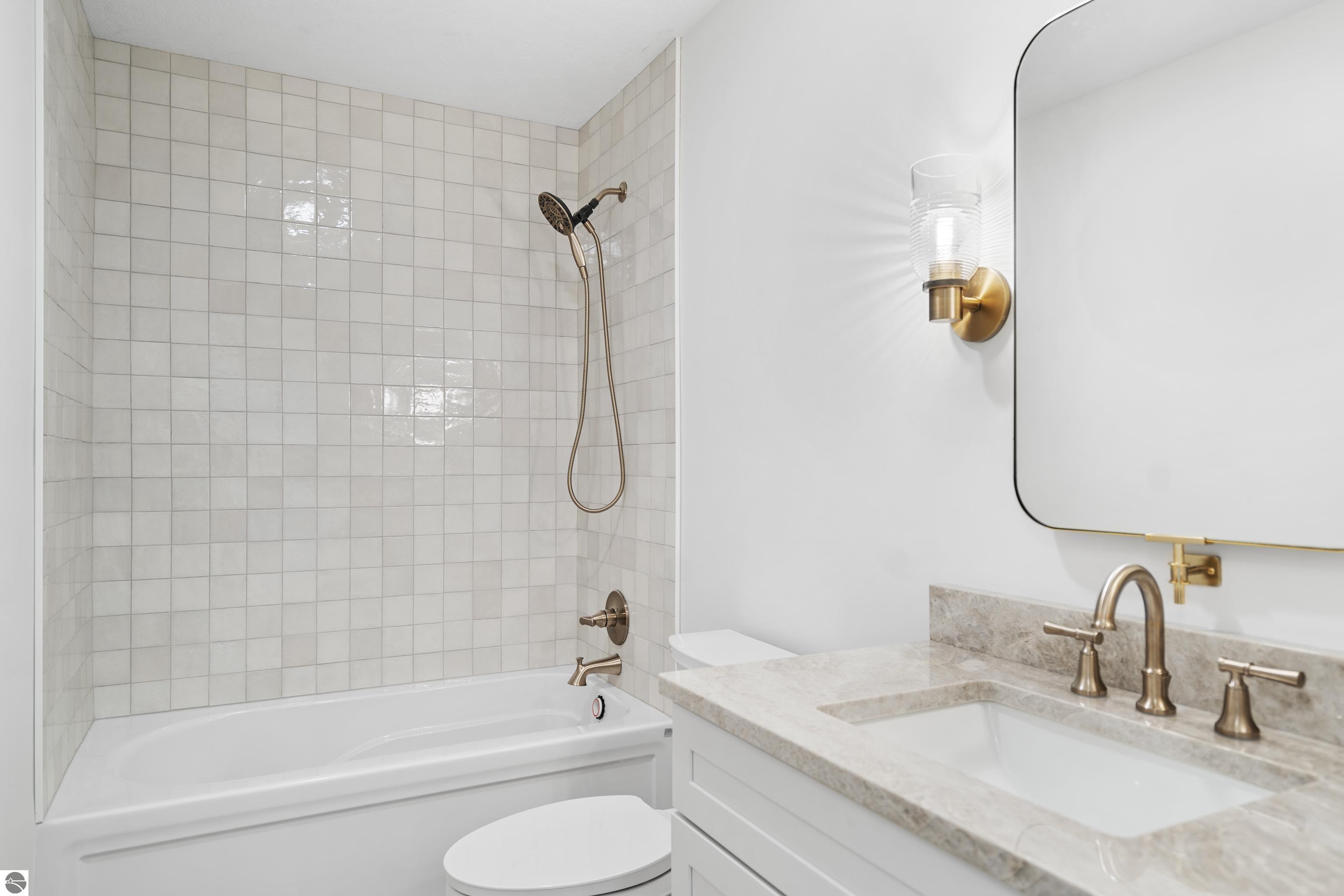 Views of West Bay from every room on the front of the house! Contemporary on Old Mission! The bay sparkles are endlessly beautiful on your extra-wide 109' private beach. And then... your first step into the home is right into the coolest foyer entry in TC! It's a masterpiece featuring a 15 ft. chandelier, which perfectly ignites the beauty from outside, while warming the interior with soft light. The staircase itself is magazine-worthy, with its handmade maple wood treads that will have LED lighting & custom-welded bannister once complete. Everything is new in this renovated home featuring 4 bedrooms, 3.5 baths & a spa-like master bedroom suite with heated floors & a soaking tub overlooking the bay. Top-quality metal roof and siding mean low maintenance for easy living. The second-floor media room is wired for surround sound, has a wet bar, shiplap wall cover, and large easterly facing windows. The room has a balcony overlooking West Bay accessible by 3 walkout sliders, while the third-story bedrooms also feature walk-out balconies, all overlooking beautiful West Bay. All the sights, sounds, and feels are here!