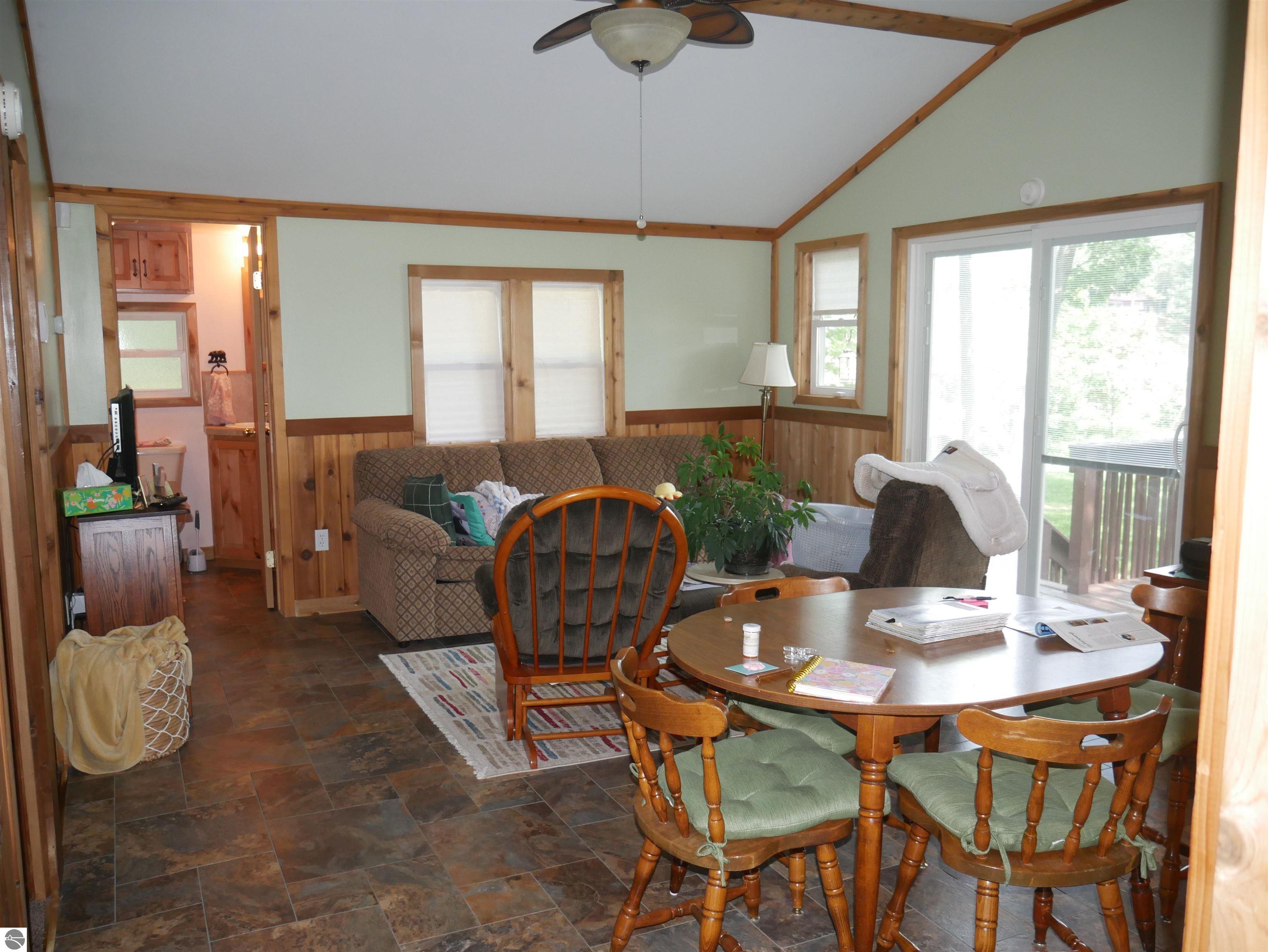 This well maintained home offers 100 feet of beautiful sandy frontage on the sparkling waters of all sports Jose Lake! Impeccably maintained inside and out, the home features many updates: new cabinetry and new appliances, fresh paint, newer furnace (2013), New roof (2015), 5 inch well, central air to keep you cool and comfortable and Generac generator so you never have to worry. Outside the 24x28 2 car garage is finished and heated with an exhaust fan for when you are working on projects, a screen to let the breeze in and keep the bugs out! There is even a two hole outhouse! Great for get togethers! The yard is graced with pear, peach, cherry and apple trees! There is a raised fenced in garden to grow your vegetables! accents, an inviting 10x24 deck perfect for relaxing or entertaining. Down by the cement firepit, there is room for seating and a place for 5 shade umbrellas so you can enjoy the outdoors! An extra 12x12 shed for your toys, this is the lakefront cabin everyone dreams of! A great place for swimming, fishing, or simply soaking in the view.