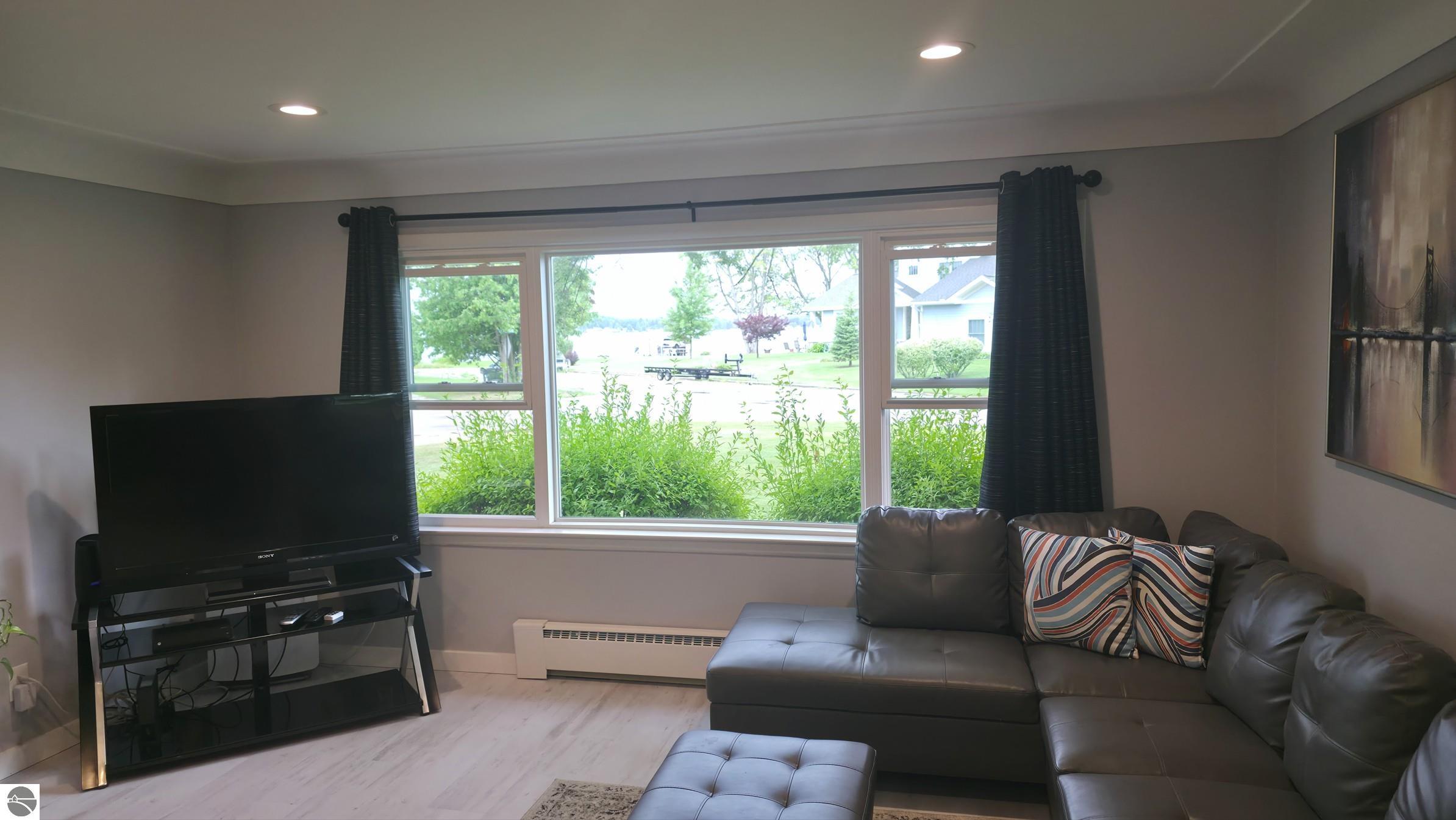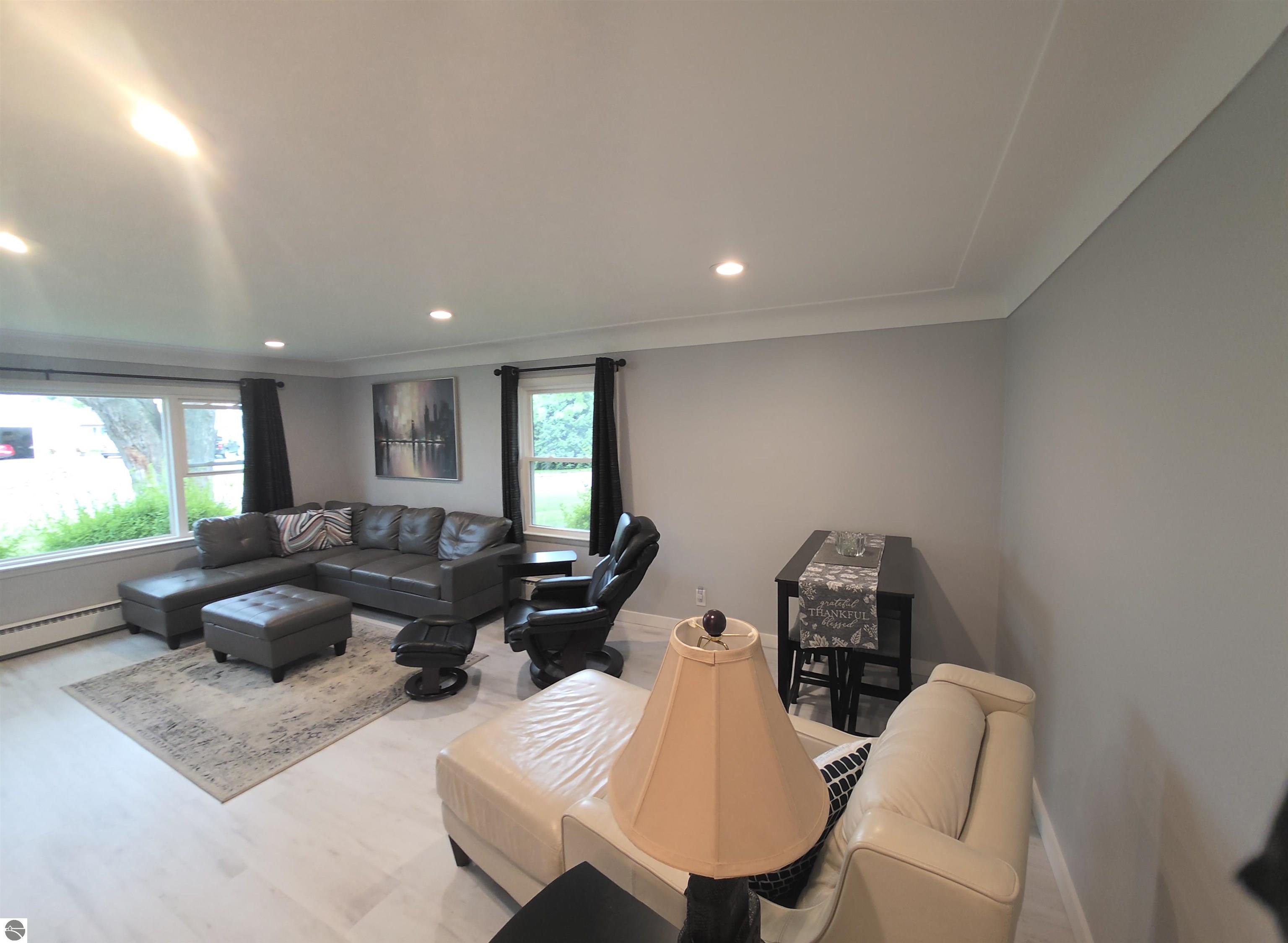 Lake views without the waterfront taxes! This fully remodeled 2-bed, 2-bath ranch is move-in ready and offers 1,494 sq ft of beautifully finished living space, plus easement access to the lake just steps away. Inside you’ll find fresh paint, all new flooring, updated trim, doors, lighting, electrical, and plumbing. The brand-new kitchen is a showstopper with quartz countertops, tile backsplash, soft-close cabinetry with pull-outs, garbage disposal, and premium Frigidaire appliances including an oven with a built-in air fryer. Both bathrooms have been completely updated with modern fixtures. Additional features include recessed lighting with dimmers, ceiling fans, and a new Electrolux washer and dryer. Enjoy lake views from your living spaces and the convenience of city utilities. The attached 2-car garage has also been upgraded with a new door. Situated on a 132x149 lot (0.45 acres), this home combines comfort, style, and location. Whether you’re looking for a year-round residence or a vacation cottage, this property checks every box.