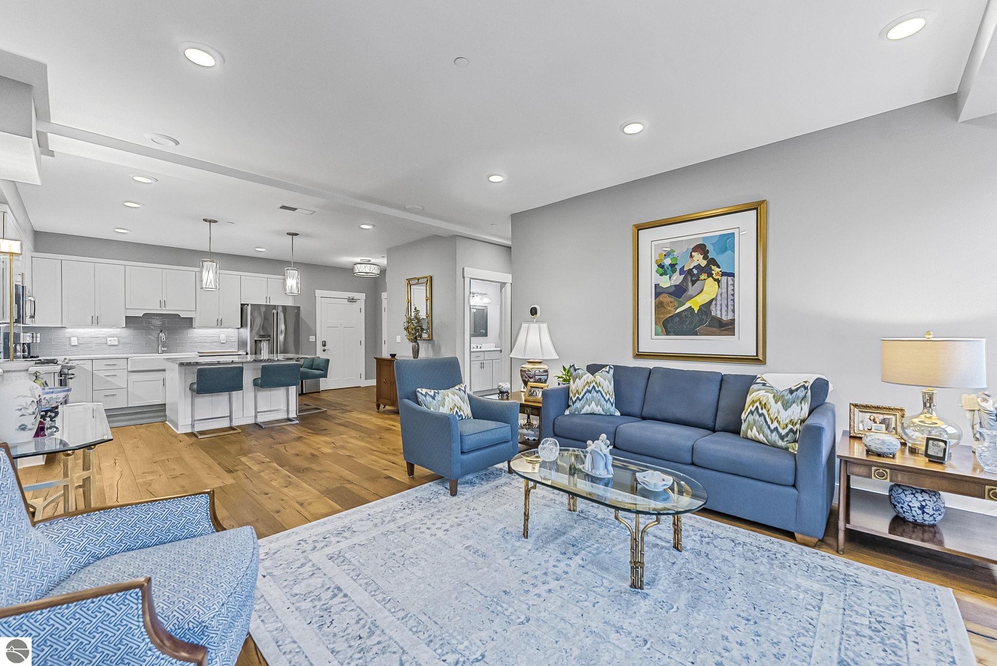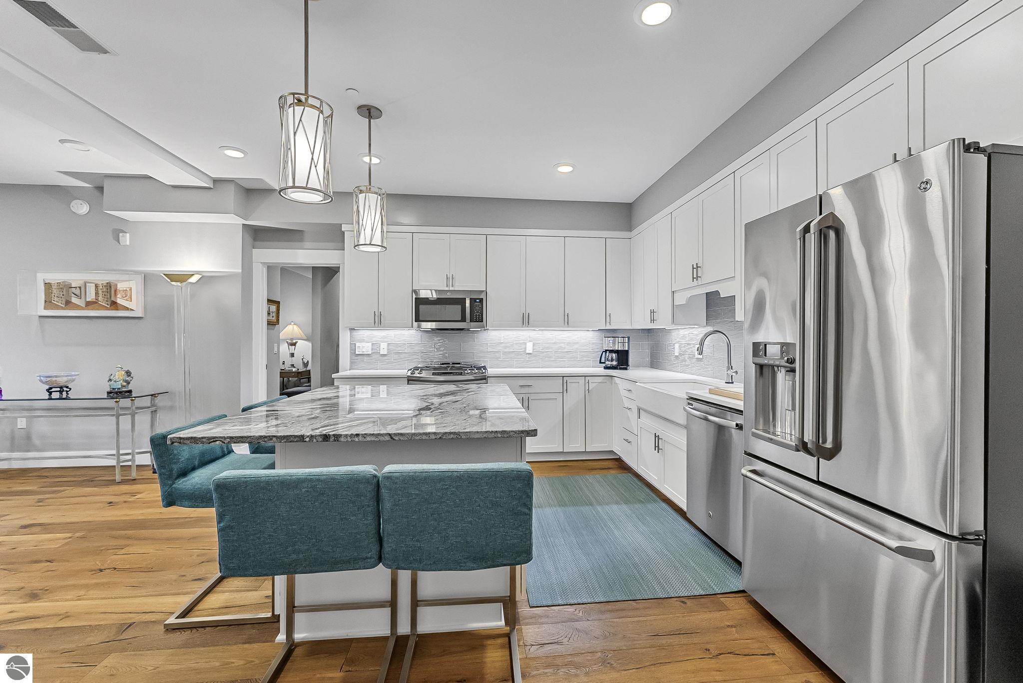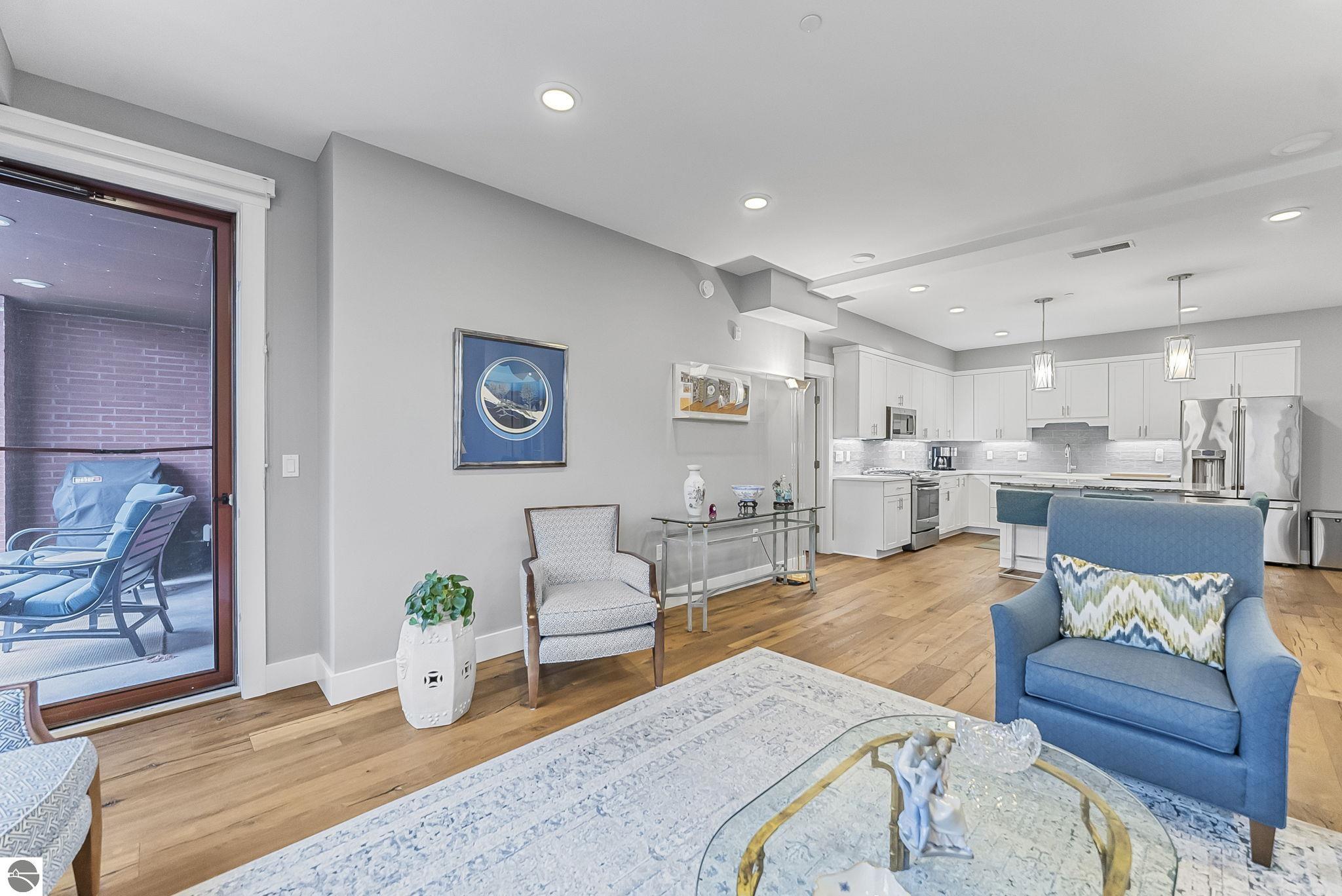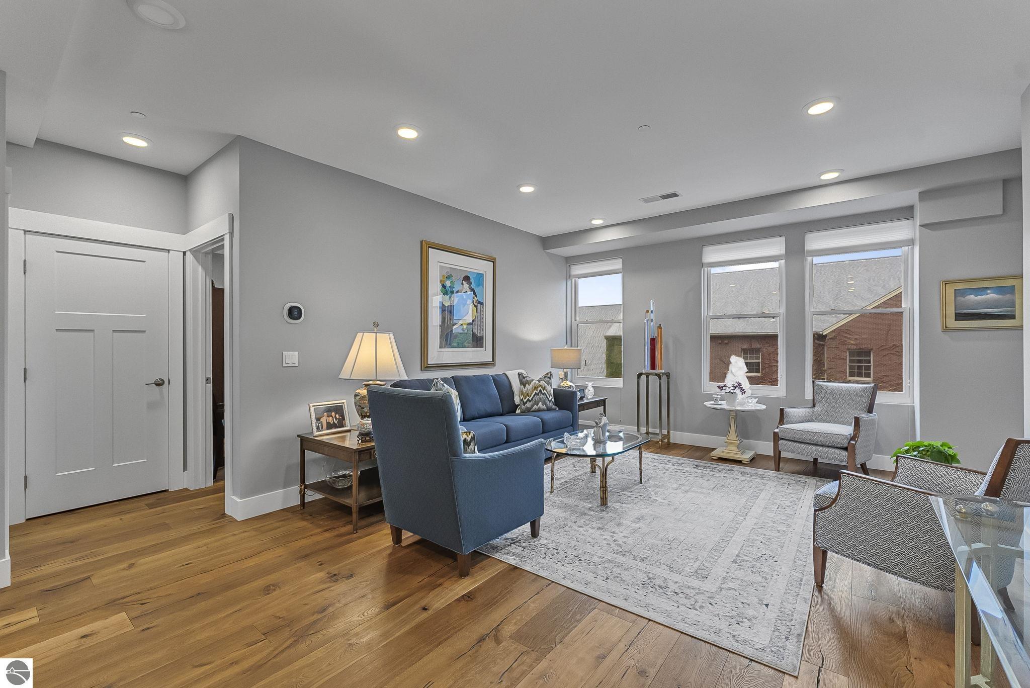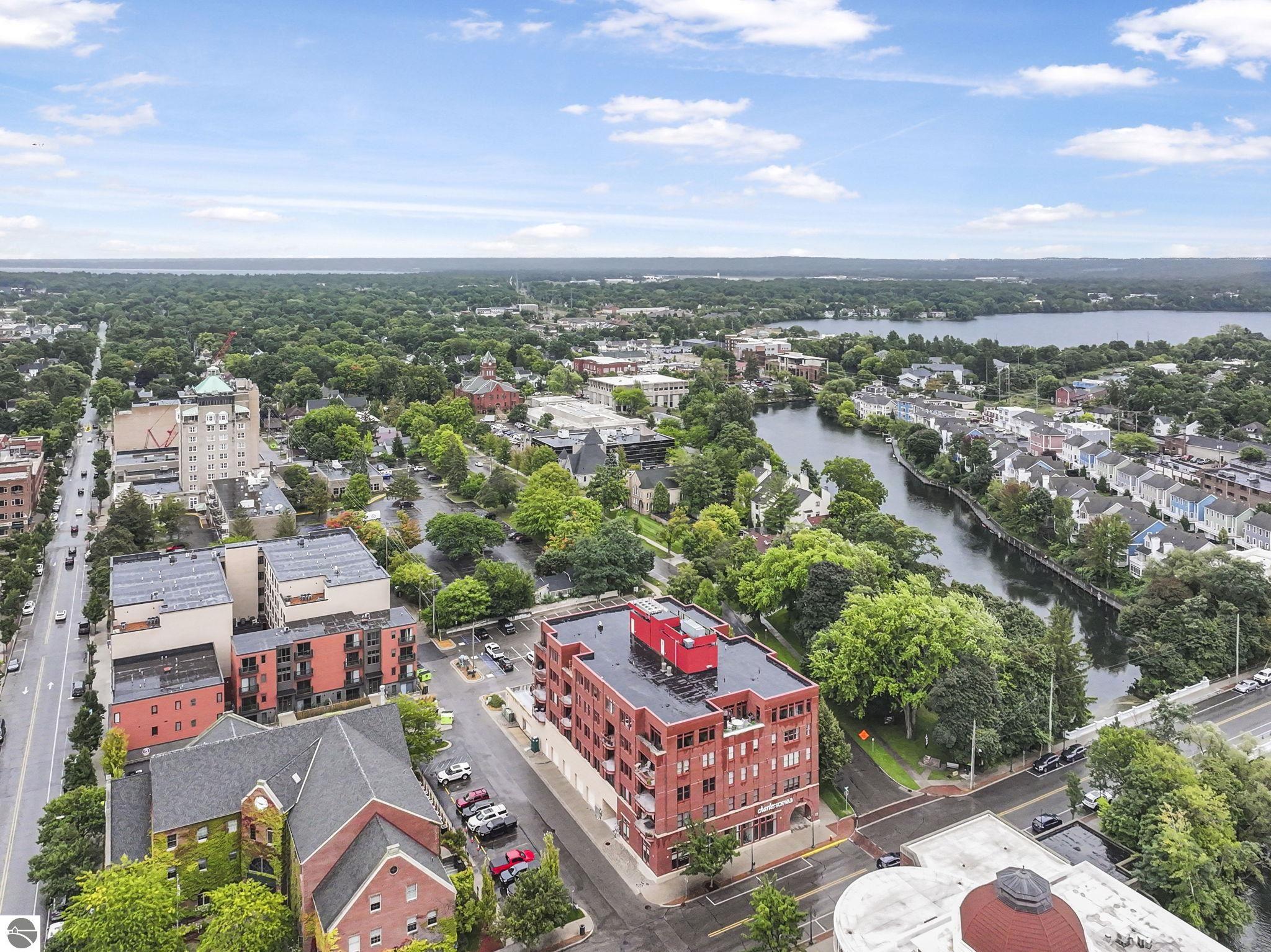 Experience luxury living in one of Traverse City’s most coveted addresses. This well-appointed 2-bedroom, 2-bath residence offers the perfect blend of comfort, privacy, and convenience. Located in the heart of downtown, Washington Place puts you within walking distance of dining, shopping, and the waterfront. The building borders a park along Cass Street with peaceful river views, creating a serene backdrop right outside your door. Inside, you’ll find an open, thoughtfully designed floor plan with high-end finishes throughout. Enjoy the outdoors from your private patio, an ideal spot to relax or entertain. The home includes an underground, covered parking space and a locked storage closet for your extra belongings. Washington Place residents appreciate the quiet, private atmosphere, secure elevator access, and strong sense of community. Heated garage and sidewalks surround the living space for extra security and ease in the colder months. With its prime location, upscale amenities, and inviting lifestyle, this is truly an excellent offering in downtown Traverse City.