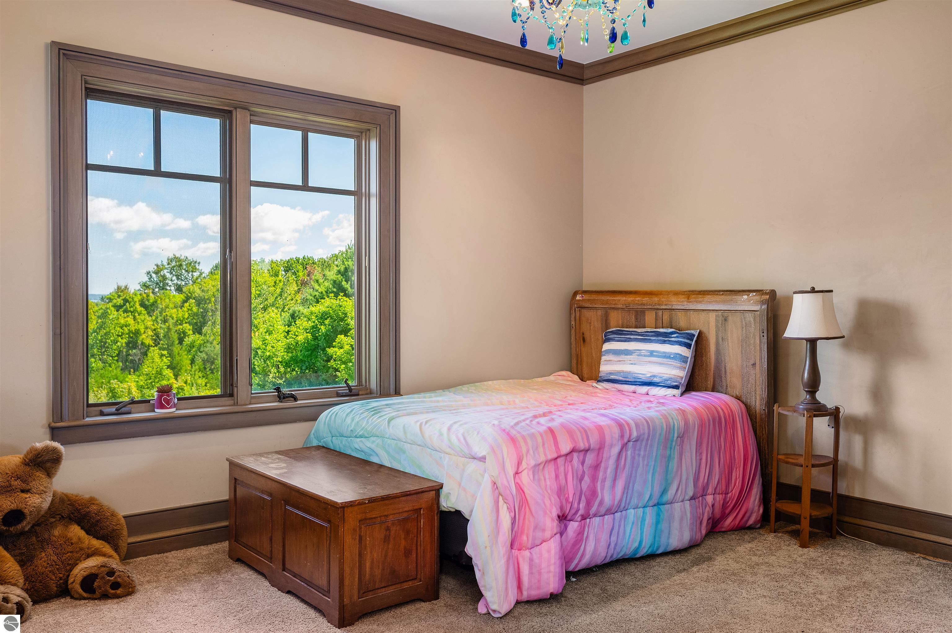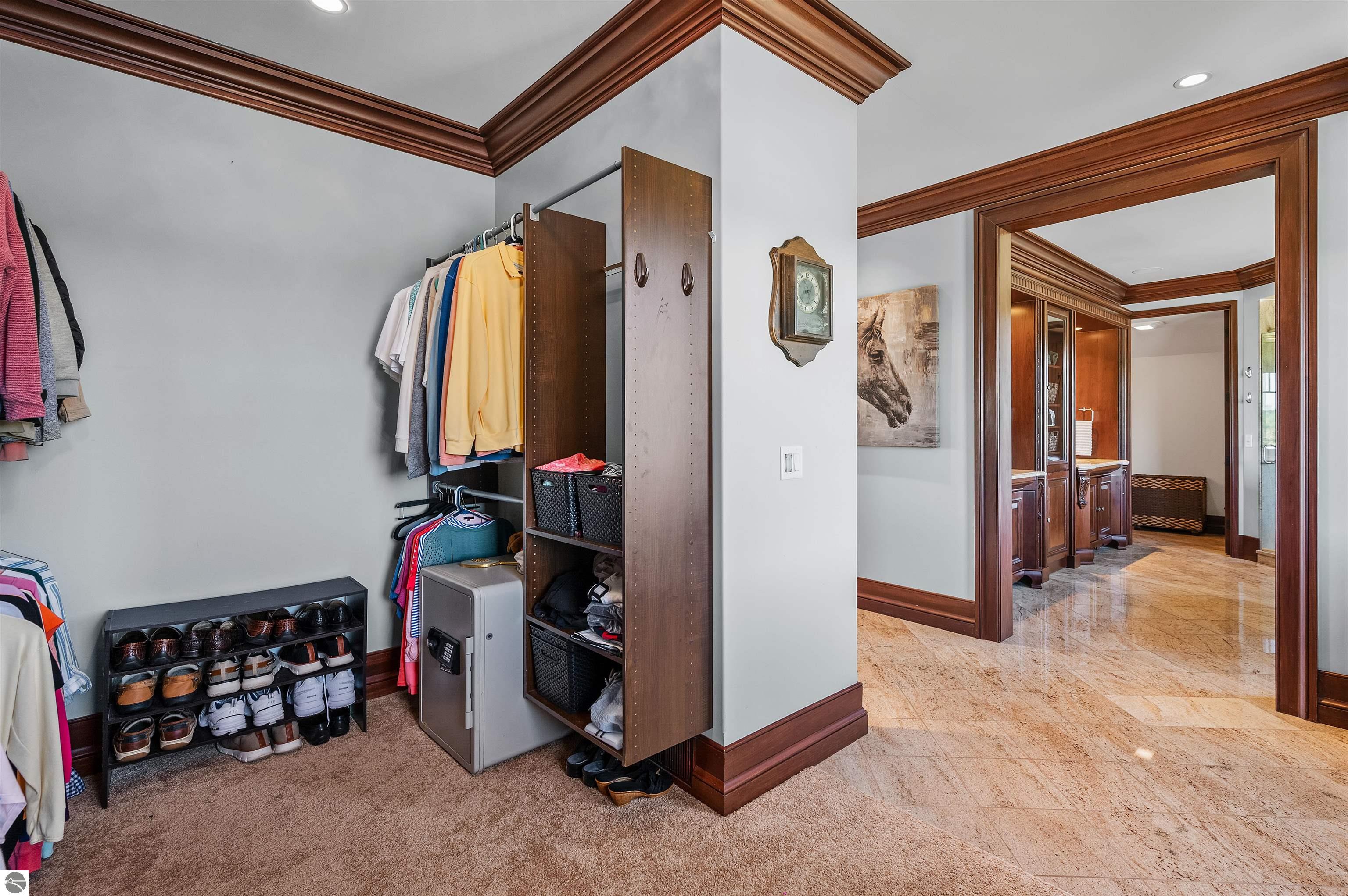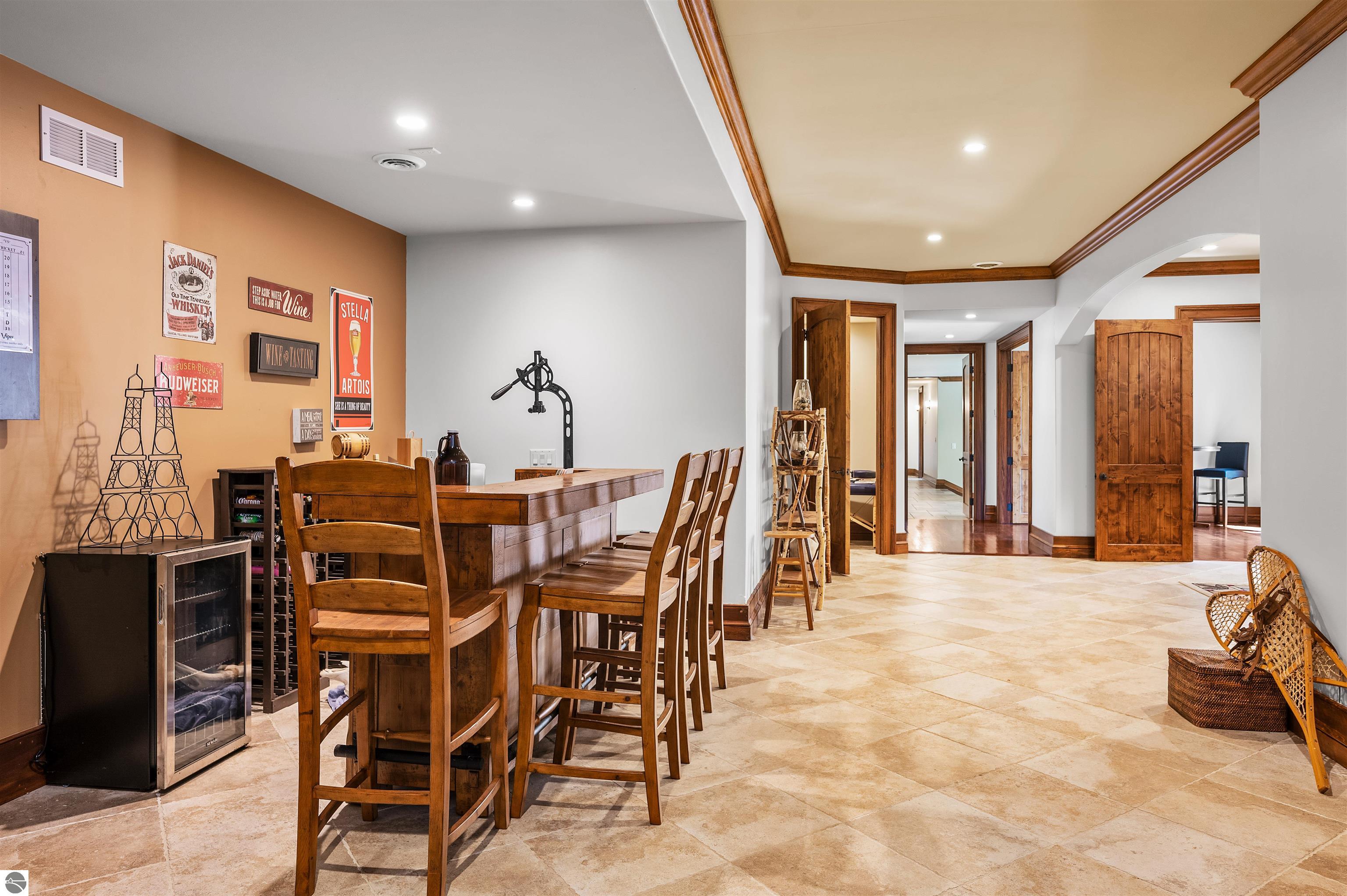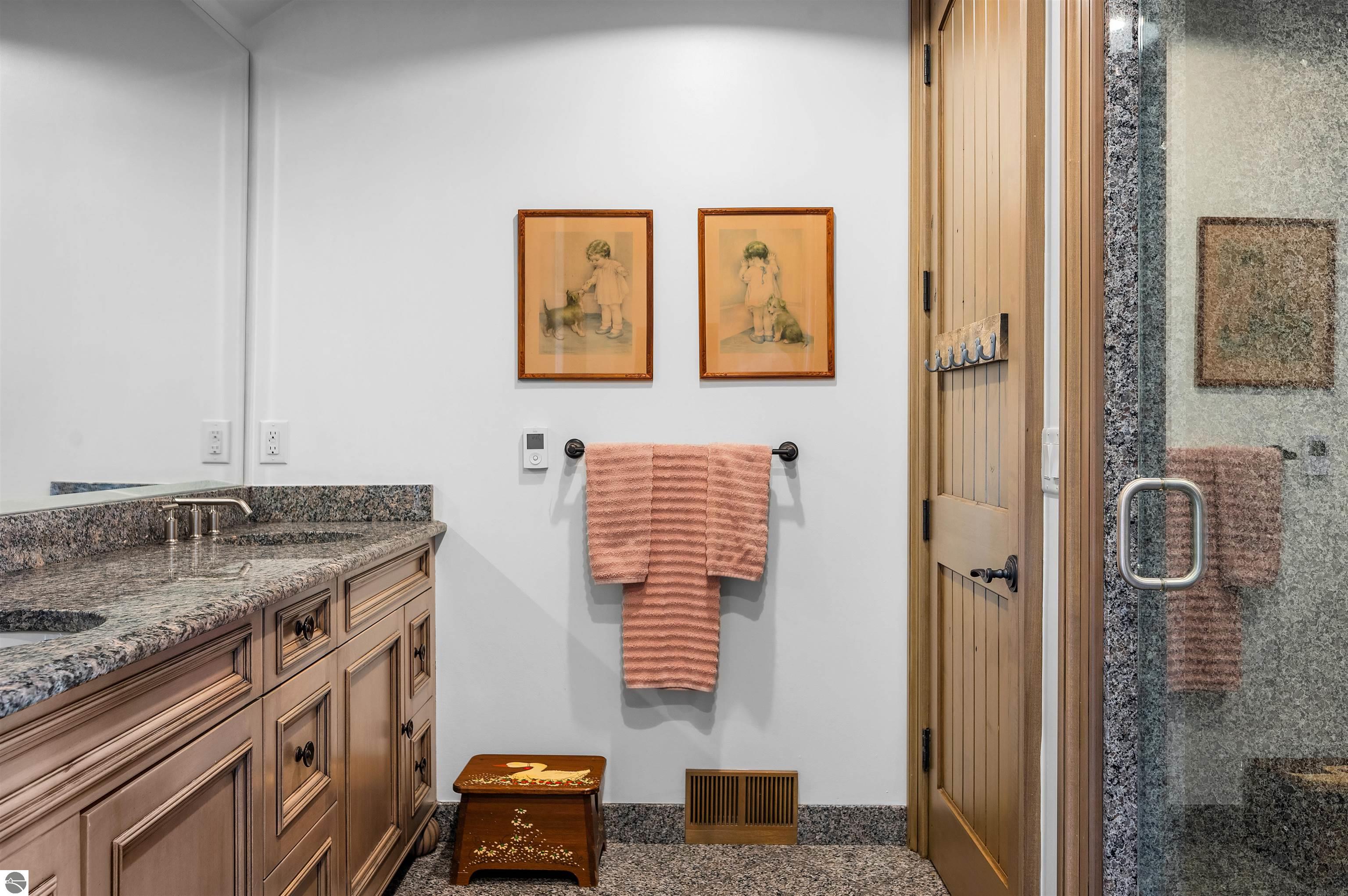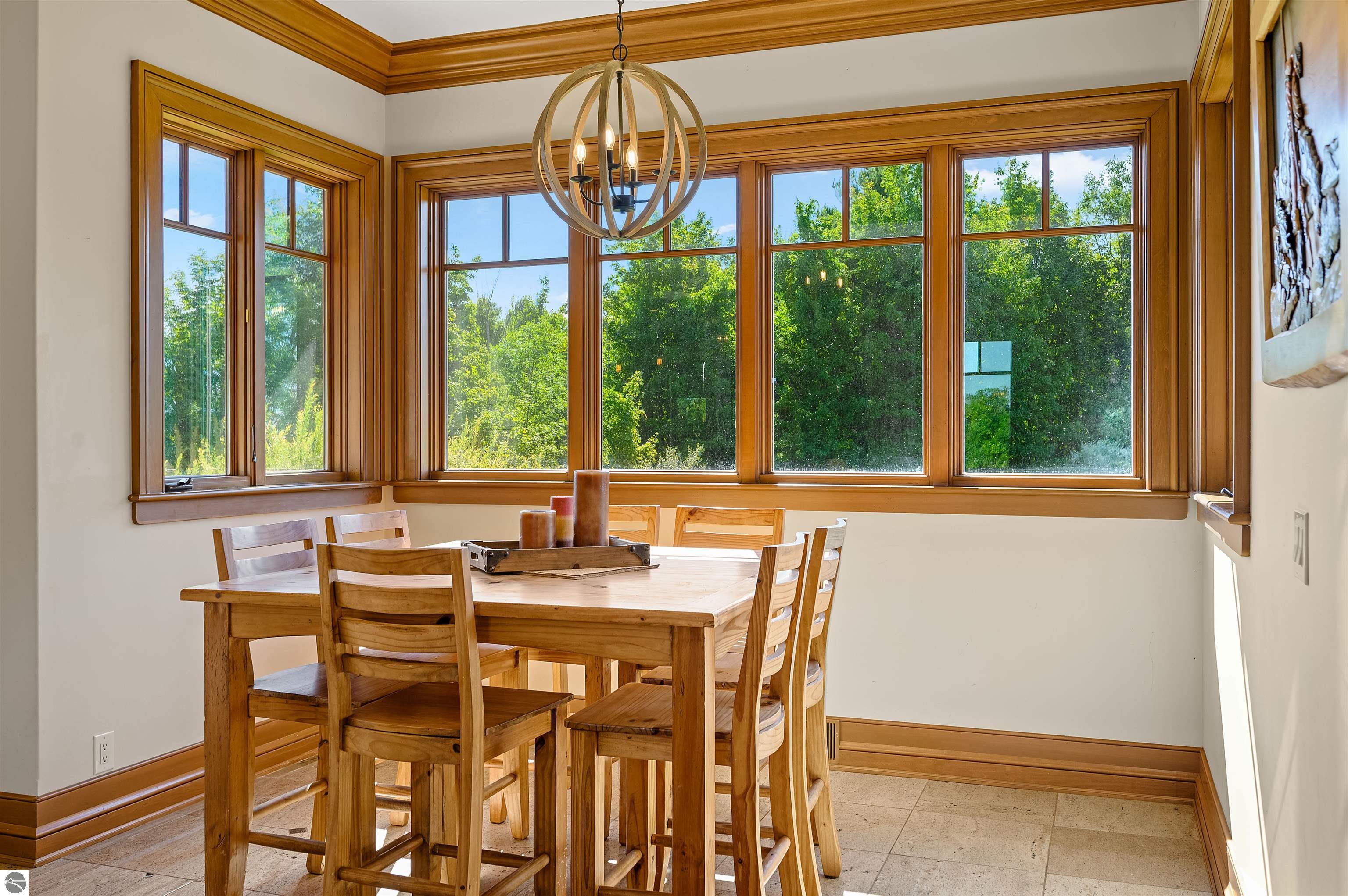 Nestled on the coveted Old Mission Peninsula, this majestic equestrian estate offers breathtaking, panoramic views of East Bay. Just a short distance from one of Michigan's most pristine beaches, this one-of-a-kind property combines luxury, functionality and natural beauty. The home is replete with distinctive, custom amenities, beginning with rich African Teak wood flooring, heated marble floors and custom moldings throughout. Fireplaces grace each level of spacious living rooms adding warmth and charm. The gourmet kitchen, complete with large walk-in pantry, a cozy eat-in nook and attached family room serves as the heart of the home. The adjacent dining room sets the stage for elegant entertaining. This estate offers an abundance of spaces for work, leisure and relaxation. The luxurious primary suite boasts a private sitting area, dual vanities, soaking tub, a spacious walk-in closet, laundry area and a private wrap around balcony overlooking the bay. Perfect for sun and moonrises over the water. The expansive walkout lower floor offers additional living and recreational spaces ideal for hosting gatherings as the doors open to patios and a level backyard lawn. Also included on this level are the theatre room, sauna, large marble steam room, billiards room/bar area, additional office space, indoor sports court, laundry and a large bonus room. Set amid a mature vineyard and apple orchard. This estate is designed for equestrian enthusiasts with a 21 stall barn equipped with living quarters and indoor arena. 3 Ramm-fenced paddocks with run-ins and an additional seven large paddocks. A separate 3 stall stable with fenced pastures is in the northeast corner of the property and provides additional space for horses. Includes a market stand and 3 custom made chicken coops. The versatile potential for horse training, boarding and winemaking makes this a rare to find estate and once-in-a-lifetime opportunity in a highly sought after location.