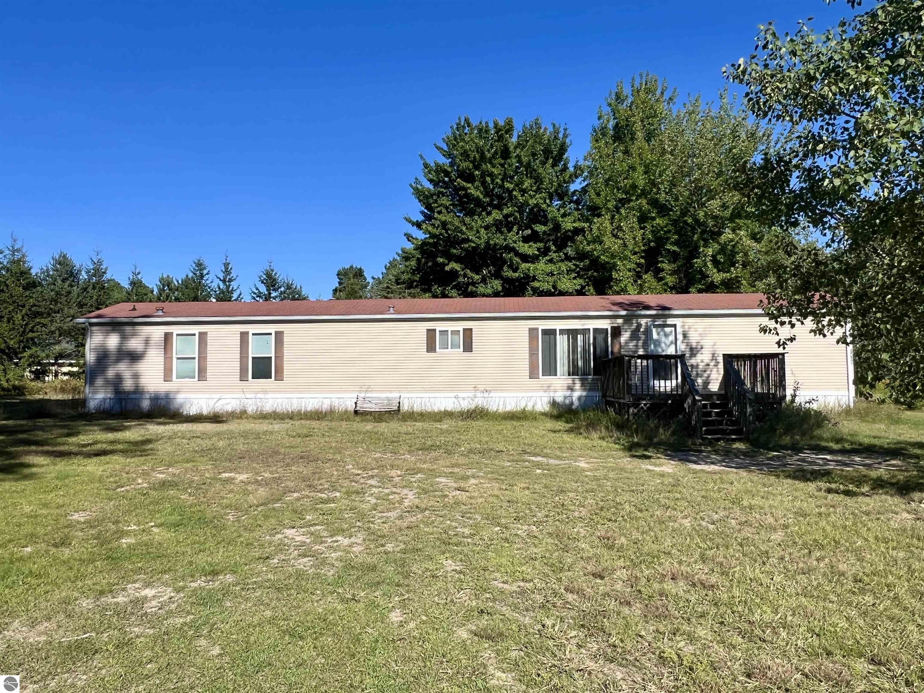 Charming & Spacious 2 Bed / 2 Bath Home with Garage Well maintained and move-in ready, this charming 16x80 manufactured home offers 2 bedrooms and 2 full bathrooms with a spacious, functional split floor layout. Great main floor living! The home is equipped with central A/C for year-round comfort. Situated on three lots totaling over one acre, the property provides both comfort and privacy with mature trees creating a sense of seclusion. Located in the desirable Homeacres Skyranch private airport community, this prime Up North property is near the country airport—perfect for aviation enthusiasts and pilots seeking convenience and lifestyle. Best of all, enjoy the benefits of this unique airpark setting with no HOA fees. Outdoor living is easy with a fenced backyard, a deck ideal for relaxing or entertaining, and a detached garage for secure parking and storage. Enjoy the best of northern Michigan living: just 2 miles from beautiful Lake Missaukee and Lake City, 15 miles from Cadillac, and less than an hour’s drive to Traverse City. All appliances included. Move in ready.