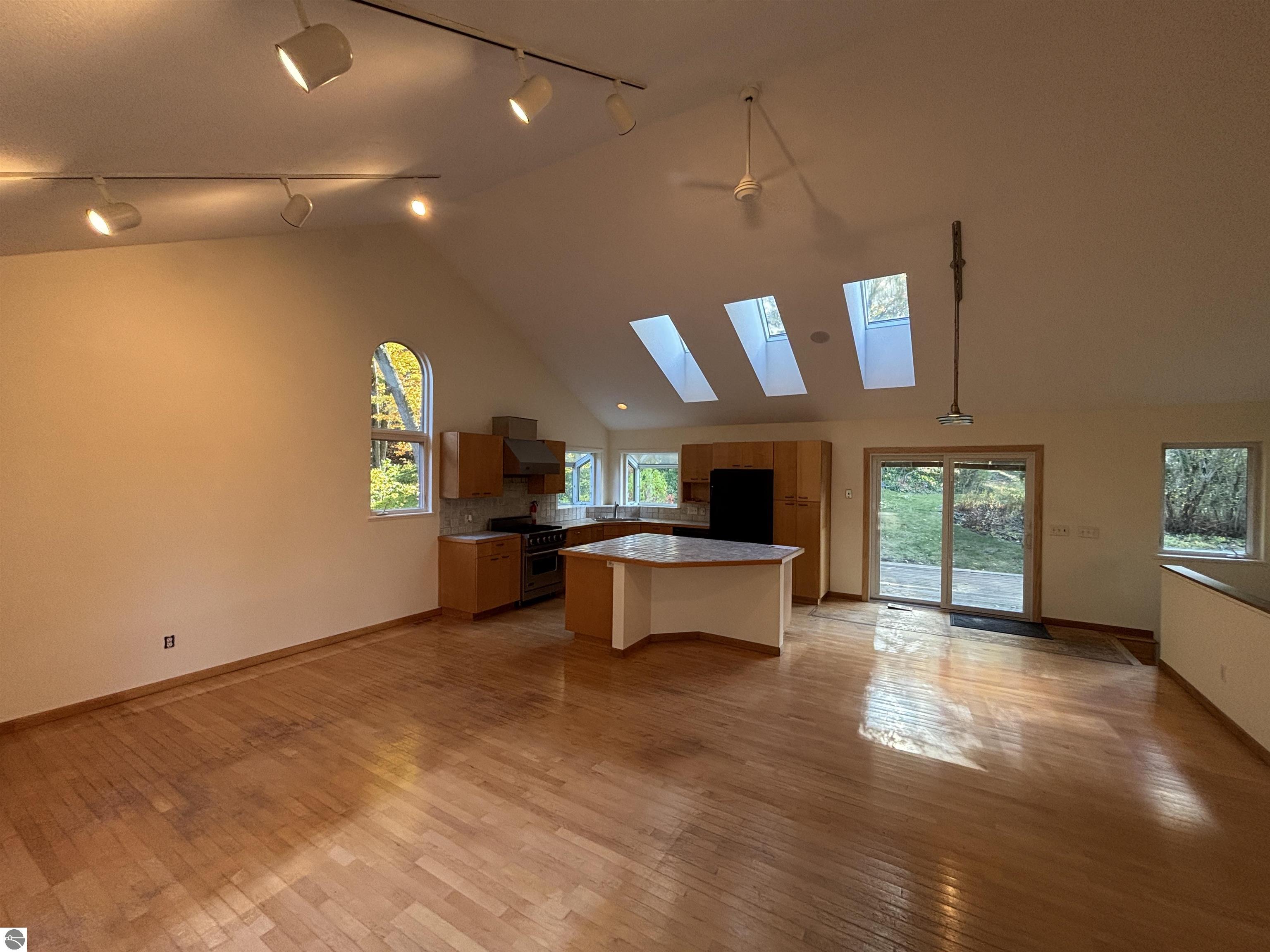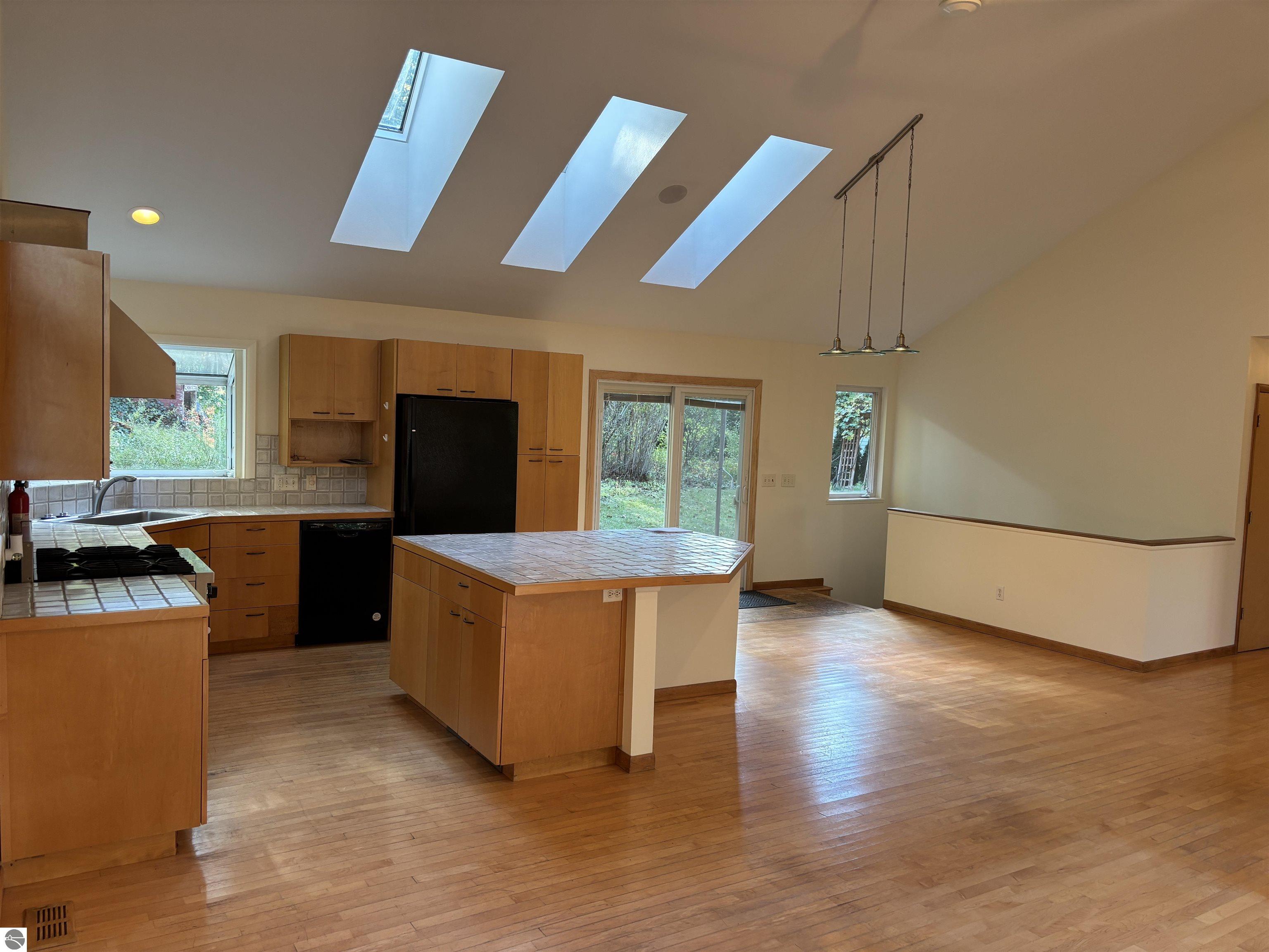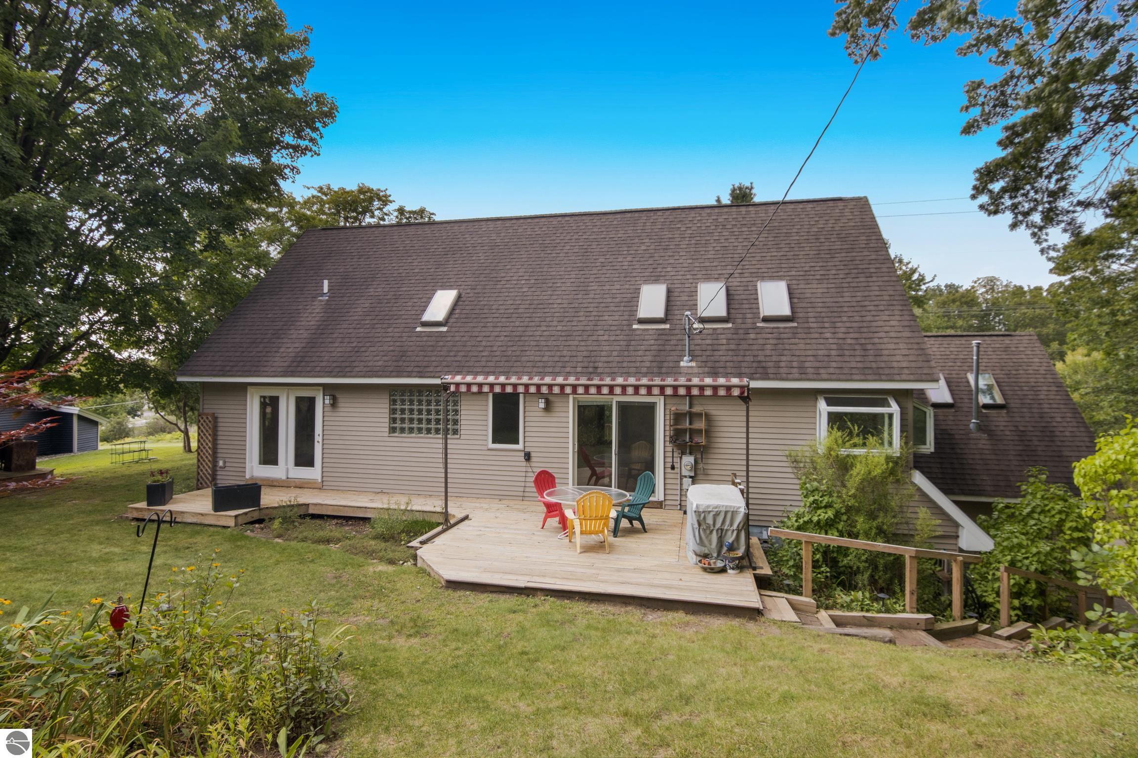 OLD MISSION PENINSULA is the setting for this newly listed home. You will love the close proximity to schools and all the amenities of living close to downtown Traverse City. As you begin your tour, you will discover open living spaces great for entertaining family and friends. The spacious living room with large picture window providing plenty of natural light and gorgeous views, vaulted ceilings, built-in bookcases, hardwood floors. The kitchen is enhanced by modern cabinetry, professional style appliances, skylights and an island with bar seating. Sliders lead you to the deck for dining al fresco, the awning will provide shade on hot summer nights and your lawn will be a perfect backdrop for creating memories with family and friends. Additionally, you will discover three main floor bedrooms, 2 baths; a lower level with a large family room and a workshop, ideal for the crafter or handyman in your household. The sauna will be great for relaxing. The garden shed offers extra storage space plus there is a 2-car garage. Desirable Traverse City school district. This home is ready to welcome your family!