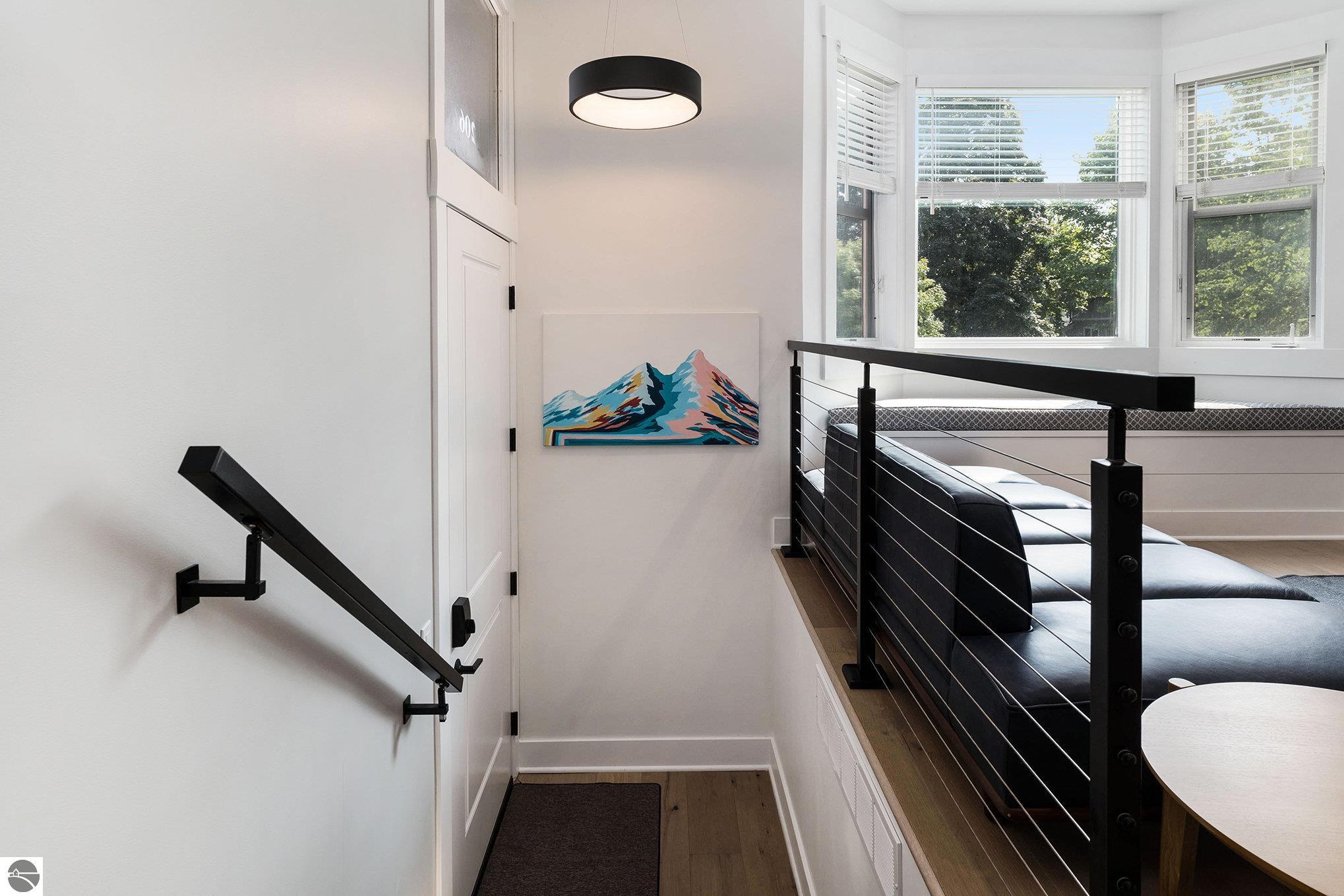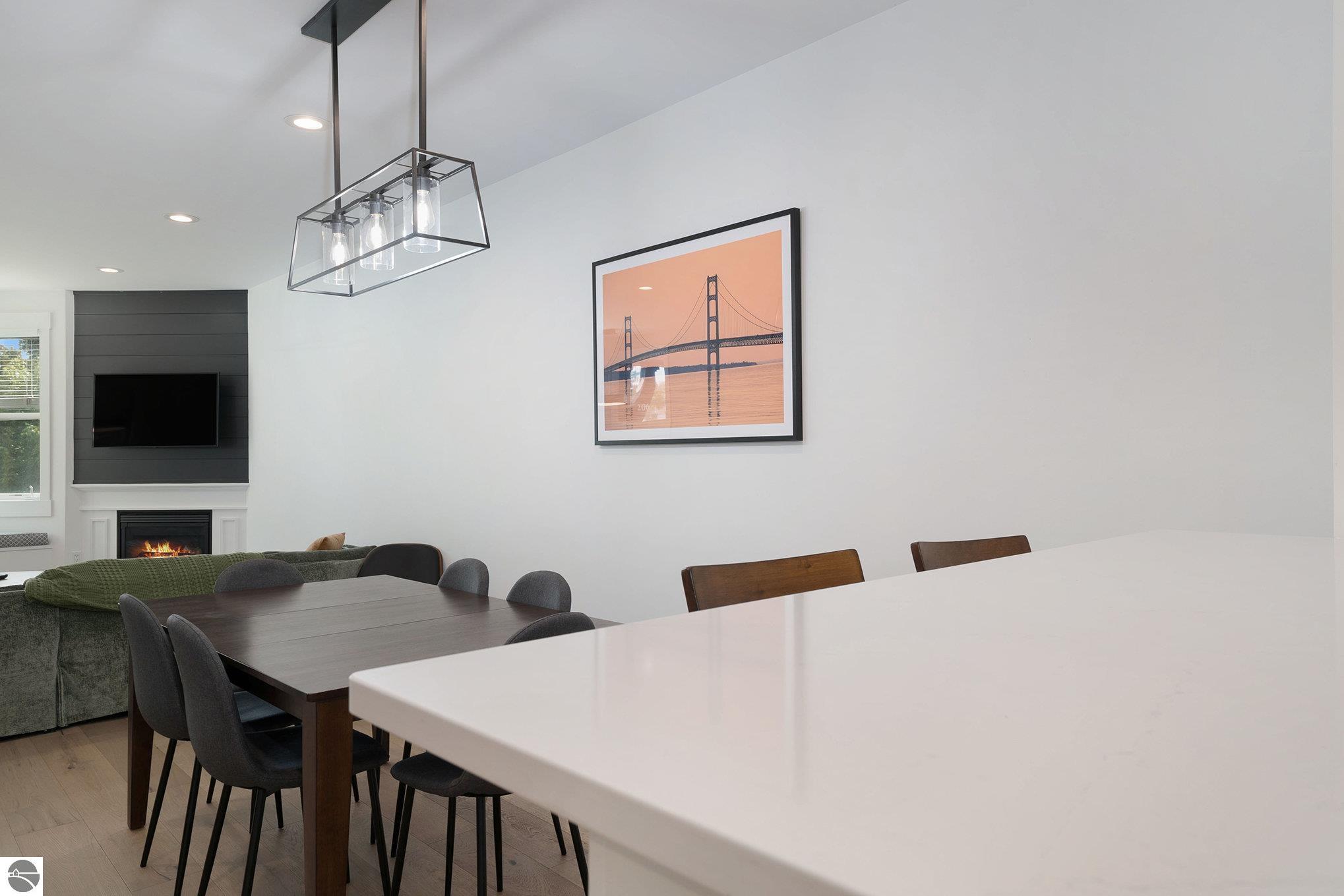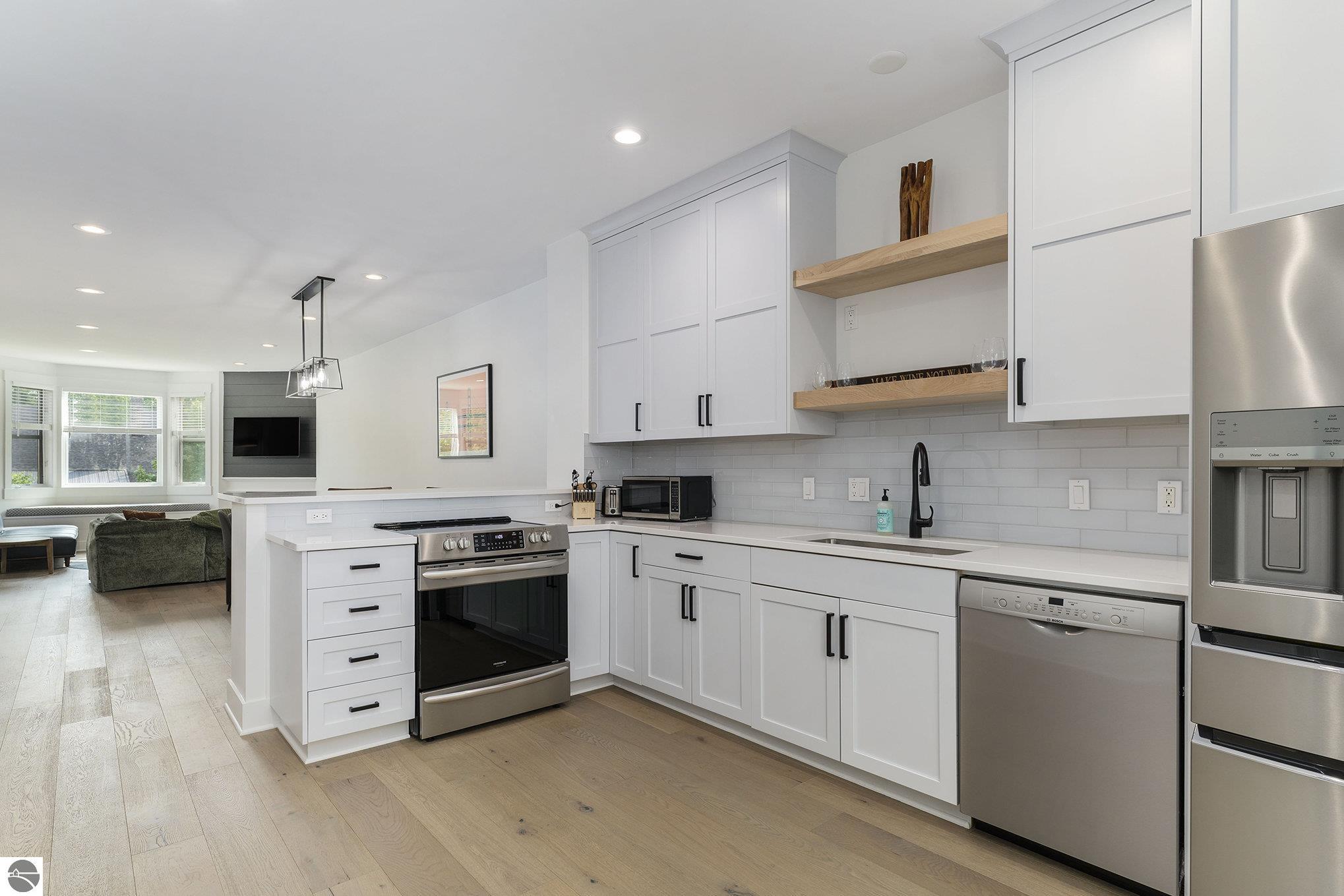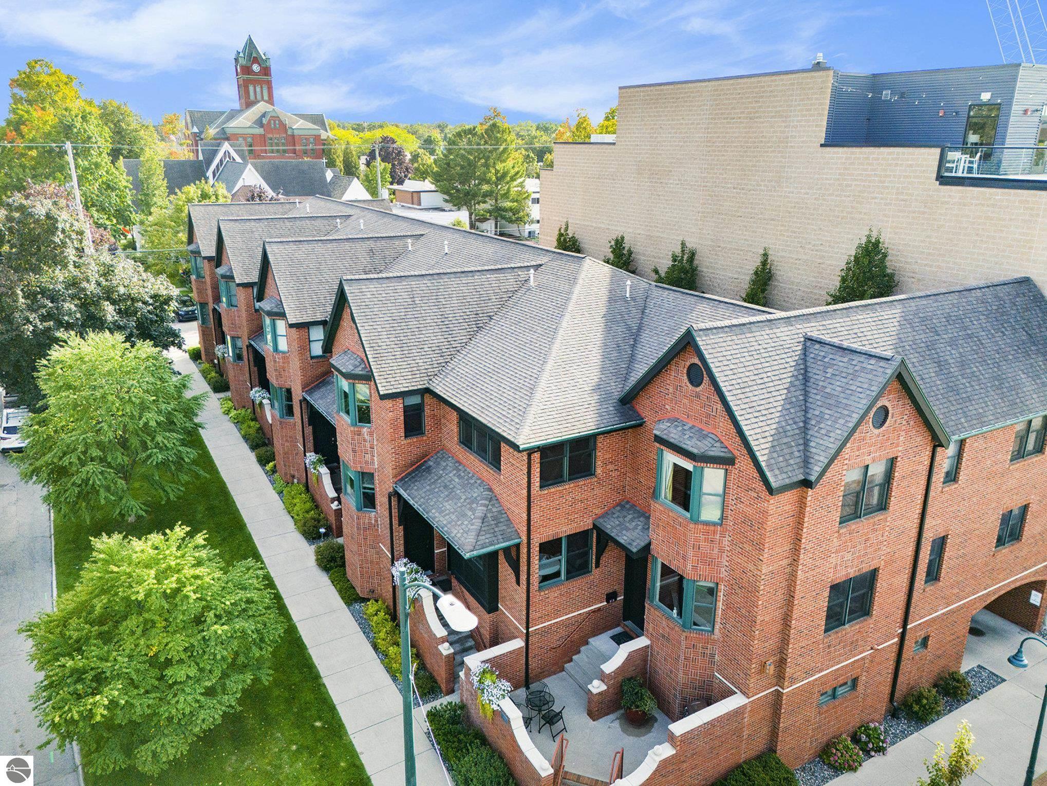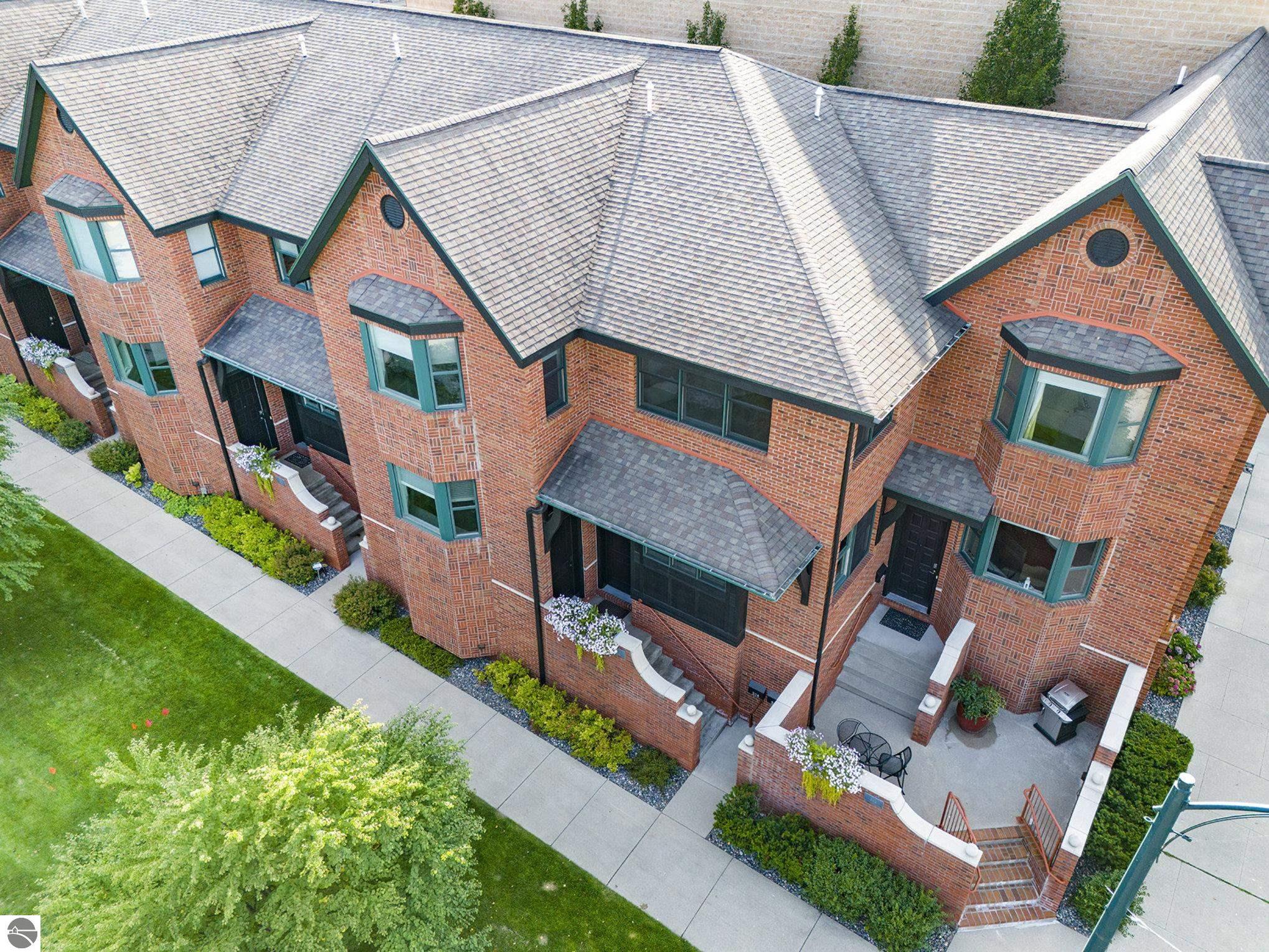 Welcome to the coveted Brownstones in downtown Traverse City! This beautifully updated 2-bed, 2.5-bath condo offers nearly 1,500 sq. ft. of thoughtfully designed living space. The 2023 renovation features wide-plank wood floors, a bright modern kitchen with quartz countertops, stainless steel appliances, and open shelving, plus stylish lighting and fresh paint throughout. The open-concept main level includes a cozy living room with a gas fireplace, custom window bench, and large windows for abundant natural light. Upstairs, you’ll find two spacious bedrooms, each with en-suite baths, and a convenient laundry area. Enjoy private outdoor entry, attached garage parking, and low-maintenance living—just blocks from the beaches, shops, dining, and entertainment of downtown TC. Move-in ready and ideal as a year-round home or city retreat! This condo can be short term rented as well, offering a great investment opportunity!