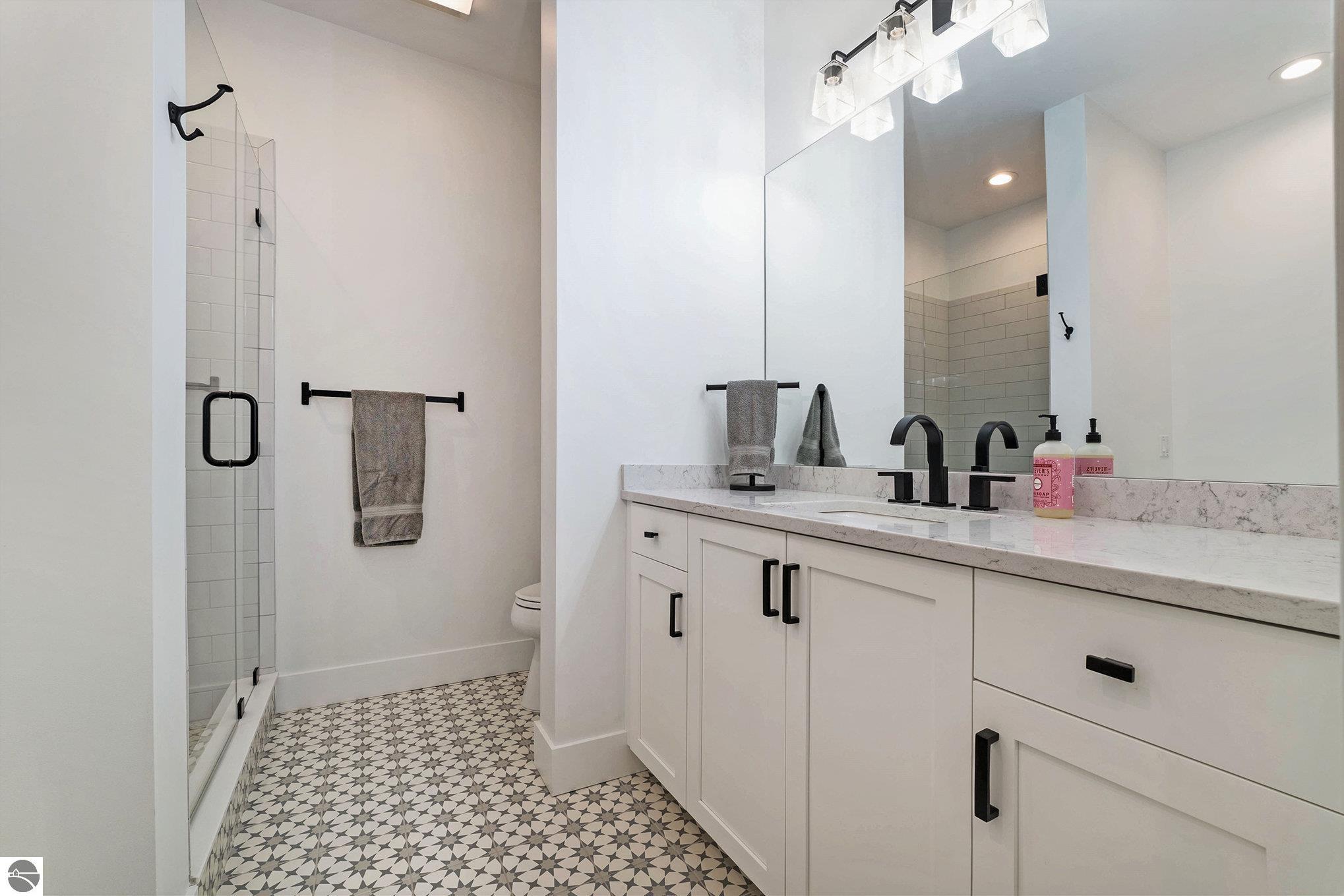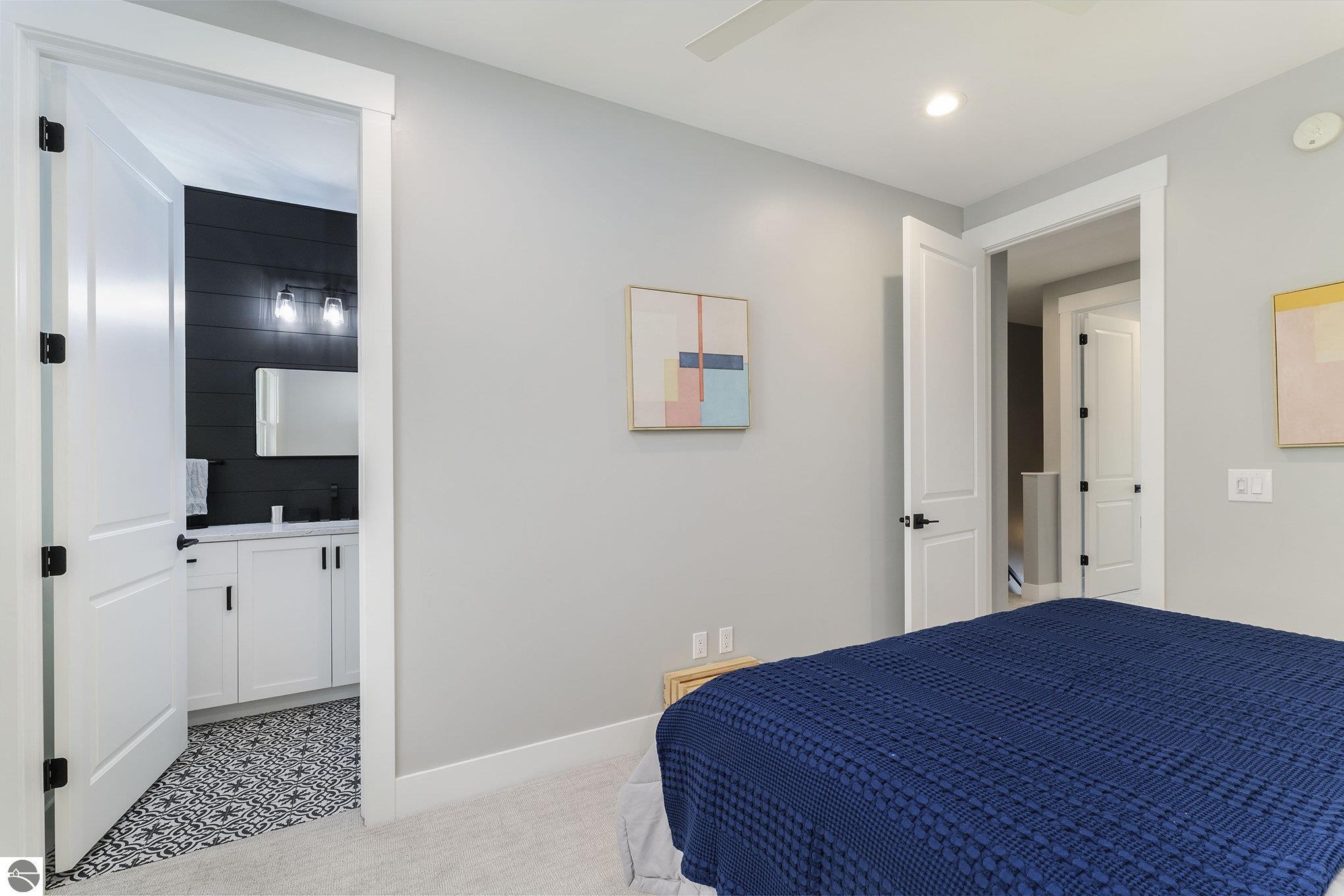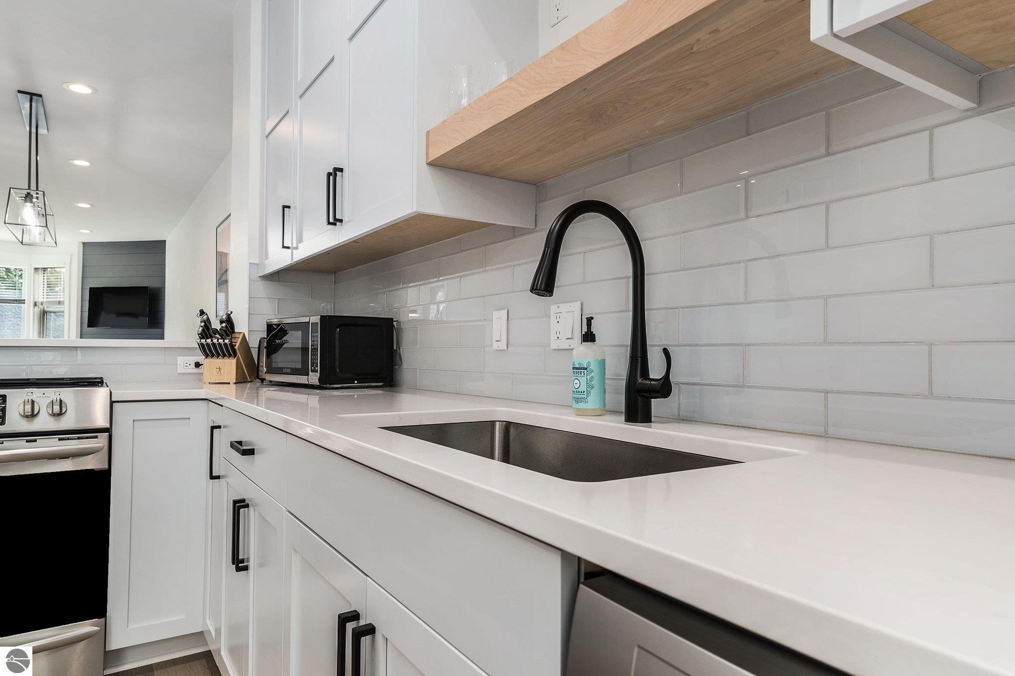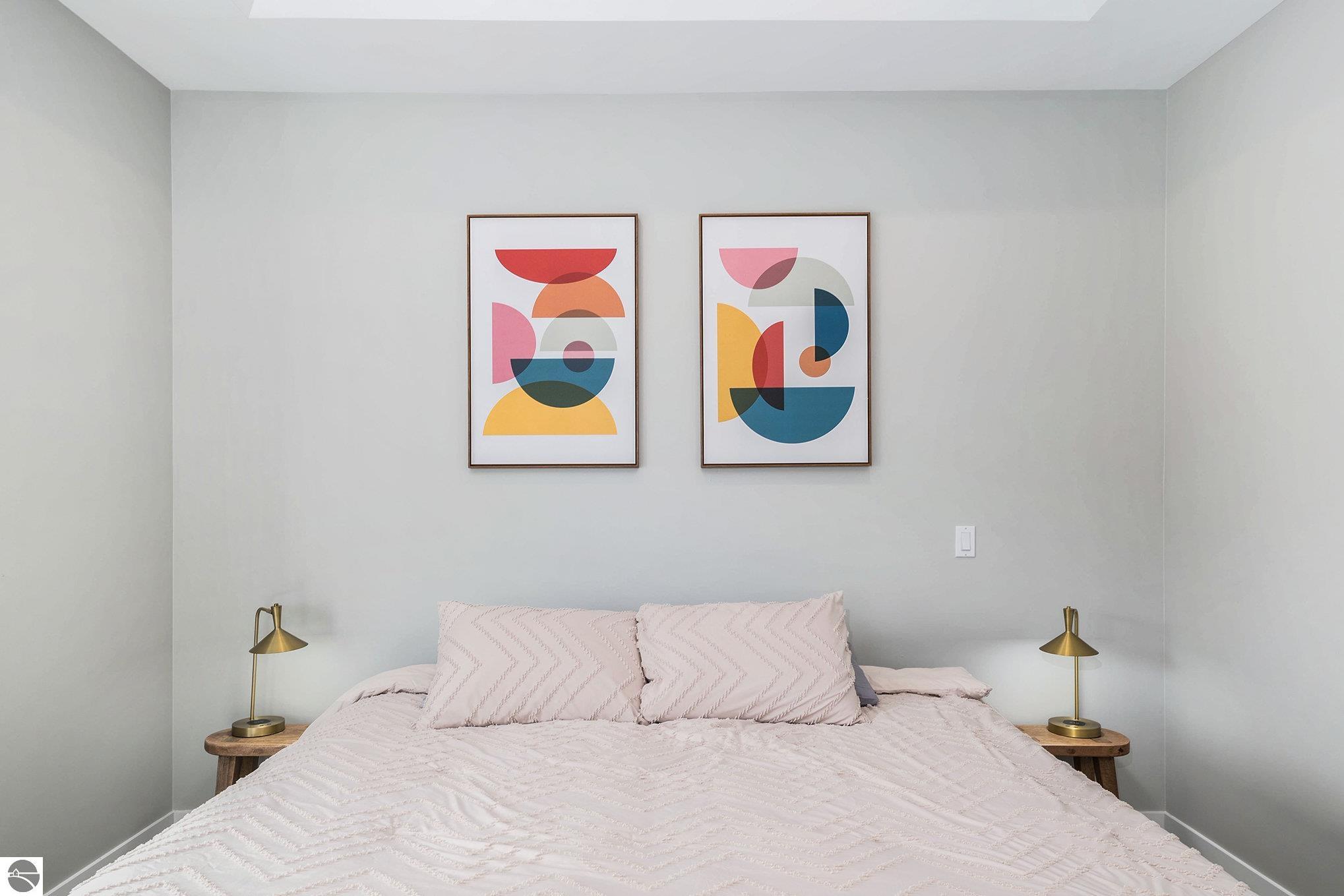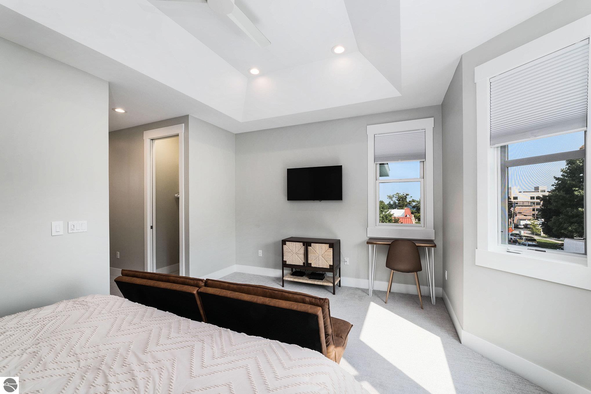 Welcome to the coveted Brownstones in downtown Traverse City! This beautifully updated 2-bed, 2.5-bath condo offers nearly 1,500 sq. ft. of thoughtfully designed living space. The 2023 renovation features wide-plank wood floors, a bright modern kitchen with quartz countertops, stainless steel appliances, and open shelving, plus stylish lighting and fresh paint throughout. The open-concept main level includes a cozy living room with a gas fireplace, custom window bench, and large windows for abundant natural light. Upstairs, you’ll find two spacious bedrooms, each with en-suite baths, and a convenient laundry area. Enjoy private outdoor entry, attached garage parking, and low-maintenance living—just blocks from the beaches, shops, dining, and entertainment of downtown TC. Move-in ready and ideal as a year-round home or city retreat! This condo can be short term rented as well, offering a great investment opportunity!