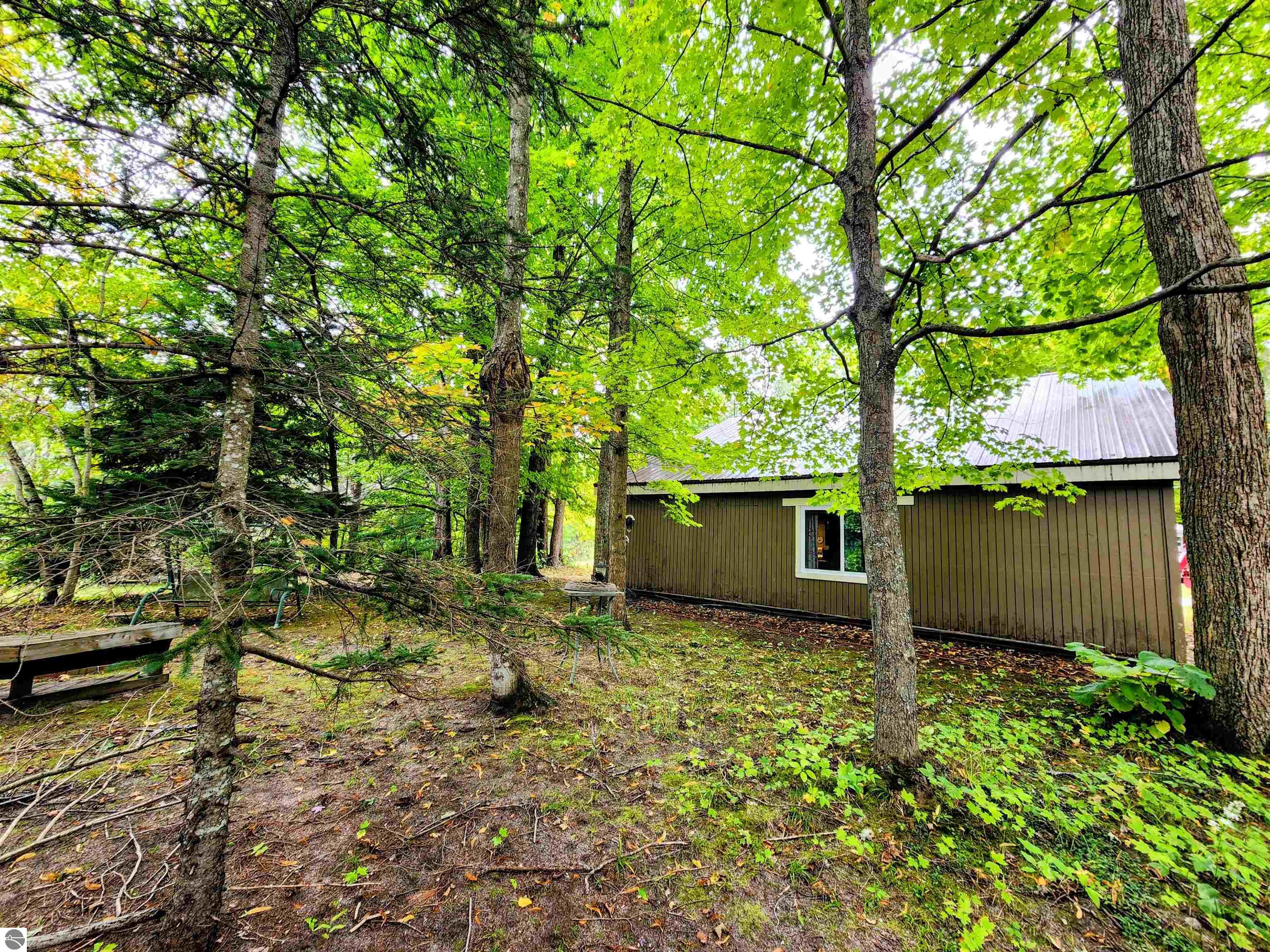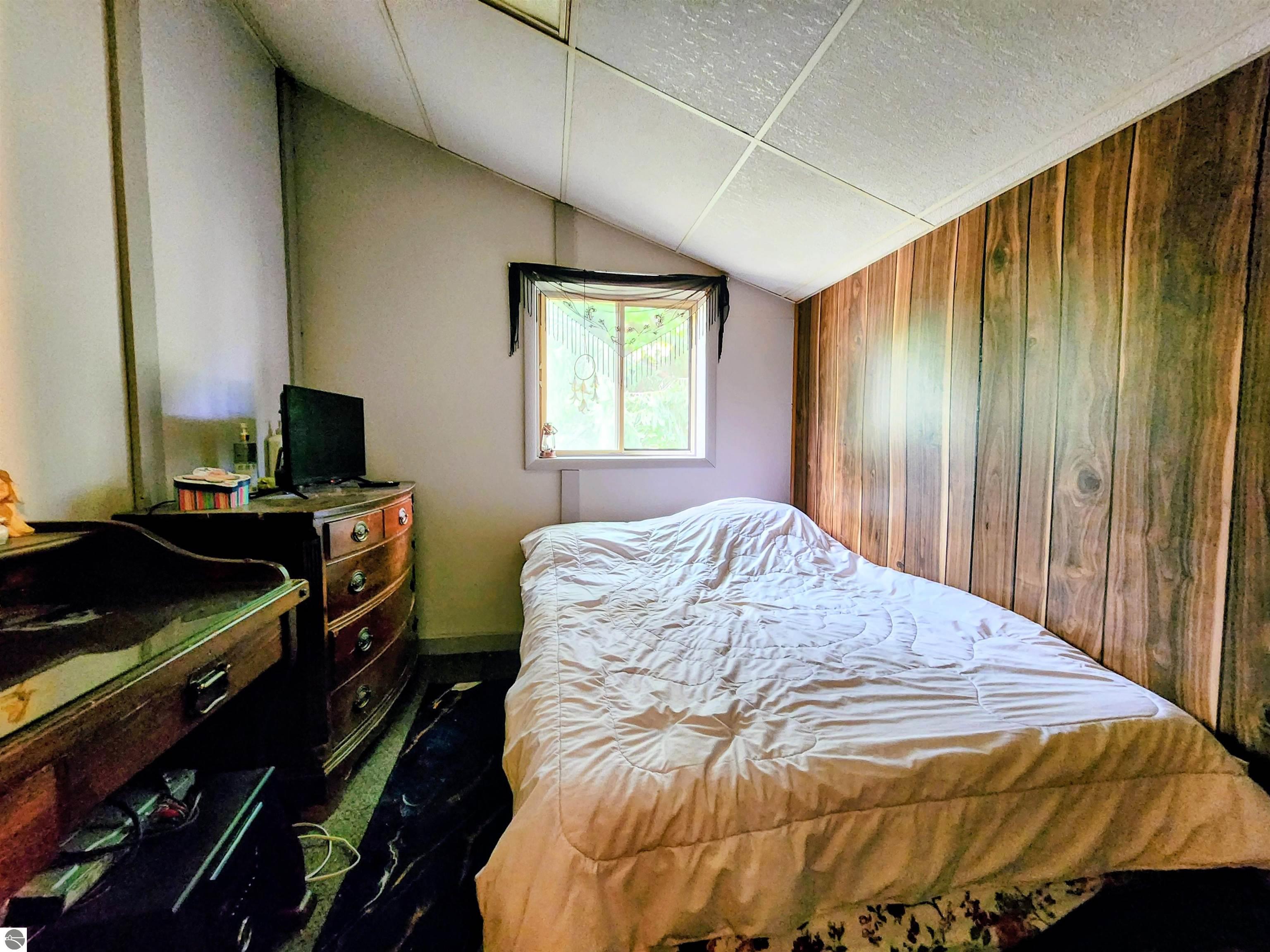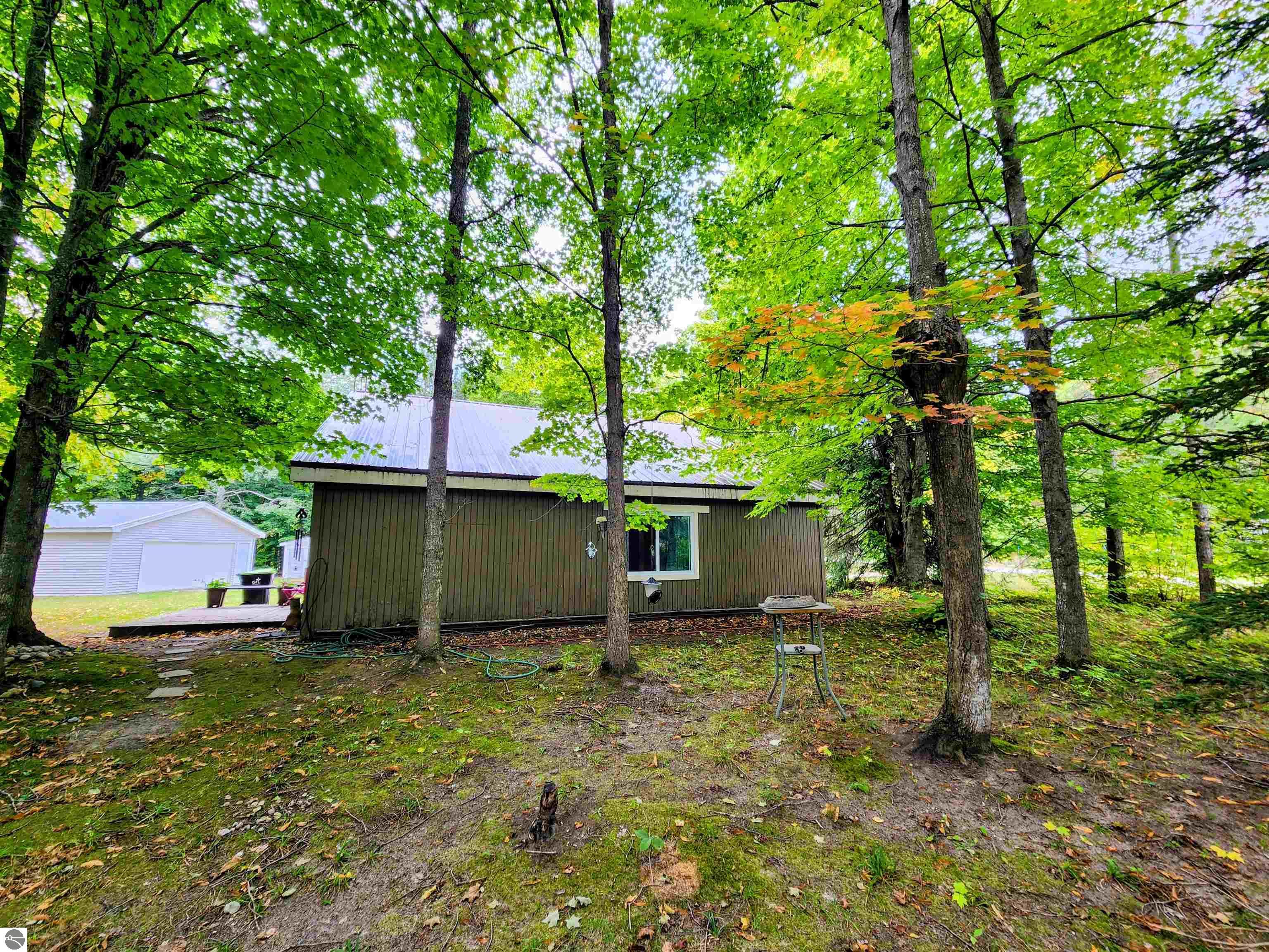 Located on a quiet cul-de-sac in Lakes of the North, this story-and-a-half home offers a comfortable Northern Michigan retreat. The floor plan includes 2 bedrooms (1 non-conforming), a 3/4 bath, and a cozy main living area that connects to the kitchen and dining spaces. The upper level provides additional sleeping or flex space, ideal for guests, storage, or a home office. Built on a slab foundation, the property also features an oversized 1-car garage with room for parking, storage, or recreational equipment. Surrounded by trees, the setting provides privacy and a quiet Up North atmosphere. As part of the Lakes of the North community, you’ll have access to an indoor pool, fitness center, golf course, clubhouse, private lakes, campground, and miles of year-round trails. Conveniently situated between Mancelona and Gaylord, this home is well-suited as a year-round residence, seasonal getaway, or vacation rental.