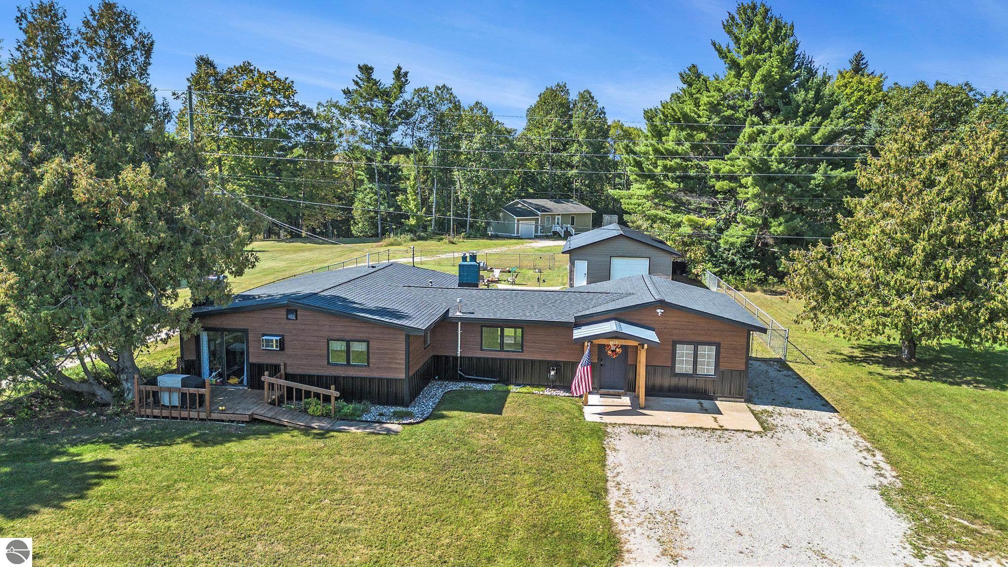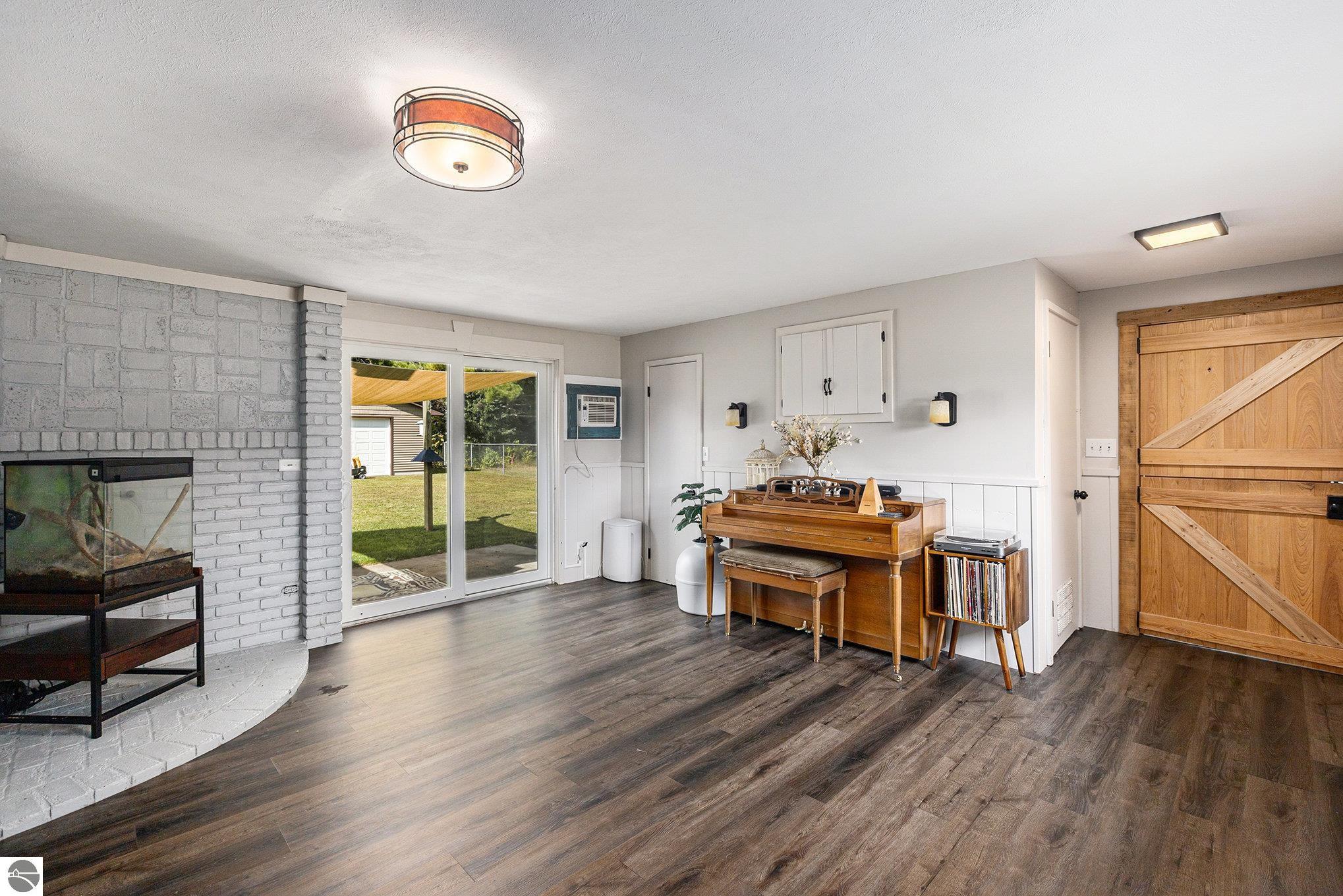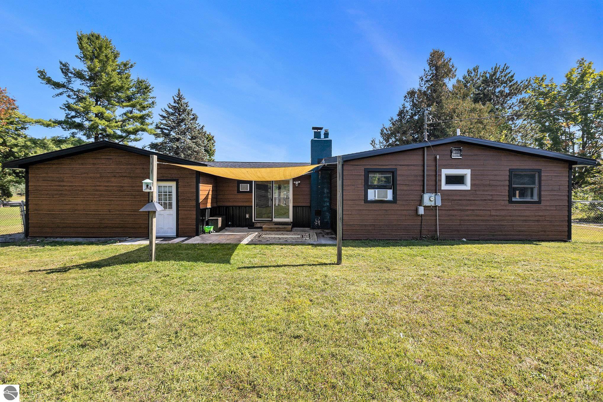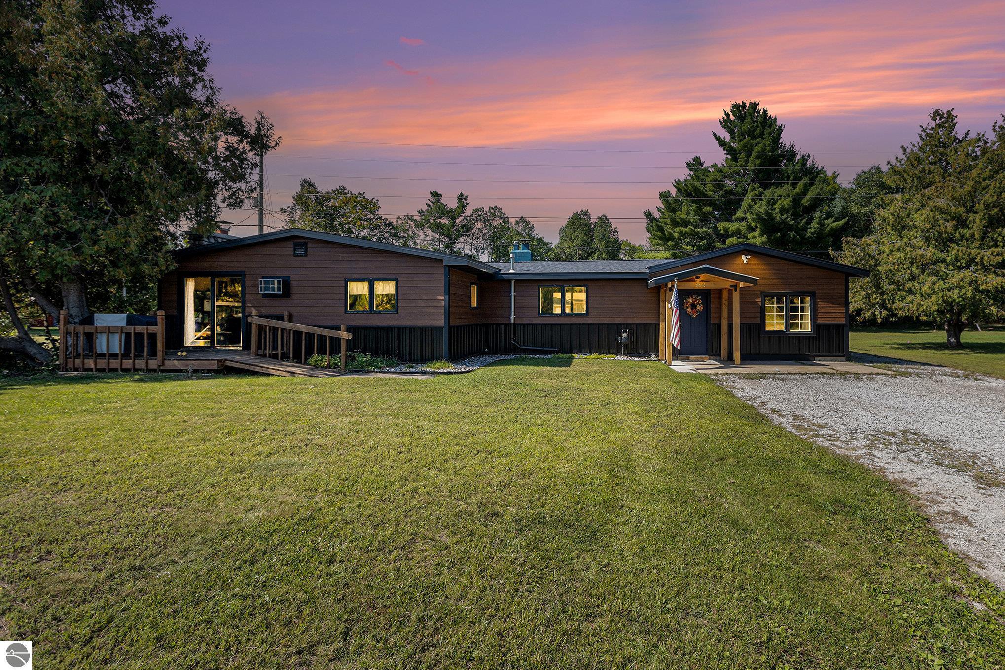 Discover the perfect mix of charm and updates in this 3 bedroom, 1 bath ranch on a spacious 1-acre lot. Recently refreshed with new flooring and paint, this home is move-in ready from day one. The updated kitchen features new countertops, backsplash, and appliances, while the dining area is anchored by a stunning natural stone fireplace and wood floors. The cozy living room offers a brick accent wall, tile flooring, and easy access to the fenced backyard. A fully remodeled bathroom showcases a walk-in glass shower, wood ceiling, and new vanity. The versatile bonus room with in-floor heat, porcelain plank tile, and Paradigm windows/doors is ideal as a gym, office, or flex space. Outside, enjoy a screened patio, fenced yard, and modern curb appeal with LP Smart Diamond siding, black-trimmed windows, and a newer roof. A 24x48 pole barn—updated with new siding, metal roof, cement floor, and electric—provides incredible storage and workspace. Just minutes from Torch Lake, Rapid River, boat launches, and the Famous Sandbar, with easy access to Elk Rapids, Acme, Kalkaska, Alden, and Bellaire.