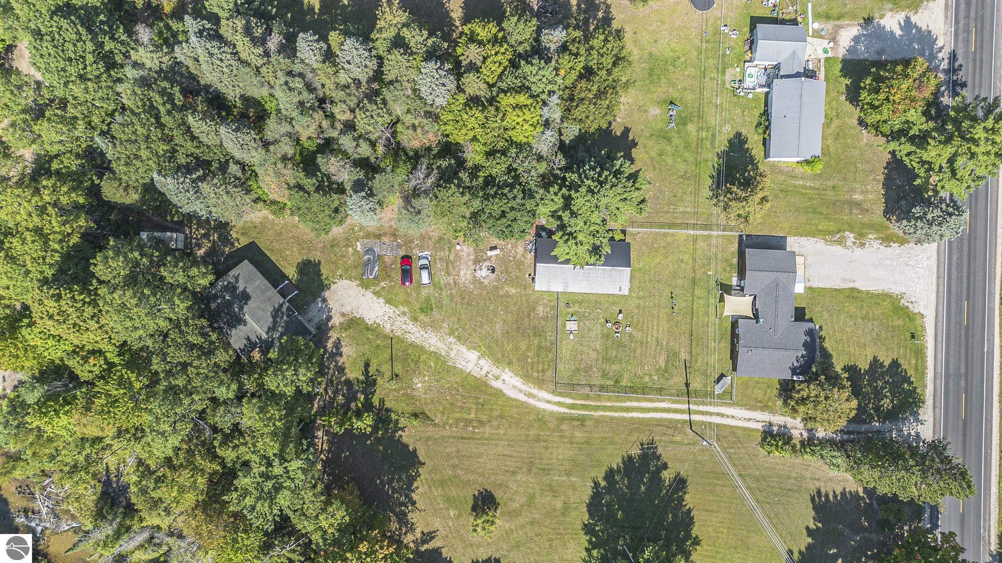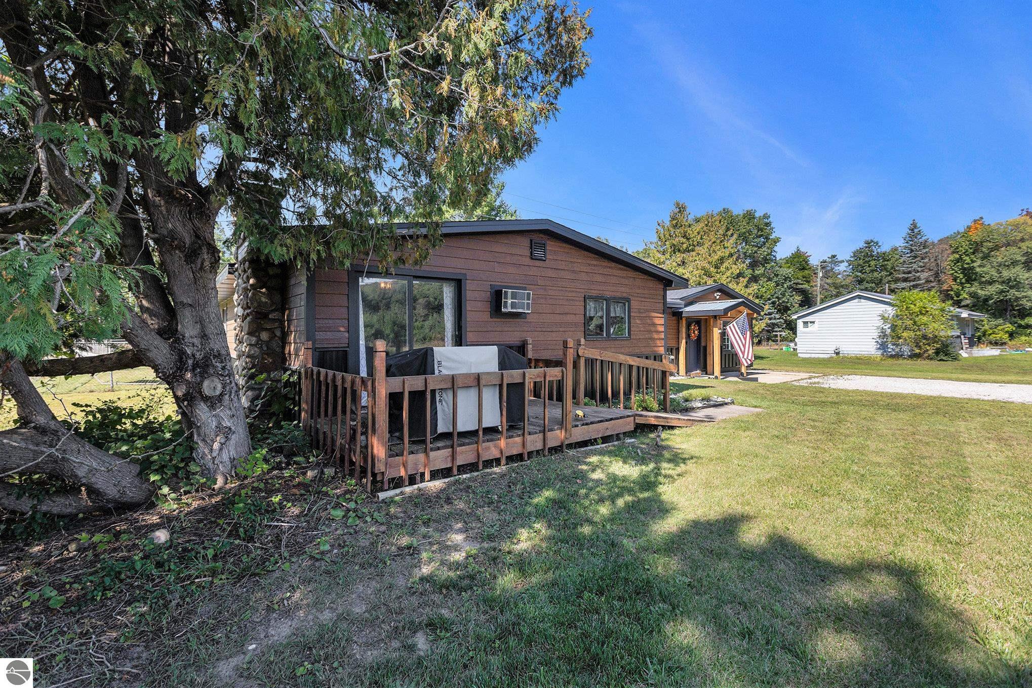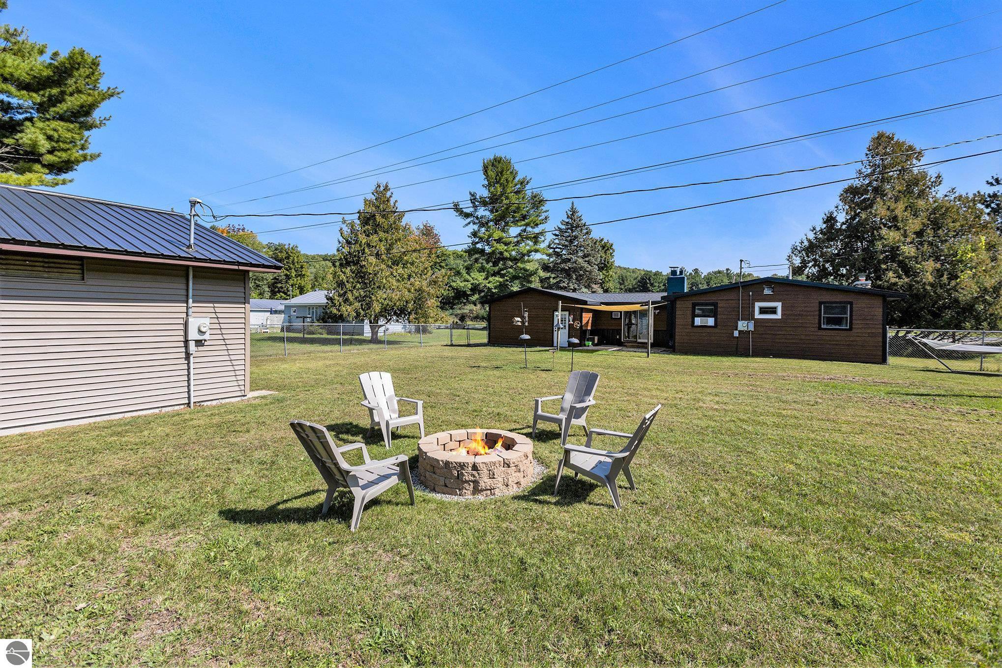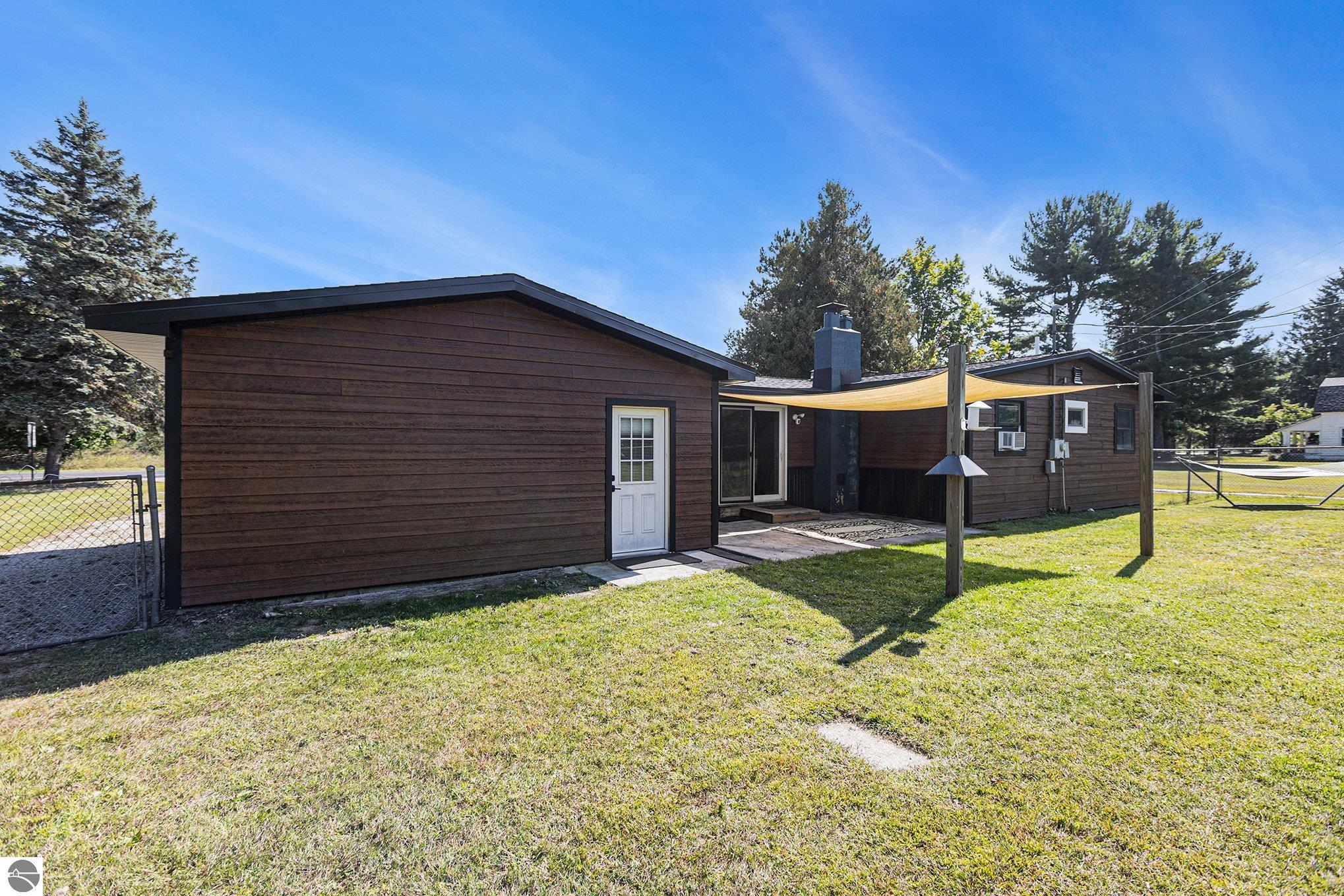 Discover the perfect mix of charm and updates in this 3 bedroom, 1 bath ranch on a spacious 1-acre lot. Recently refreshed with new flooring and paint, this home is move-in ready from day one. The updated kitchen features new countertops, backsplash, and appliances, while the dining area is anchored by a stunning natural stone fireplace and wood floors. The cozy living room offers a brick accent wall, tile flooring, and easy access to the fenced backyard. A fully remodeled bathroom showcases a walk-in glass shower, wood ceiling, and new vanity. The versatile bonus room with in-floor heat, porcelain plank tile, and Paradigm windows/doors is ideal as a gym, office, or flex space. Outside, enjoy a screened patio, fenced yard, and modern curb appeal with LP Smart Diamond siding, black-trimmed windows, and a newer roof. A 24x48 pole barn—updated with new siding, metal roof, cement floor, and electric—provides incredible storage and workspace. Just minutes from Torch Lake, Rapid River, boat launches, and the Famous Sandbar, with easy access to Elk Rapids, Acme, Kalkaska, Alden, and Bellaire.