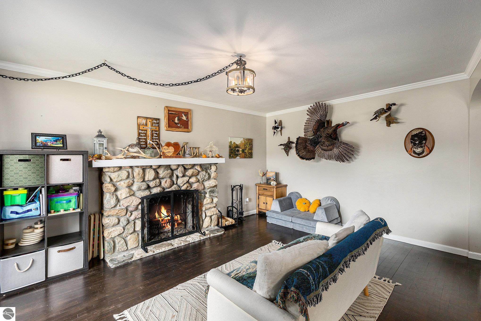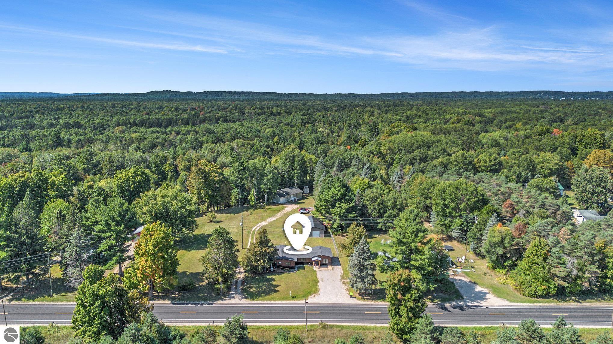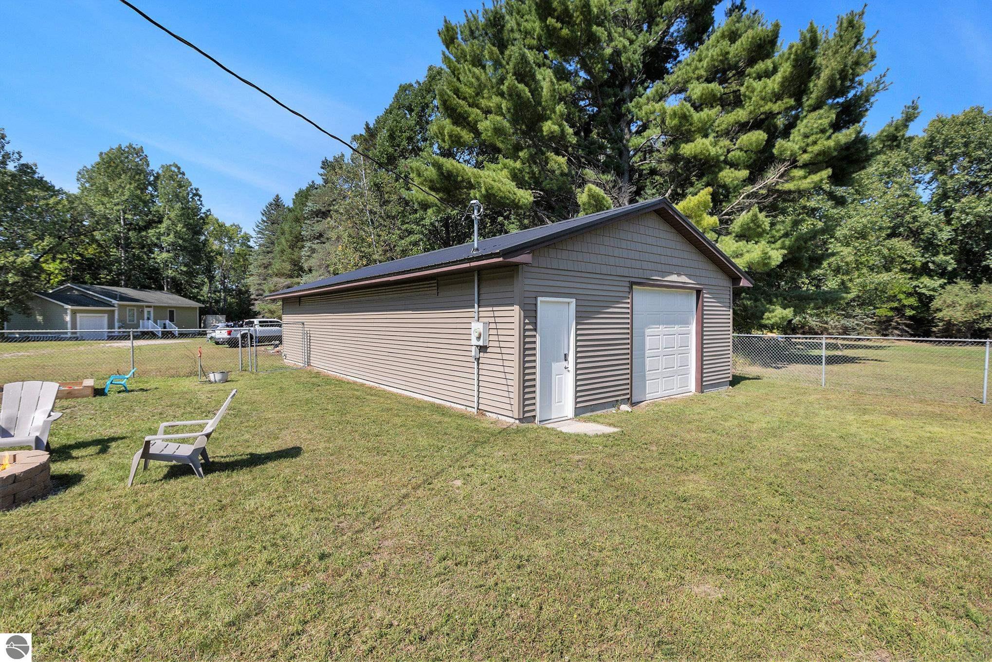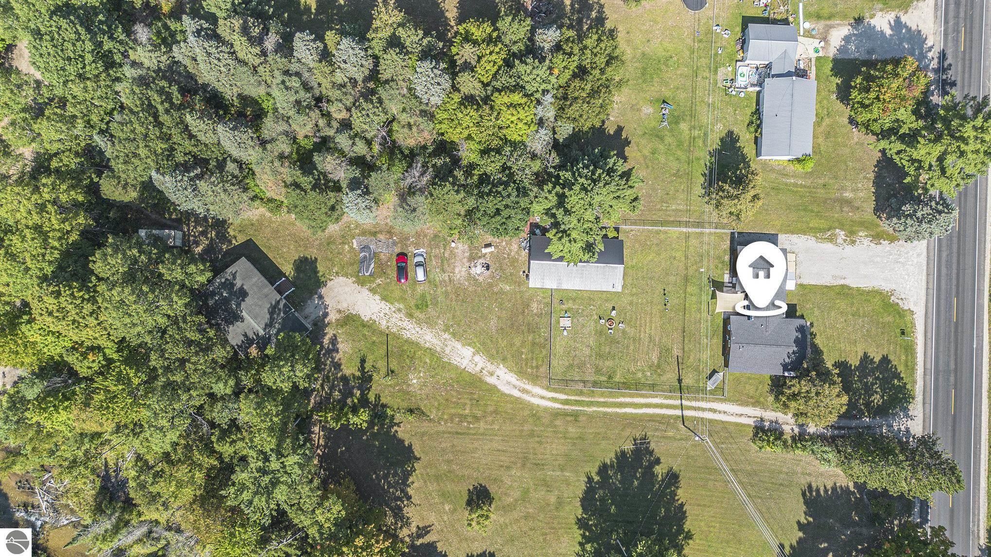 Discover the perfect mix of charm and updates in this 3 bedroom, 1 bath ranch on a spacious 1-acre lot. Recently refreshed with new flooring and paint, this home is move-in ready from day one. The updated kitchen features new countertops, backsplash, and appliances, while the dining area is anchored by a stunning natural stone fireplace and wood floors. The cozy living room offers a brick accent wall, tile flooring, and easy access to the fenced backyard. A fully remodeled bathroom showcases a walk-in glass shower, wood ceiling, and new vanity. The versatile bonus room with in-floor heat, porcelain plank tile, and Paradigm windows/doors is ideal as a gym, office, or flex space. Outside, enjoy a screened patio, fenced yard, and modern curb appeal with LP Smart Diamond siding, black-trimmed windows, and a newer roof. A 24x48 pole barn—updated with new siding, metal roof, cement floor, and electric—provides incredible storage and workspace. Just minutes from Torch Lake, Rapid River, boat launches, and the Famous Sandbar, with easy access to Elk Rapids, Acme, Kalkaska, Alden, and Bellaire.