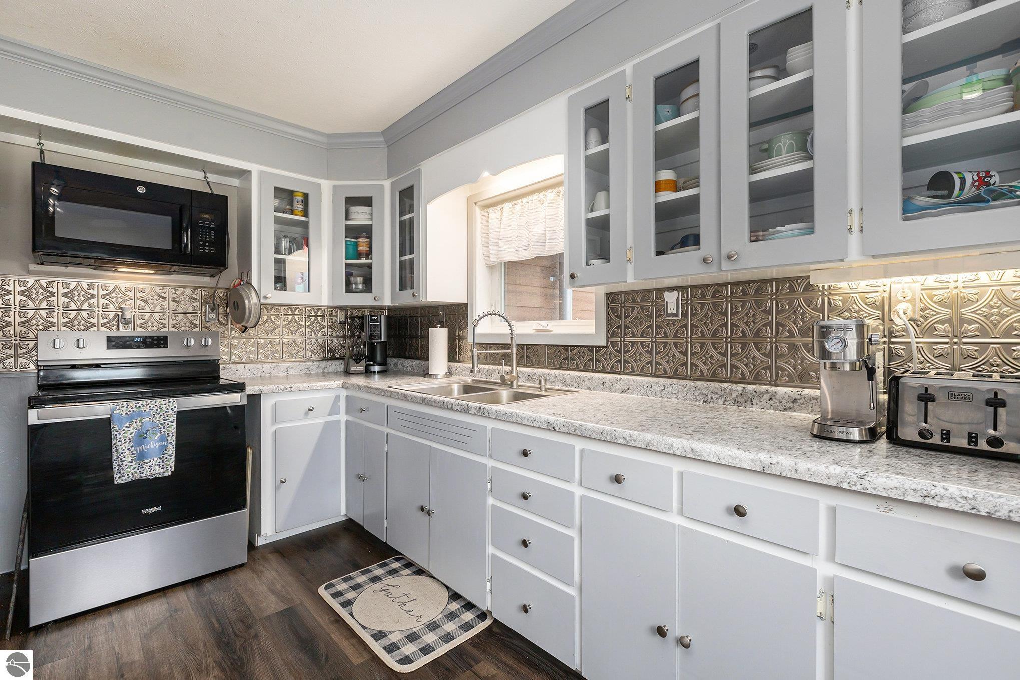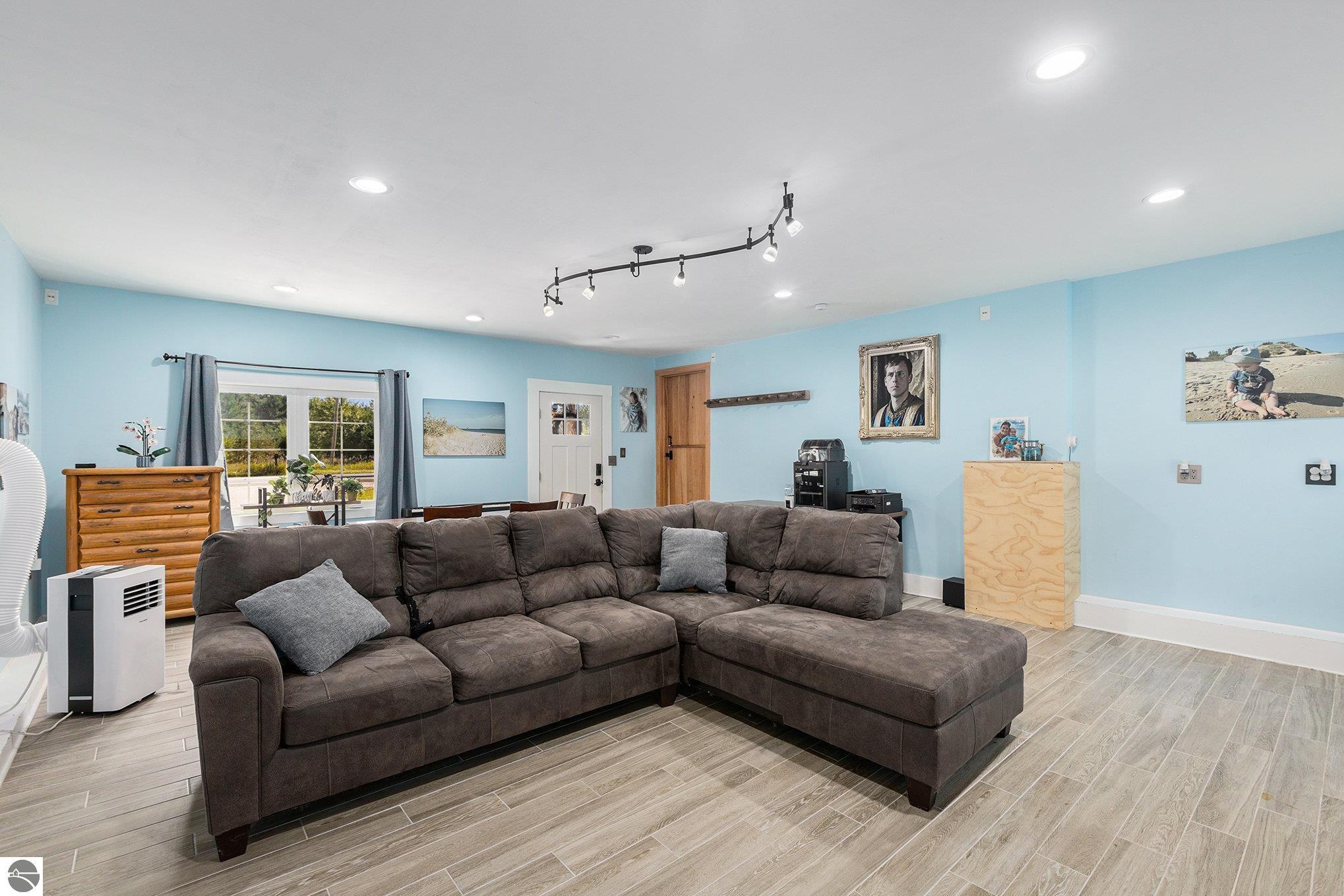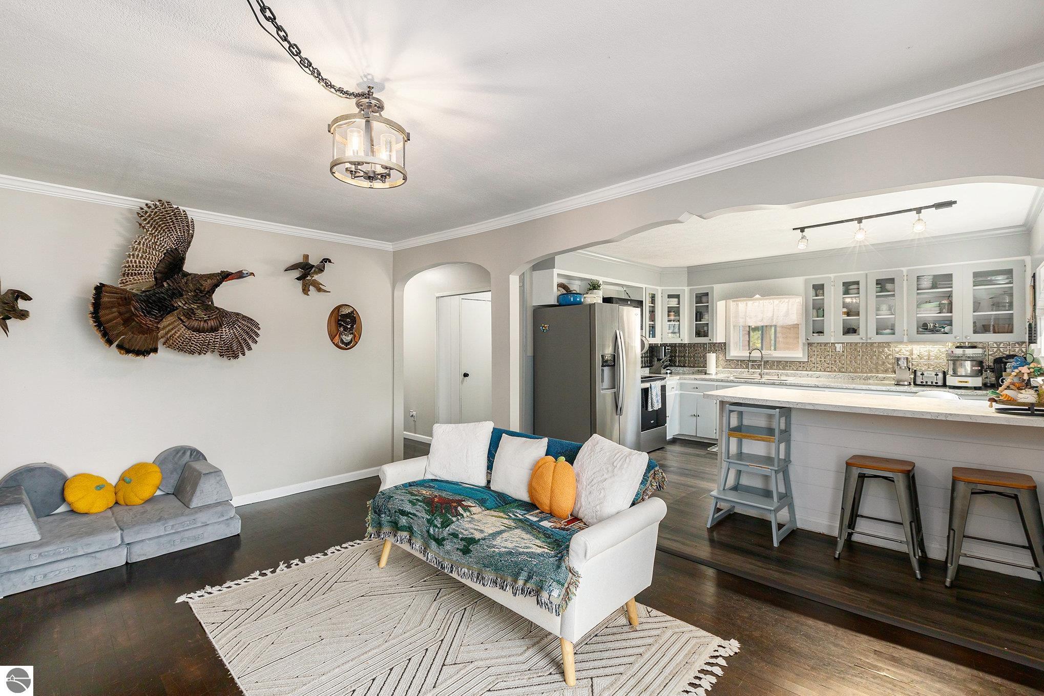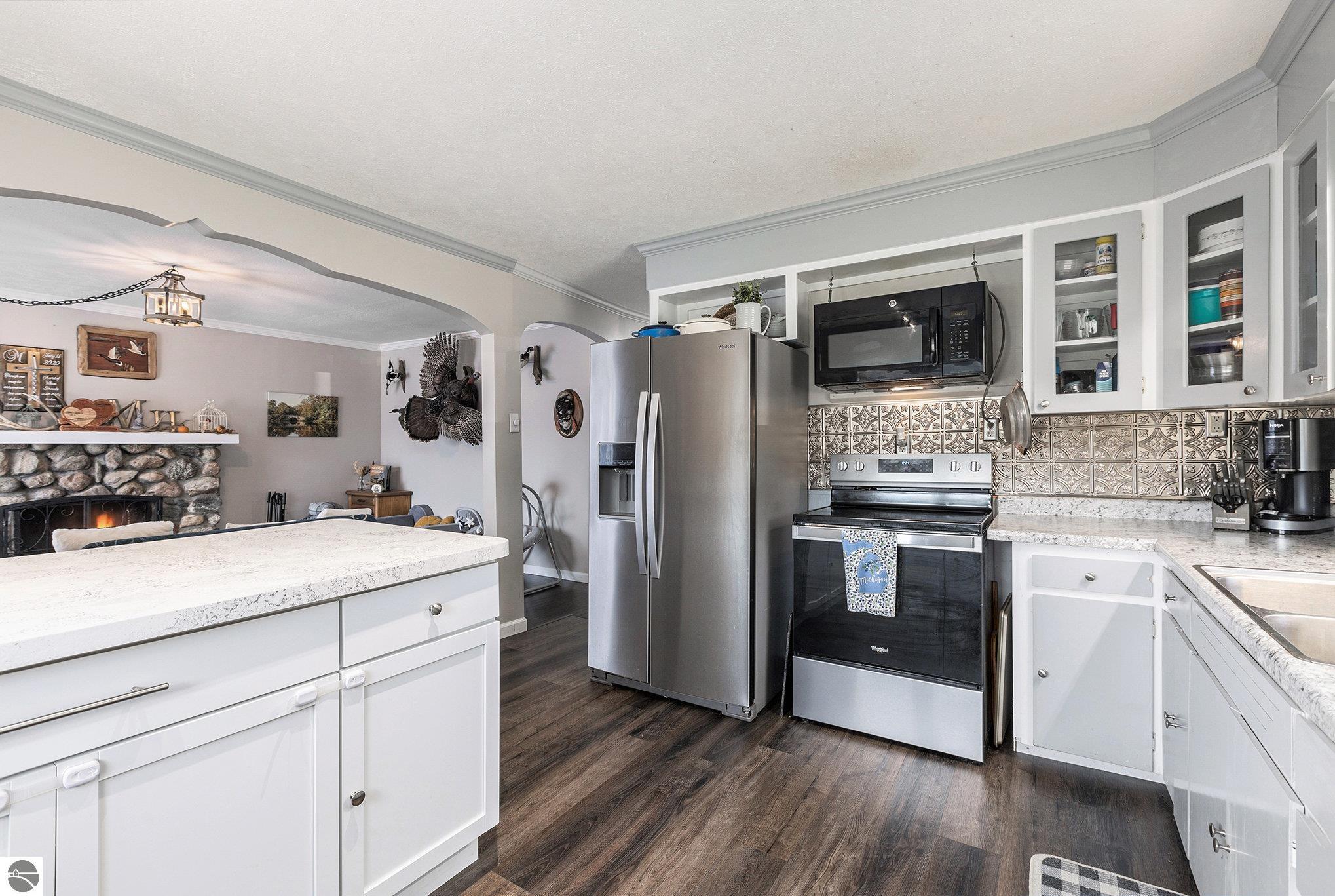 Discover the perfect mix of charm and updates in this 3 bedroom, 1 bath ranch on a spacious 1-acre lot. Recently refreshed with new flooring and paint, this home is move-in ready from day one. The updated kitchen features new countertops, backsplash, and appliances, while the dining area is anchored by a stunning natural stone fireplace and wood floors. The cozy living room offers a brick accent wall, tile flooring, and easy access to the fenced backyard. A fully remodeled bathroom showcases a walk-in glass shower, wood ceiling, and new vanity. The versatile bonus room with in-floor heat, porcelain plank tile, and Paradigm windows/doors is ideal as a gym, office, or flex space. Outside, enjoy a screened patio, fenced yard, and modern curb appeal with LP Smart Diamond siding, black-trimmed windows, and a newer roof. A 24x48 pole barn—updated with new siding, metal roof, cement floor, and electric—provides incredible storage and workspace. Just minutes from Torch Lake, Rapid River, boat launches, and the Famous Sandbar, with easy access to Elk Rapids, Acme, Kalkaska, Alden, and Bellaire.