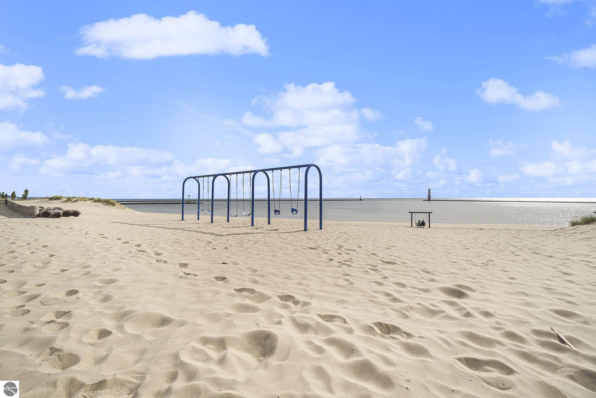 Welcome to Dune Ridge at Betsie Bay, a rare and refined collection of lakefront residences set on Betsie Bay in the charming coastal town of Frankfort, Michigan. This thoughtfully planned community will feature 42 two-bedroom condominium units across three architecturally designed buildings. Eighteen of these will sit up on the ridge with breathtaking lake views and are now available for reservation, with construction to begin in Spring 2026 and target completion by Spring 2027. Choose from two functional floorplans, each offering expansive westerly views of Betsie Bay and Lake Michigan. Enjoy stunning sunsets right from your living space or private patio. For boating enthusiasts, select units may include a boat slip, providing convenient access to Lake Michigan for unforgettable lake cruises. Additional garage storage is also available perfect for seasonal gear and recreational equipment. Inside, you’ll be impressed by the tall ceilings, oversized windows, and abundant natural light that perfectly frames the water views. The chef-inspired kitchens feature custom cabinetry, quartz countertops and backsplash, stainless steel appliances, and a spacious island ideal for gathering and entertaining. The bathrooms are designed with elegance and comfort in mind, offering quartz-topped vanities, ceramic tile flooring, and tiled showers. Each home includes smart home features for peace of mind while you're away. Enjoy a WiFi-enabled thermostat, pre-wiring for high-speed internet and cable, and options for keyless smart door locks, video doorbells, and smart-ready lighting controls. Ideally located along the Betsie Valley Bike Path, Dune Ridge offers direct access to Downtown Frankfort, where you’ll discover sandy Lake Michigan beaches, boutique shopping, local dining, and all the conveniences of a vibrant harbor town. Don’t miss your opportunity to experience low-maintenance luxury living in one of the most sought-after communities along the Lake Michigan shoreline.